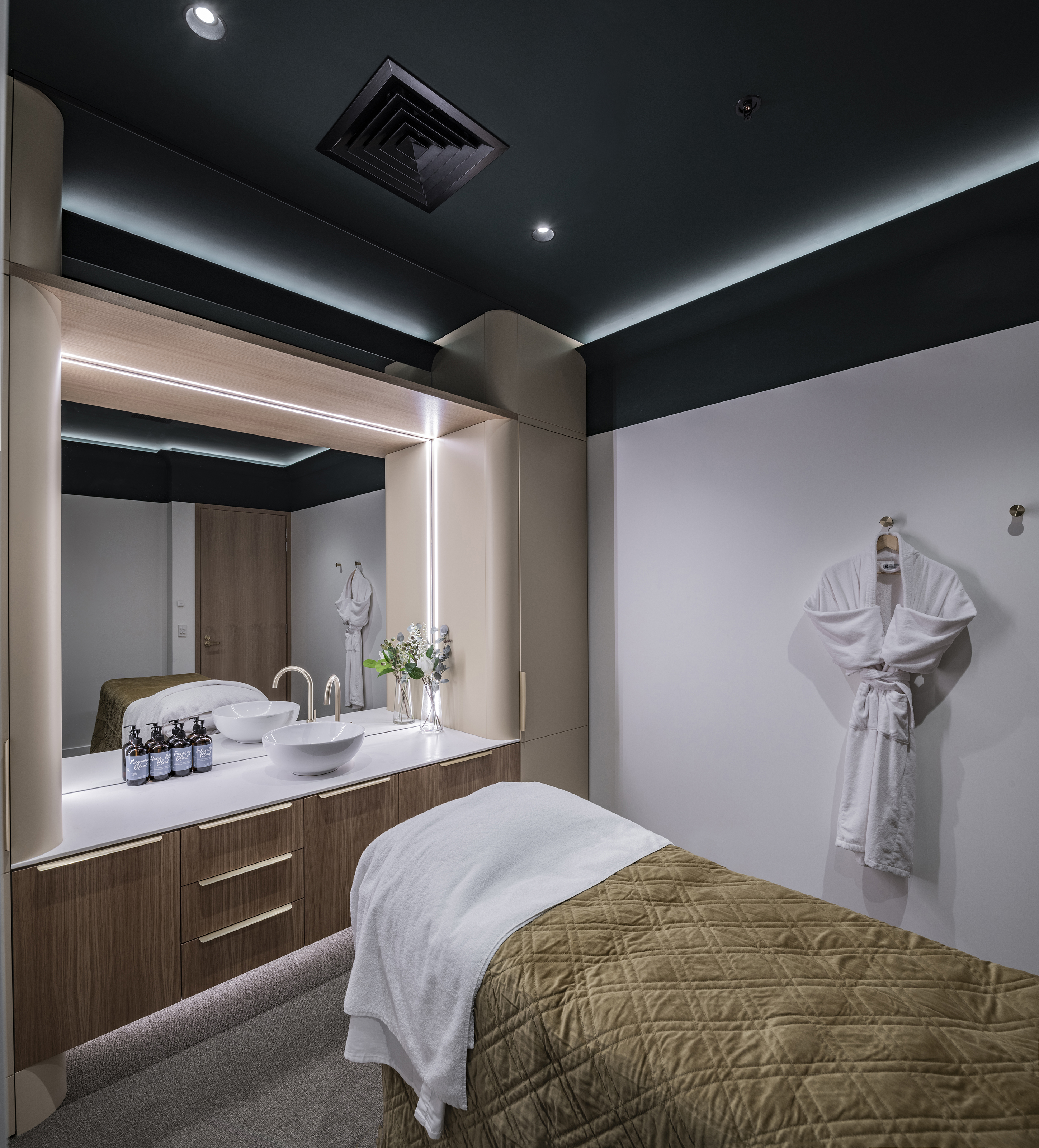 This project is a carefully considered fitout of a commercial space within a busy mall. The judges were impressed that the architects navigated the commercial realities of the mall to create a ‘wellness’ zone, underscoring the value that architecture brings to both client and context. The threshold between public space and retreat is well-considered. The architect has curated this sense of retreat as a series of spaces, thoughtfully manipulated with colour, volume and texture to take the spa customer on a journey of increasing sanctuary. The treatment rooms have a tranquillity far removed from the busy mall outside.
