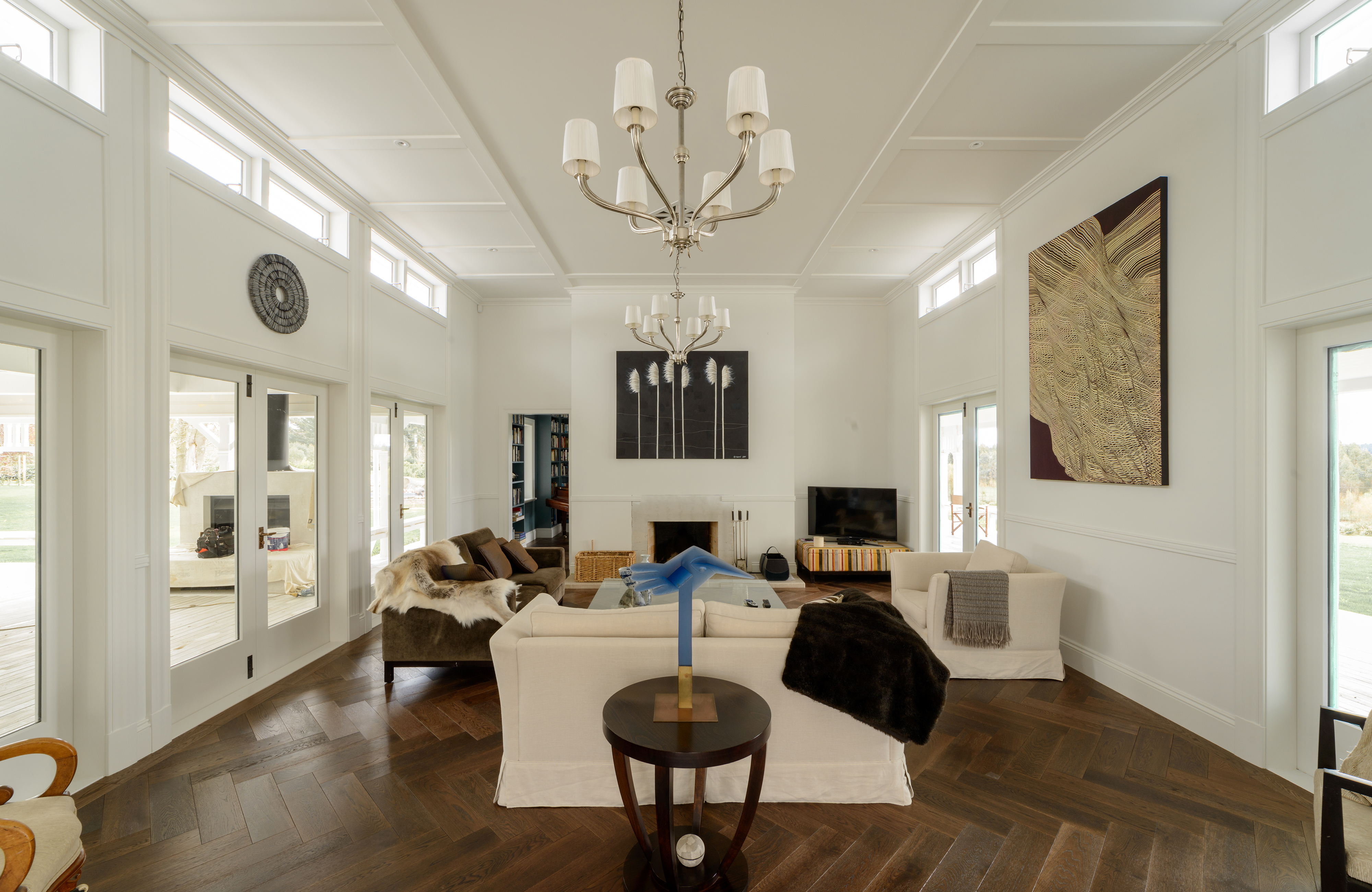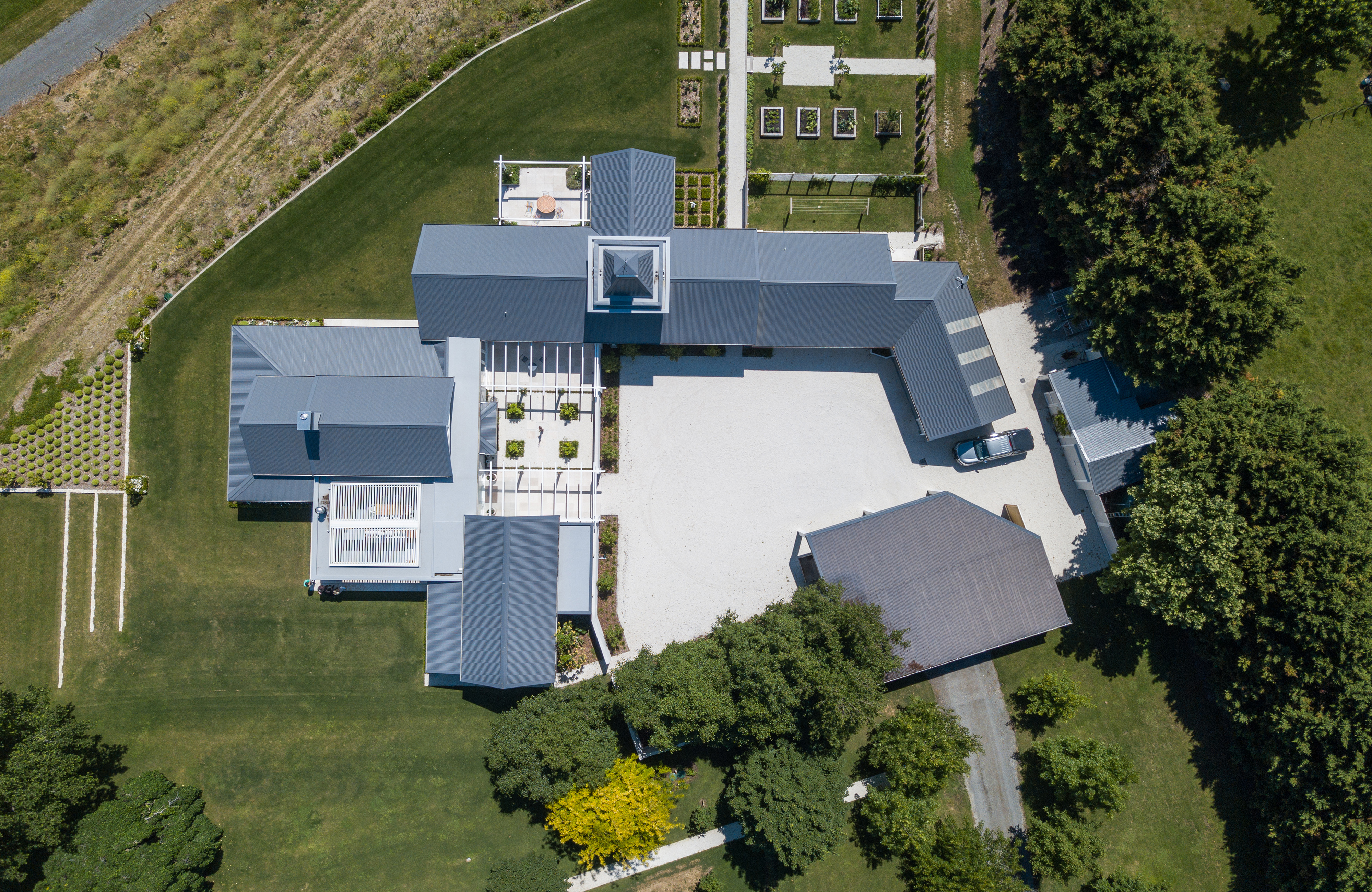 This expansive farm house in a picturesque rural and garden setting is part of a successful courtyard arrangement that includes working facilities and storage buildings. At first glance, the farmhouse appears to belong to an earlier time, one in which houses grew to accommodate the needs of succeeding generations, and verandahs, gardens and sheds were added over time. However, the house itself is new, and the planning and forms of the house flow as a well-considered, interlocking series of indoor and outdoor spaces. Rather than providing a single large, open-plan living area, the architects have designed living spaces that are identifiable and satisfying. The underlying geometry is consistent, which creates a satisfying balance between order and surprise in the sequence of spaces.