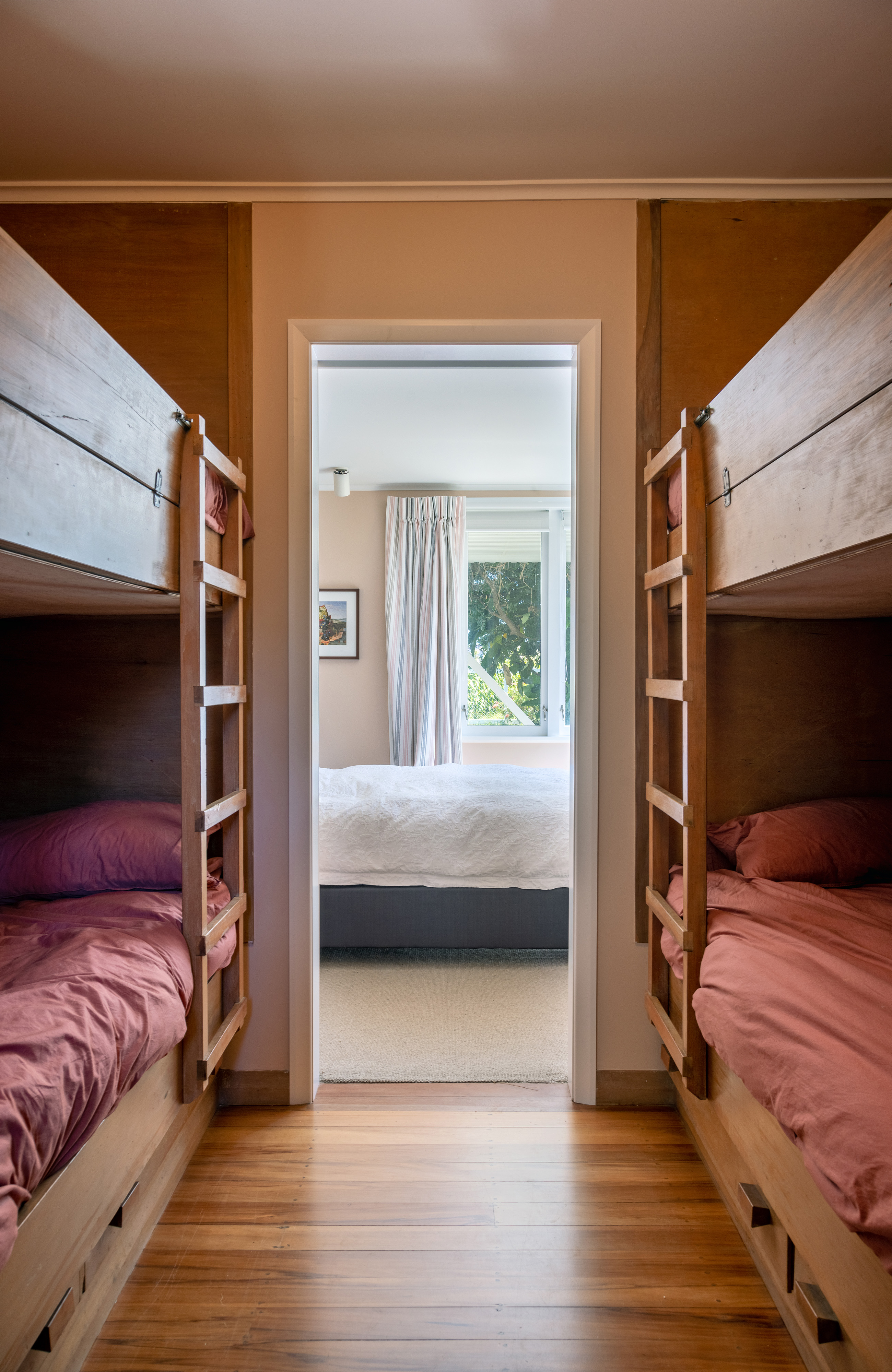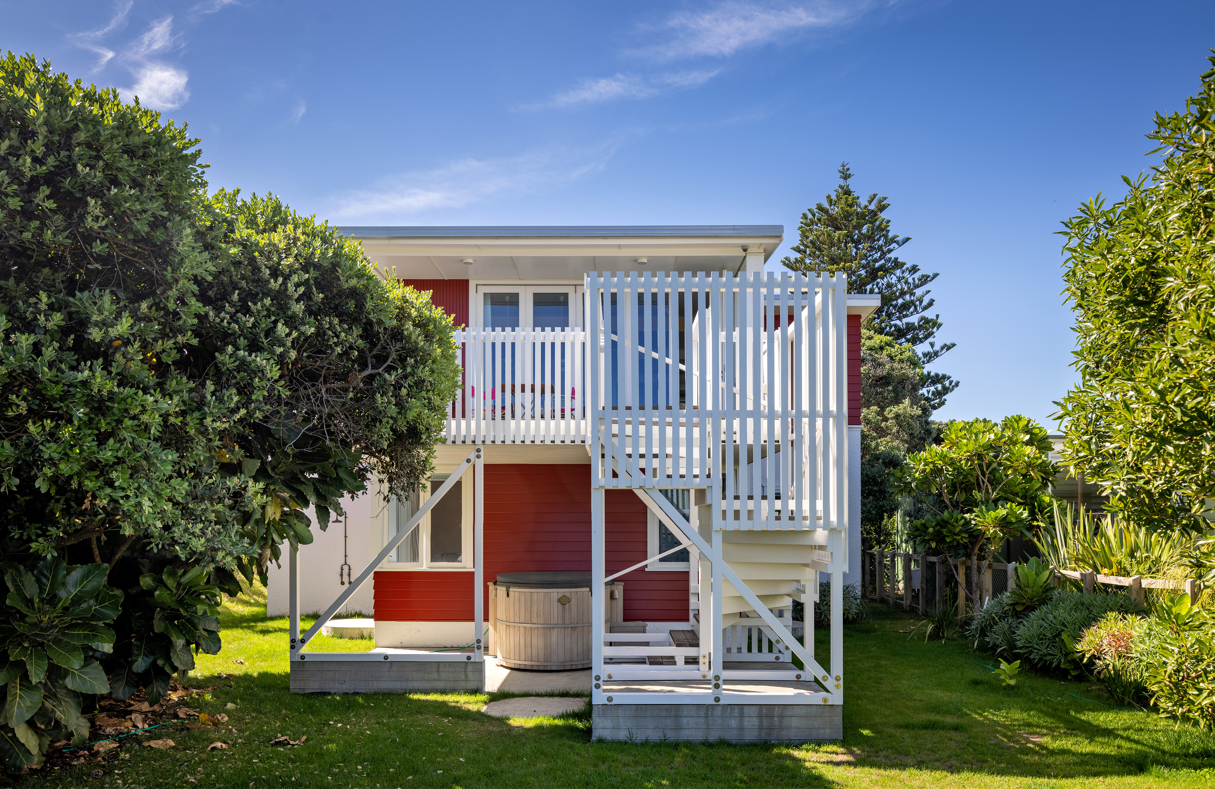 This sensitive and well-considered renovation breathes new life into a much-loved family beach house, honouring its legacy while adapting it for future generations. The additions are natural and well-resolved to a point where it is difficult to distinguish old from new. Beautifully proportioned spaces, thoughtful detailing, and a relaxed, bach-like sensibility create a home that effortlessly expands from intimate retreat to extended family haven. The new elements – including the elevated deck, sculptural stair, and entry porch – respond to the original in scale and spirit, enhancing both function and connection to the coast. A nostalgic taonga, respectfully transformed.