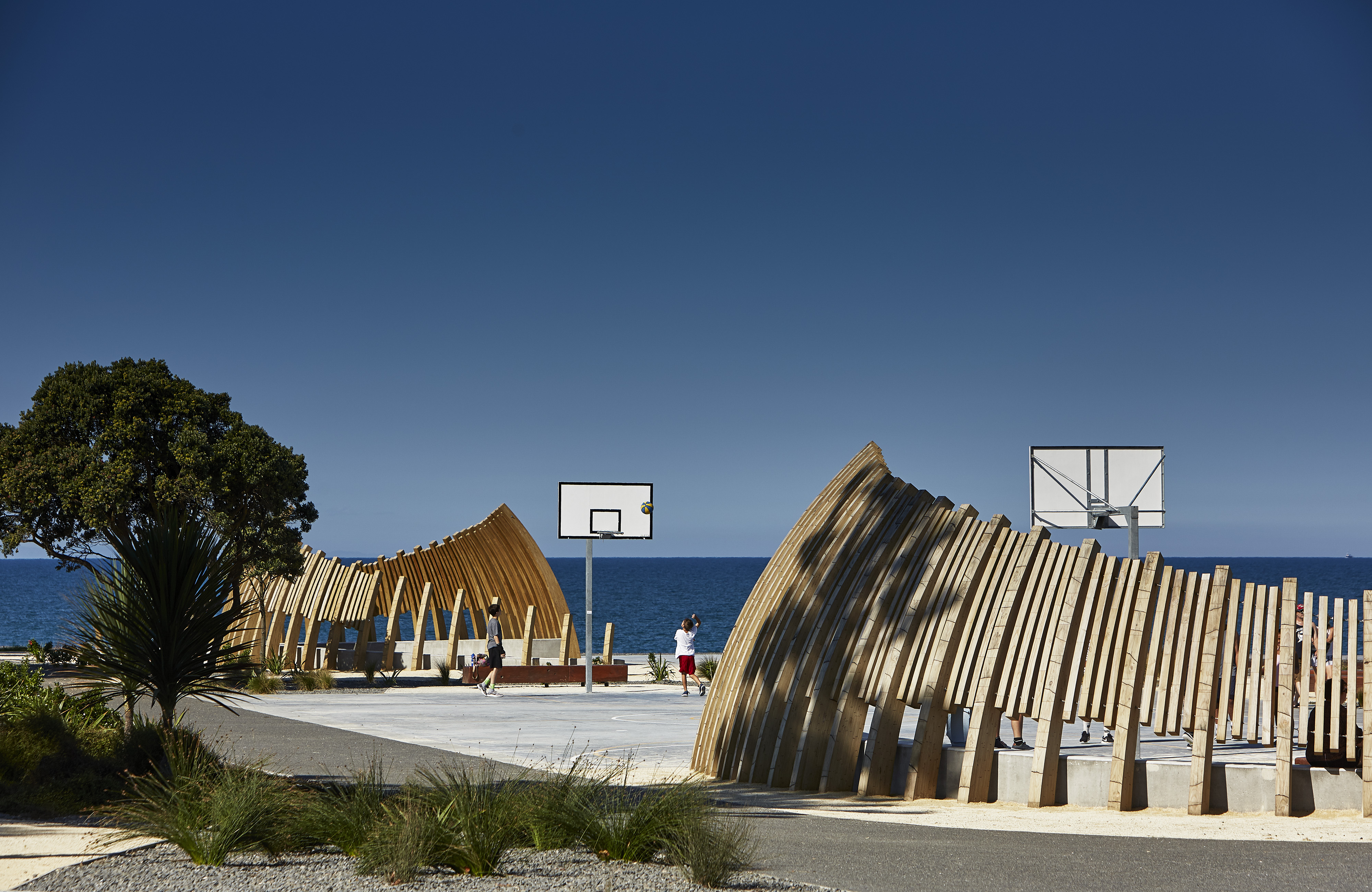 The rich and layered design of this public space acknowledges ancient natural and more recent human history while also pointing to the future by giving young people centrestage. The transformation of Marineland included the metamorphosis of the grandstand into a support and spectator building overlooking the new skate park; the action is now laid out for all to see and enjoy. The remainder of the scheme successfully links back to the city, with a variety of inward and outward, passive and active spaces that celebrate the ocean, wind, flora and landform. The detail of the design has been carefully executed and shows integrity, complexity and nuance through a credible narrative. The overall experience is one of inclusivity, exuberance and fun.