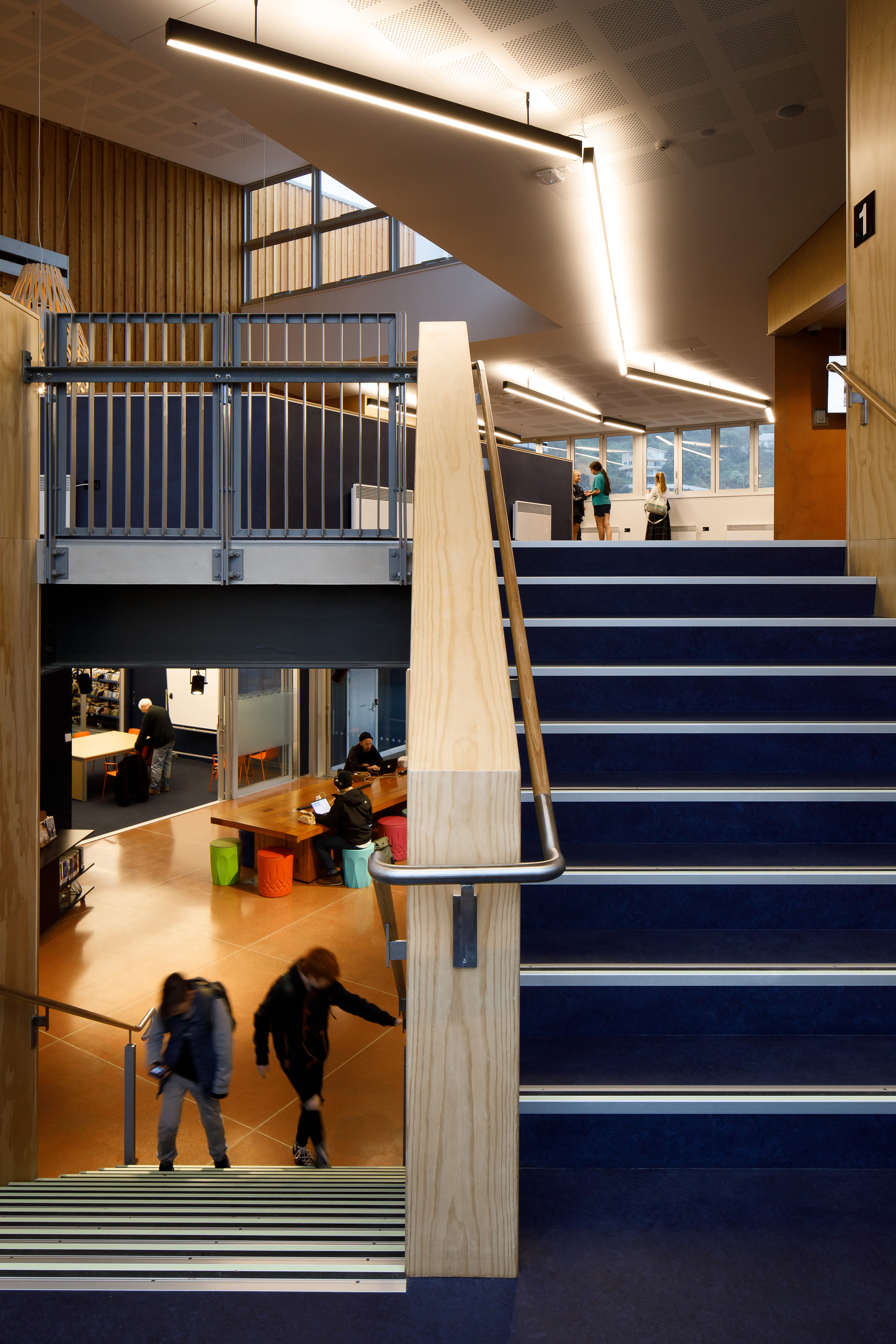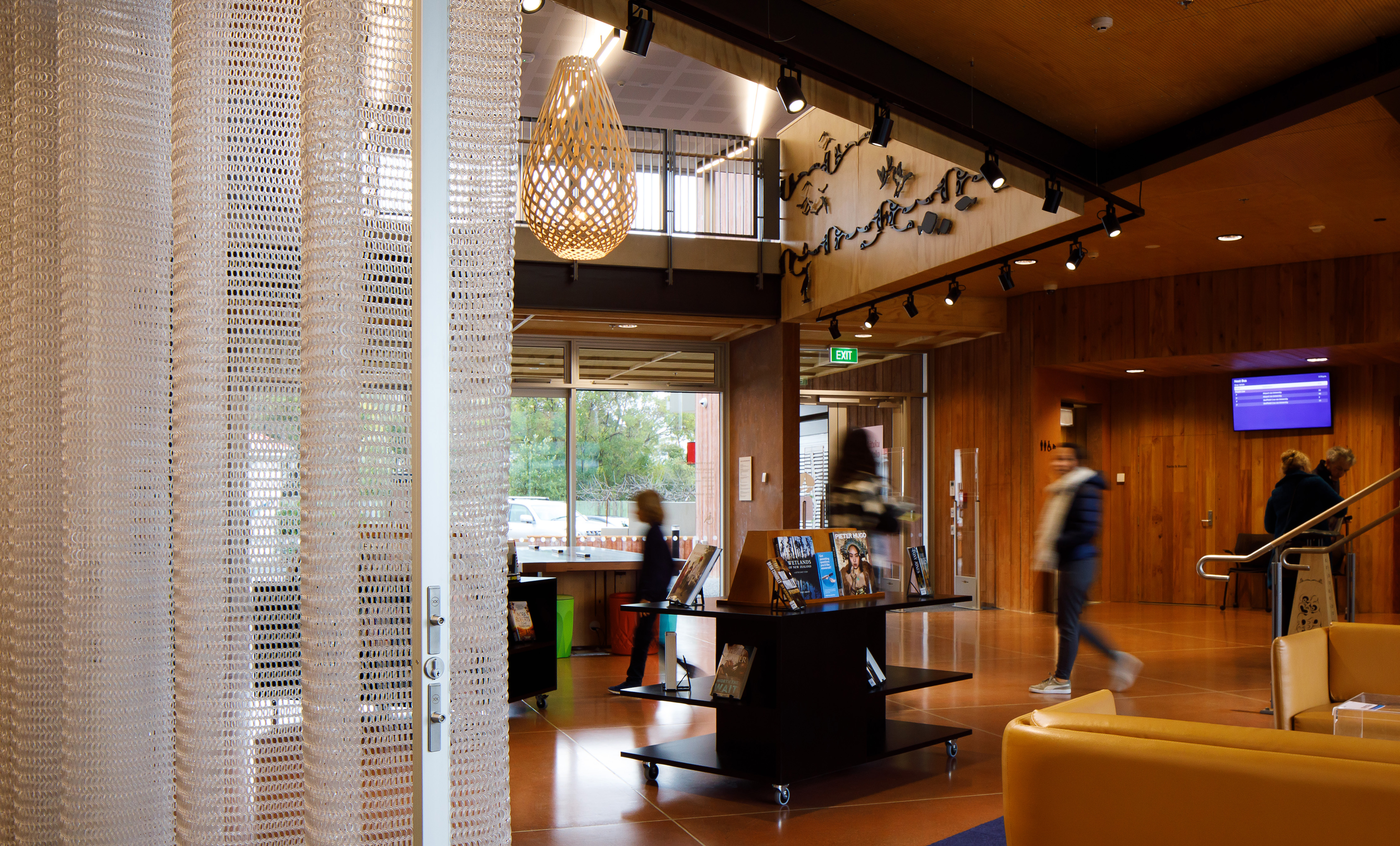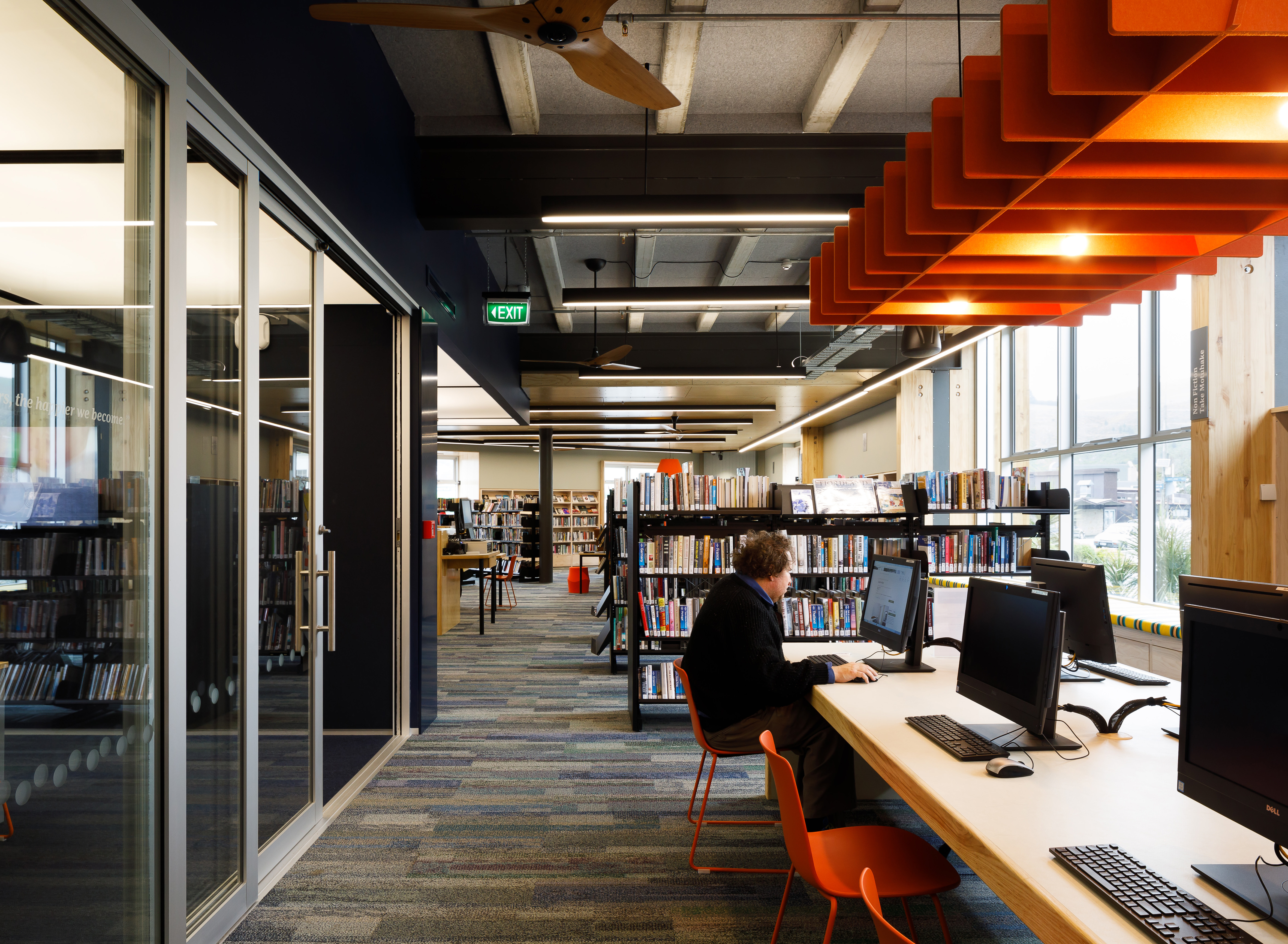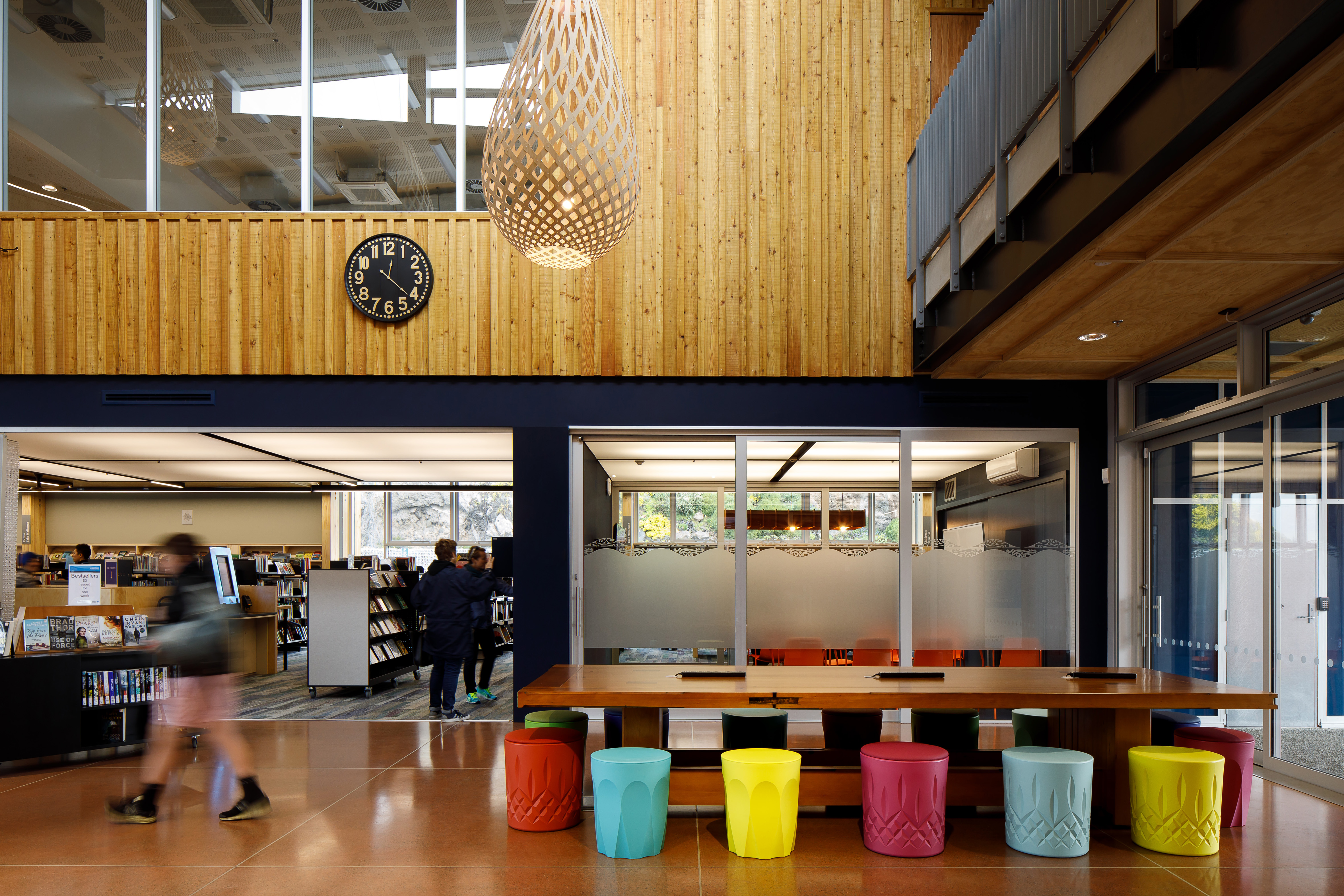 Matuku Takotako: Sumner Centre is a new facility – influenced by the community but civic in scale – that replaces three pre-quake buildings. The new library is precedent-setting for Christchurch, breaking down the traditional threshold to include adjacent public spaces, while inviting the community to their new living room. Issues of scale have been addressed via form and materiality, with rust oxide-coloured concrete responding to the volcanic cliff backdrop and larch battens reflecting the weathered coastal environment. Building hard to the street corner references the volume of a demolished predecessor building; communal memory is further respected in the adaptive re-use of salvaged elements including a war memorial roll. Adjacent street furniture and public transport infrastructure have been integrated into the overall design.