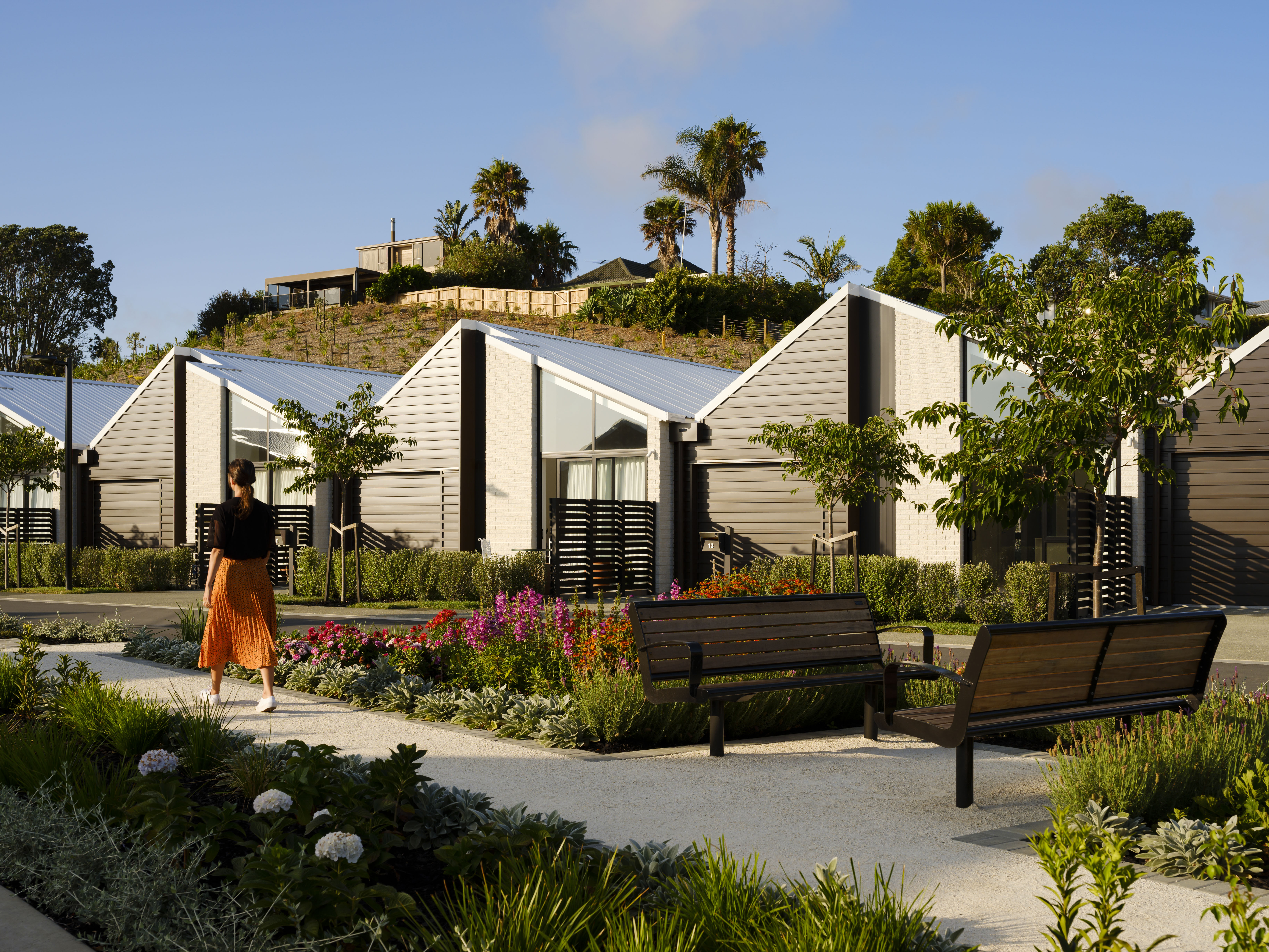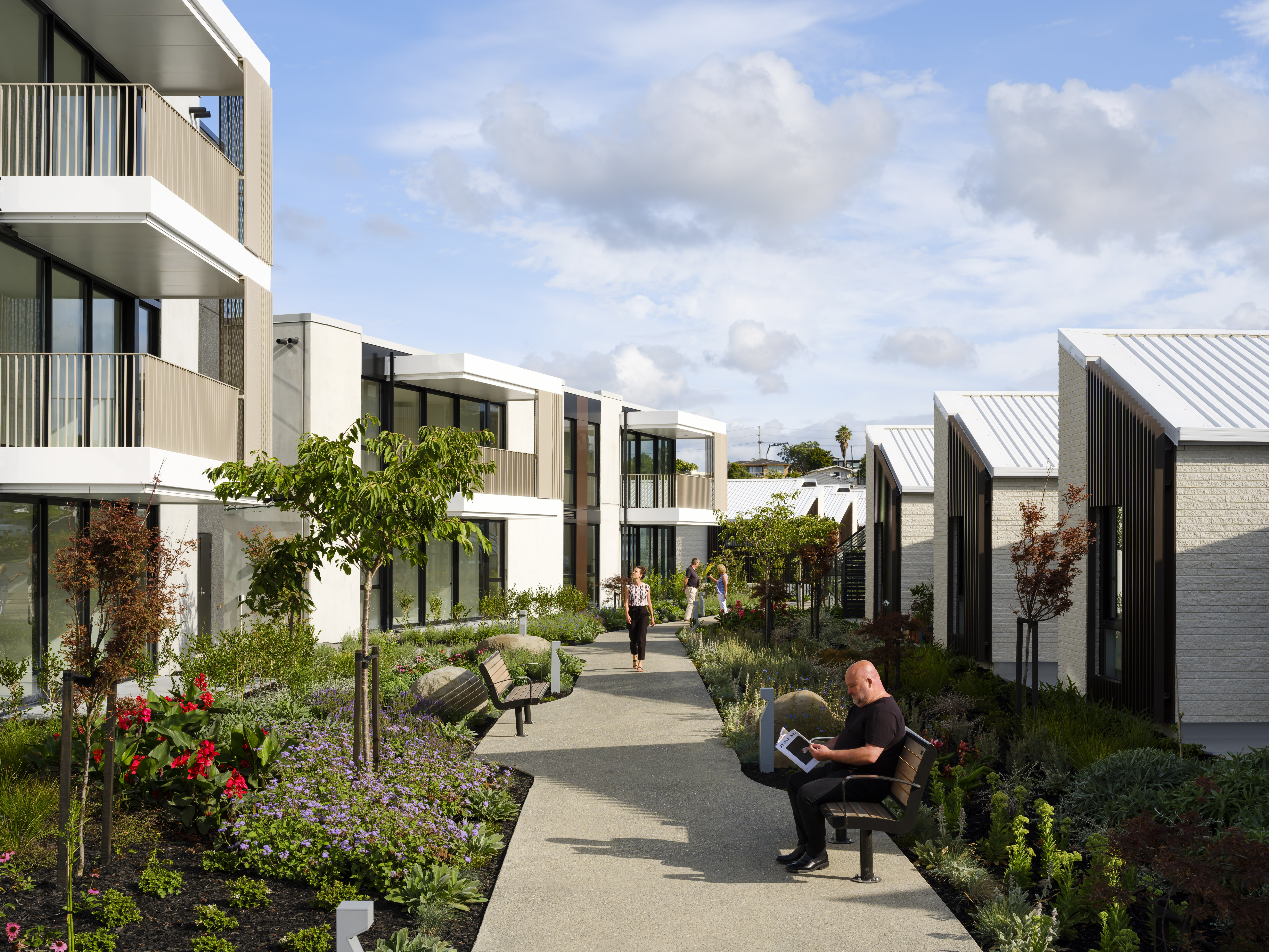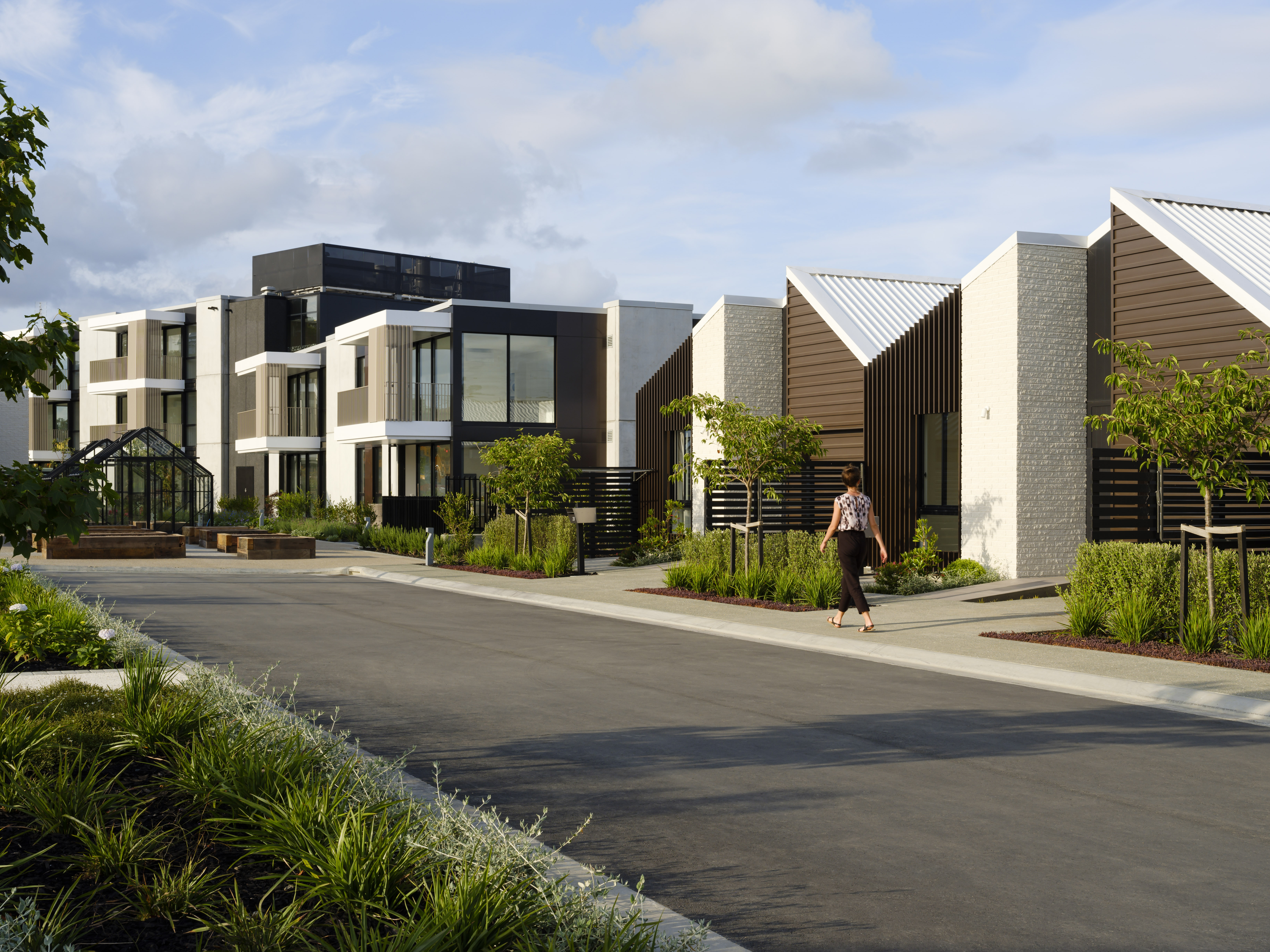 To challenge the stereotypical approach to the planning of retirement villages is no easy feat; it takes a brave architect and also a bold client to pull this off. In this case, credit must be given to architect and client for sticking to their determination to do things differently, and better. The result is a very grounded and community-based project, which seeks to prioritise people, rather than cars or profit. This design is deliberate and considered; it allows for public and private space, generous walking tracks, and most gratifyingly, gardens producing edible crops.