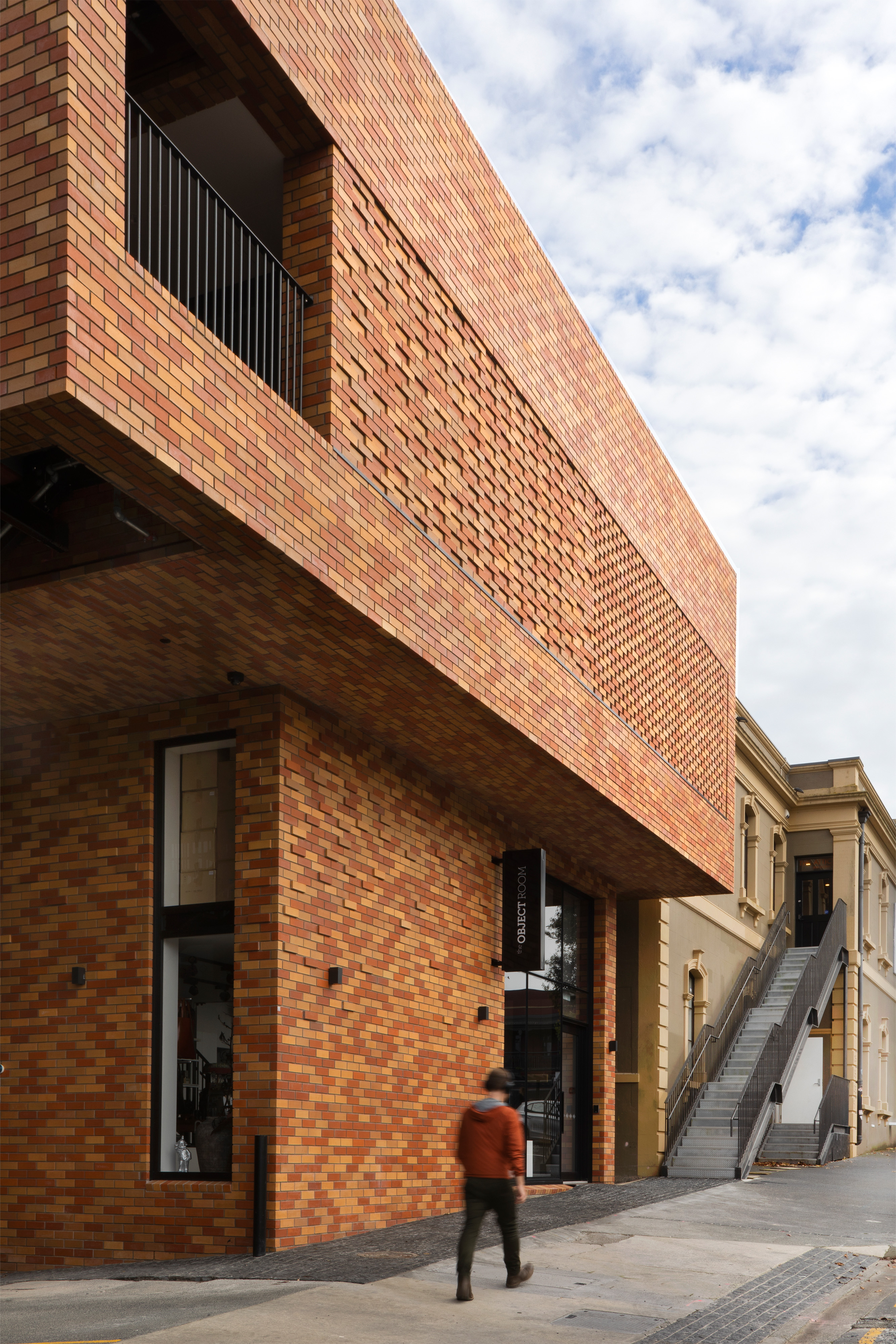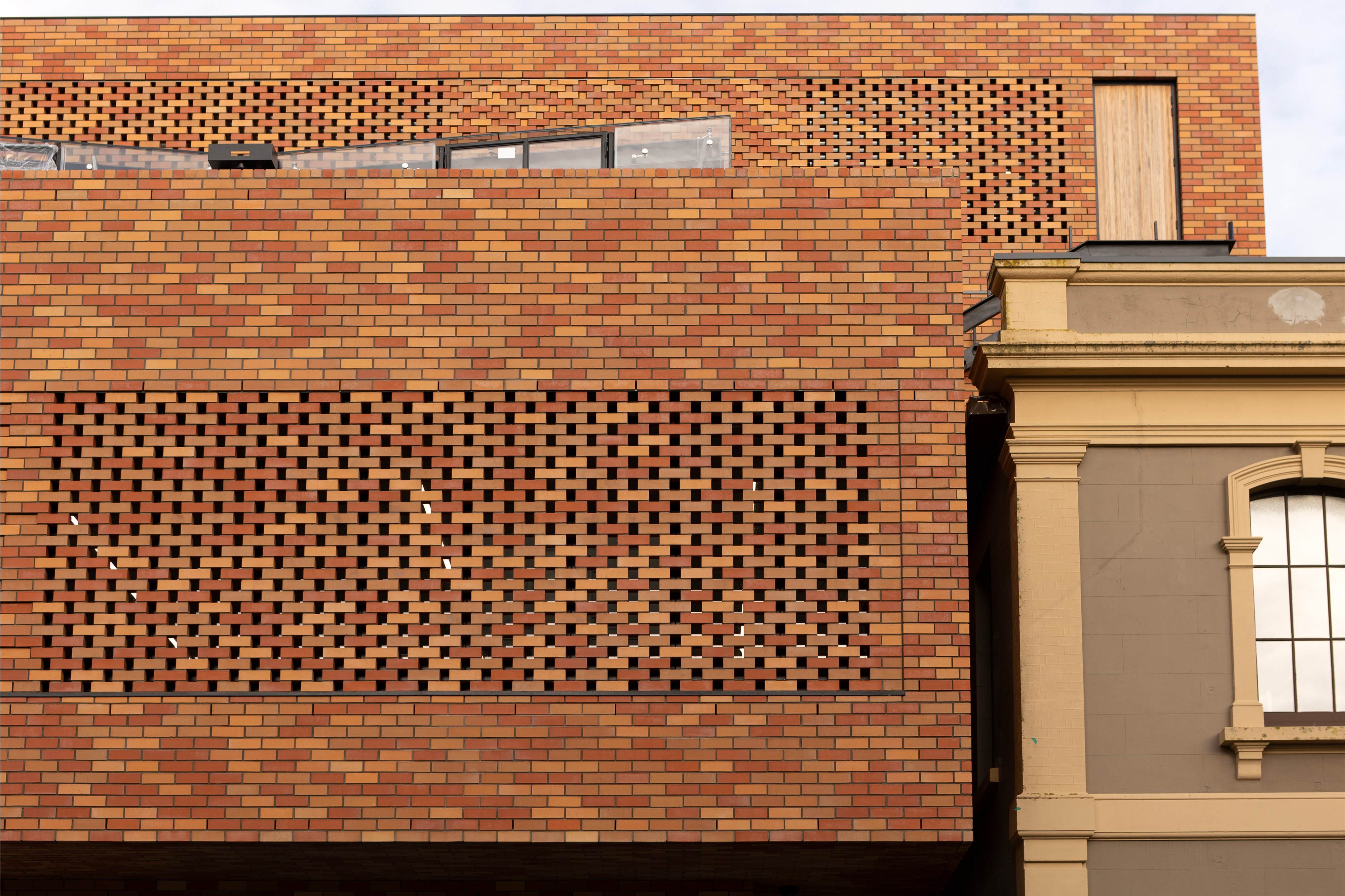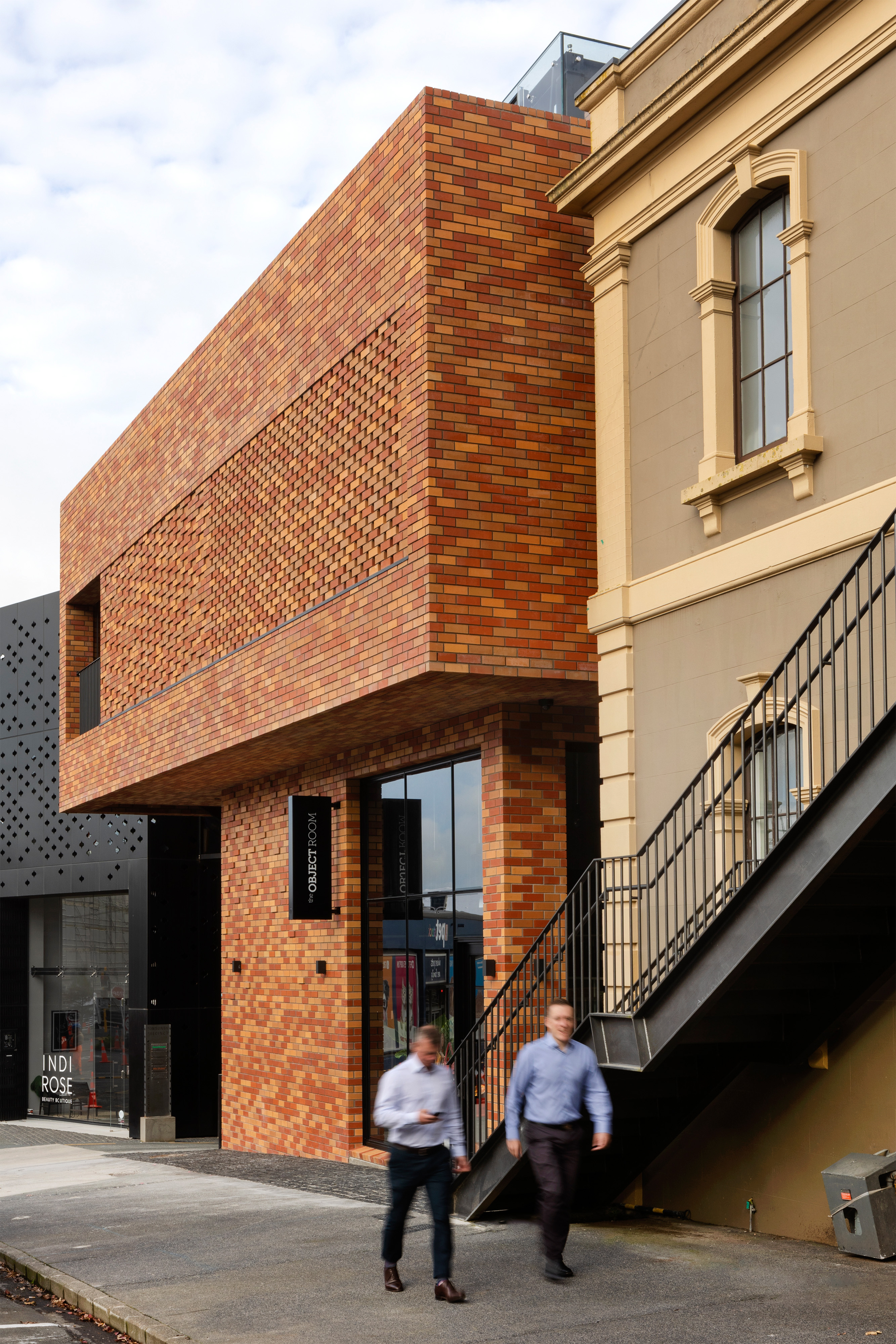 This delightful intervention on a tight city plot brings Ponsonby Road character around the corner to activate the side street. The assemblage of forms relates to the scale and proportion of the adjacent heritage building and gains additional volume by stepping back and cantilevering over the carpark entry. The negative space on top is cleverly regained by the addition of a glazed box. Brick screening adds pattern to the streetscape while filtering light within. Care and attention to detail bring value and charm to the neighbourhood.