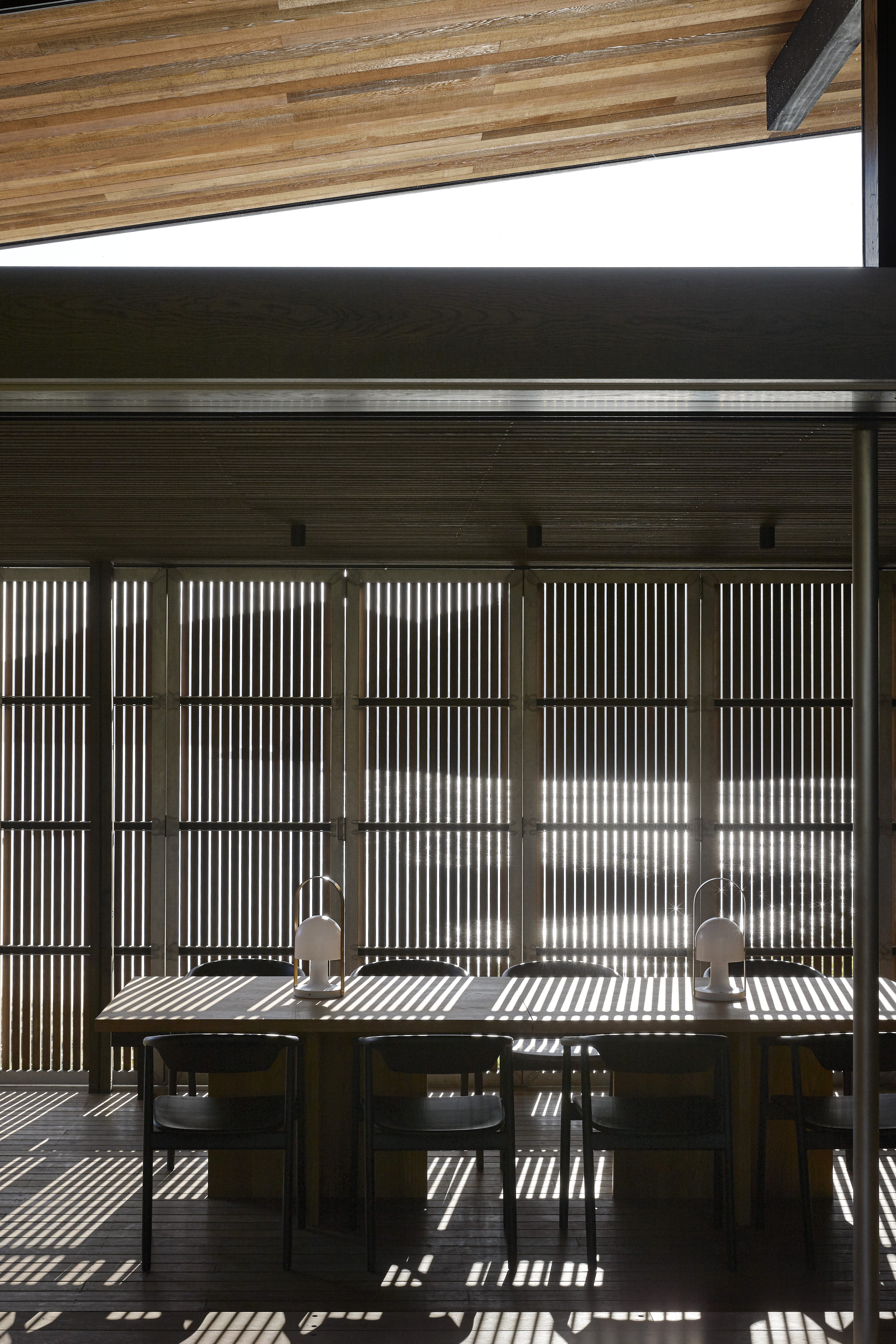 While an alteration and addition, the extent of work and the sophistication of its execution provides the same level of quality that may be expected from a new home. Connections with the landscape and nature are established with a permeable, open living space and are further encouraged with a transition from inside to out when moving from living spaces to bedrooms, at either end of the house. Outdoor areas extend the main living space with shutters allowing for variable weather conditions, while meticulously detailed timber lining adds warmth to the interior. This project is a superb example of the inherent sustainability of re-tasking an existing building.