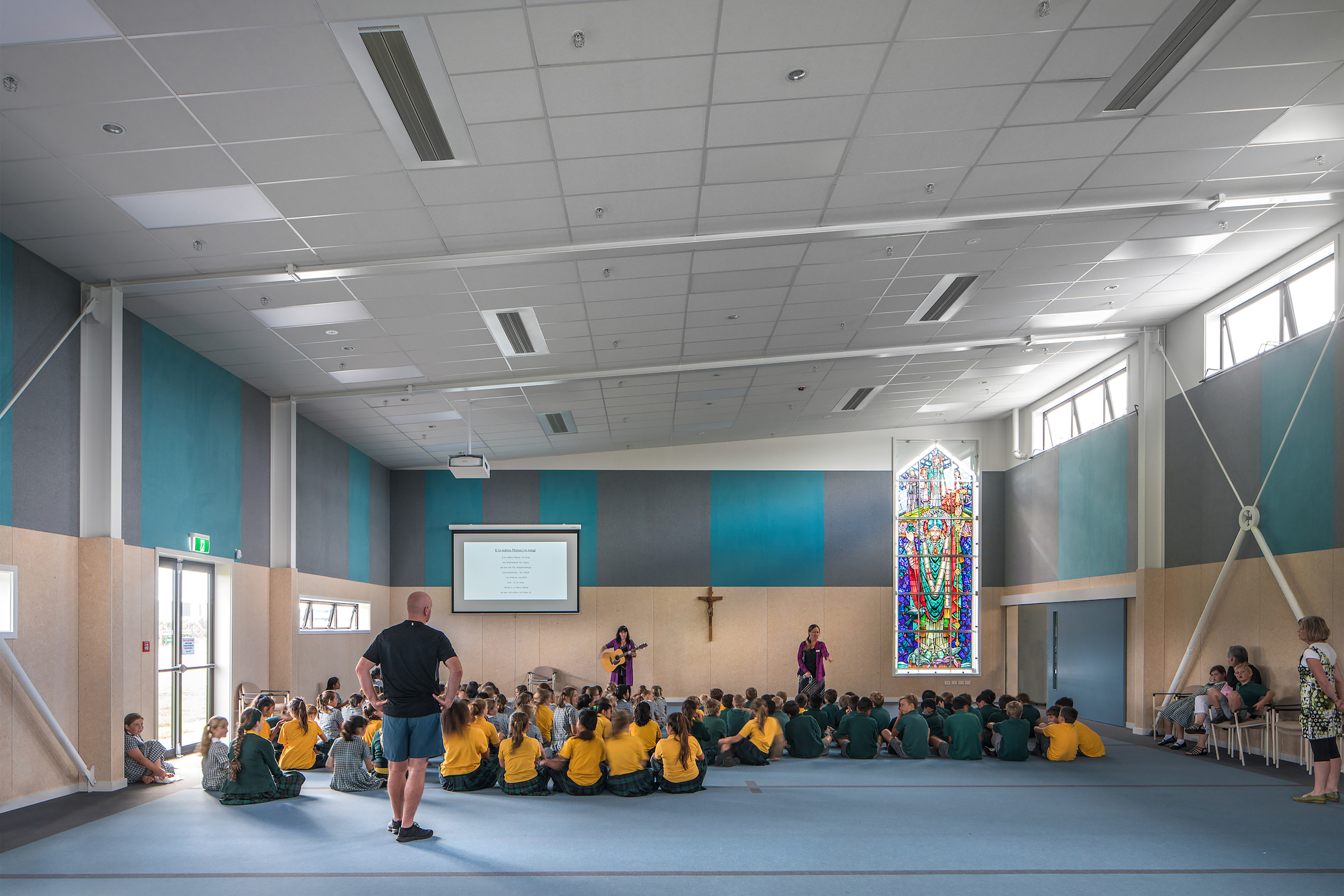 This small Catholic primary school has jumped the tracks to a flat, new greenfield site. Designed around a simple courtyard plan with simple materials – and with an eye towards roll growth and expansion – this is a shining example of how architecture and architects can channel the energy of staff and students into an environment that encourages learning every day.