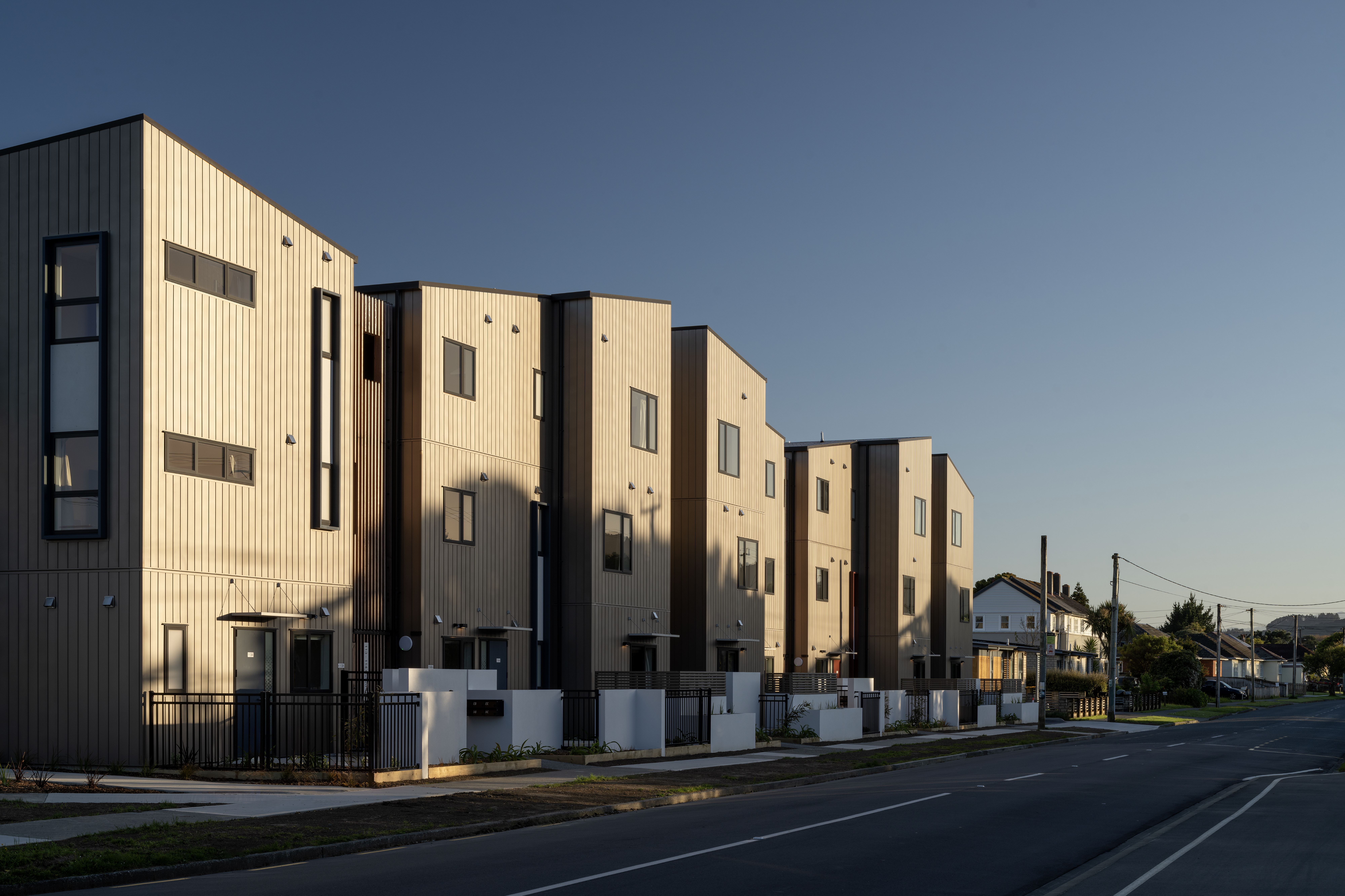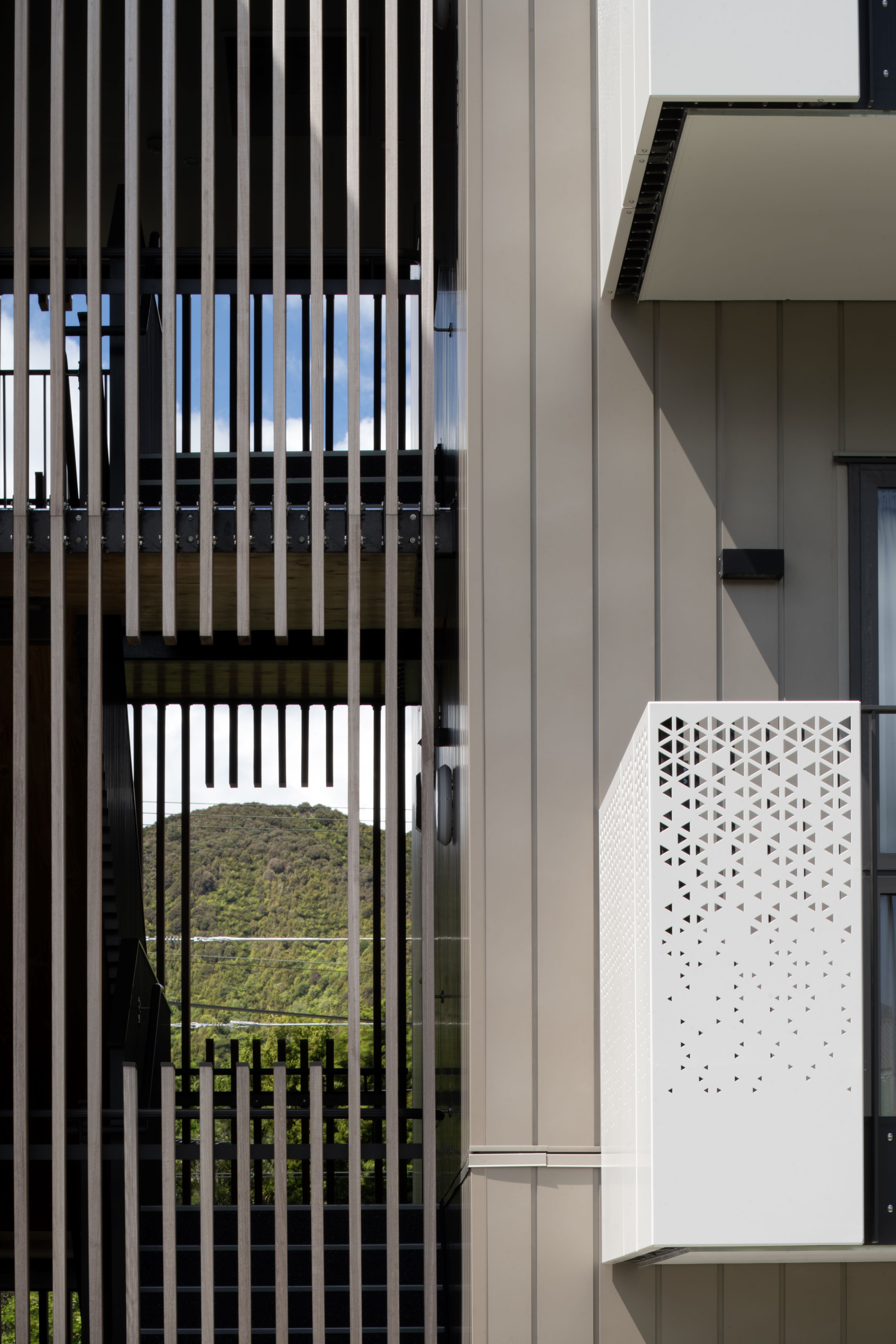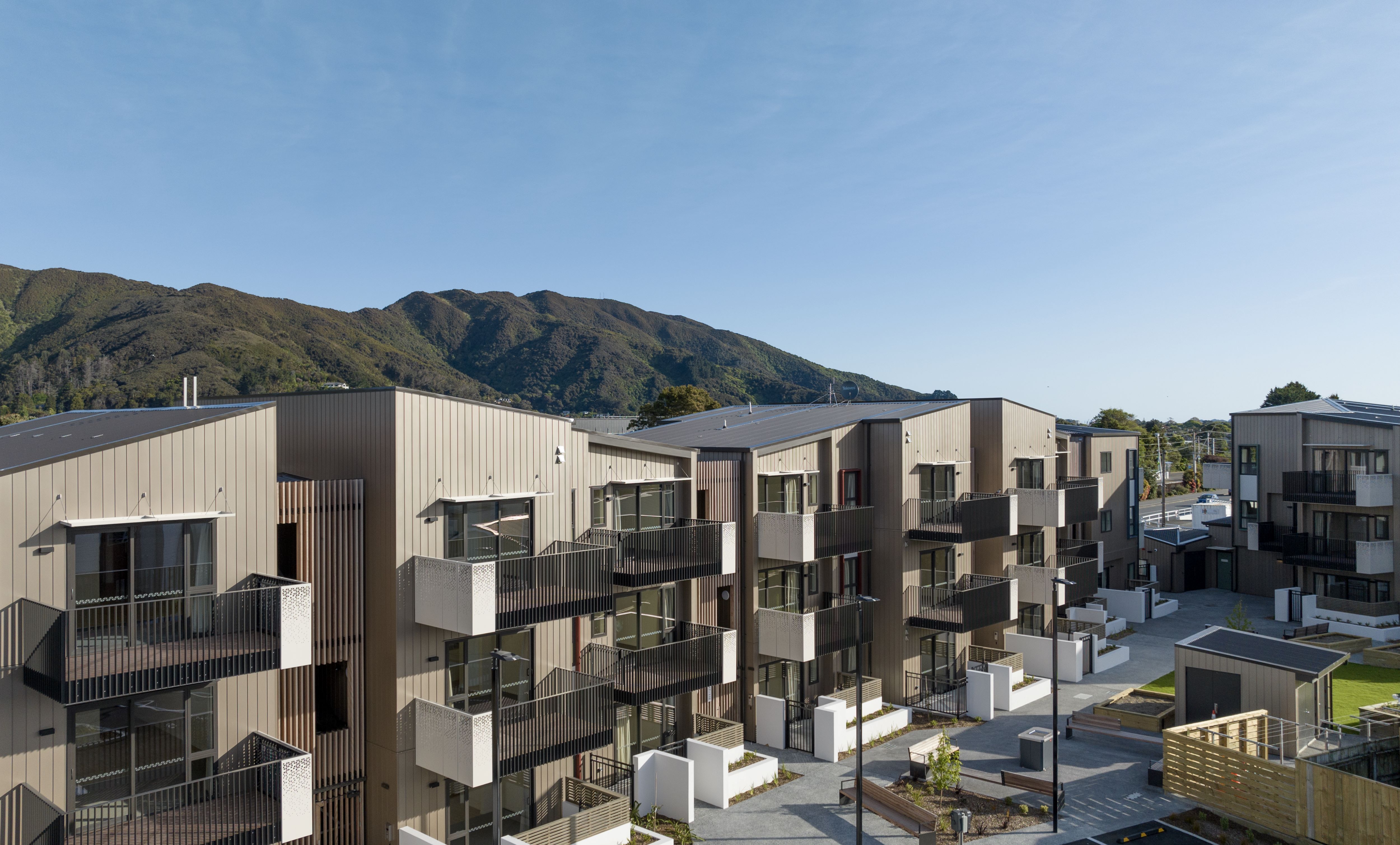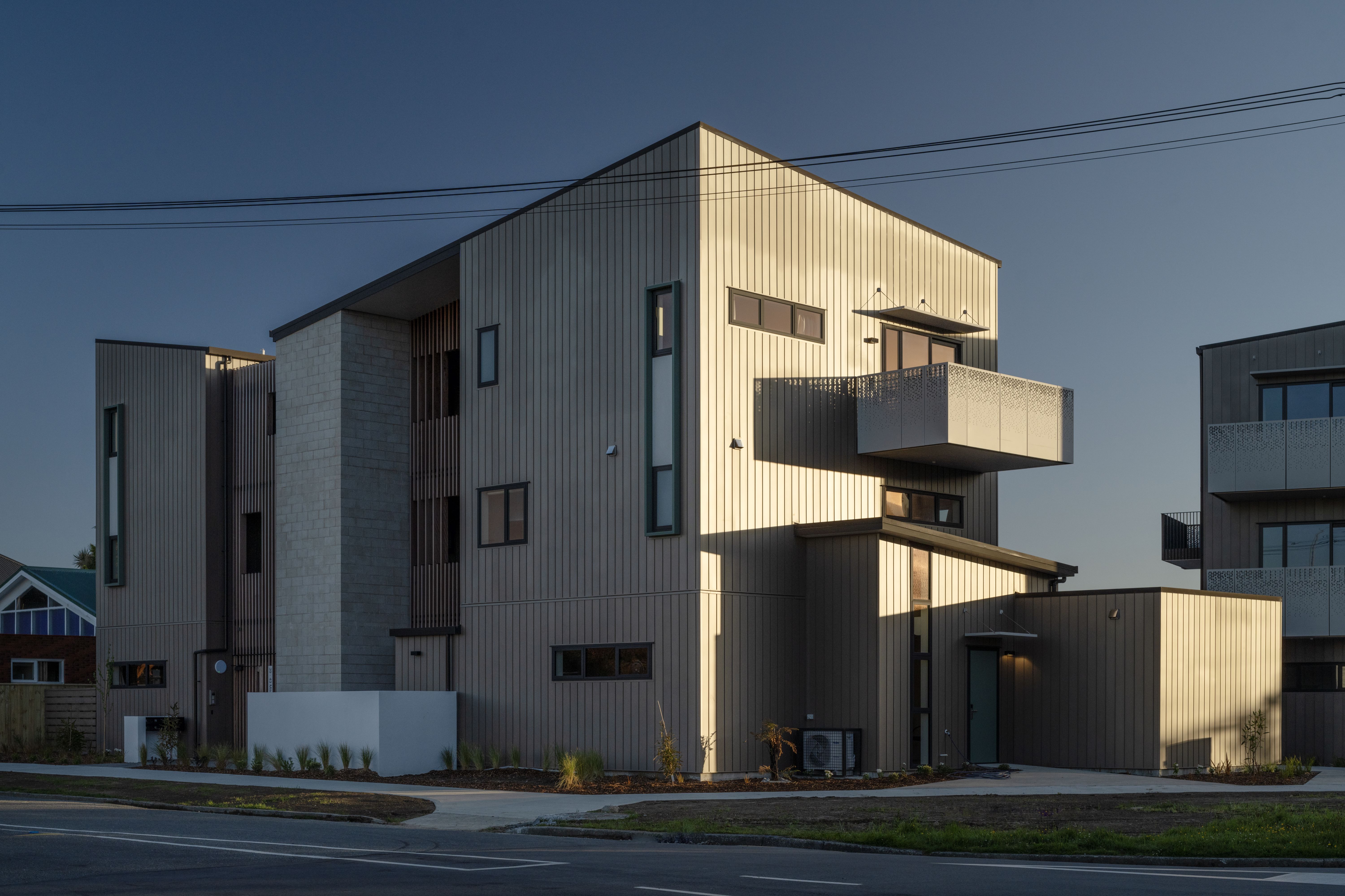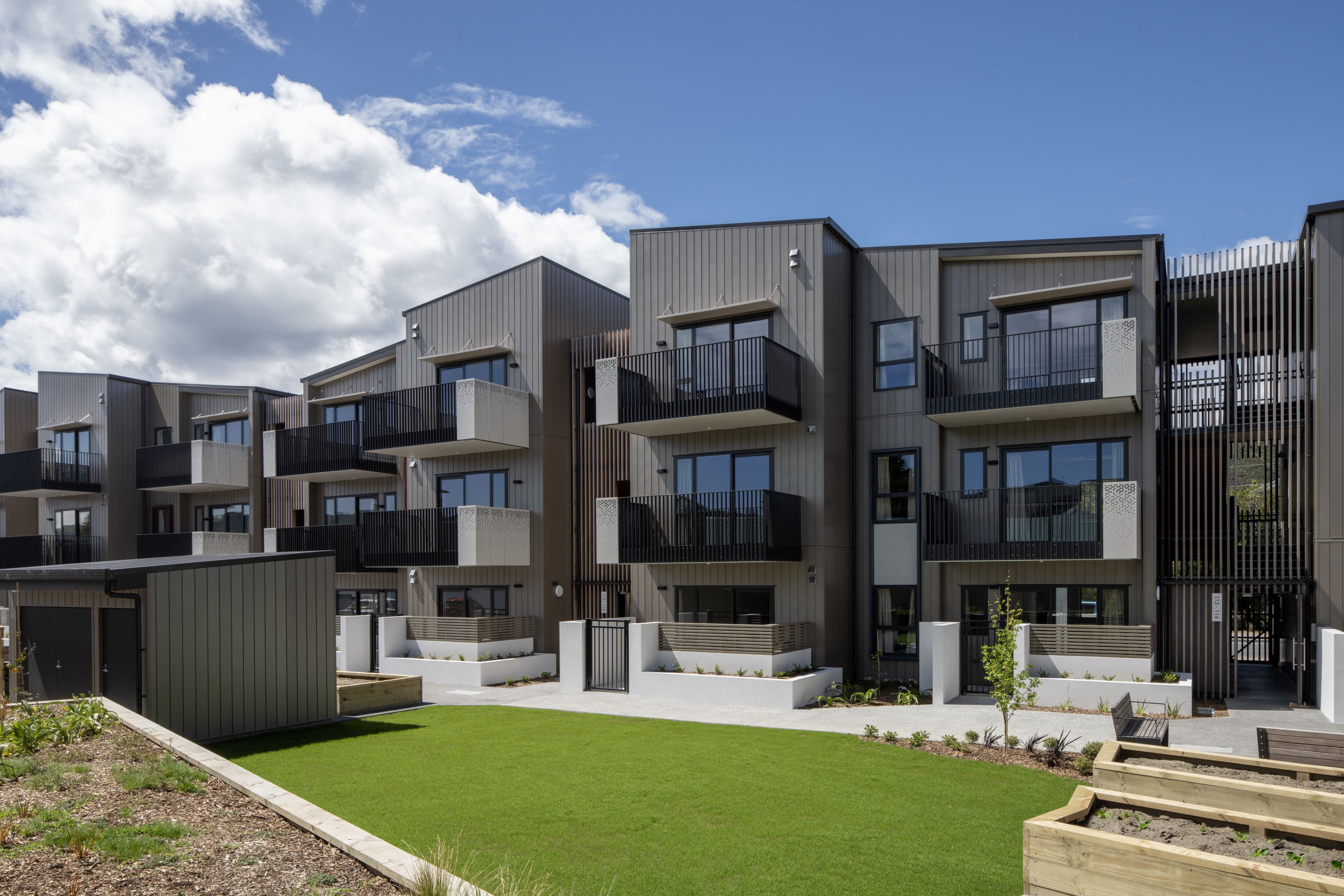 A highly empathetic design response, from site planning to shared stairways, has resulted in a public housing project that allows a sense of community for single-person occupants. Generous and carefully positioned balconies enliven outdoor areas and allow residents to connect in informal ways. The balconies overlook a large central outdoor area that offers places to sit, gather, garden and socialise. Courtyards with garden beds provide texture and depth to the edges of shared spaces. Material selection, such as timber screens in the stairways, have been carefully considered to give public areas texture, warmth and durability. A heart-warming example of a community housing project.