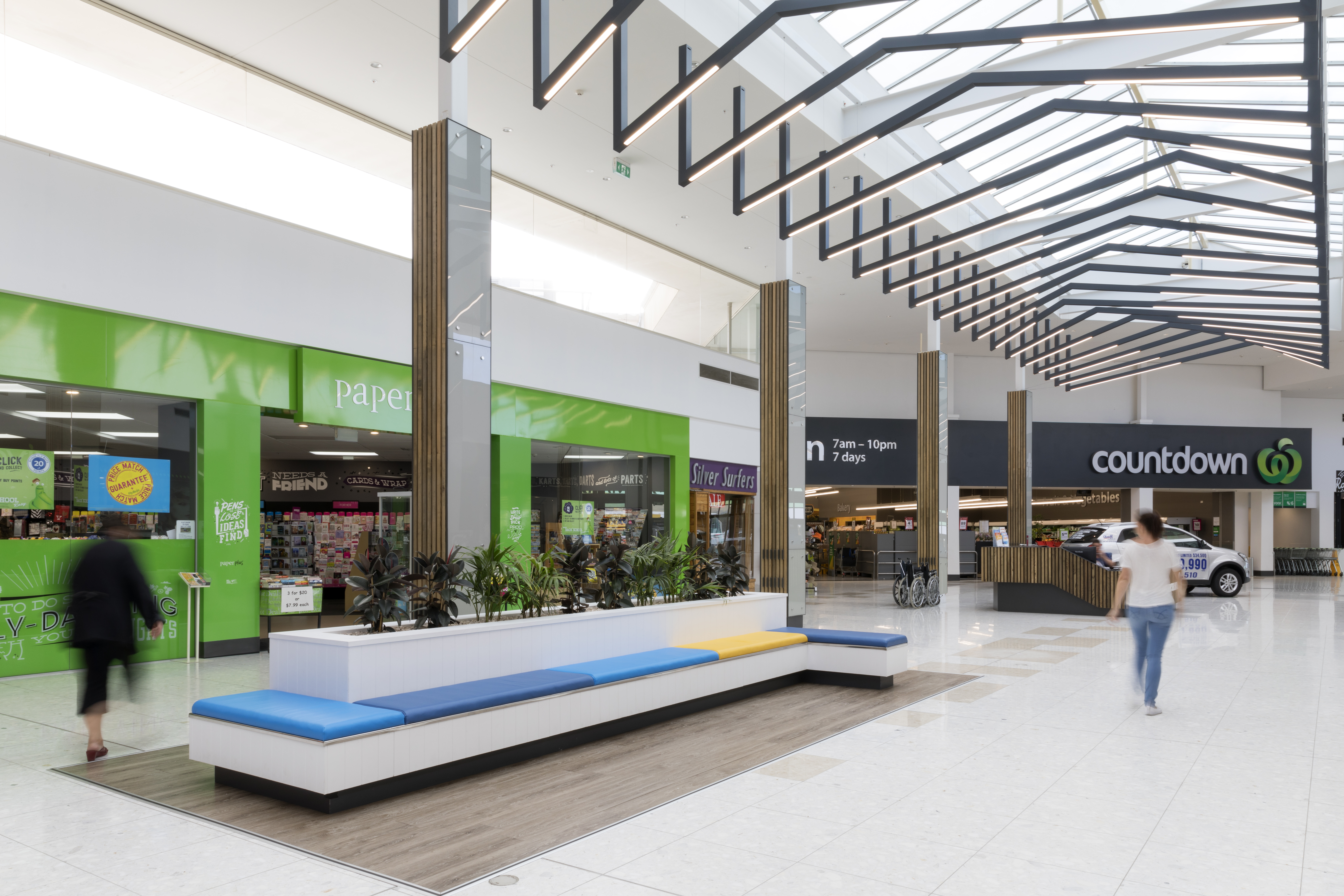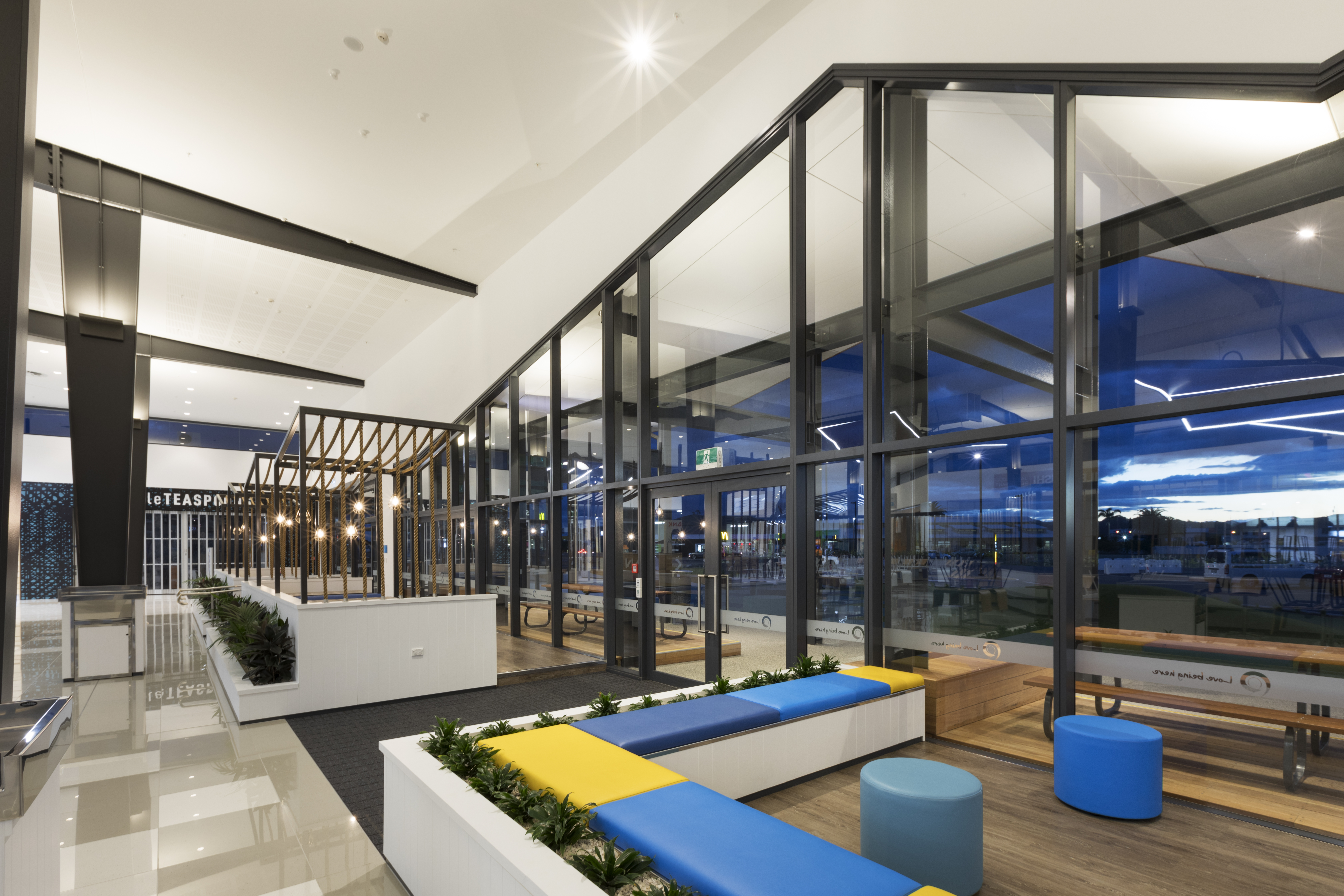 The architects have extended and refurbished an existing shopping centre with a commitment to returning a sense of place to a previously context-less mall. Strategically freeing the foodcourt from the interior allows it to occupy a light-filled, glazed public edge and addresses the interface between building and carpark well. A relevant canopy defines and articulates an active pedestrian edge resulting in a successful intervention that bridges the divide between community space and typical faceless suburban mall.