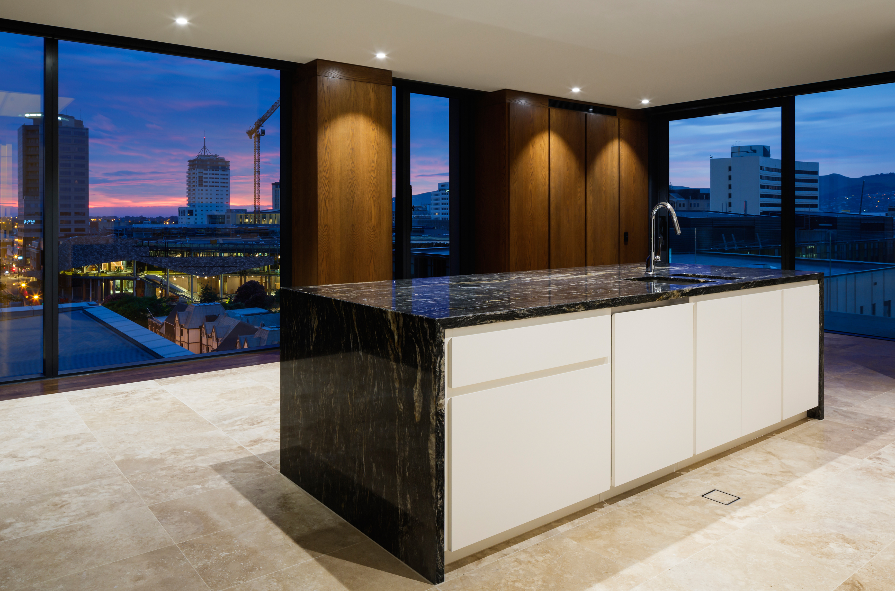 This carefully controlled multi-unit development in Armagh Street exudes sophistication and grandeur, and fully satisfies the client’s brief for structural and personal security. Impressive restraint has been exhibited in material selection and the pared-back interior aesthetic. Externally, the façade modulation and layering sits comfortably within the building’s urban context. The apartment planning is testament to a rigorous design method that transcends the ‘box’ archetype of the inner-city unit. Living spaces, in both plan and section, show a nuanced marriage of form and function. A Vogue Living existence is promised to the fortunate occupants of the Paragon Apartments.
