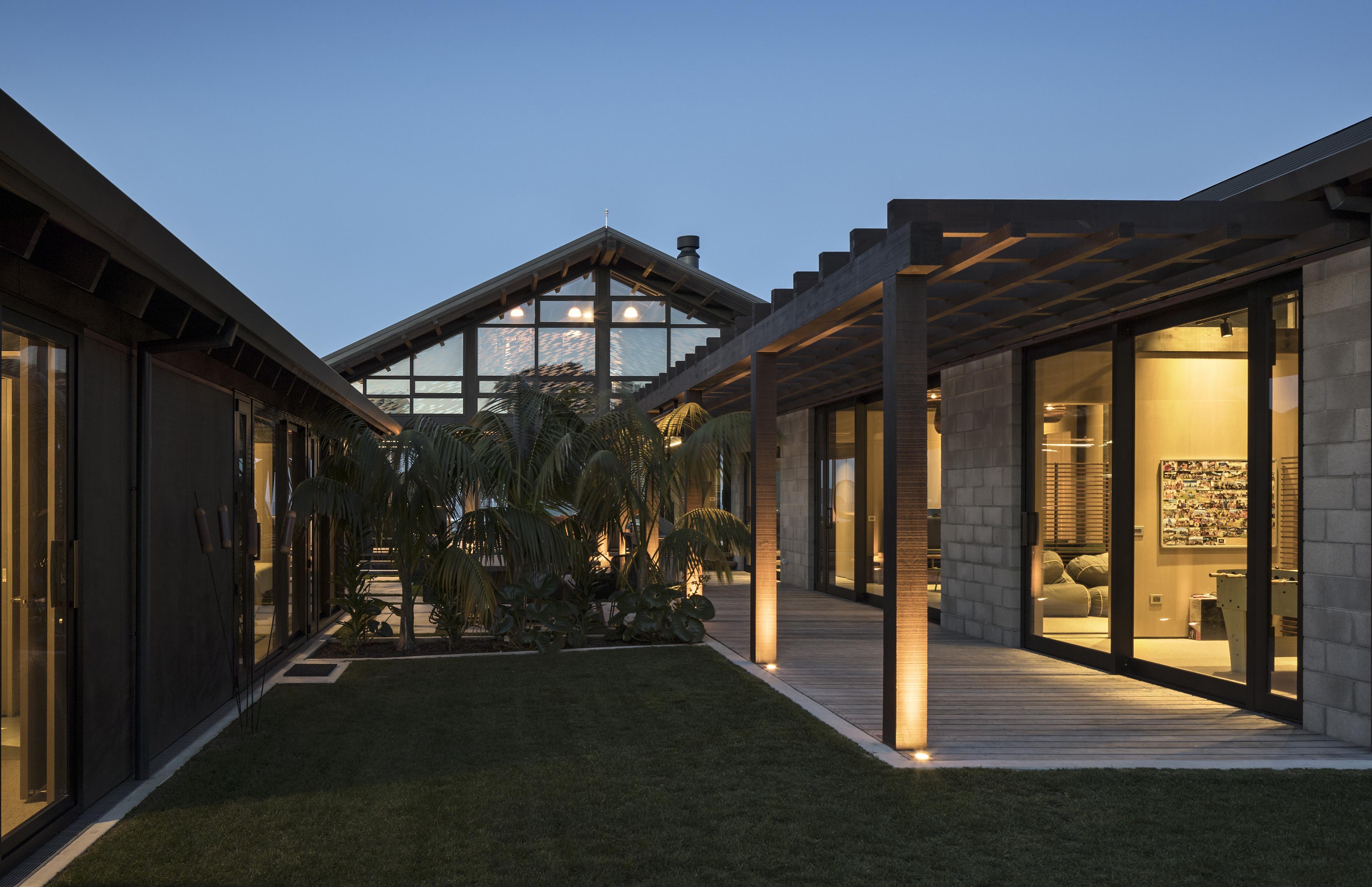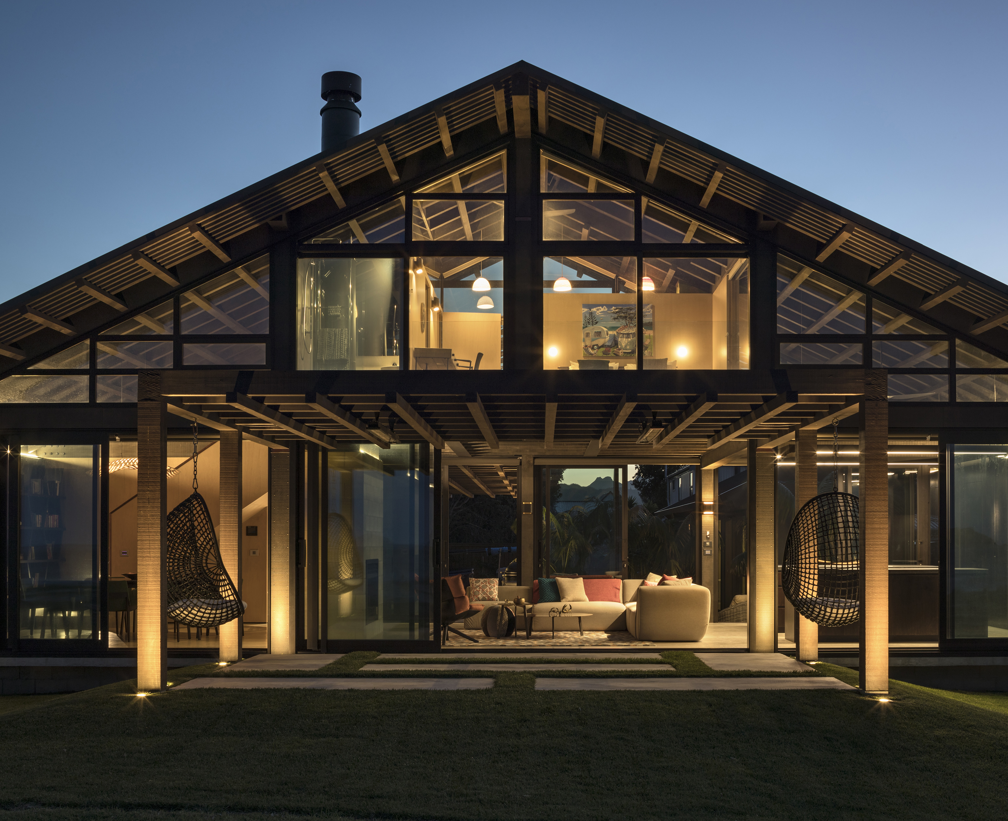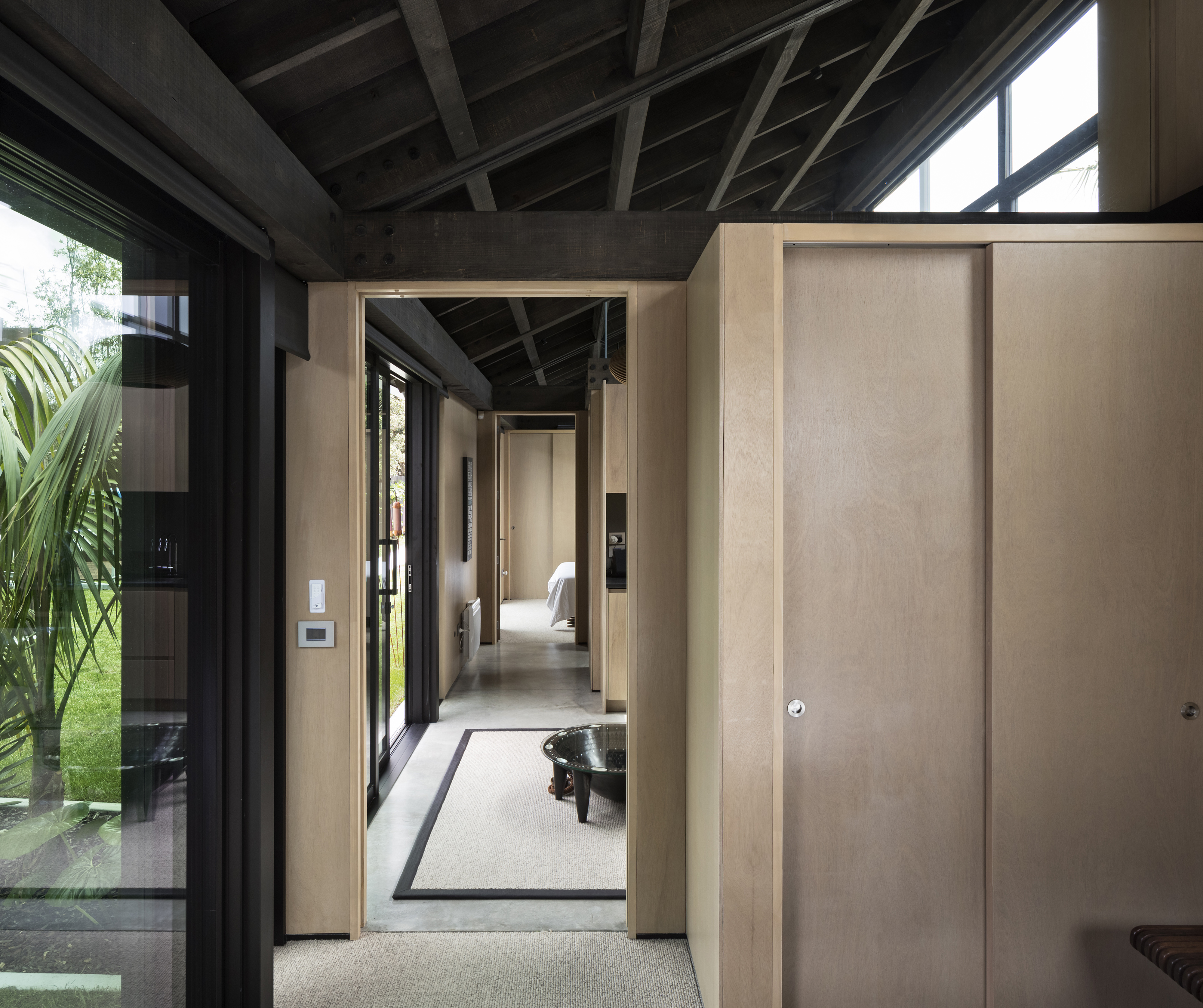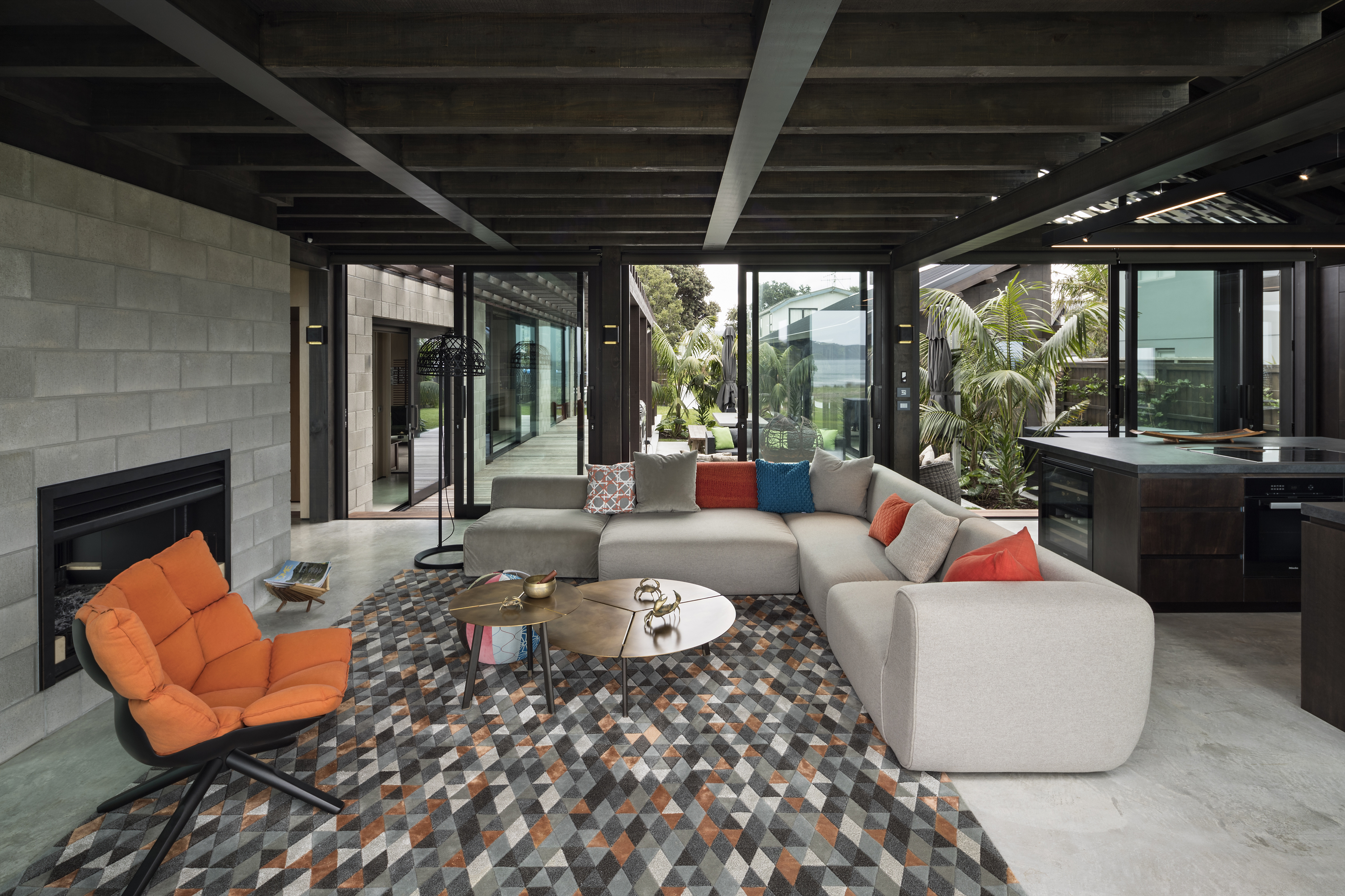 This house is a robust display of a unique relationship built on a superb coastal site. The brief – to make a hewn wooden building with a Polynesian background – has been superbly articulated. The balanced design, enriched by many voices, is centred around a soaring gable held aloft on a clear diagram of frame and transparent infill. The arrangement of family sleeping and nursery wings around the entrance path and cooking pit are a clear delight in the act of greeting, eating and living together.