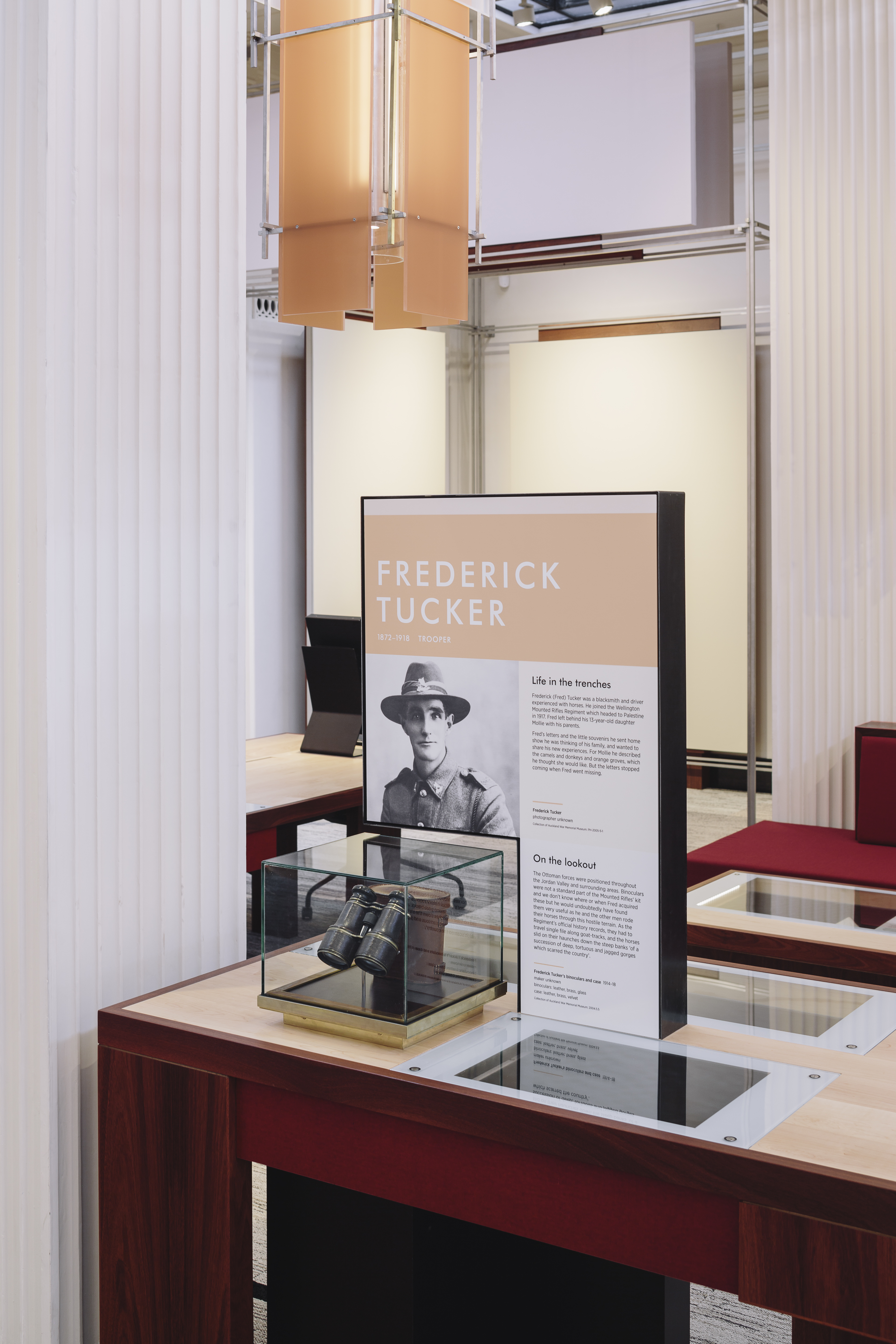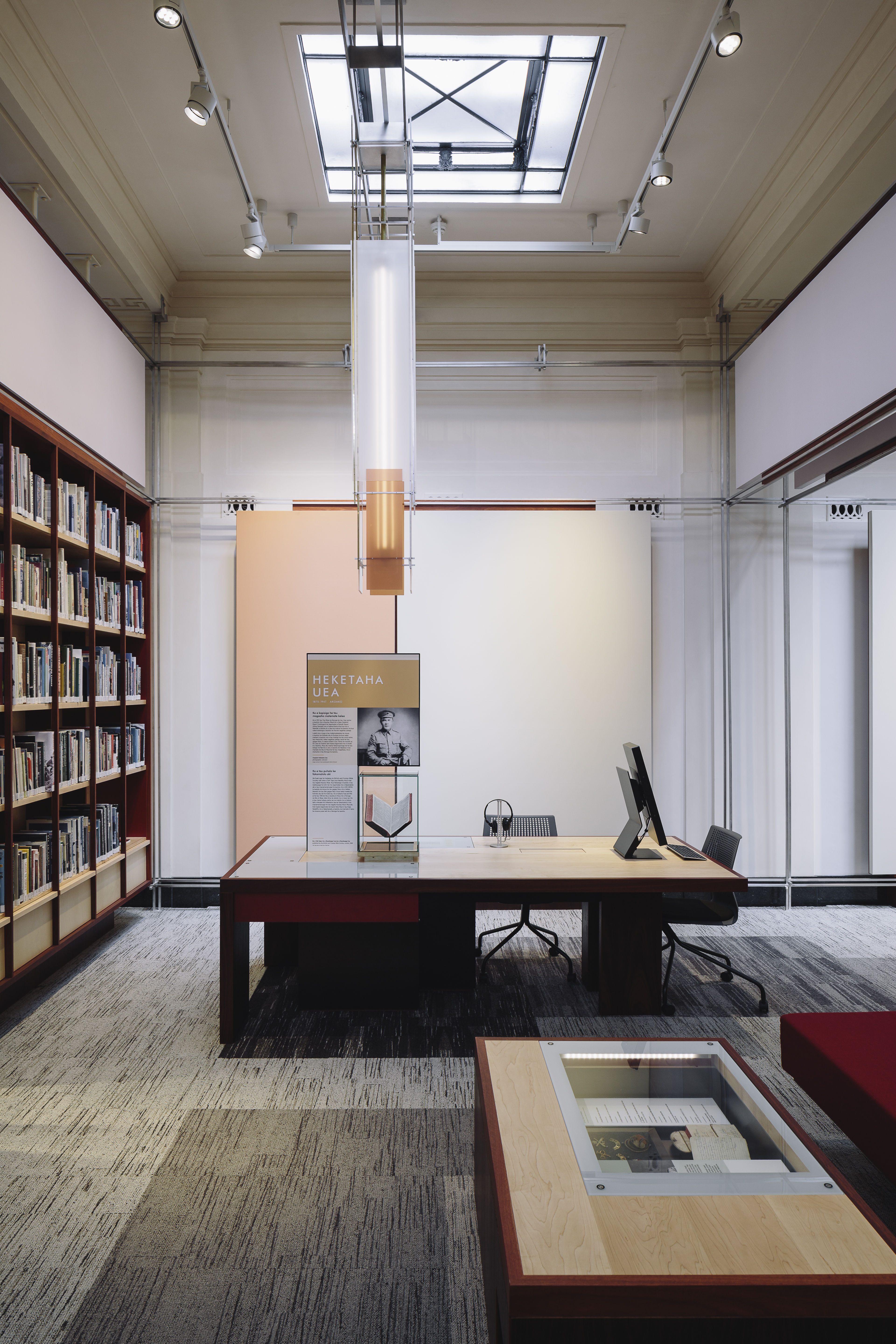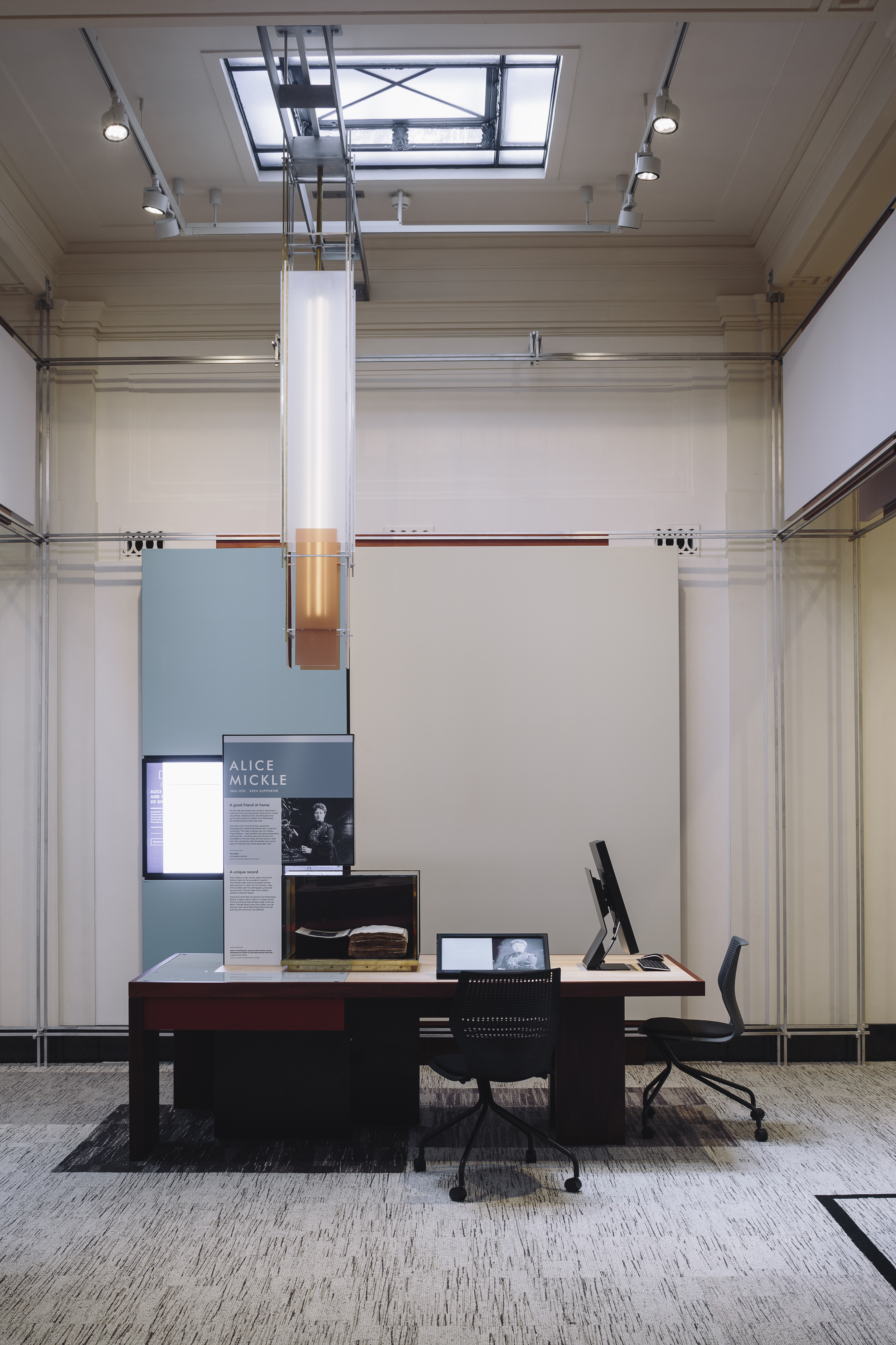 This is an understated yet intensely-resolved interior fitout to a major public building, which looks and feels contemporary yet fits so well that it seems it could have been in place for many years. The design builds on the spirit of the display, rather than using thematic or referential devices. Furniture, display and lighting configurations blur softly together as complete compositions. The overall sense is one of intimacy, an intention of the exhibition where the users of this space connect with those who lost their lives at war as individuals, rather than anonymous ‘others’.