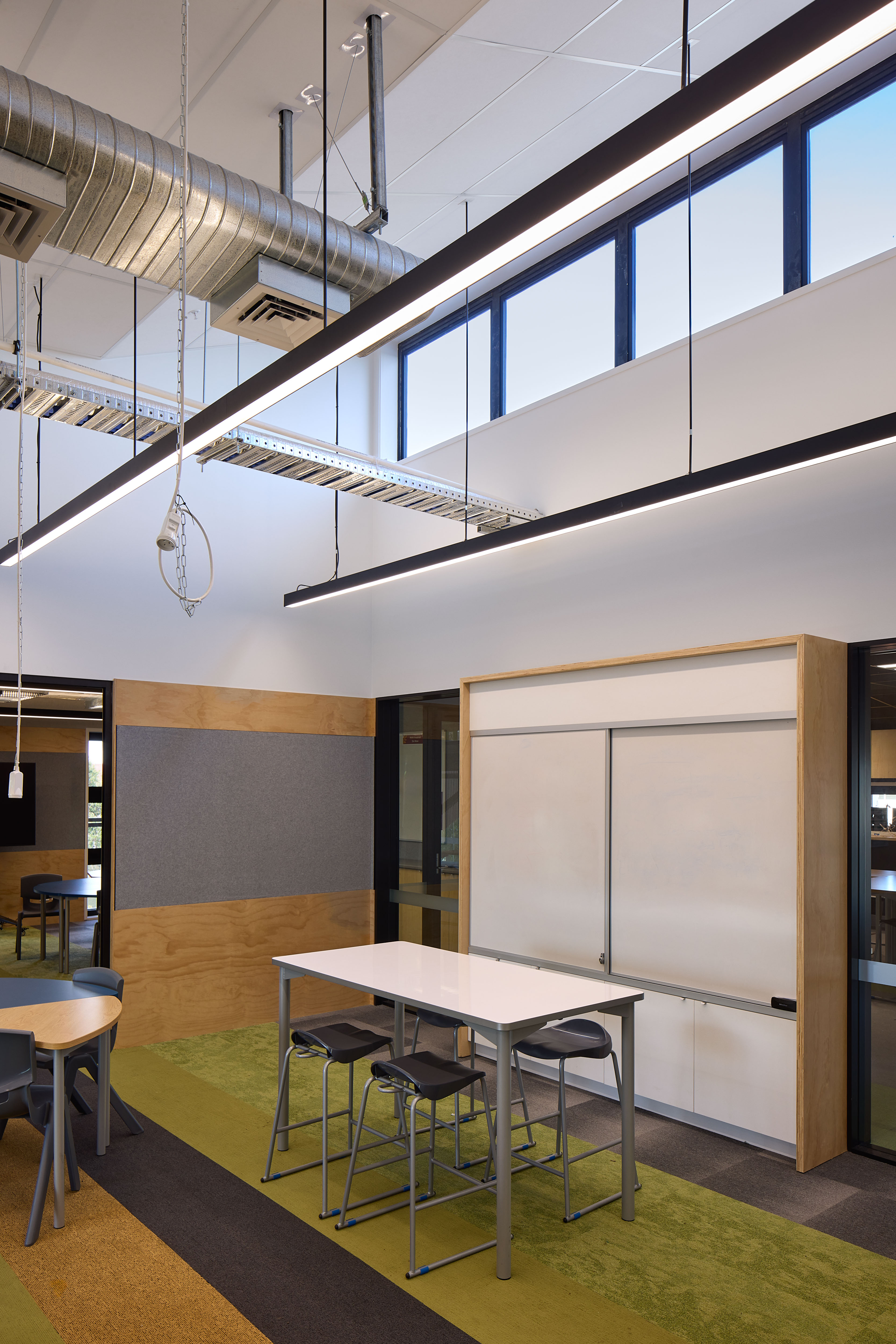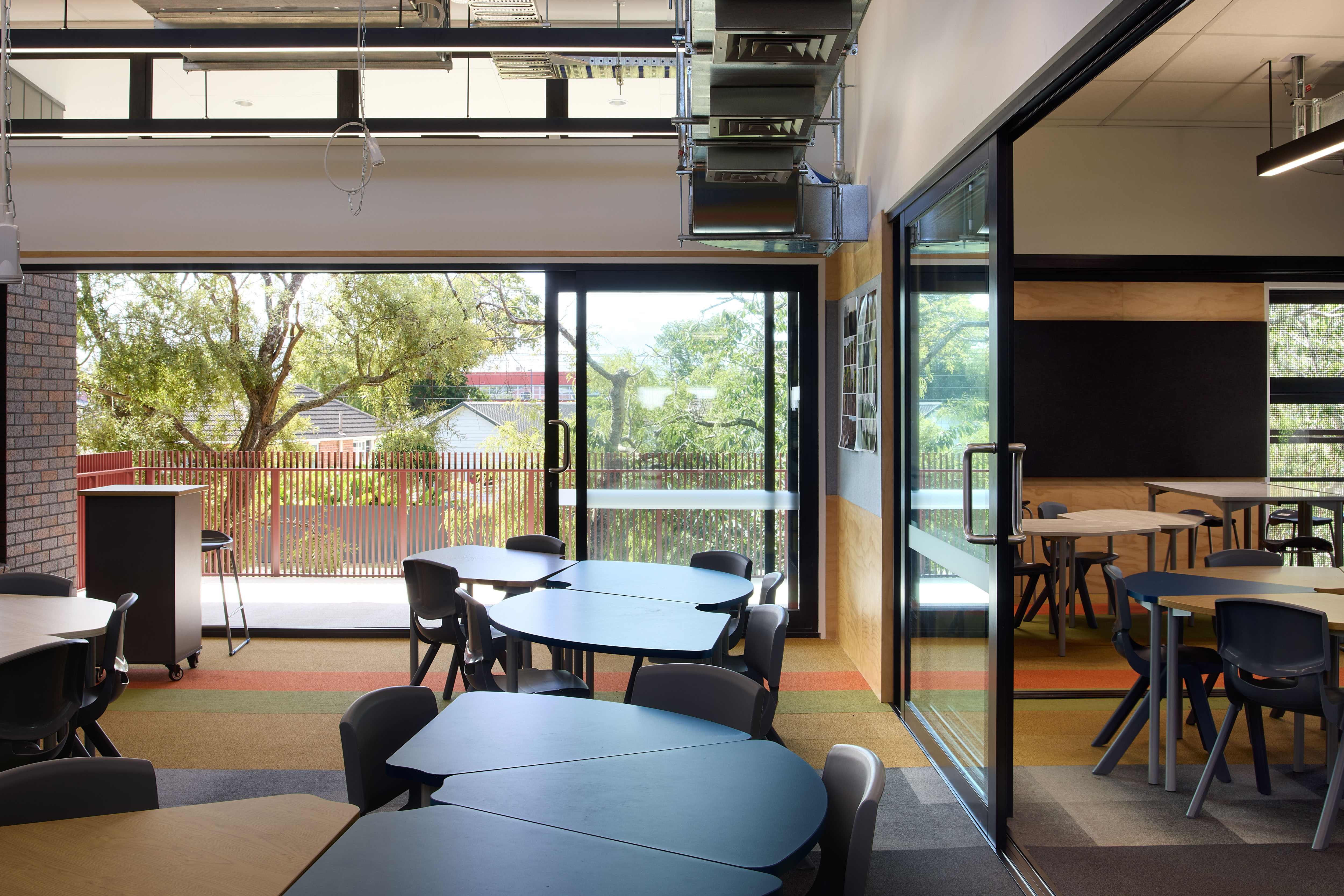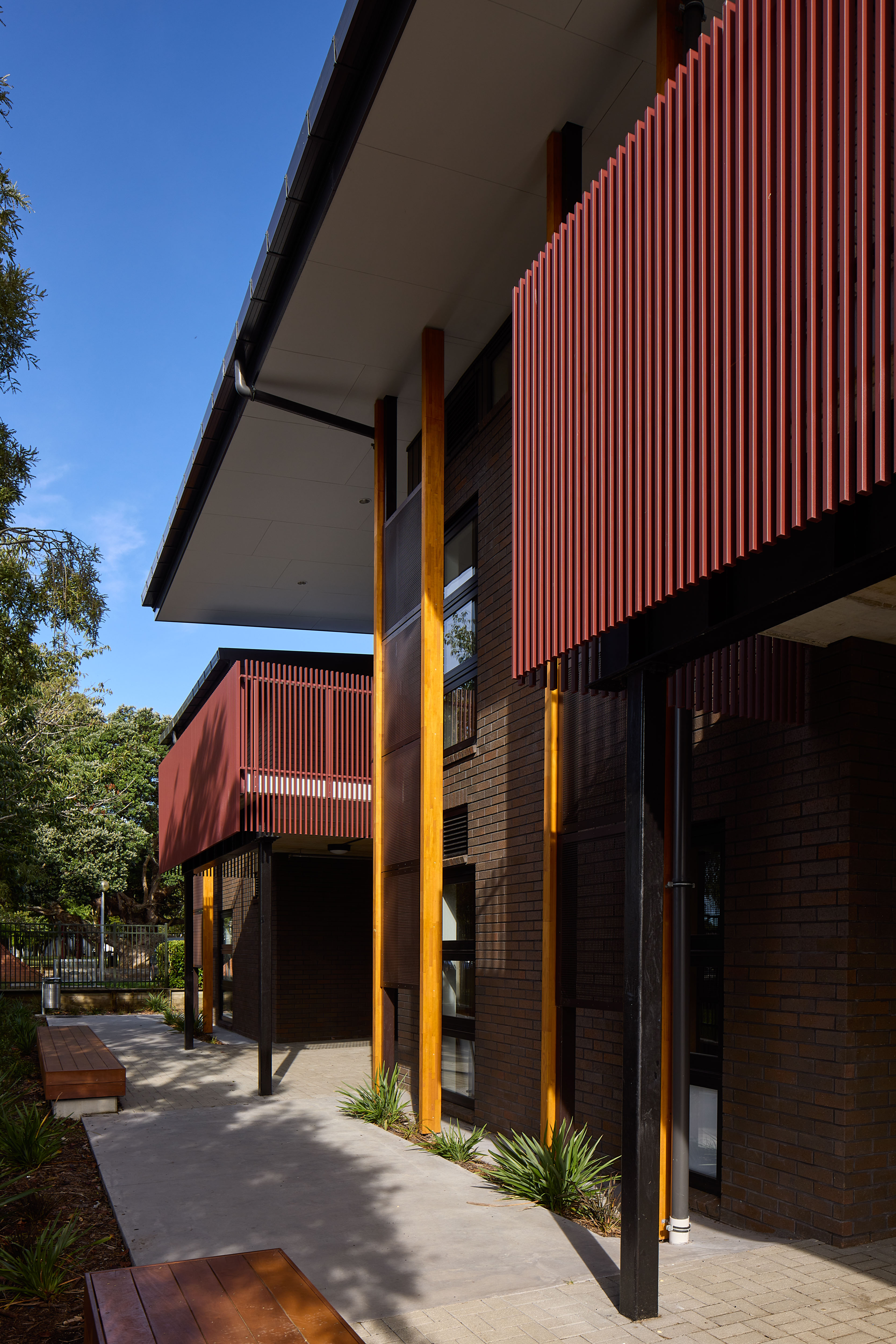 This two-storey school is a place that through its architecture demonstrates care and respect for the students and staff housed within. The flexibility of space, which allows for both separated teaching spaces and areas open to each other and the exterior, provides for a wide variety of pedagogical practices as well as generous transparency throughout. The materials and colours give a sense of quality, durability and vibrancy to the building and create a stimulating and enjoyable place to be and learn. The use of external sun screening and references to cultural narratives, such as the Pātaka on the front façade, lift the project beyond a simple prosaic school project and make it a place that is inspiring to be in and a learning tool.