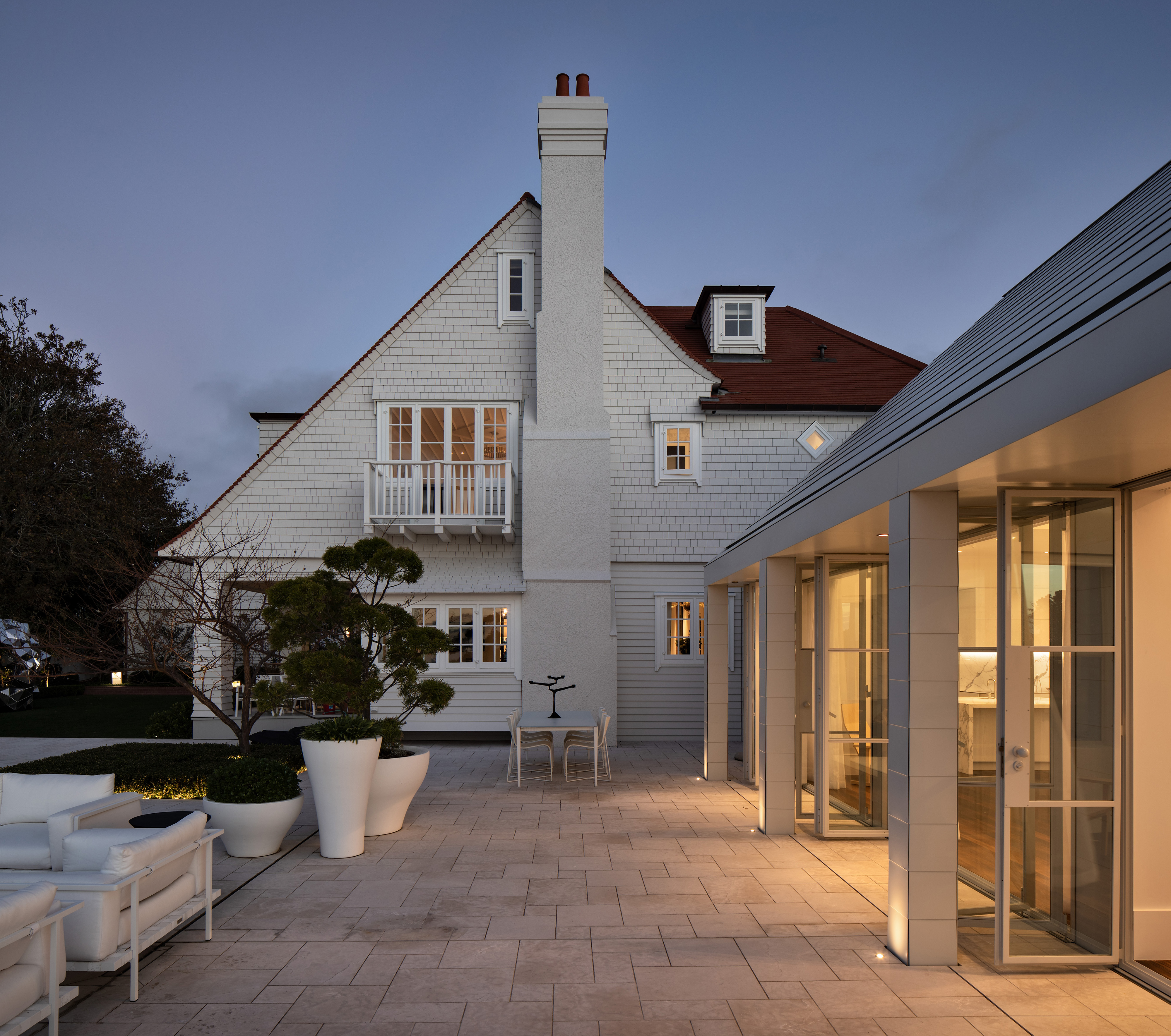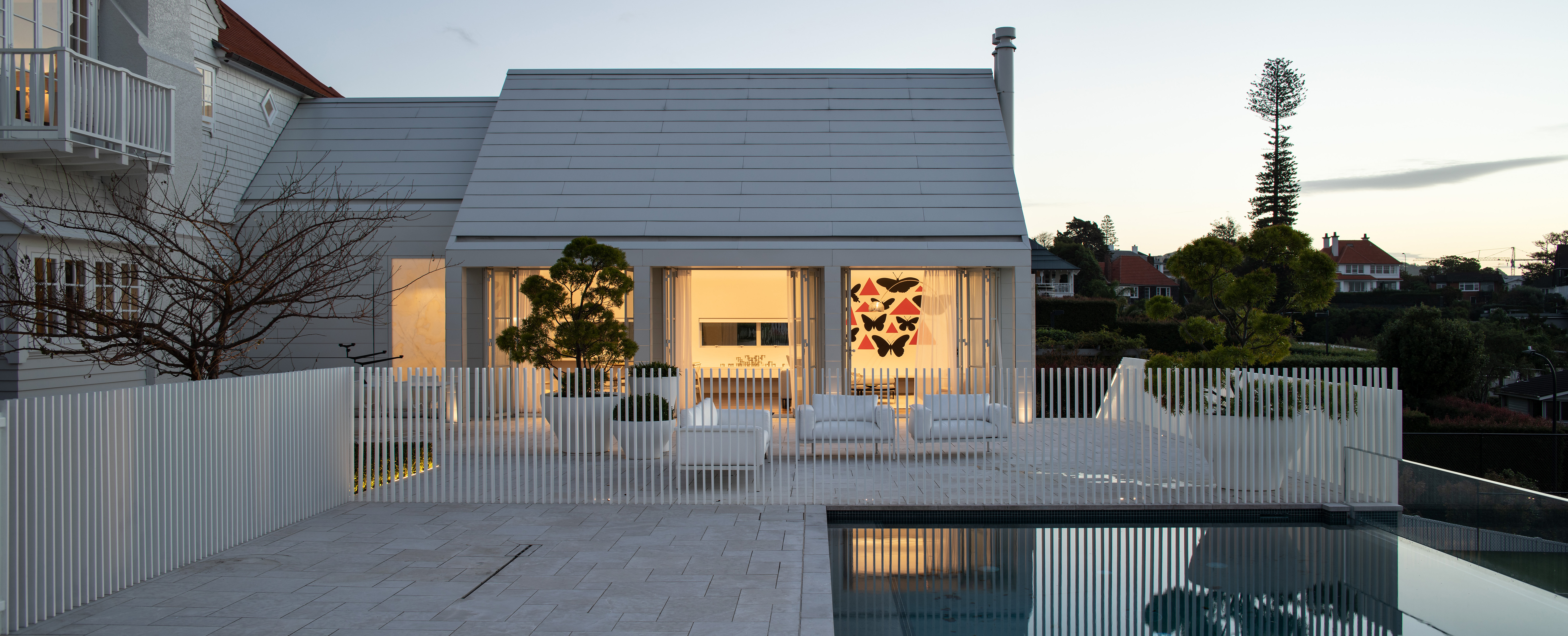 There are four elements in play in this magnificent restoration and expansion of a 1910s Arts and Crafts home. One is the outdoors, featuring a beautiful and very busily planted garden, large lawn, extensive patio with pool and, on the lower level, a tennis court. One is the original house, which Crosson Architects have assiduously restored, making the most of a gorgeous five-window bay and every other original feature worth keeping. A third is the new extension, which does not copy the original but borrows its form and scale to provide both counterpoint and homage. The new work honours and also reimagines the old. Family living and a commercially scaled Chinese kitchen, fully set to capture the breath of the wok, are the key features of the new extensions, but there is also garaging, cellar, gym and various service areas. And the fourth element, giving a thrilling bounce to the already formidable architectural achievements, is the owners’ own art collection. A gleaming abstract Gregor Kregar sculpture sits on the lawn facing the house; inside, a superbly curated selection of work by many of our best artists provides pleasure on every wall. This is a luxury refit, but money doesn’t buy taste. Client and architect alike had to supply that.