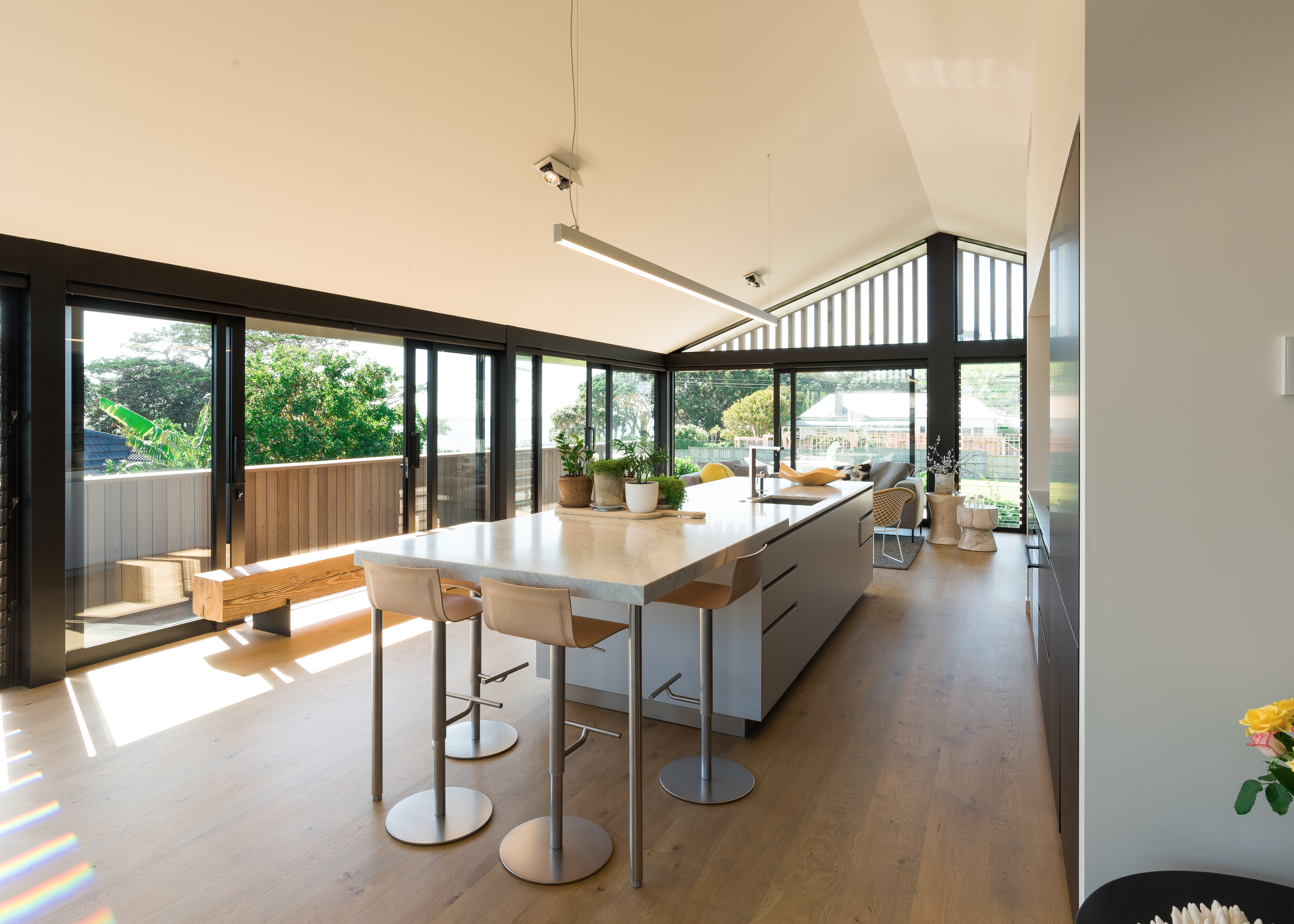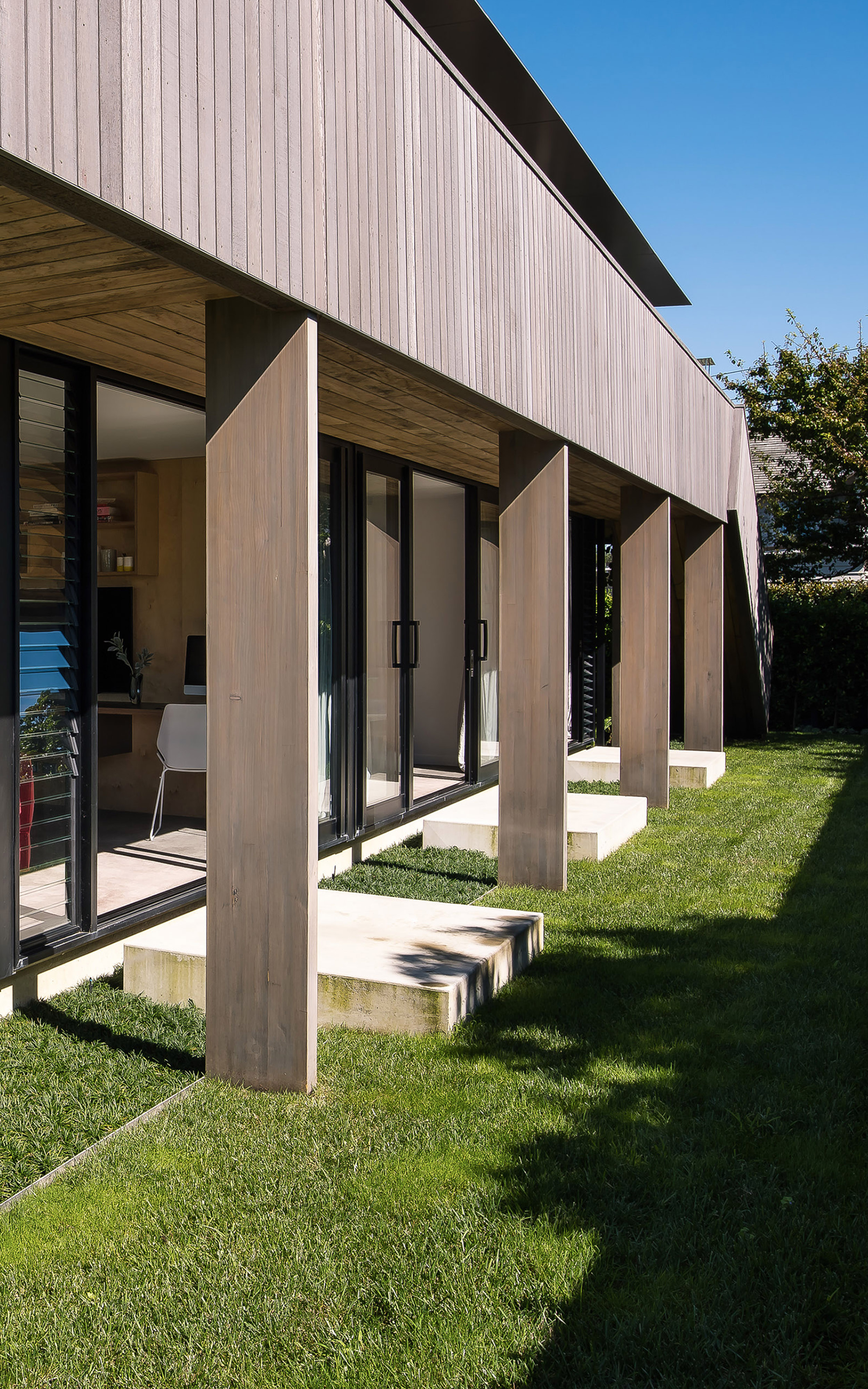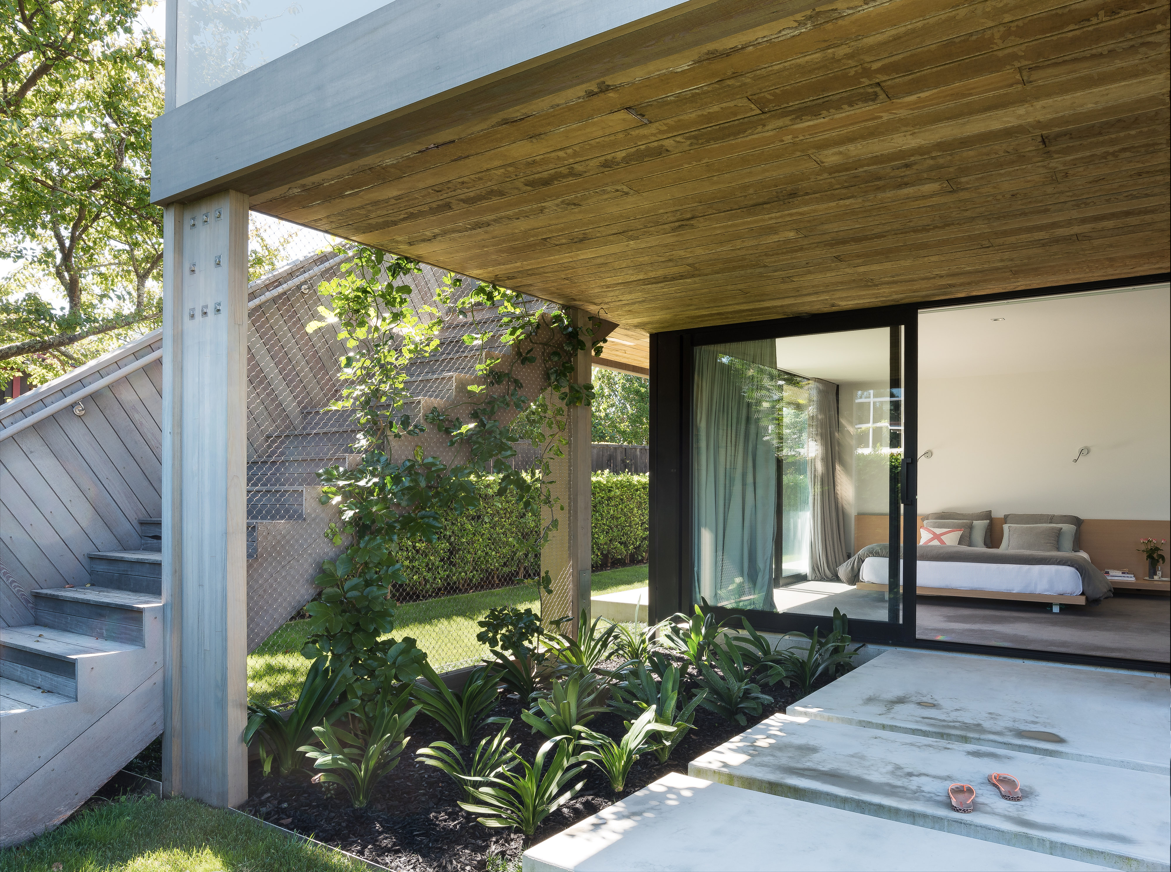 This project, whose success required overcoming onerous Council requirements, is a quiet and understated modern dwelling overlooking a reserve. With its beachside informality, warm timber materiality and exceptional detailing it is an excellent complement to the surroundings.