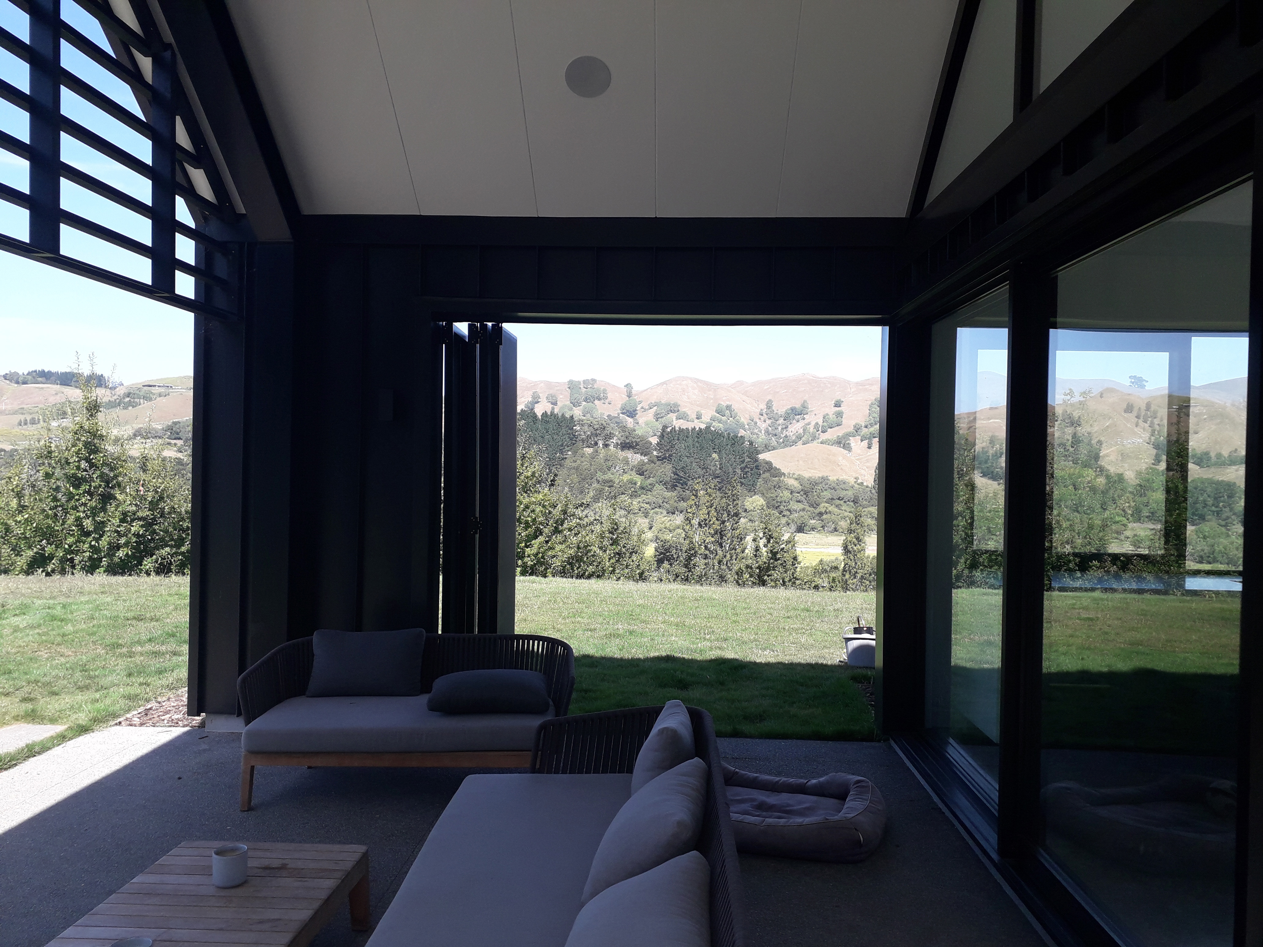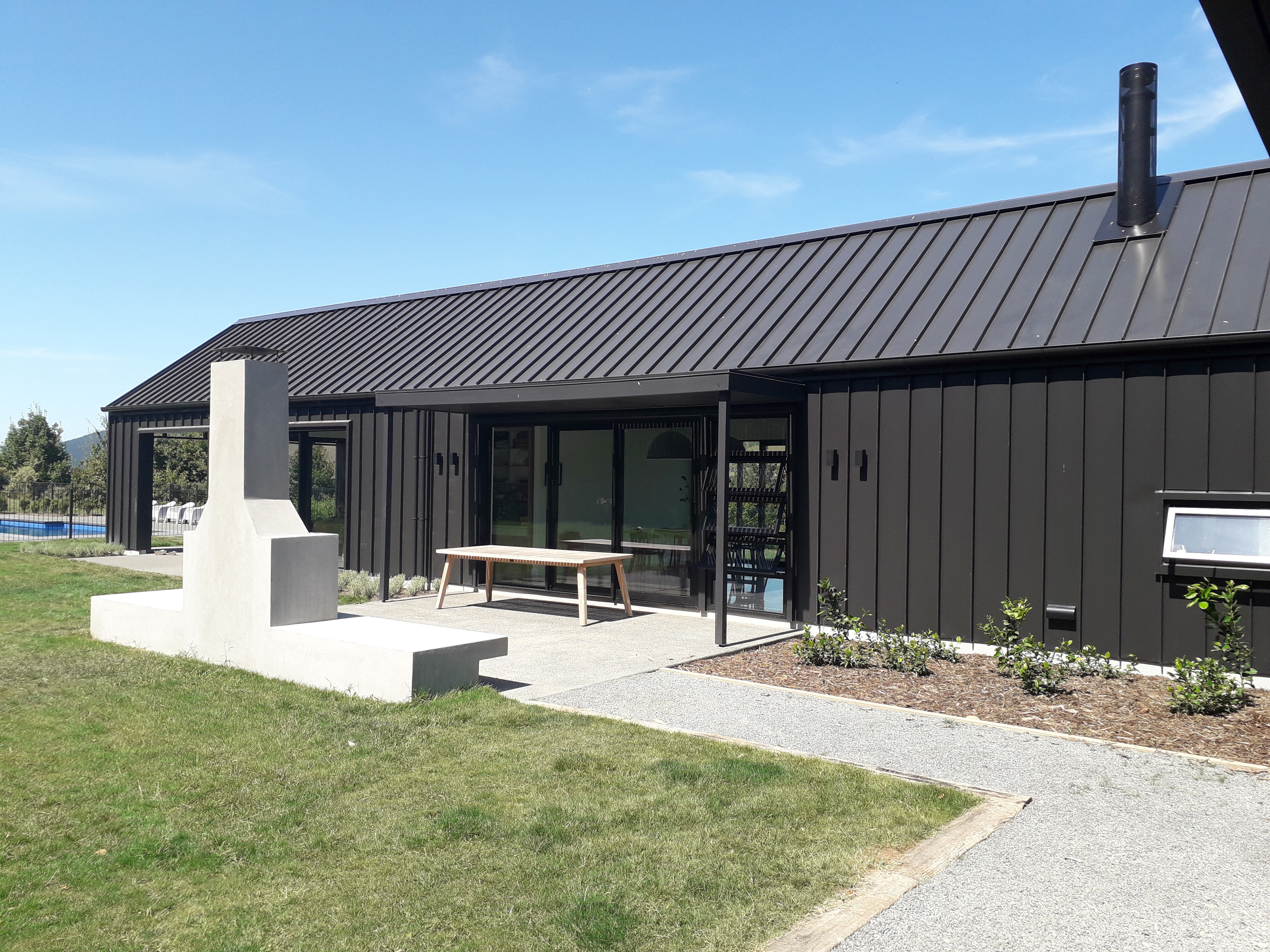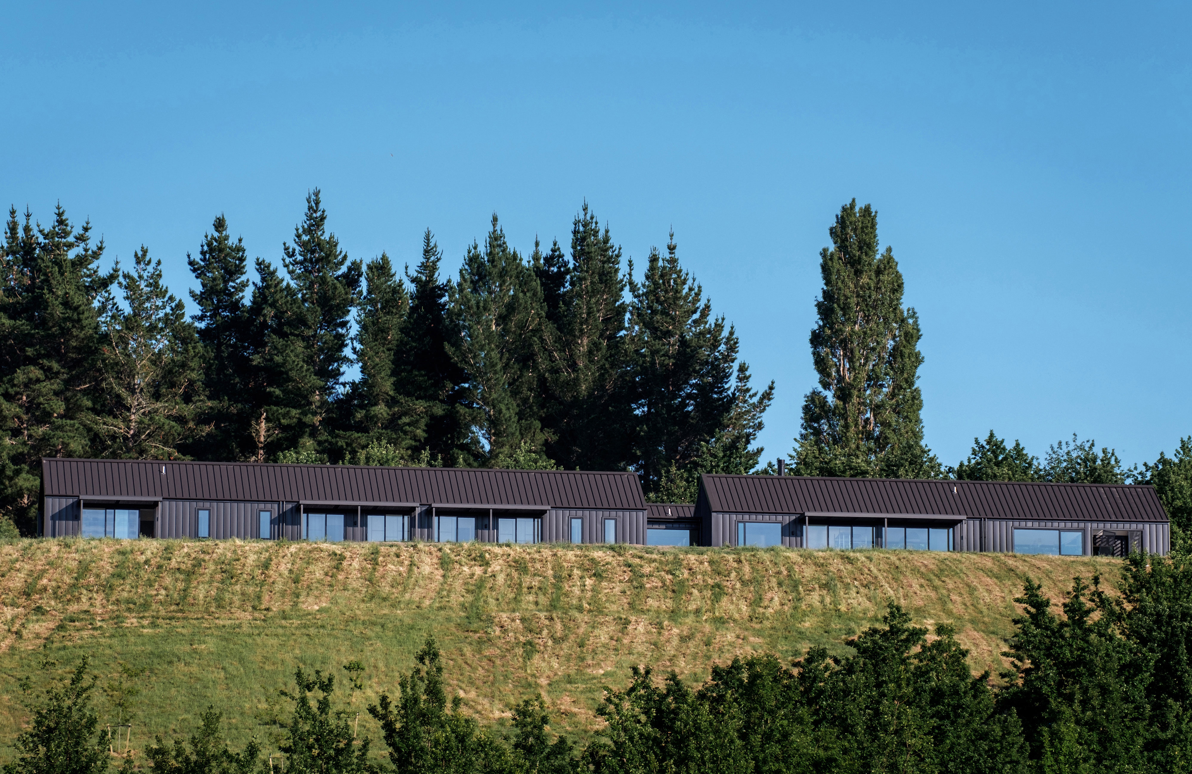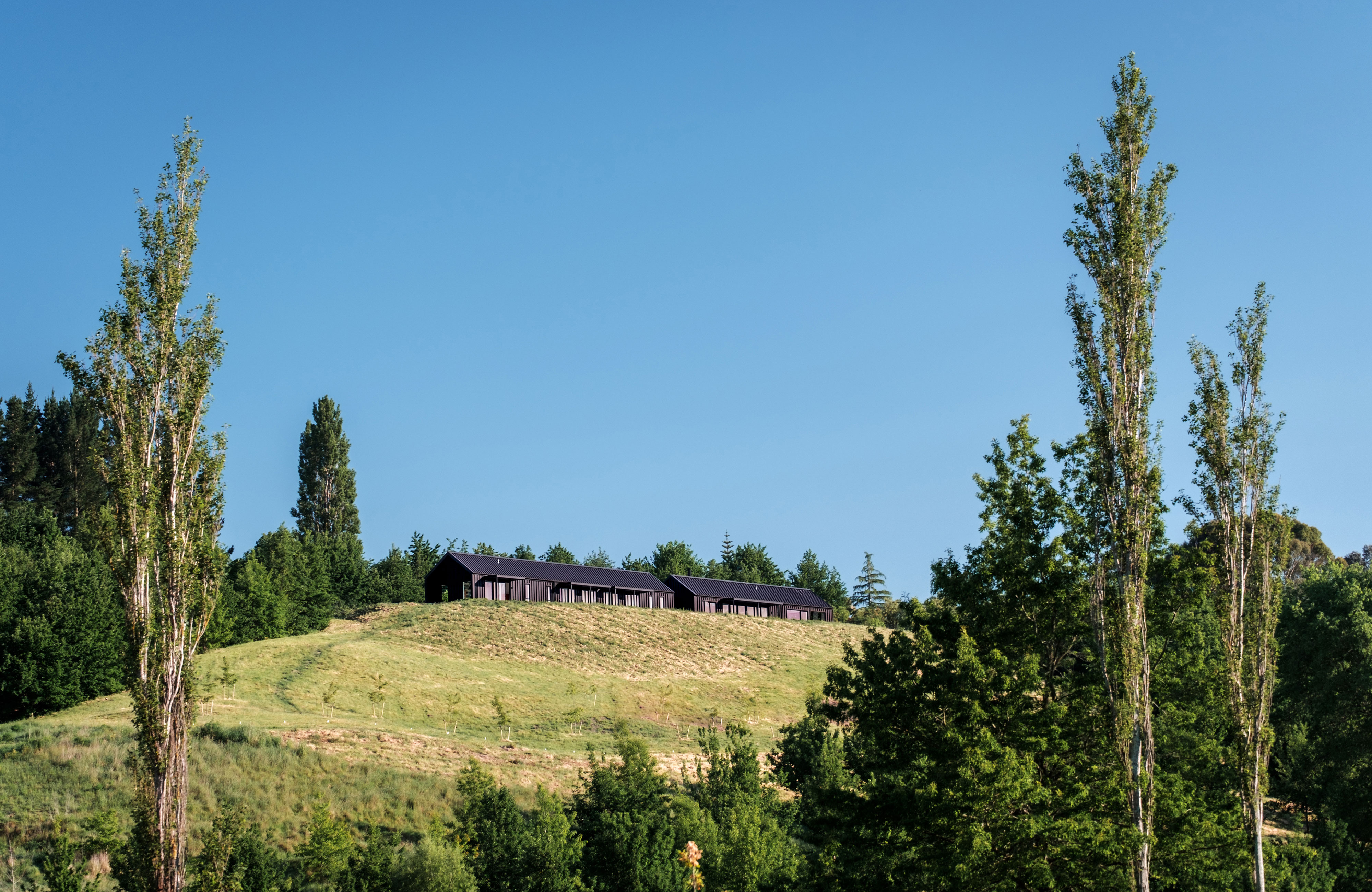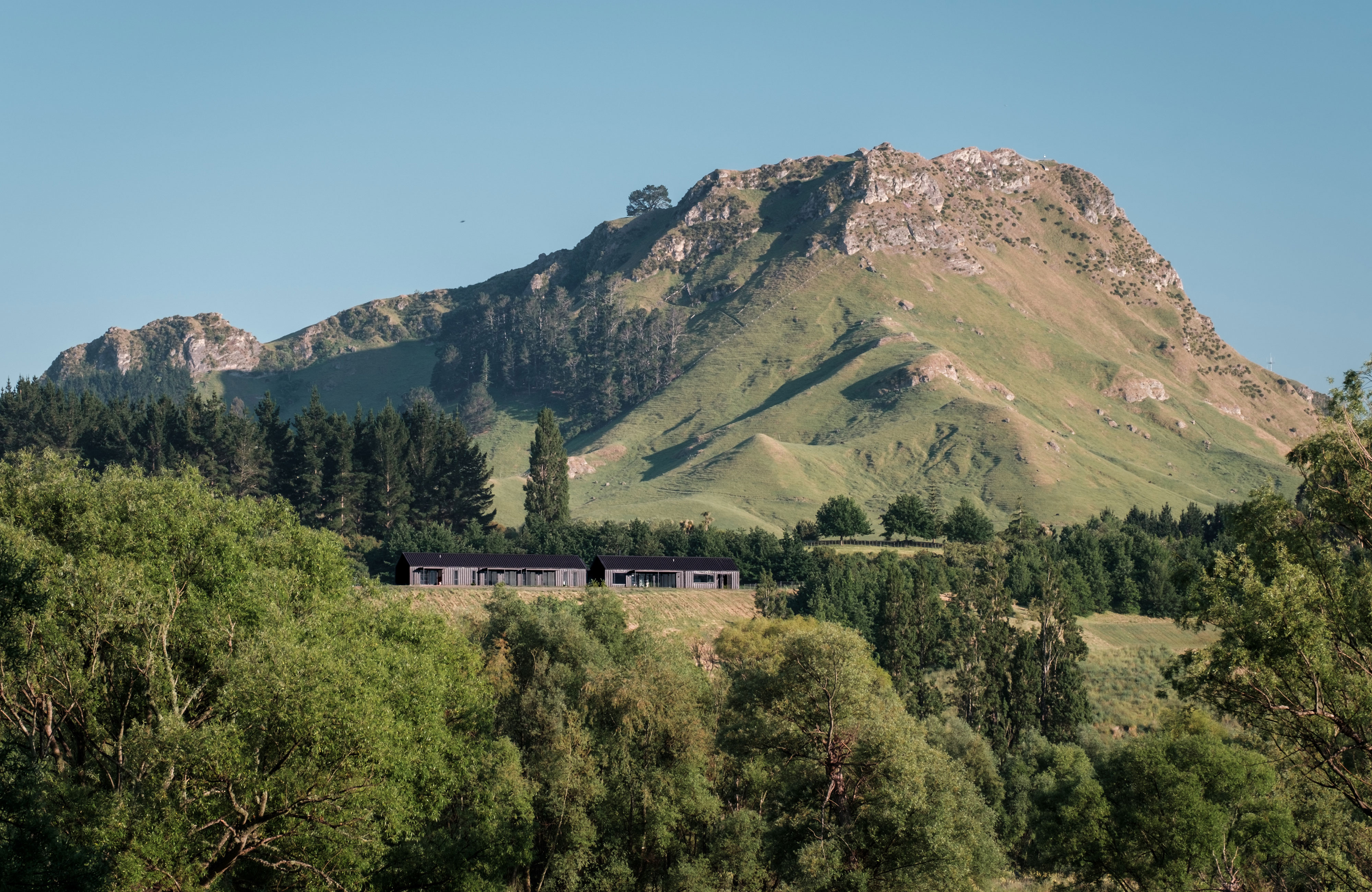 This simple-yet-elegant house comprised of dark gabled forms has been rigorously planned and meticulously built. Sited on a plateau under Te Mata Peak, the house reads from a distance as a vernacular form in a rural landscape. Inside, however, the architect has clearly considered – and attended to – all the elements required for well-ordered family life, no matter what the season, with an outdoor room off the kitchen, a courtyard garden connected to the entry and a library bay window providing delightful interludes within the planning.