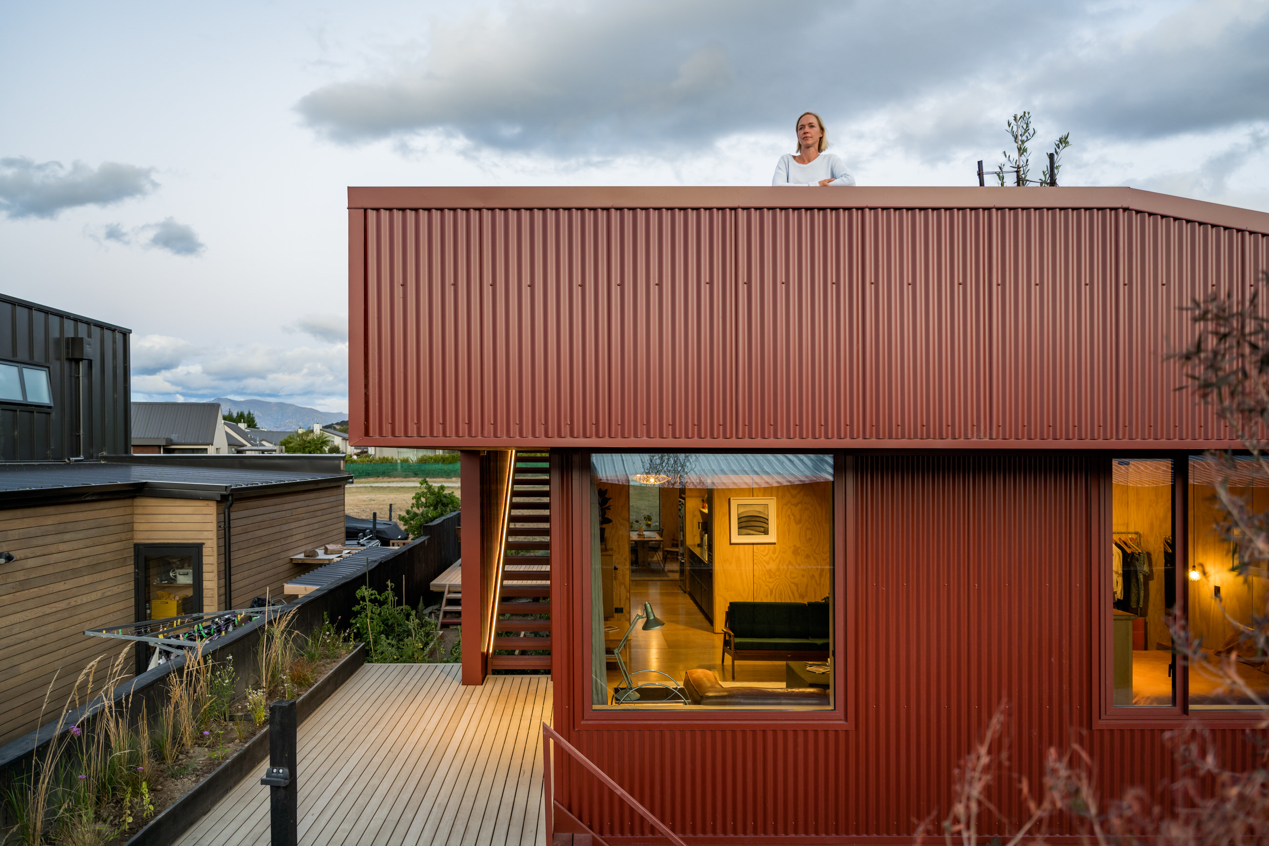 Cleverly formed for the movements of a young family on a tight site and budget, this home is an exercise in exceptionally well considered spatial planning and dynamic design. Not one square metre is wasted here, with pocketed play areas, functional spaces, and surprisingly spacious bedrooms. Most notably, a roof deck doubles the house’s usable space and provides unexpected lake views over the neighbouring roofs. Folded from deep red corrugated steel, the form takes on a playful aesthetic that is in keeping with the creativity inherent in its design.