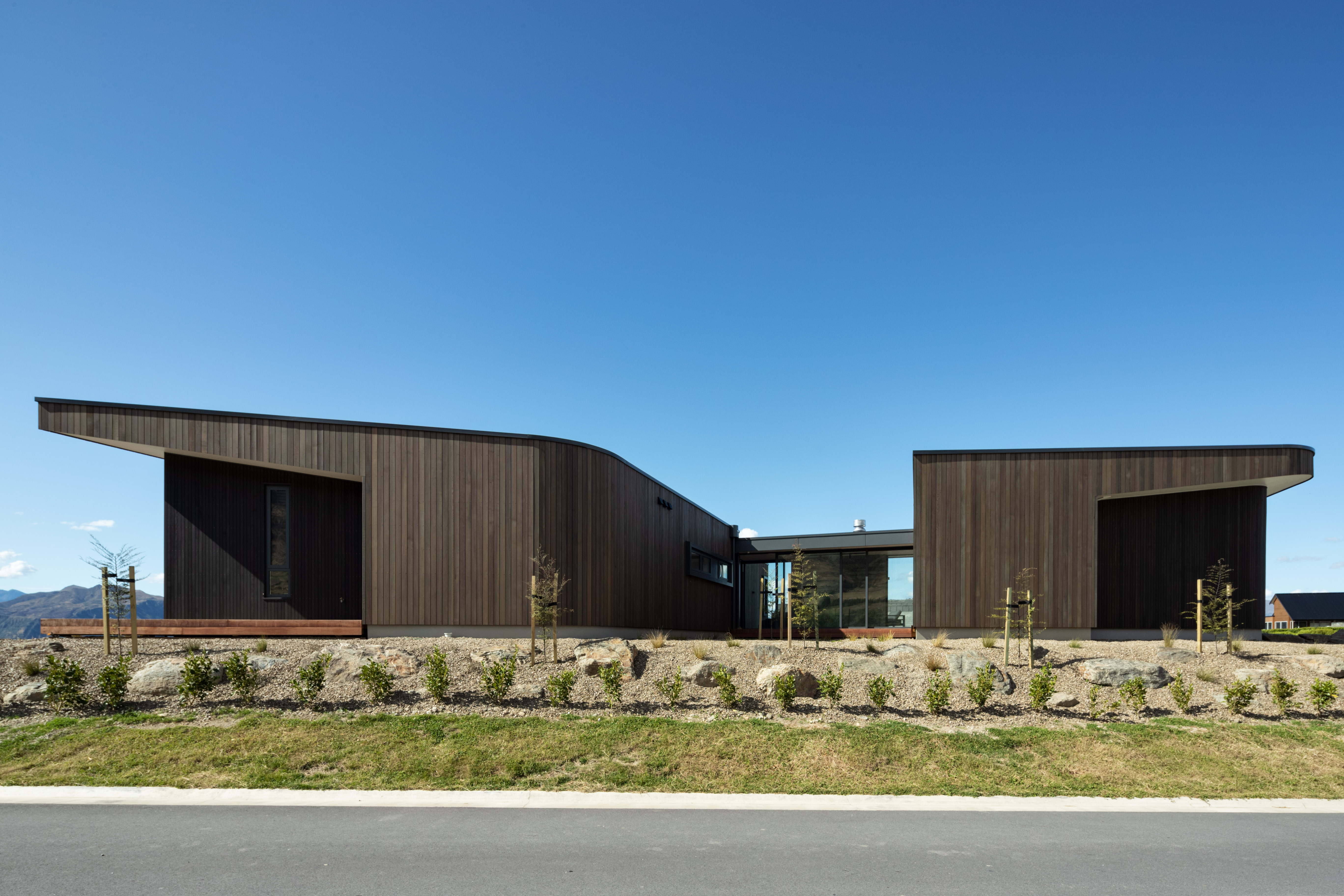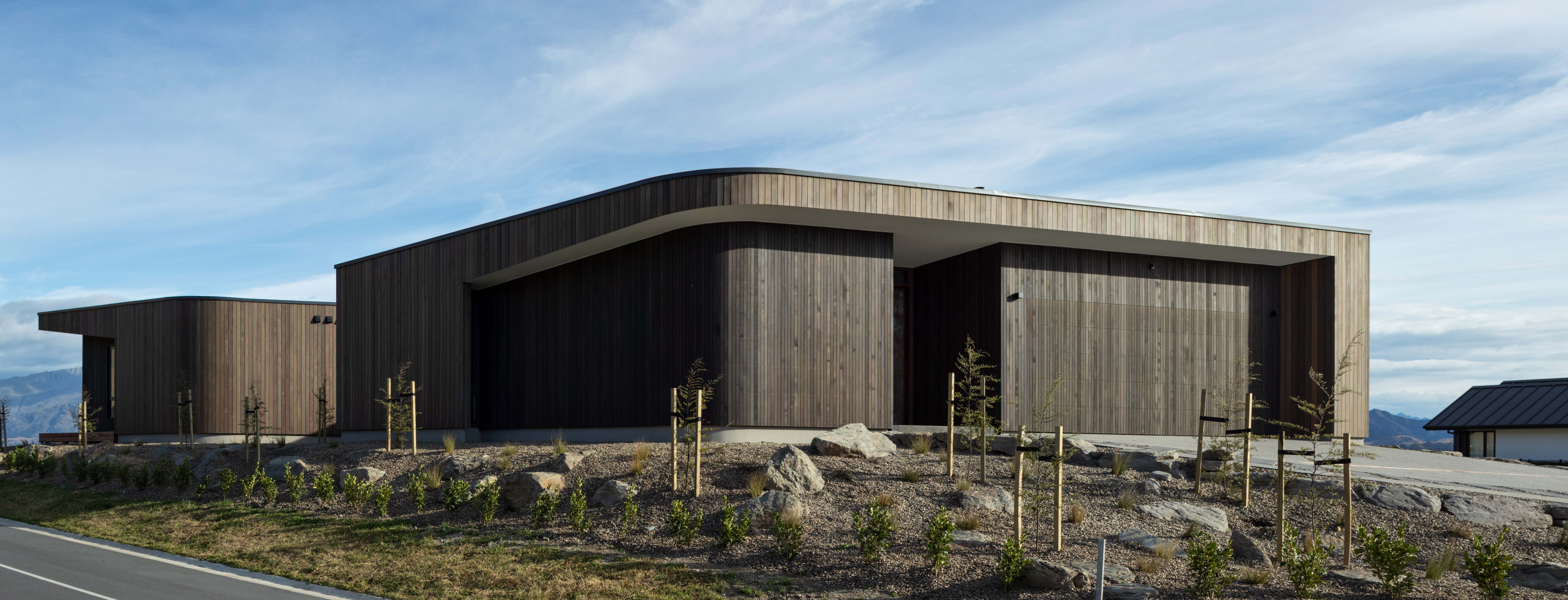 This house is an expertly crafted work that stands out as something very special. The disciplined use of materials enhances the curves of the built form, and the treatment of detailing is masterful.