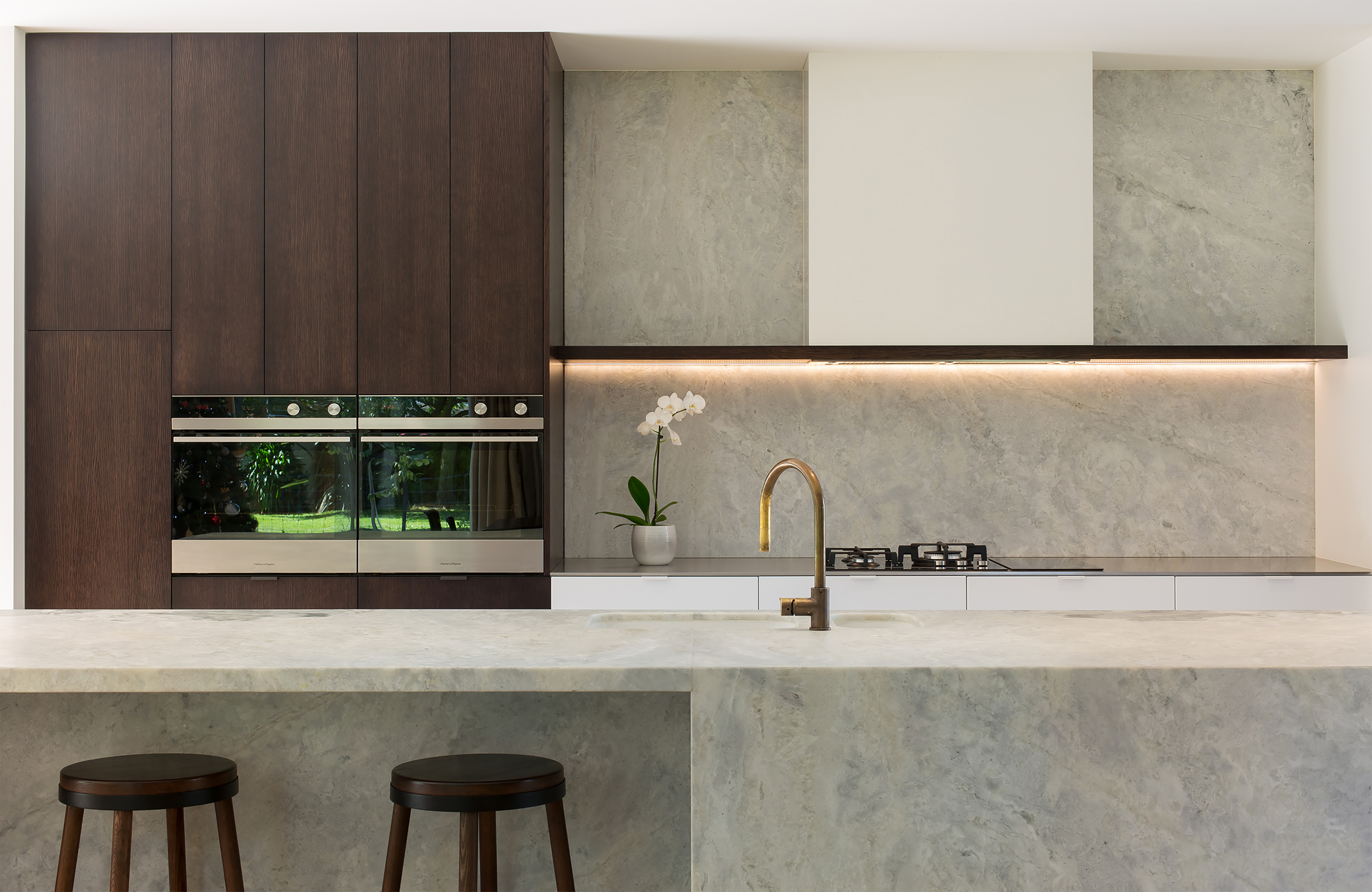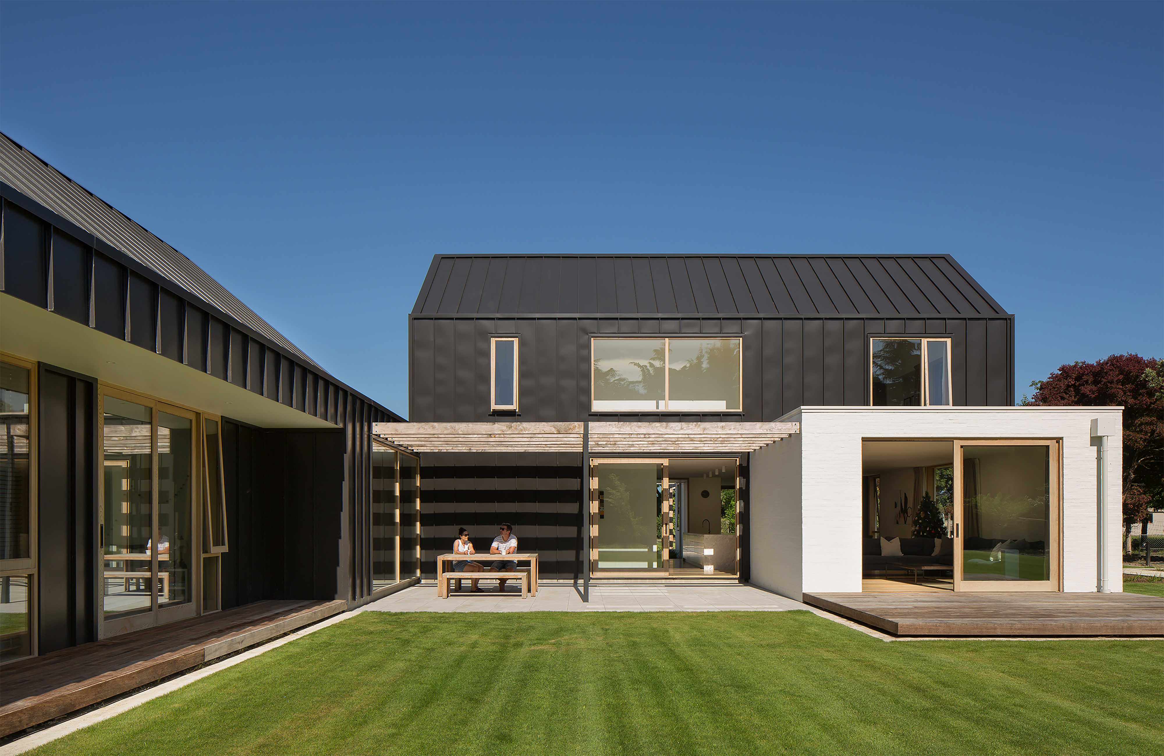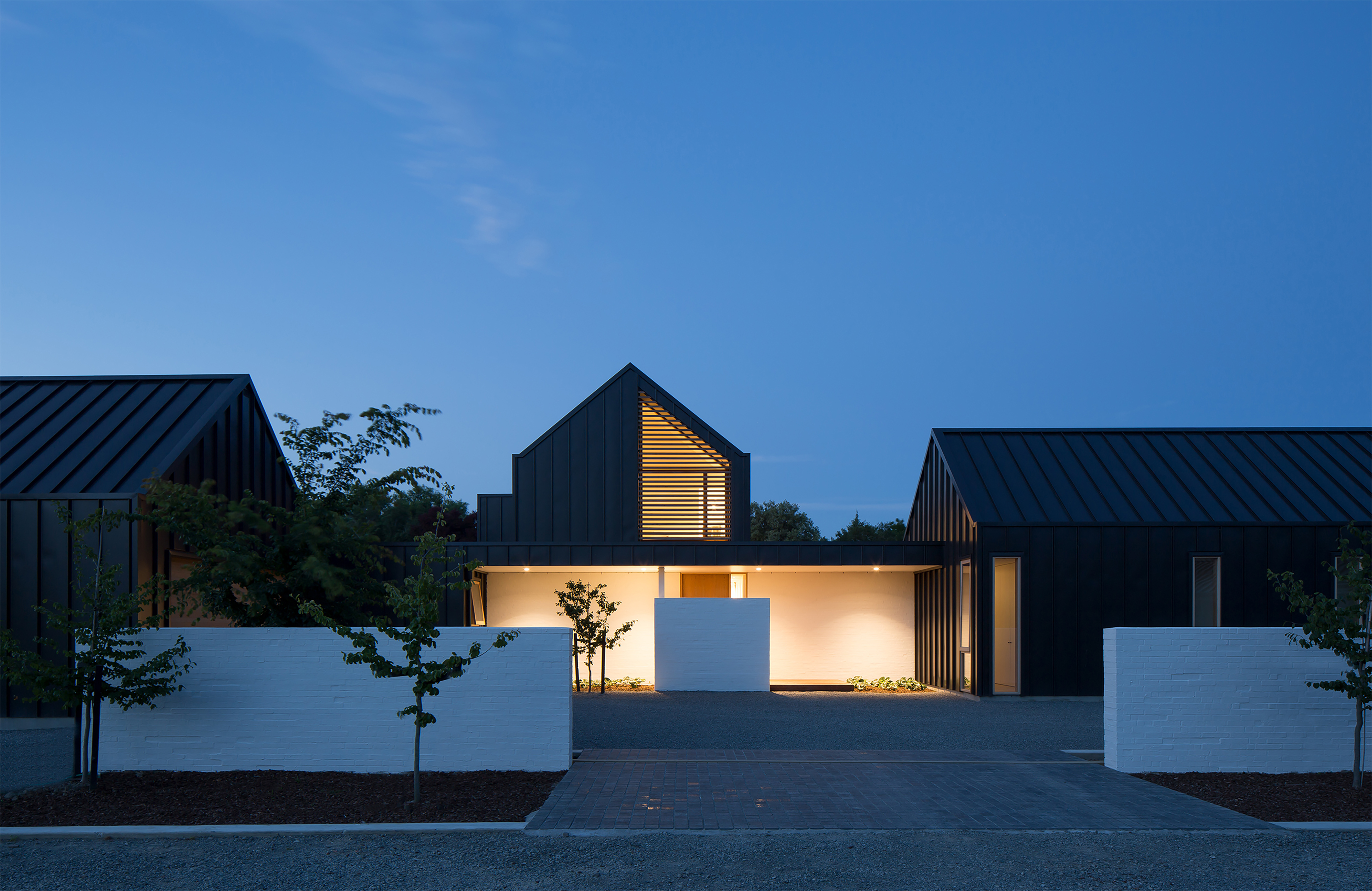With gabled pavilions – stitched together or held aloft by white, bagged-brick walls – this Marlborough house is an abstraction of the rural vernacular. It is a large house, but adroit planning gestures and careful orientation of forms has resulted in spaces of appropriate scale and a variety of areas in which natural light and shade is carefully controlled. Inside and out, the well-composed palette of natural timber and stone underscores the calm and tranquil atmosphere.