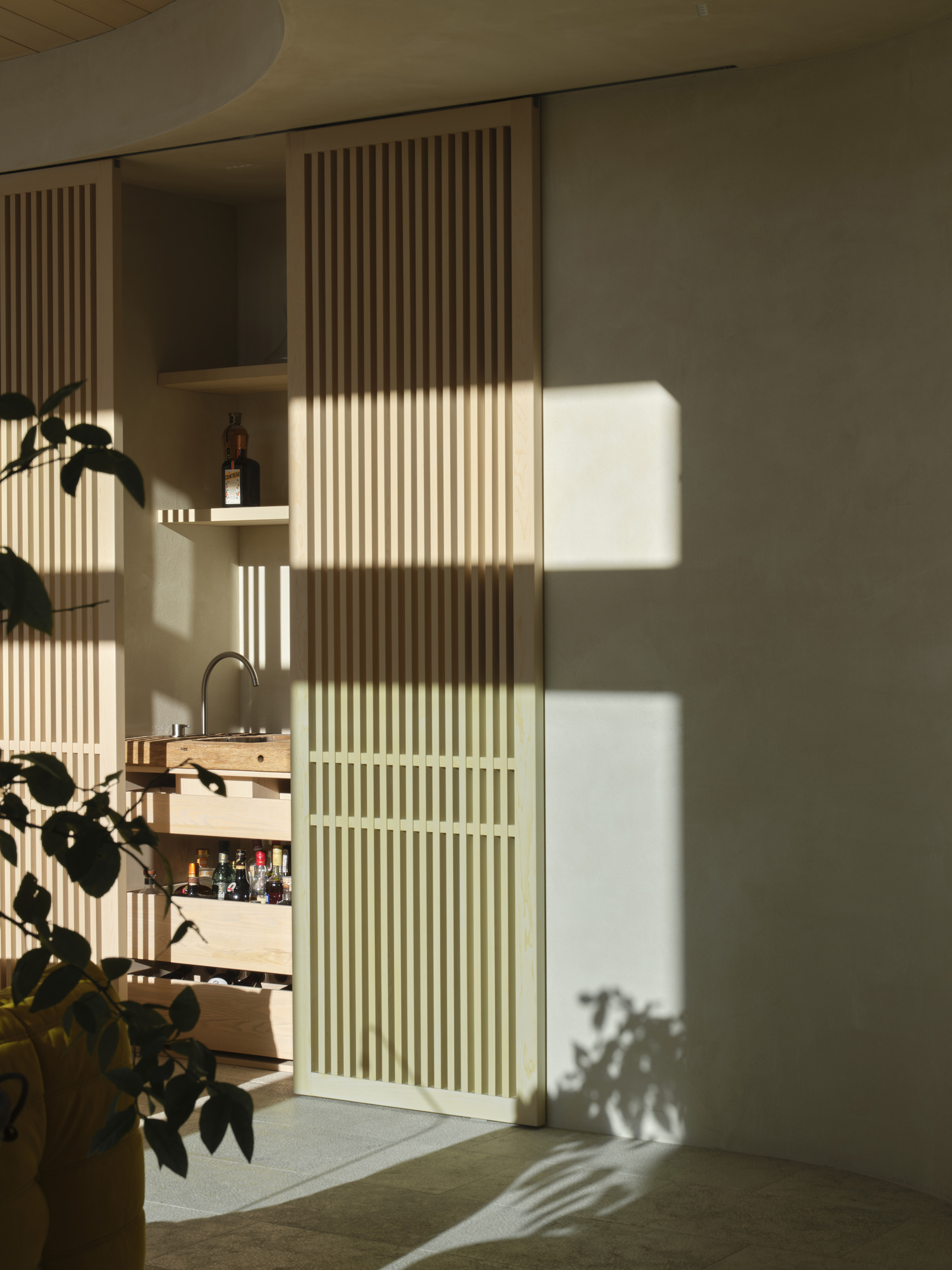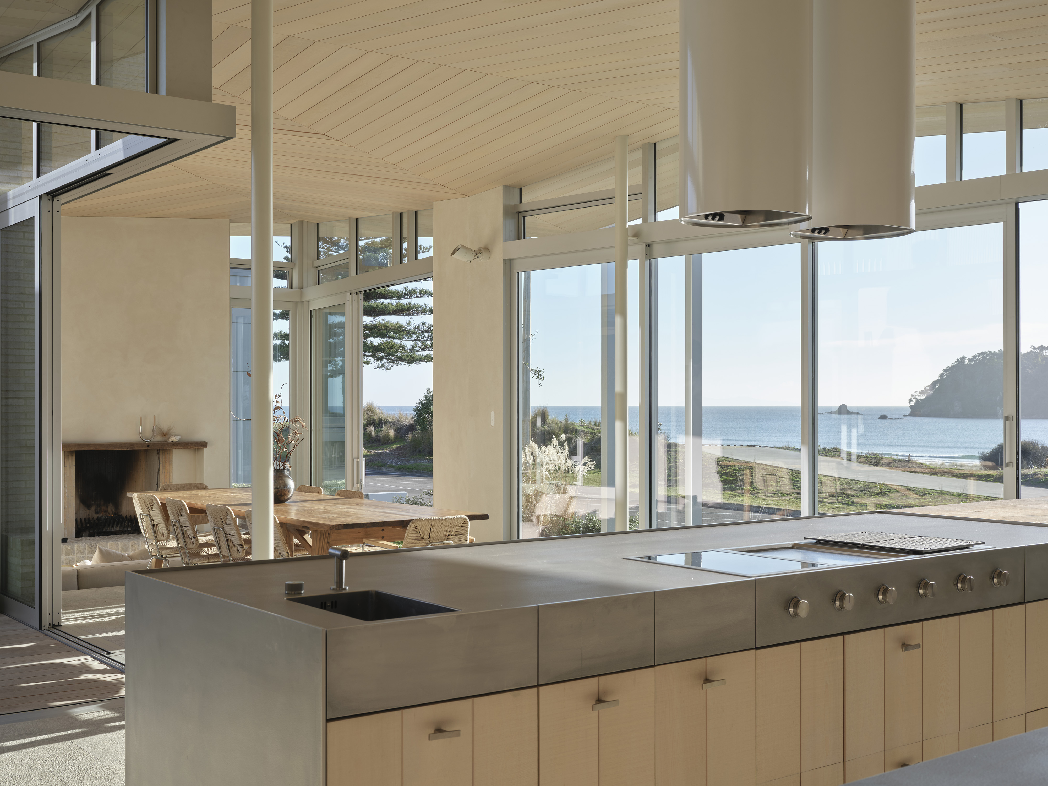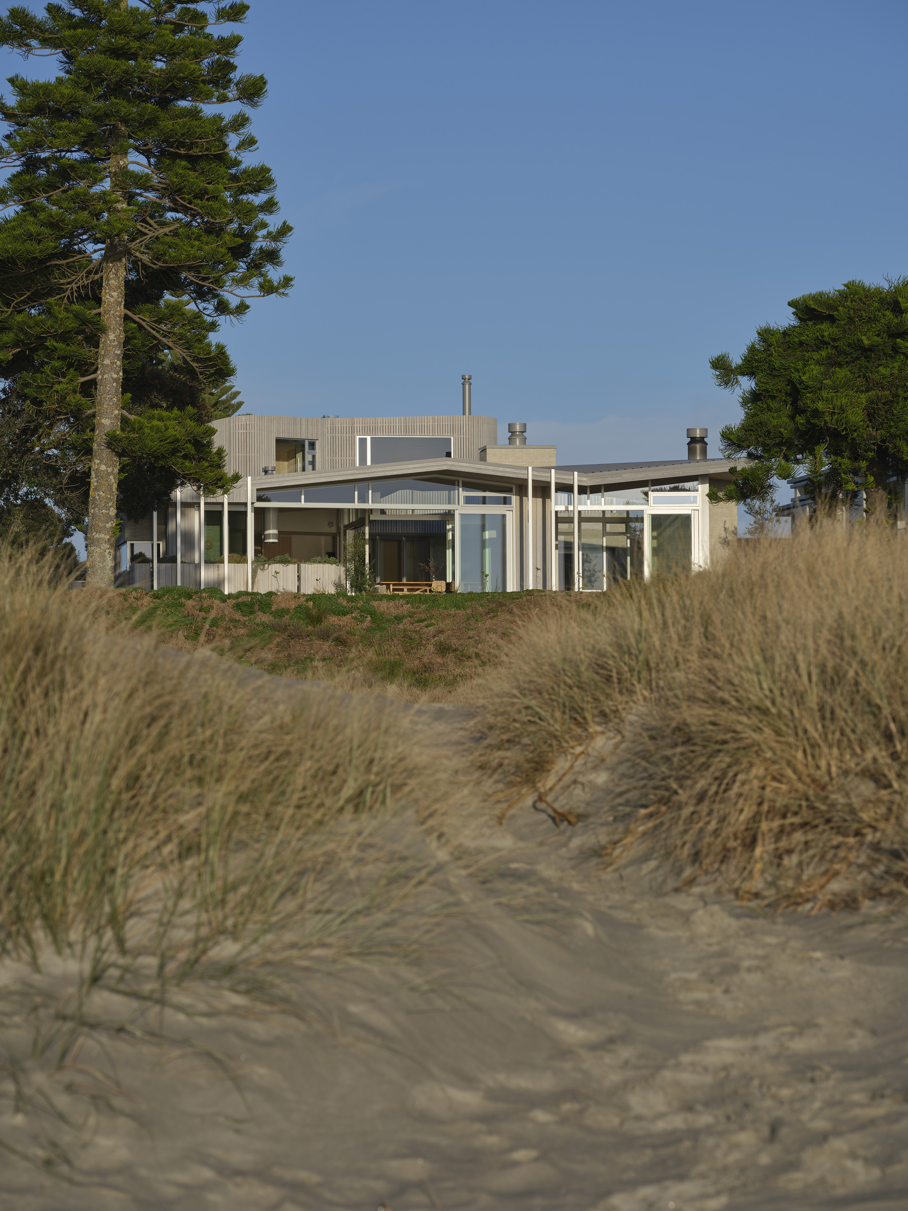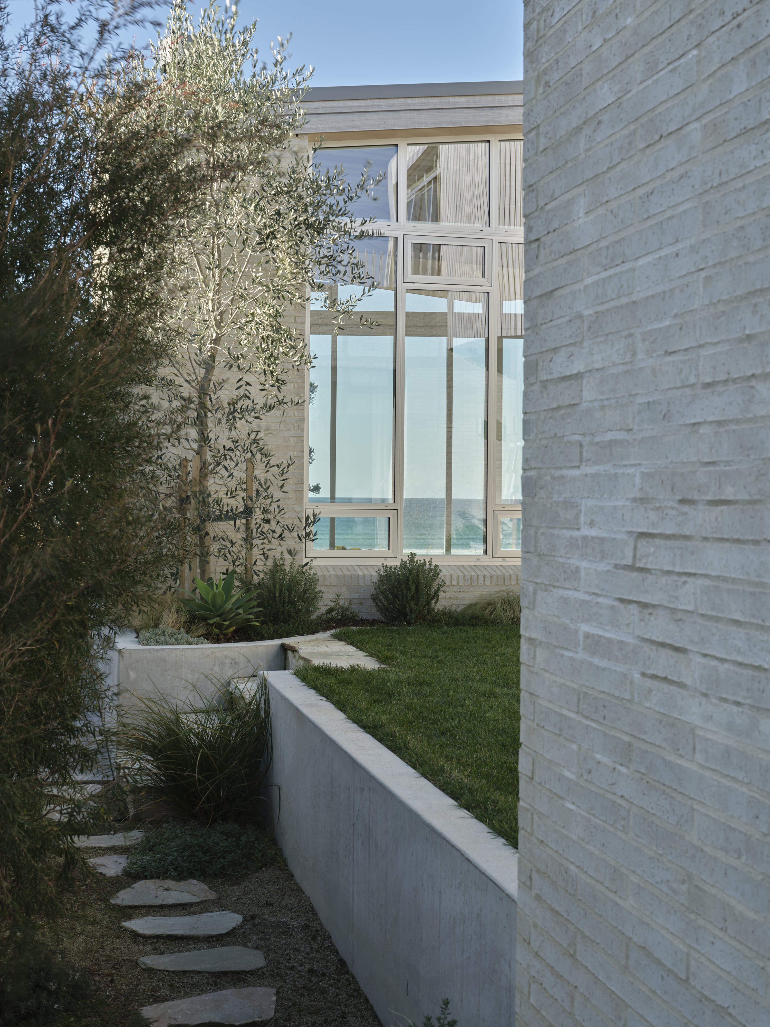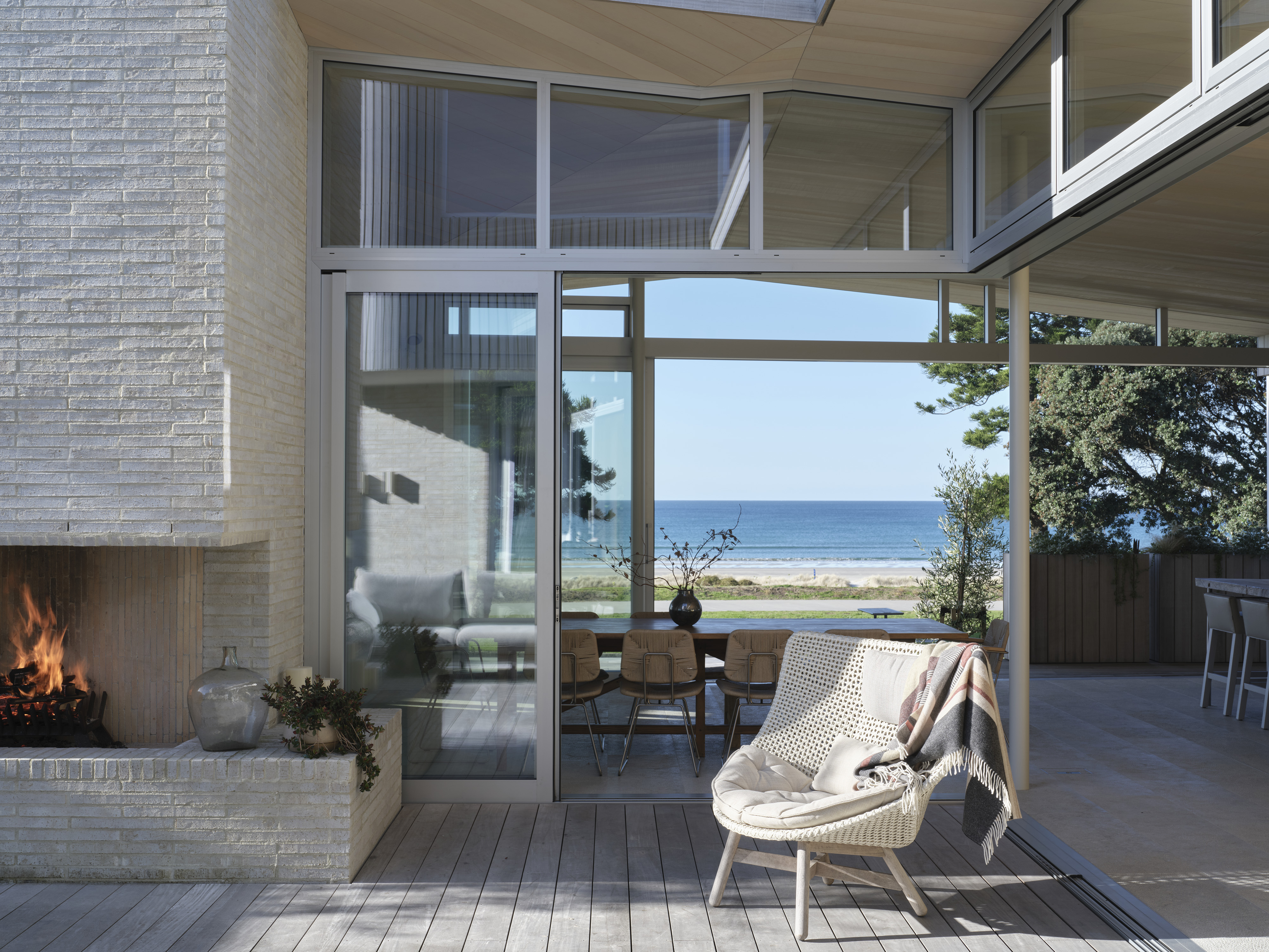 This meticulously designed coastal property is elegantly situated on a beach sand dune. The terraced road frontage and strategic planting help minimise its scale, while a single garage door offers access to utility services. The exterior’s soft, weathered materials of timber and brick seamlessly transition indoors, enhancing the natural coastal ambience. A carefully considered interior layout maximises coastal views while ensuring privacy. The clever design of the road-facing façade adds a degree of obscurity. A central, sheltered courtyard integrates smoothly with the living spaces. An additional upper floor accommodation wing and lift access ensure this residence will be cherished for many years to come.