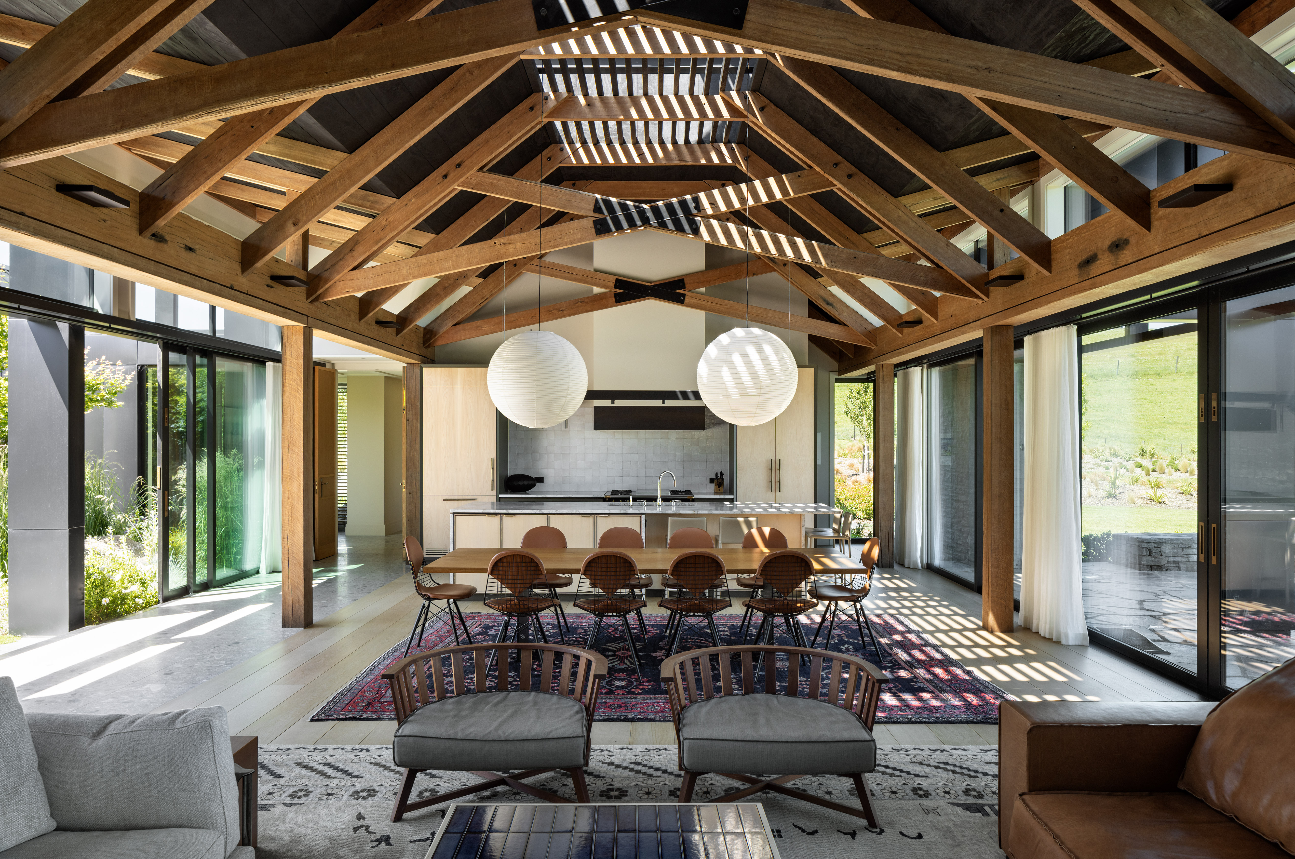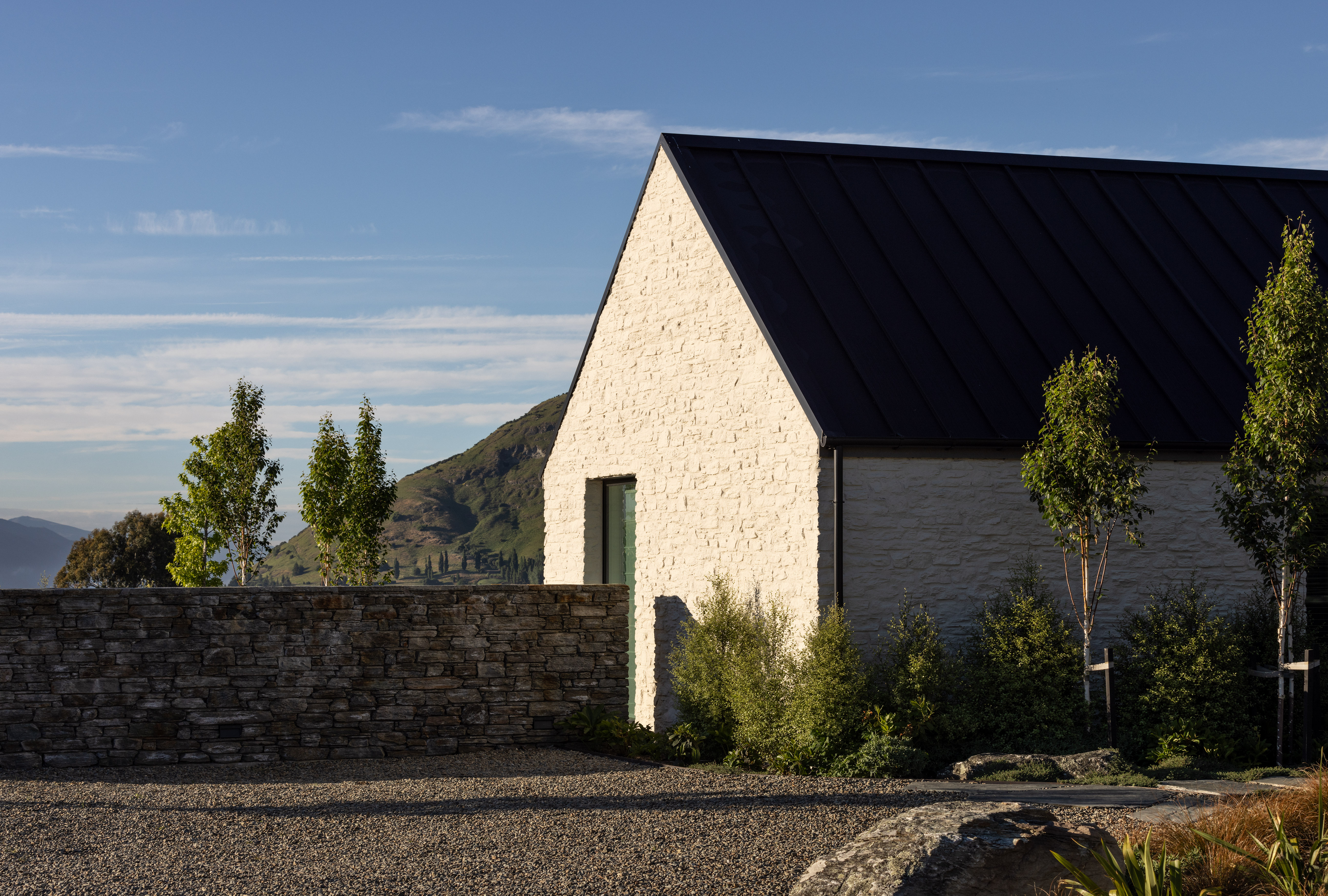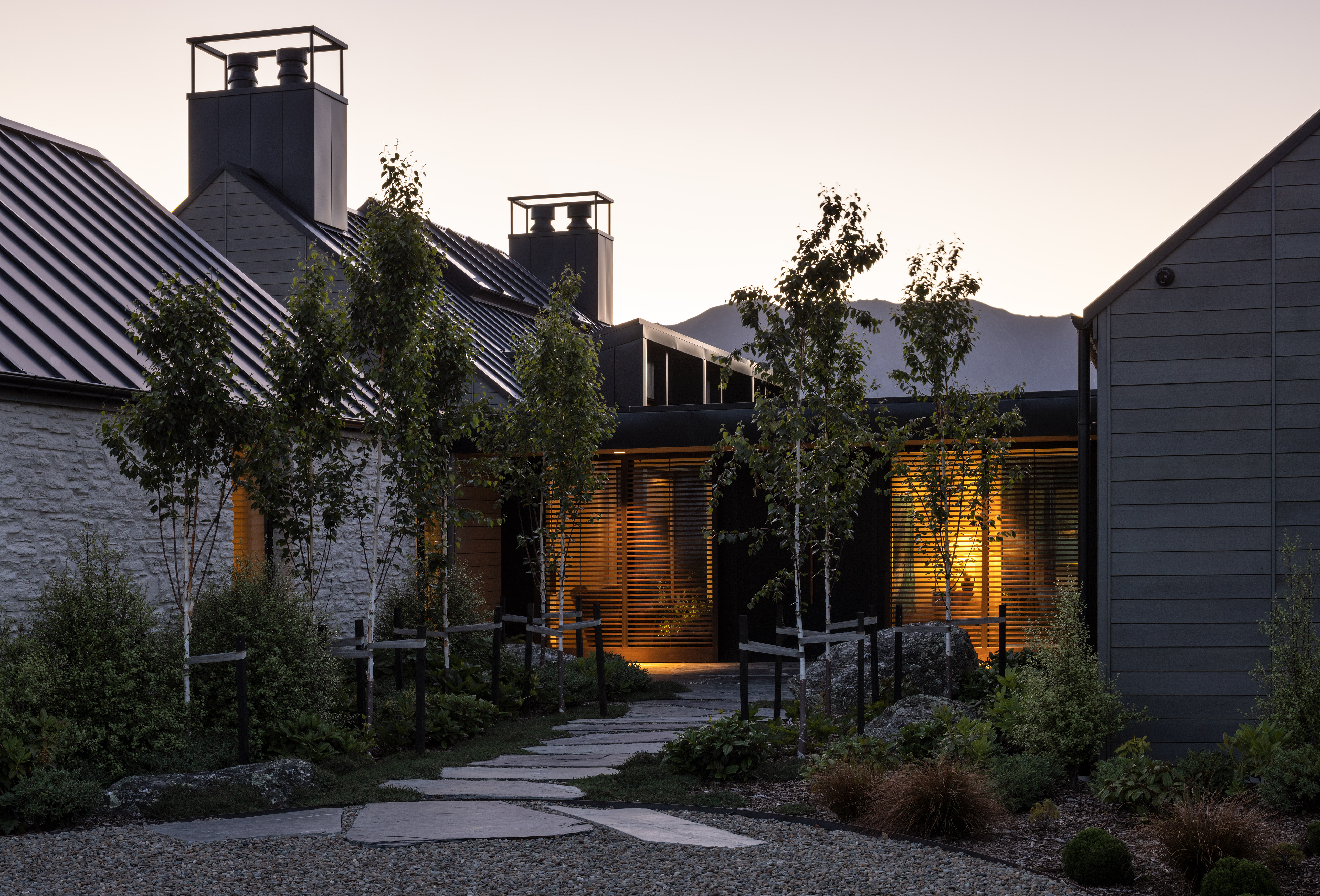 This home for a young family provides delight in its variations of and departures from, a familiar typology. The gabled form of the main living space is carefully articulated with unexpected apertures to respond to views and to daylight. The house has a charming meandering quality as it winds around a courtyard garden. Texturally rich and with perfect scale, the architecture creates a welcoming shelter within a grand landscape.