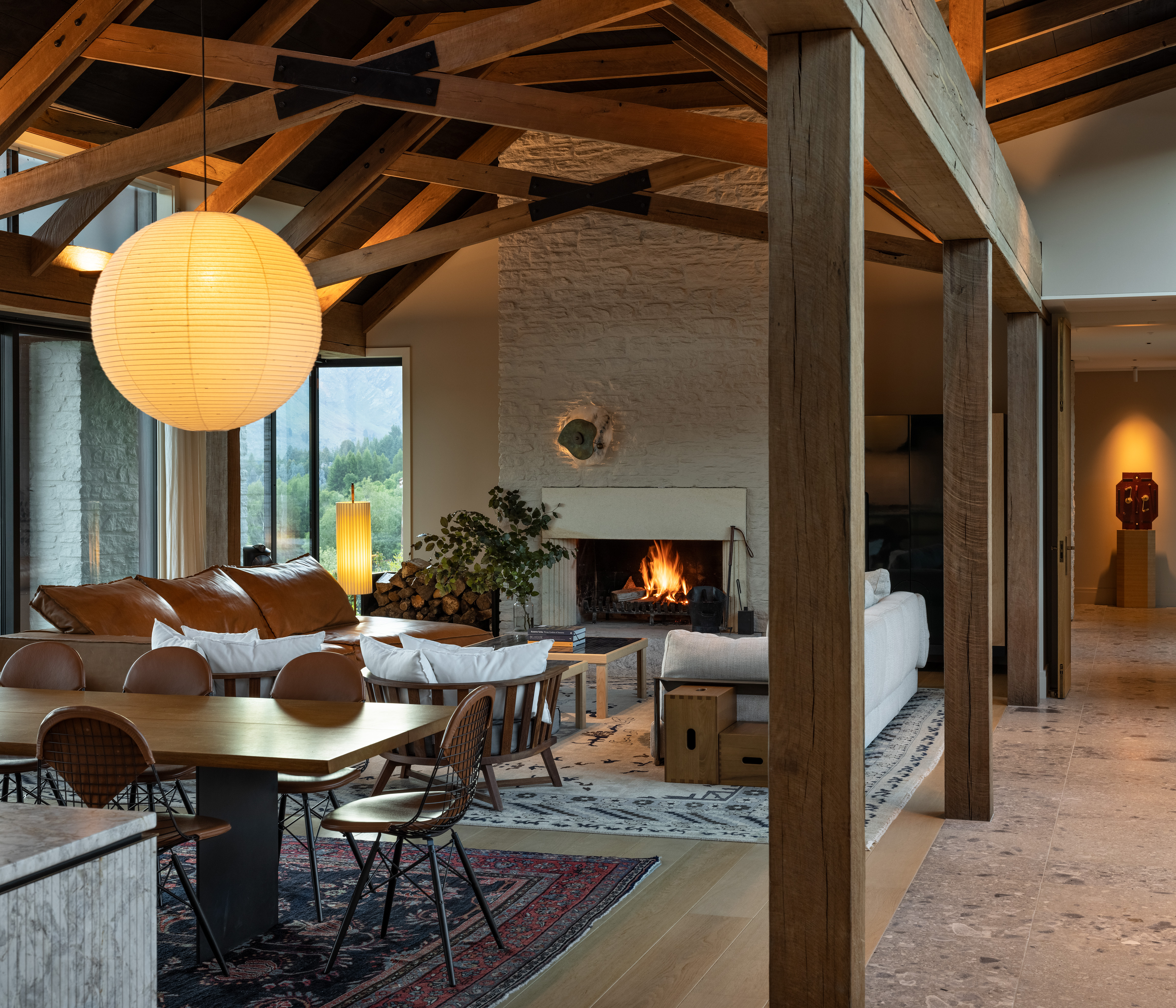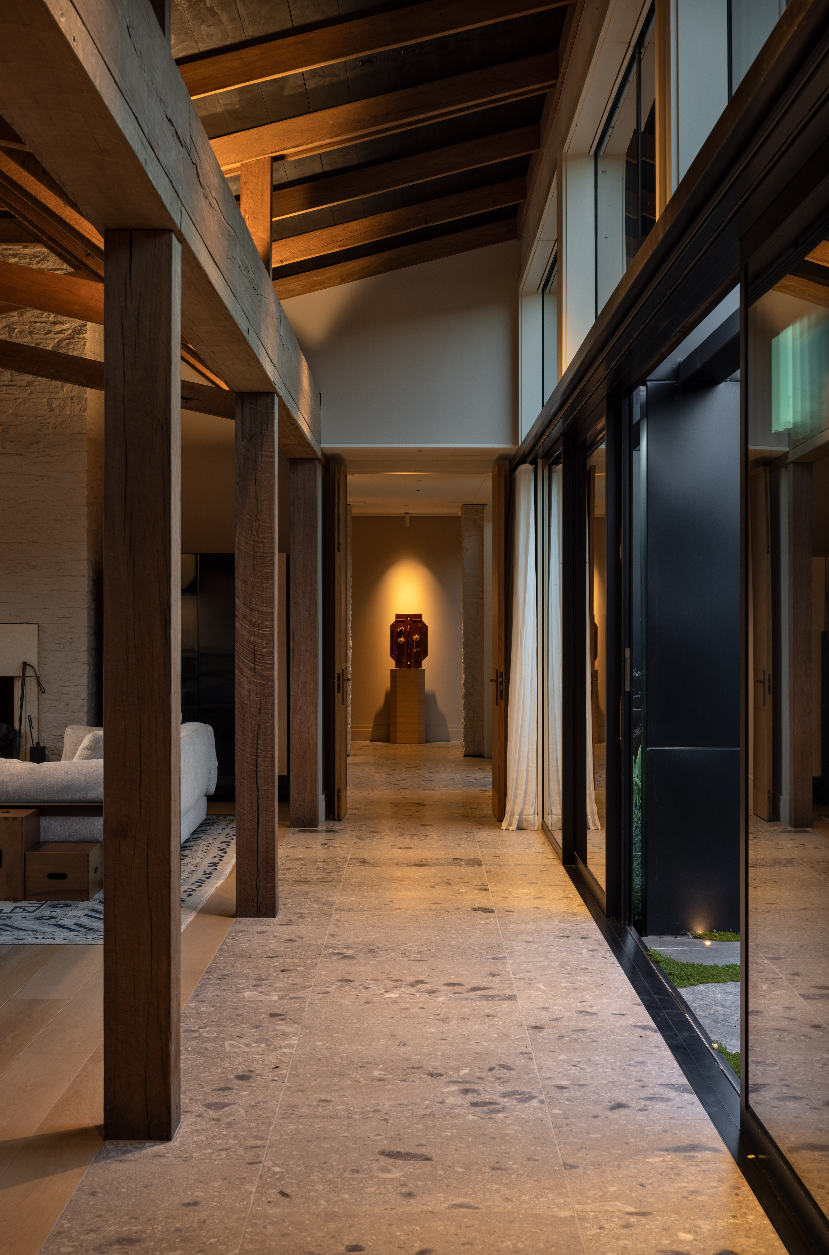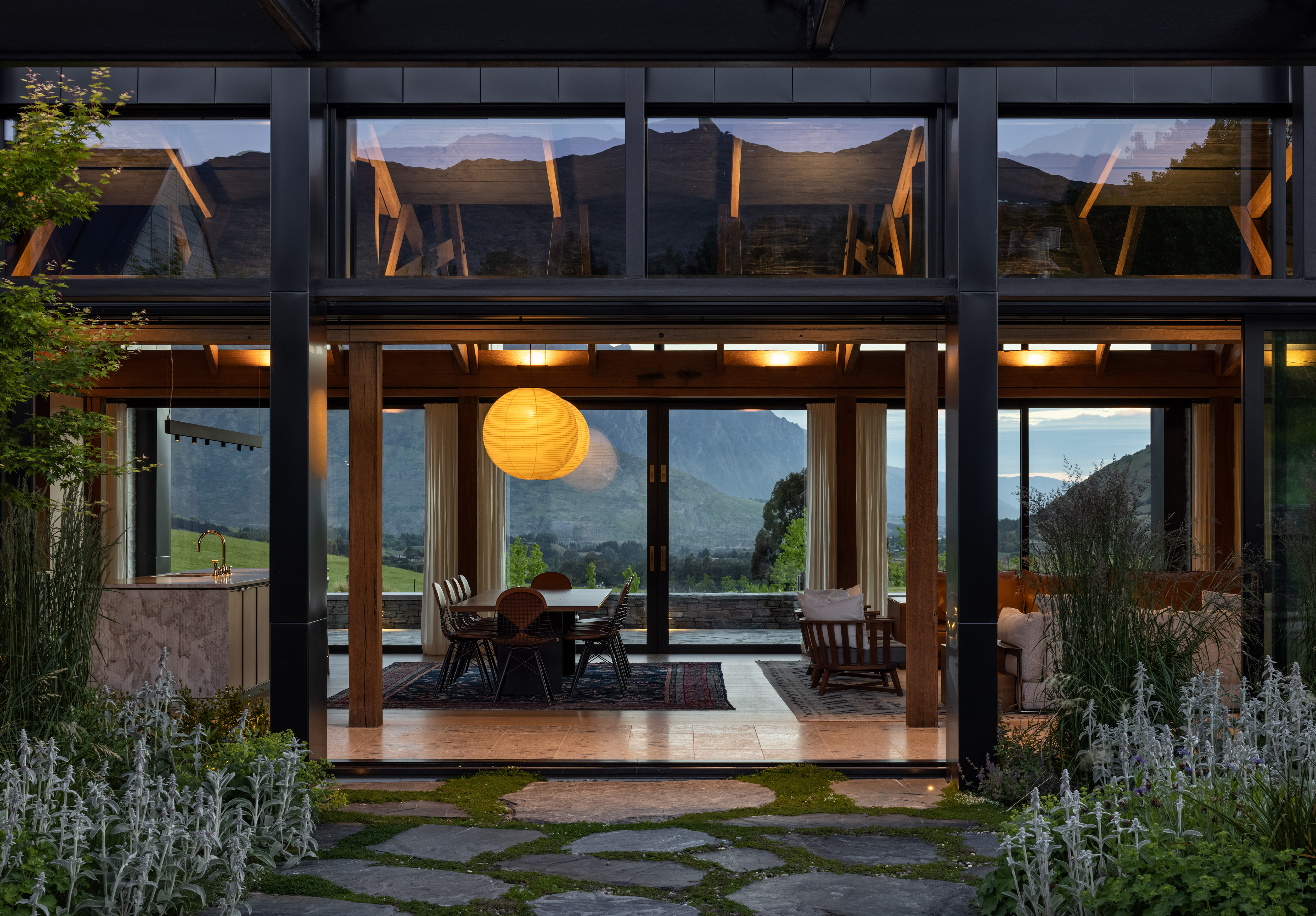This home for a young family provides delight in its variations of and departures from, a familiar typology. The gabled form of the main living space is carefully articulated with unexpected apertures to respond to views and to daylight. The house has a charming meandering quality as it winds around a courtyard garden. Texturally rich and with perfect scale, the architecture creates a welcoming shelter within a grand landscape.
