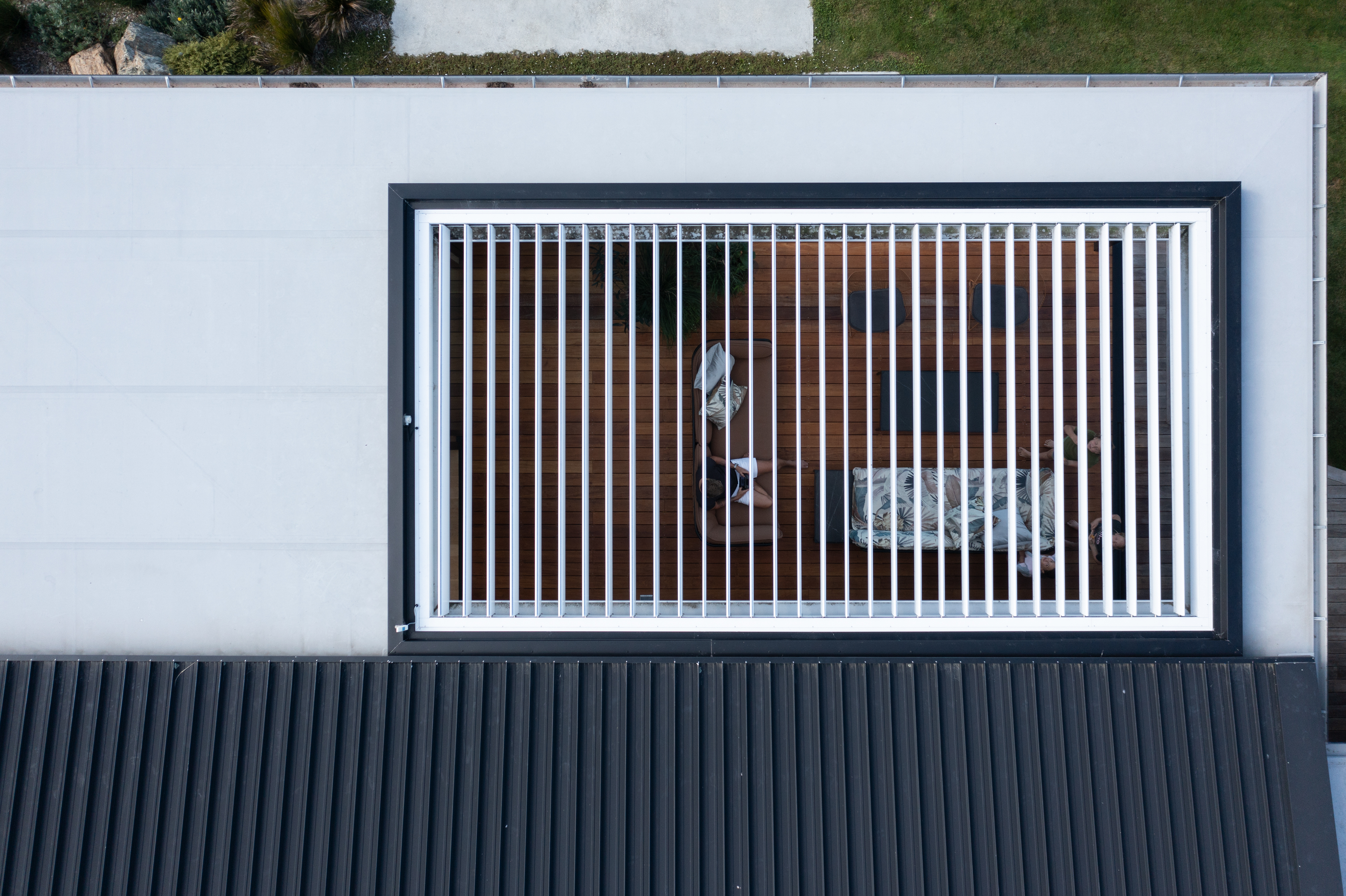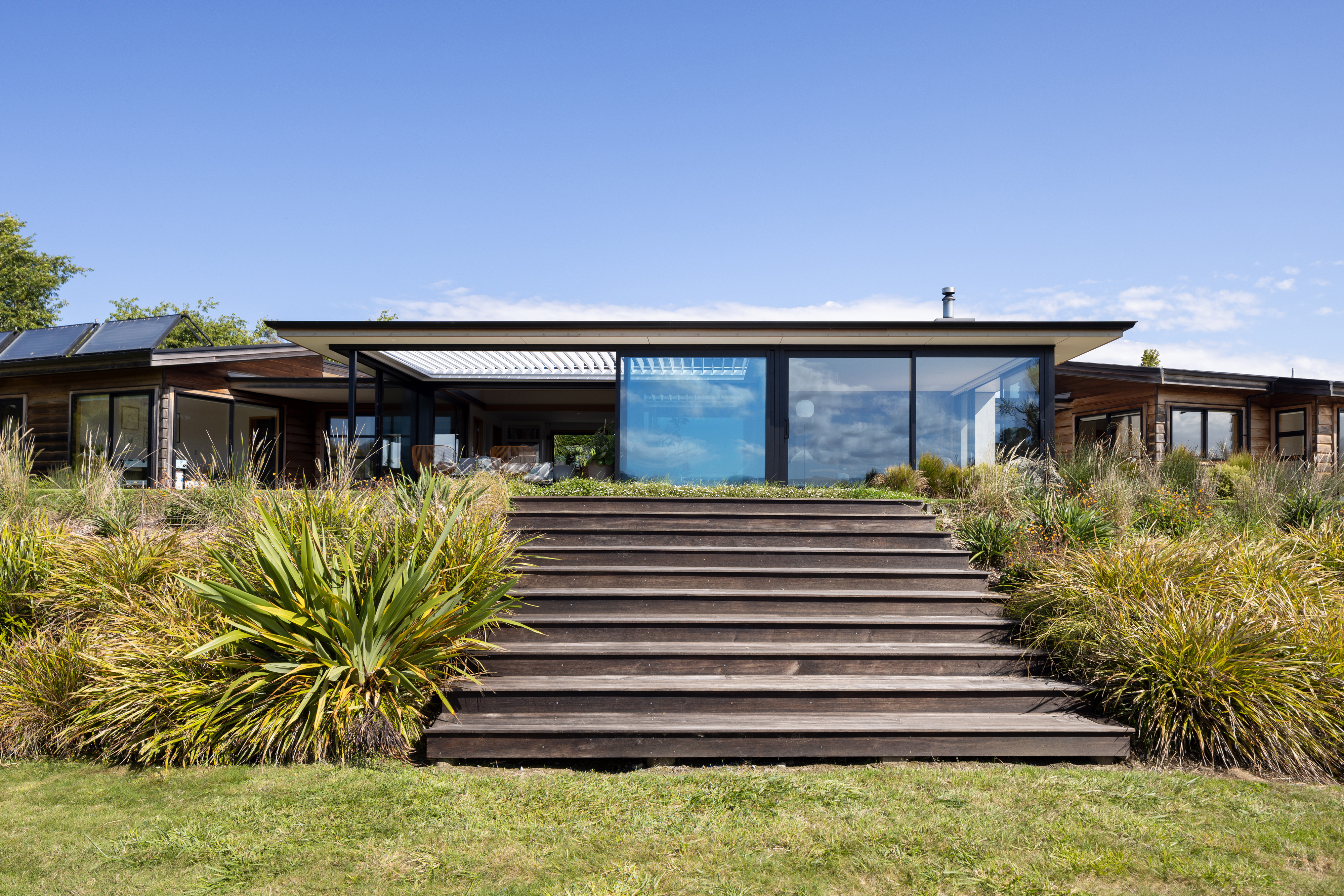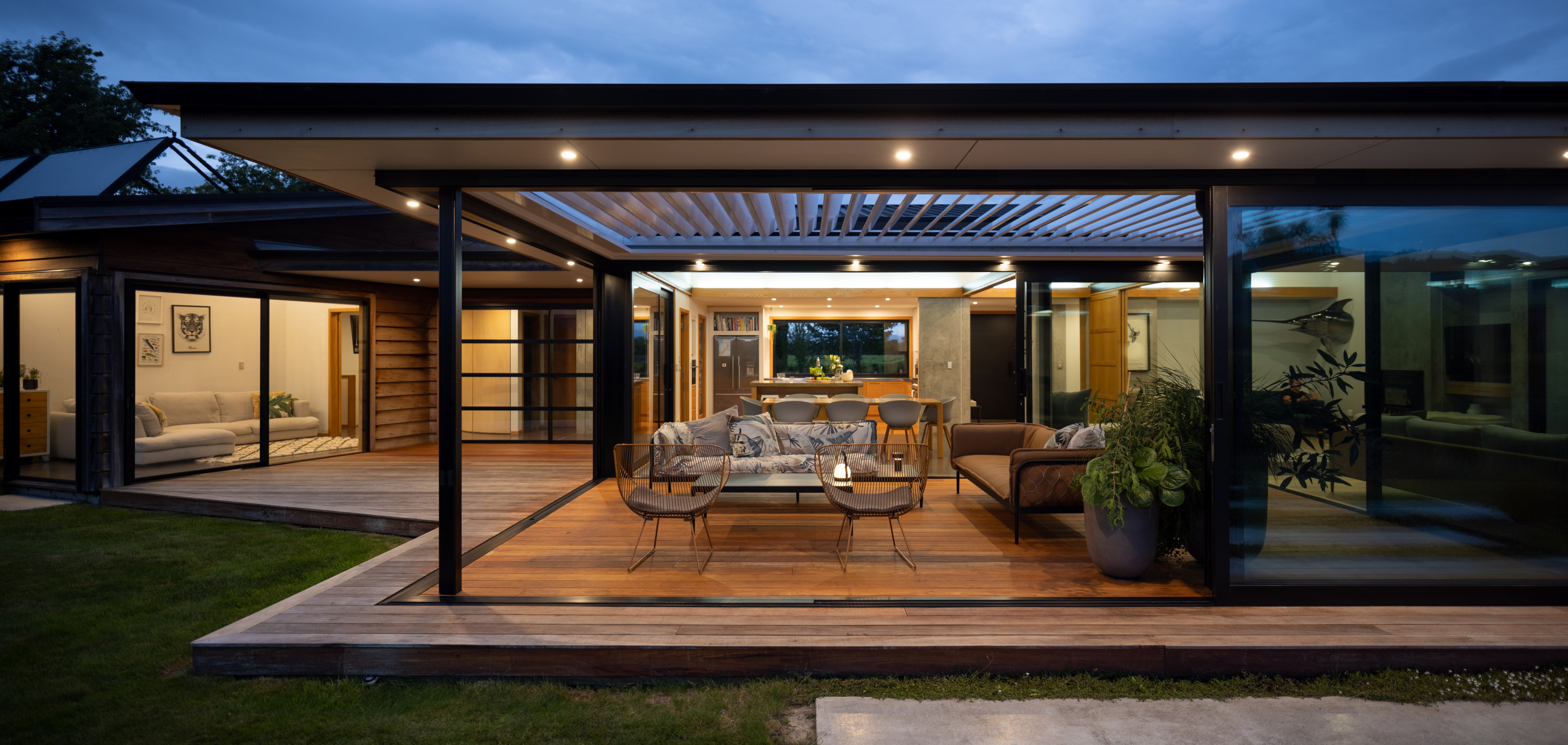 Time can be unkind to architect-designed homes if changes of ownership and subsequent alterations in differing styles undermine the original intent. Here, fortuitously, a much loved 12-year-old house remains with its first owners and has now been enhanced by the original architect. Kept low and seamlessly in tune, an outdoor room extension transparently transitions between the house and adjacent Spring Creek, linking conditioned outdoor living with both, and enhancing site connection. Wind, sun, and rain are controlled by sliding glass screens and variable overhead louvres, making this a space to enjoy in all seasons.
