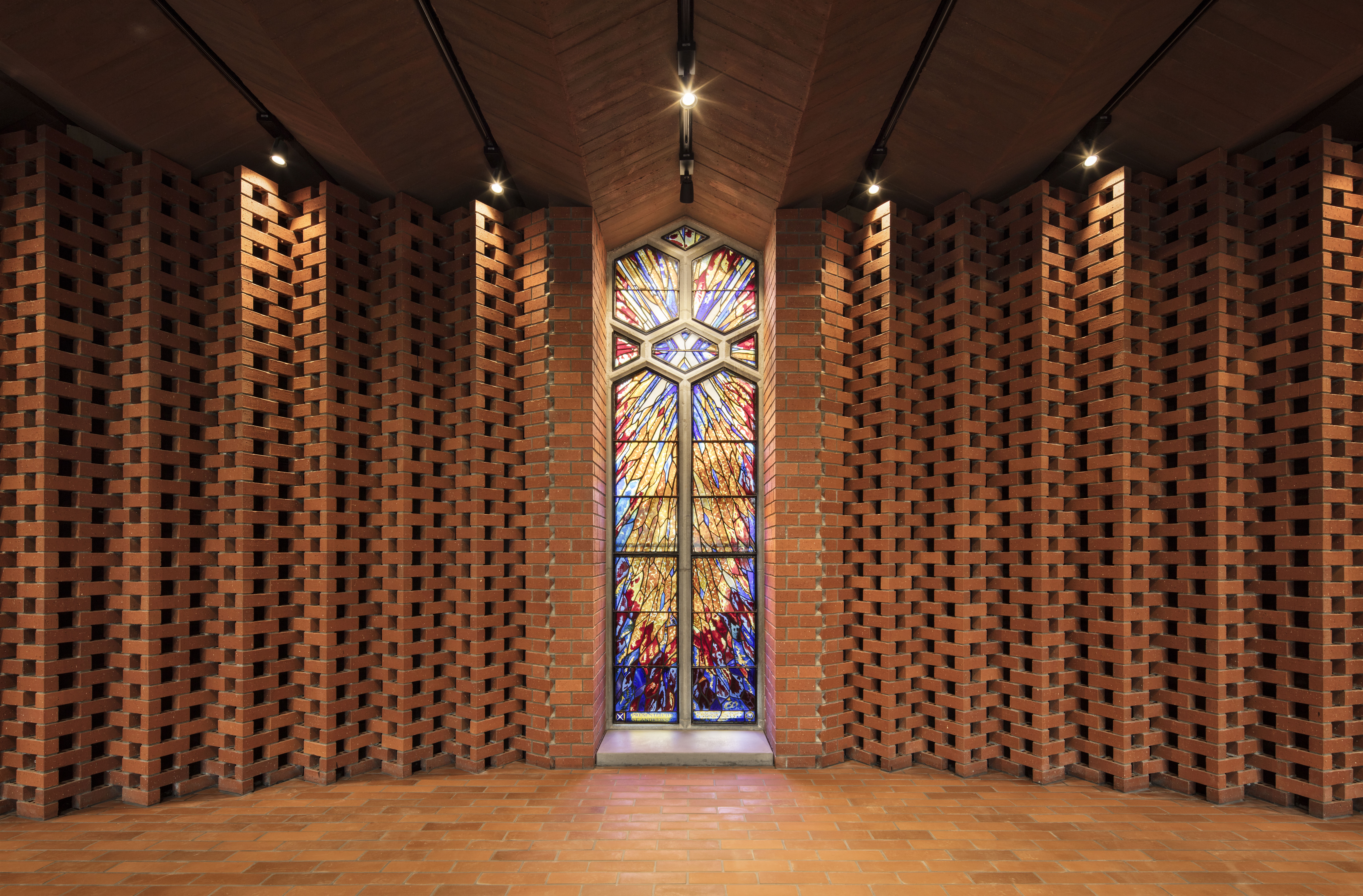 Against a backdrop of so much lost heritage, St Andrew’s College Centennial Chapel celebrates the richness of memory that only time can shape, and resets it as part of a forty metre-long brick ‘Memorial Wall’. This is an exemplar of adaptive reuse, respectful of past Collegians, housing special spaces and treasured elements. The congregation is arranged by way of original pews facing south; a folded glass screen mediates south light, and provides a visual connection to the College. The roof, a series of folded ridges and valleys, is a powerful sculptural element reminiscent of early church buildings yet contemporary in execution, and ethereal. The integration of the original bell within a lantern over the nave further reinforces the dialogue between old and new, while the rough-sawn timbers of the foyer and vestry add a welcome sense of familiarity and warmth to a building that will serve future generations.