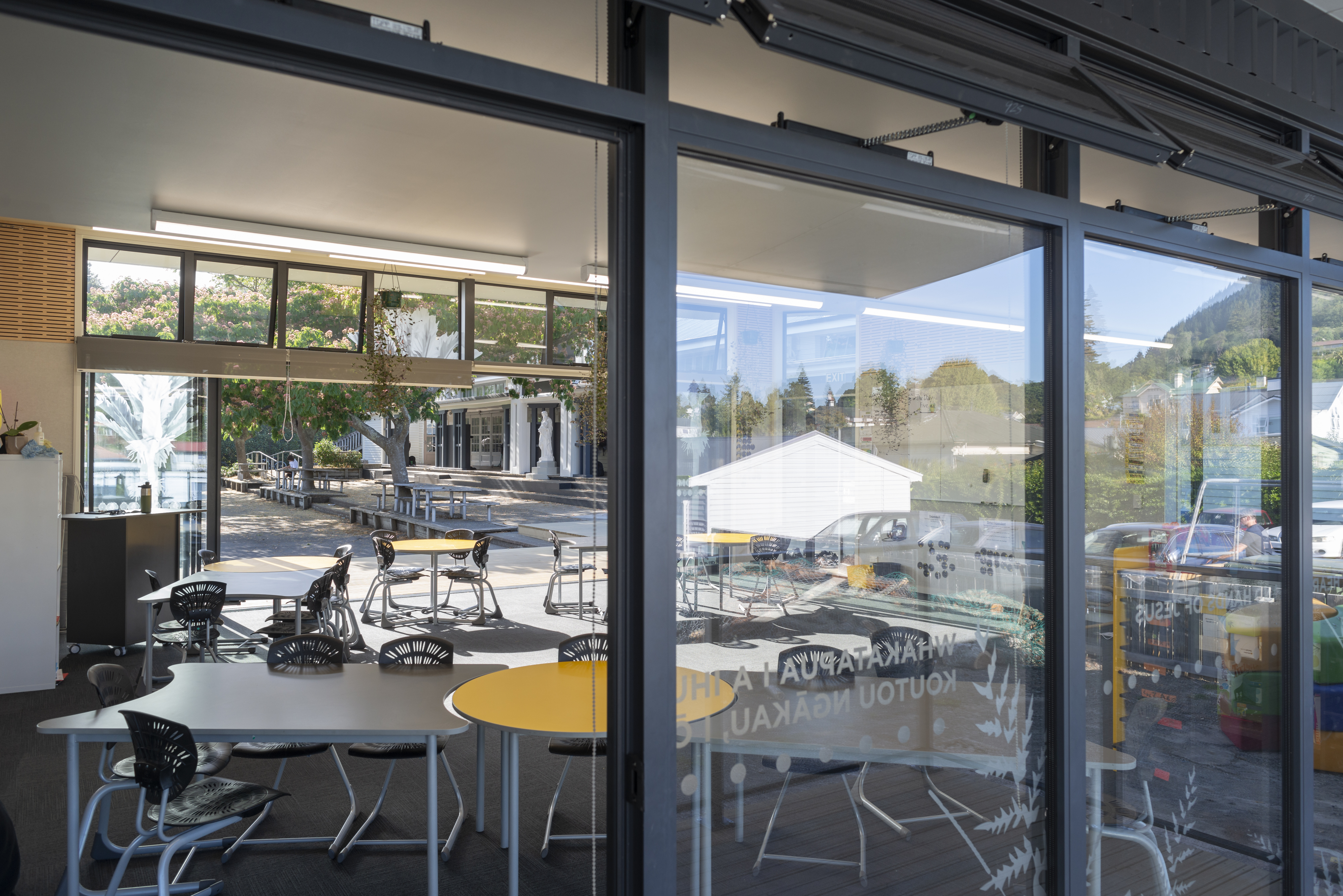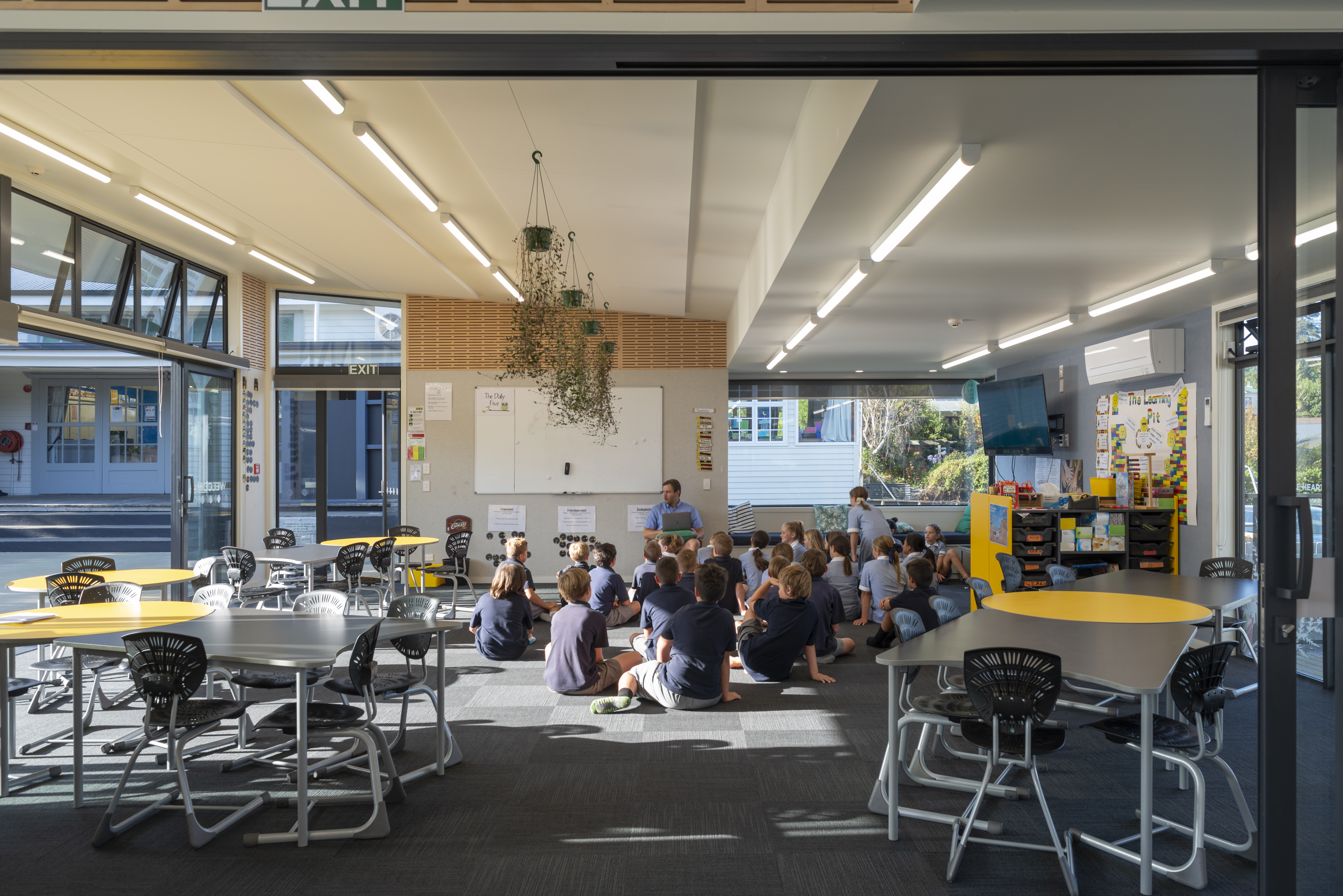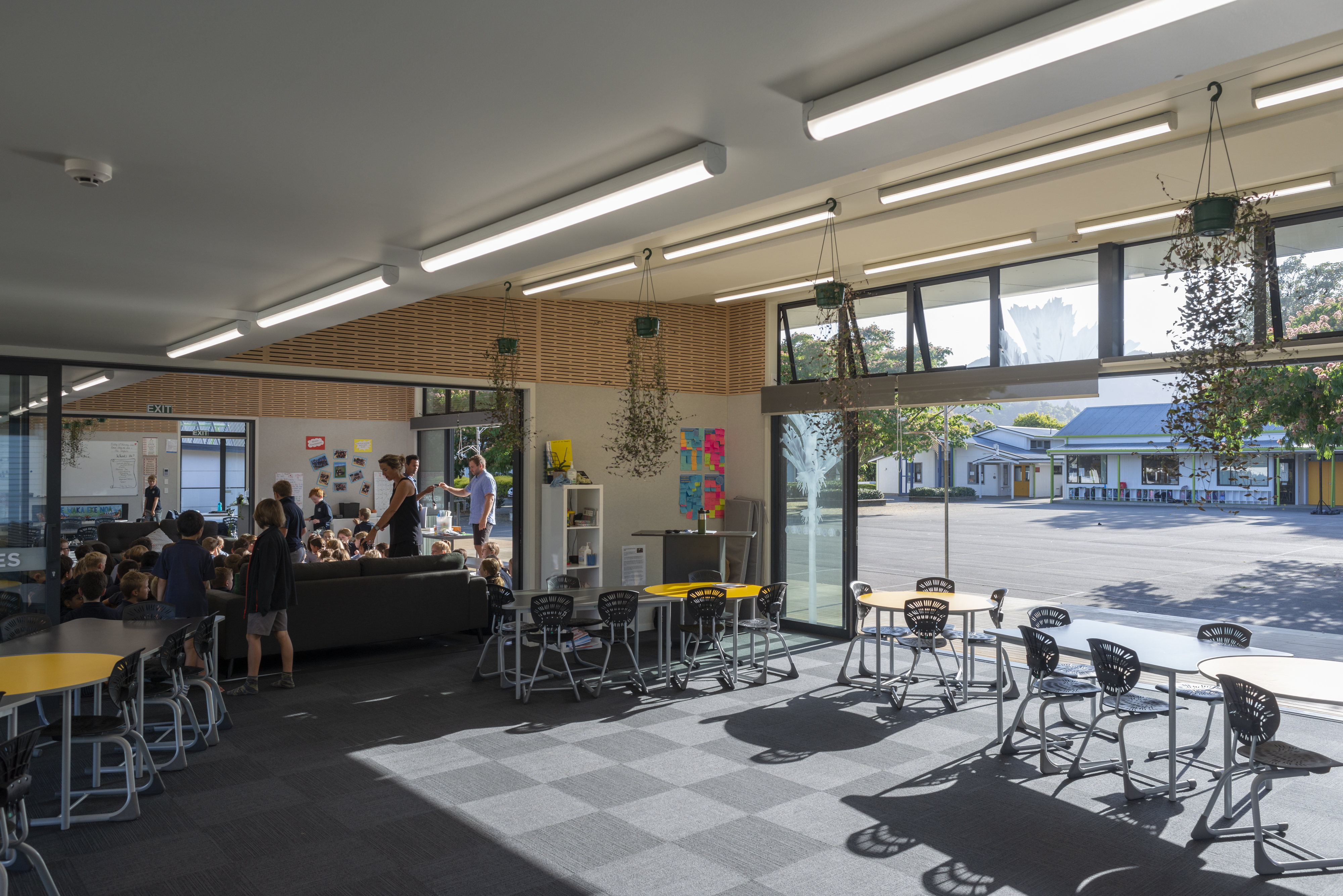 Carefully sited to complete the western side of a central quadrangle, this building gives a contemporary edge to the pivotal open space at the heart of the campus of St Joseph’s School. Broad overhangs shield extensive glazing and provide sheltered outdoor space for learning and play. In a light and open counterpoint to the adjacent more traditional school buildings, operable doors allow free movement from within to without. Well-detailed internal spaces, with beneficial natural lighting and acoustics, provide flexible and highly appropriate learning environments.