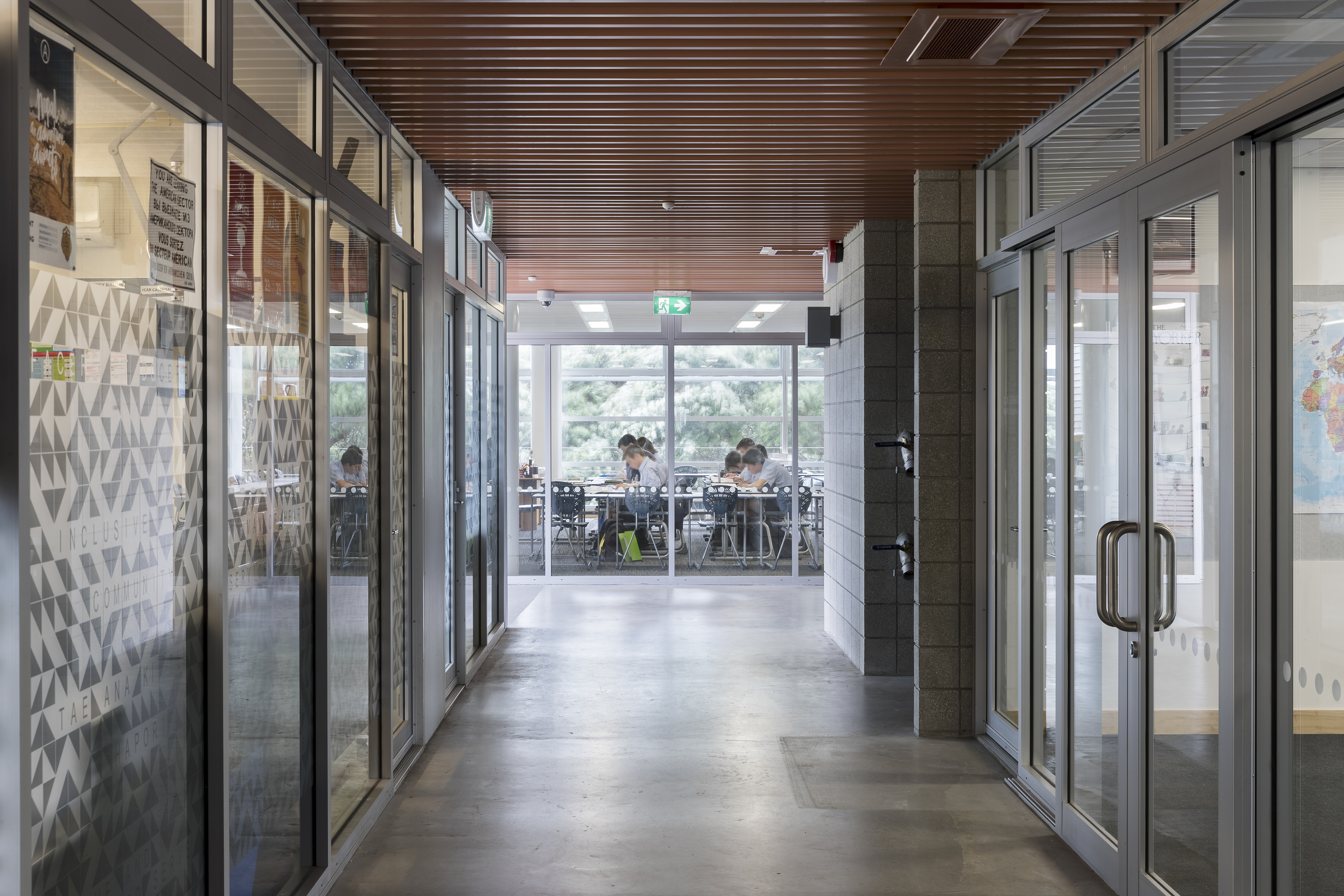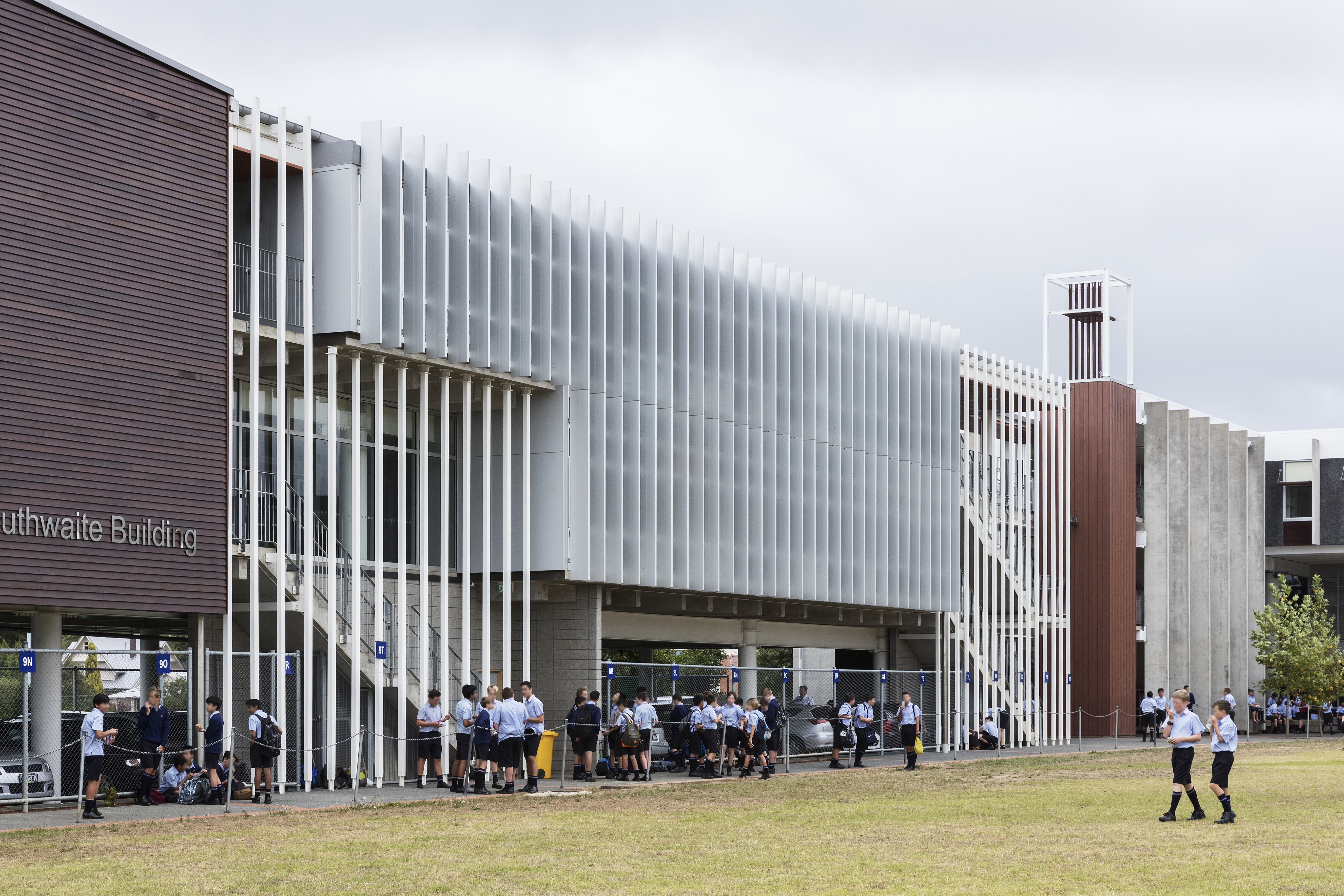 The siting of the Outhwaite Building completes an urban edge for the existing Middle School campus, while framing the sports fields. This addition is a seamless extension to a previous stage in the overall development of St Peters College. Raw materials are assembled with a formal elegance.