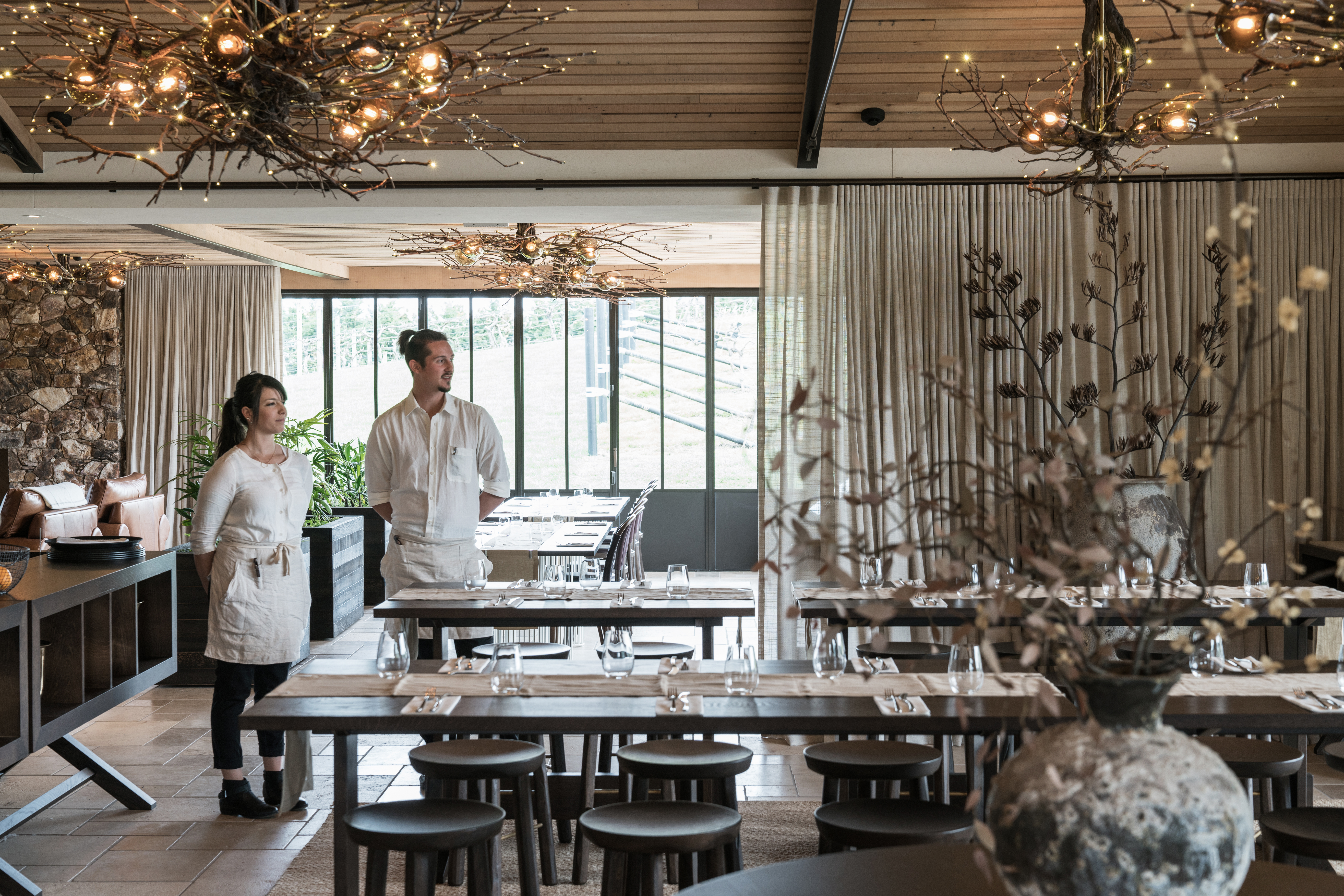 The extent of the differing and rich interiors of this winery, restaurant, brewery and tasting room is revealed slowly and can be experienced from several orientations. The incredible attention to detail in every moment is therefore revealed in layers, enabling the easy digestion of complexity. Experimental in style and attitude, this project bridges seriousness and playfulness, yet always maintains the highest quality.