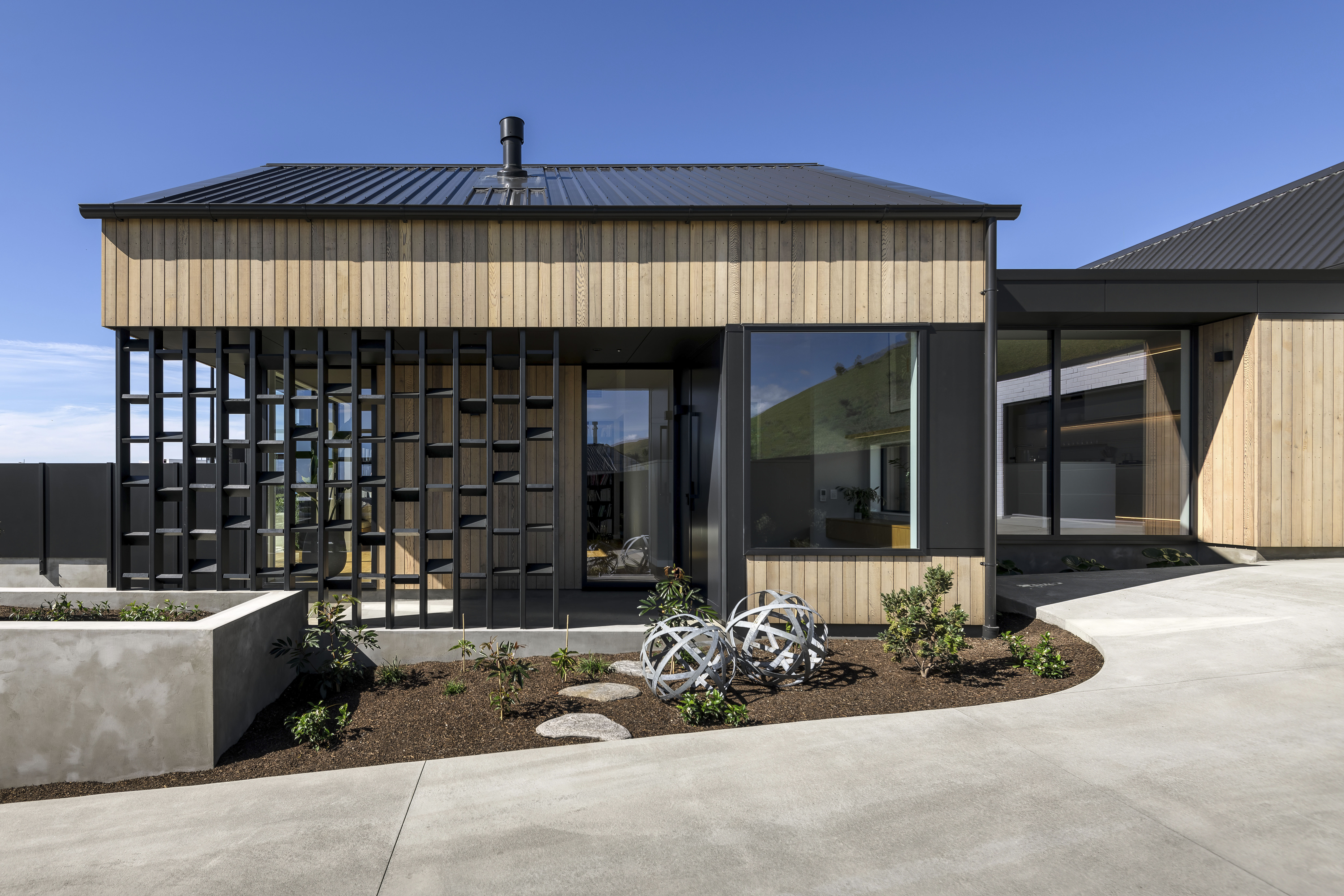 This house negotiates a balance between openness and refuge, offering both sweeping views of Tasman Bay and a sense of privacy and shelter. At its heart, a large central table anchors the home—a gathering place from which open and enclosed spaces unfold. Thoughtfully positioned courtyards extend into the landscape, offering adaptable outdoor retreats in response to time of day or weather conditions. A meticulous attention to detail is reflected in the material palette, lighting, and landscape, each contributing to a cohesive architectural vision.