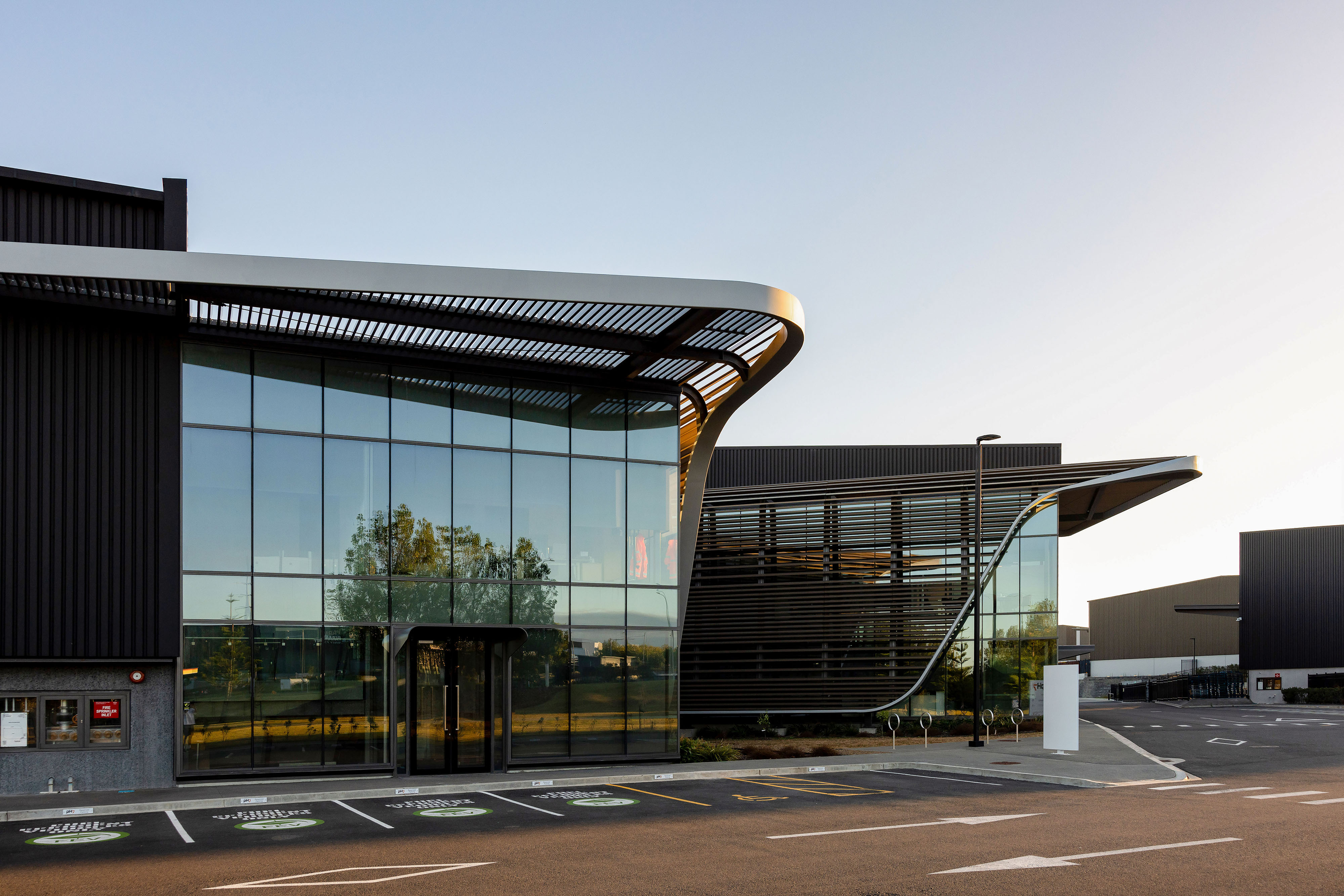 Compelling ESD credentials and innovative design demonstrate how large-footprint industrial buildings can contribute positively to carbon reduction and sustainability. Achieving a 6-star Green Star rating as built, this is a first for a development in the Highbrook Business Estate and sets a new benchmark for the client’s future builds. Simple, well-crafted architectural gestures animate and articulate the outer shell of a cluster of warehouses. The ensemble of buildings forms a cohesive masterplan in a regenerating landscape with connections to the neighbourhood.
