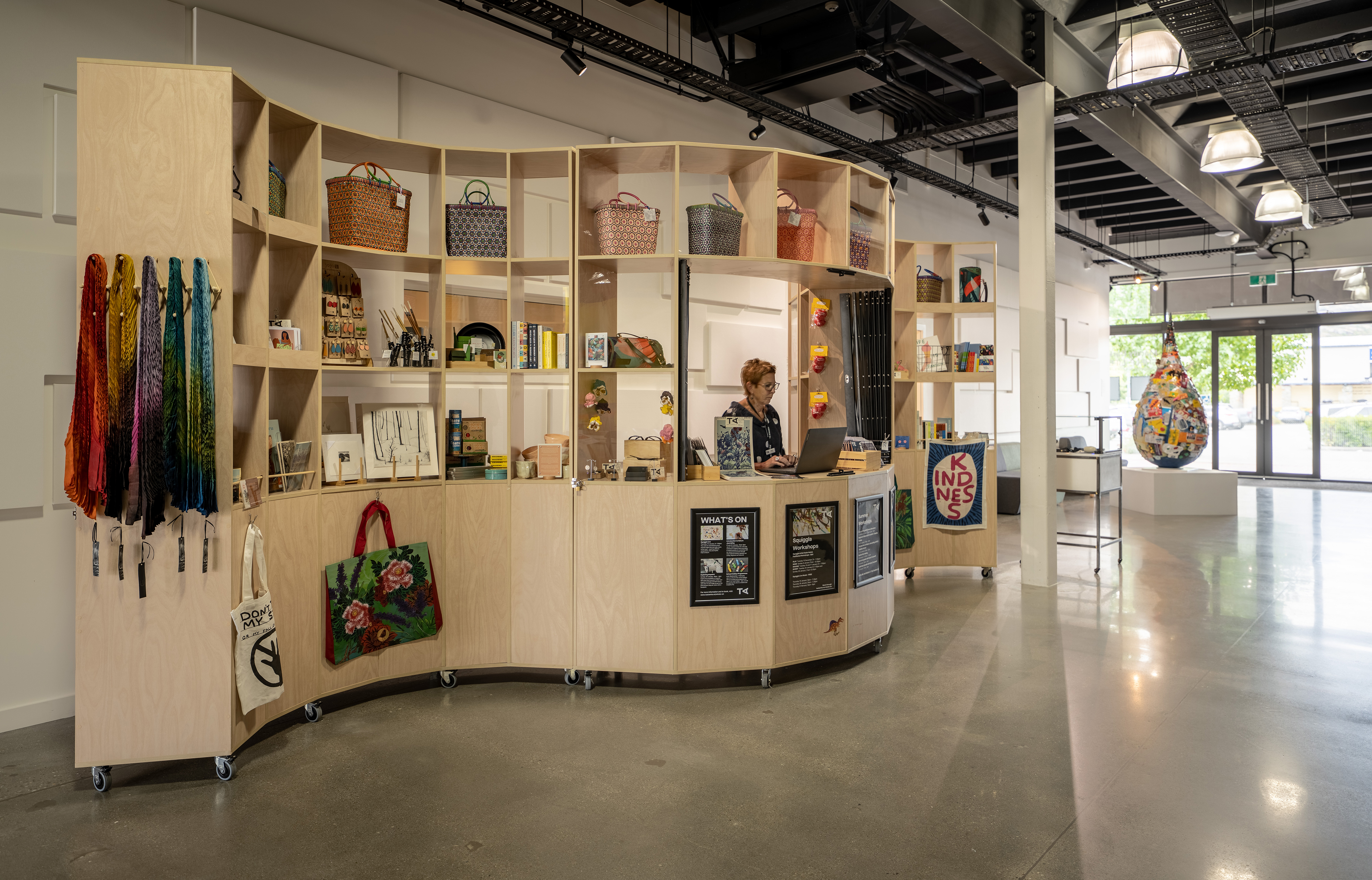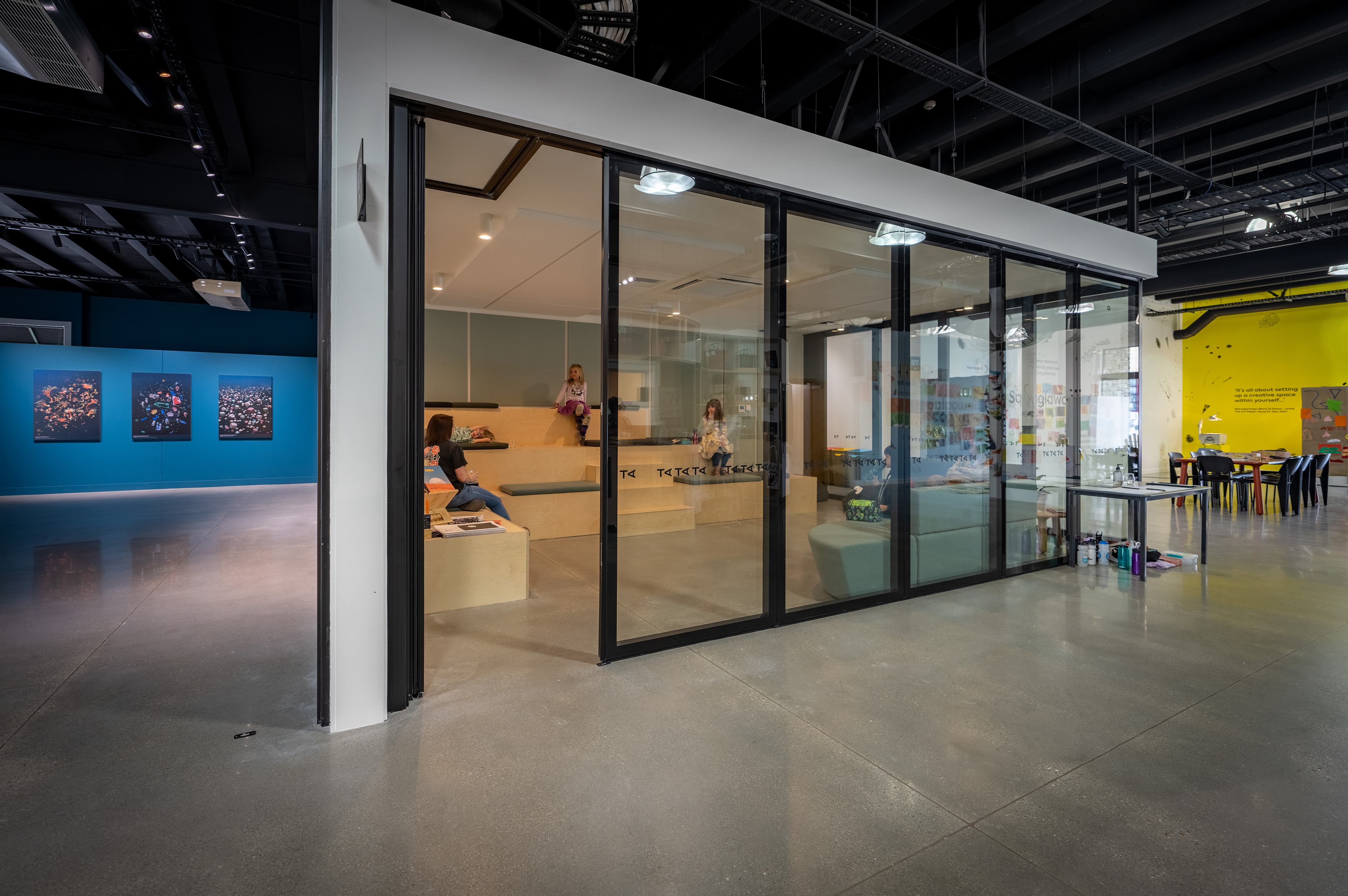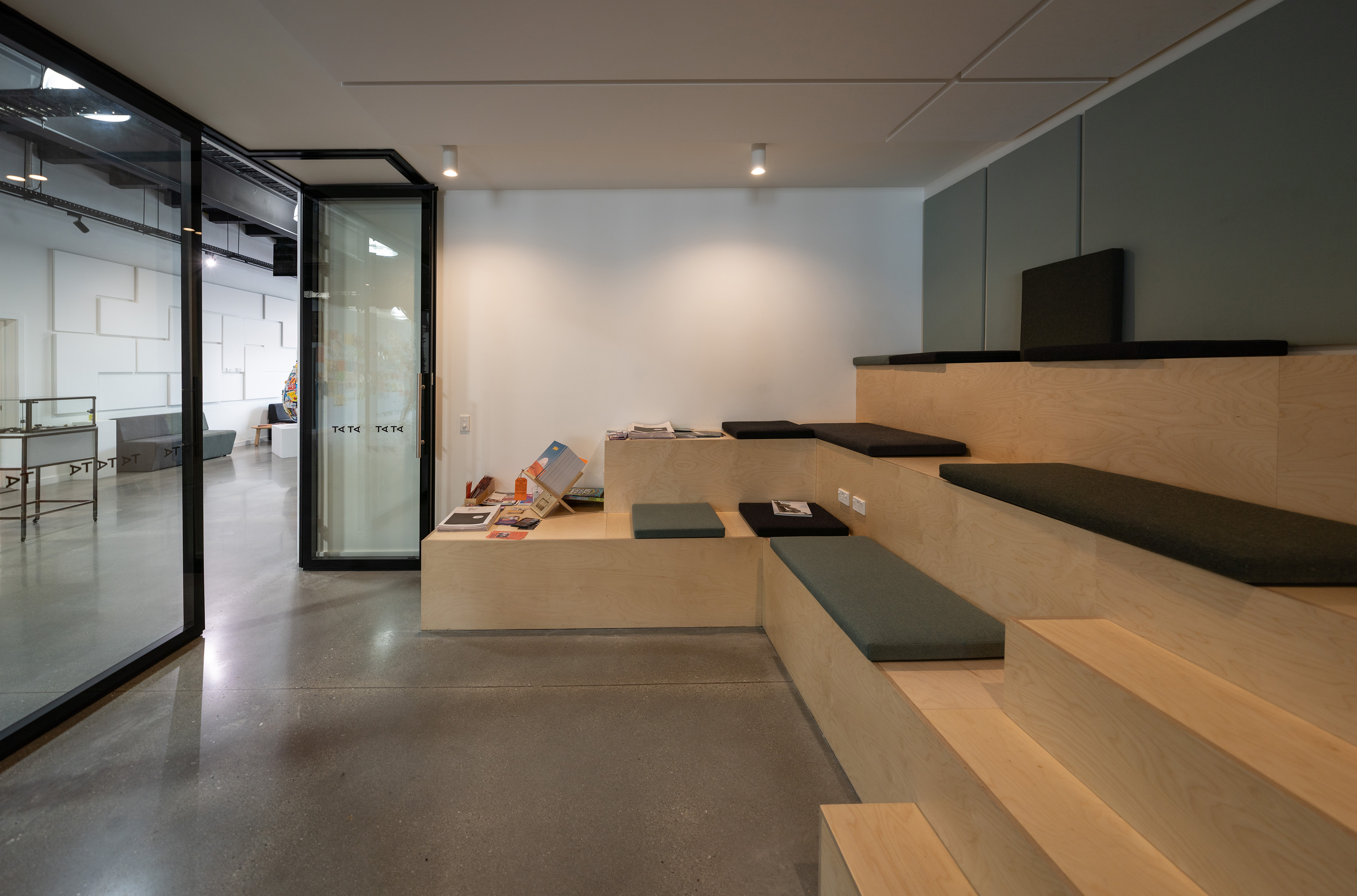 This design heroes the myriad visual works and performances presented at the community arts and cultural facility. Neutral walls disappear and material choices, driven by budget, are as refined as possible. The multipurpose desk, shop and bar area can be locked up at night, which neatly resolves this multifunctional space. A professionally managed project with limited time and budget, it has already successfully hosted thousands of local and international visitors.