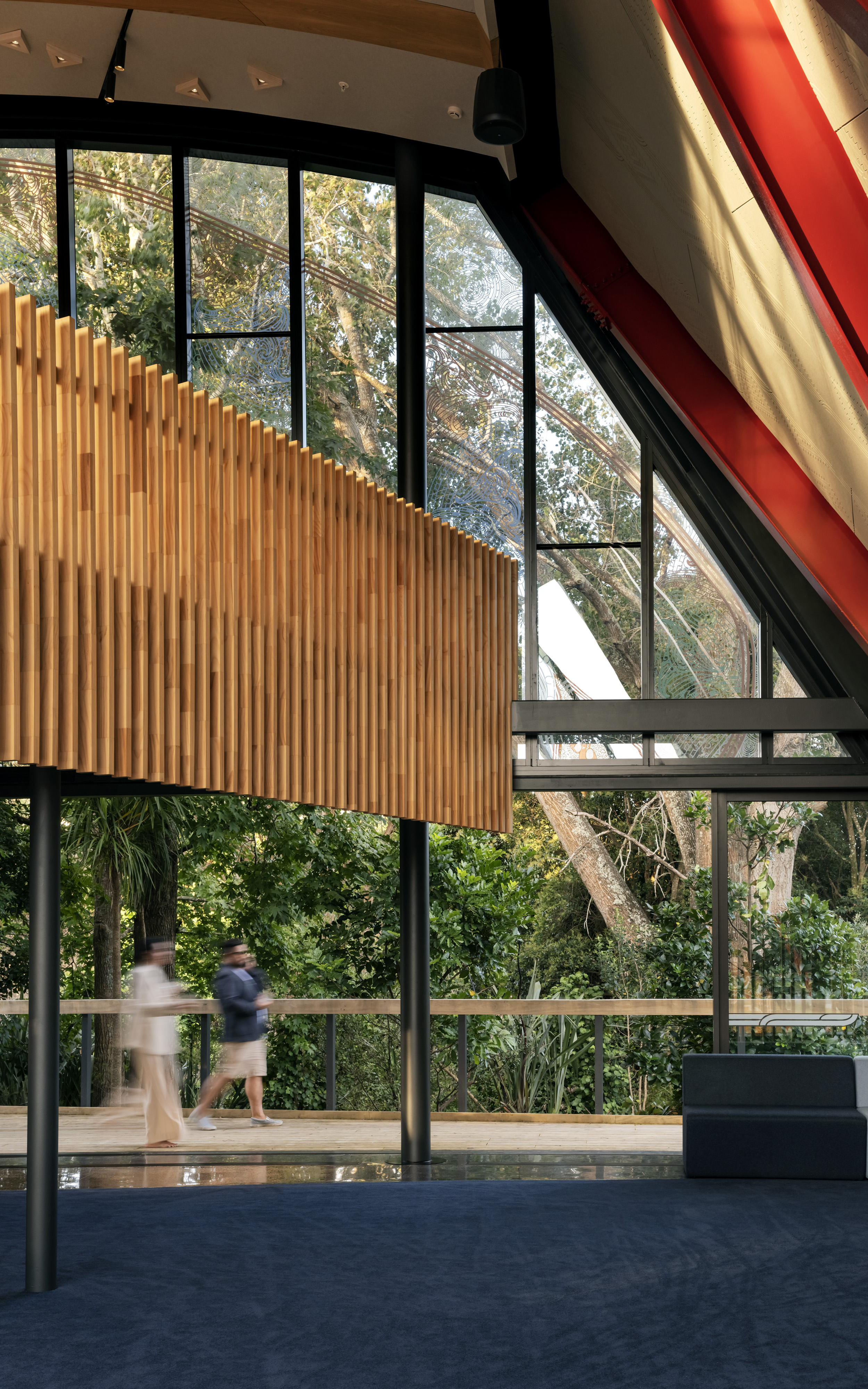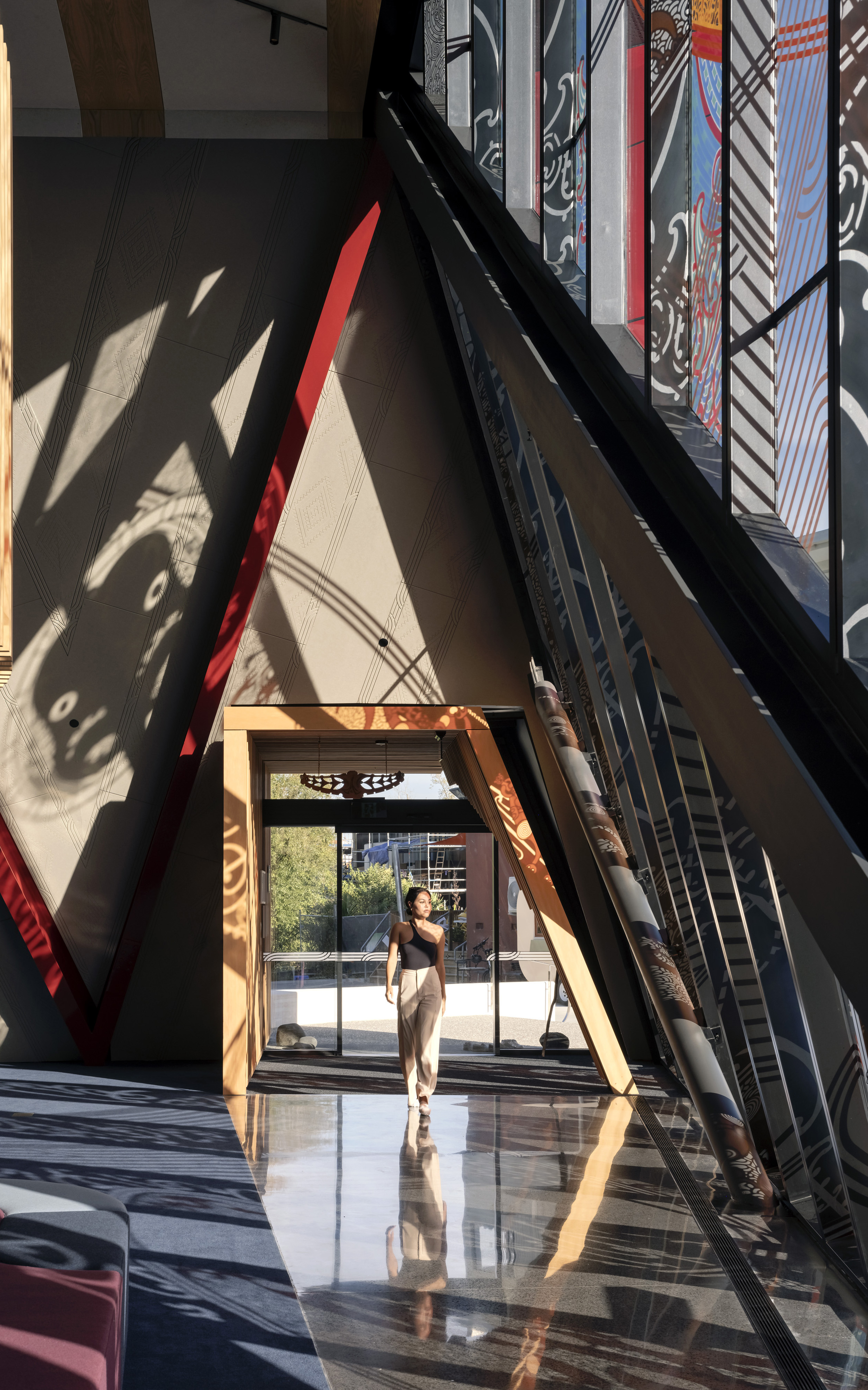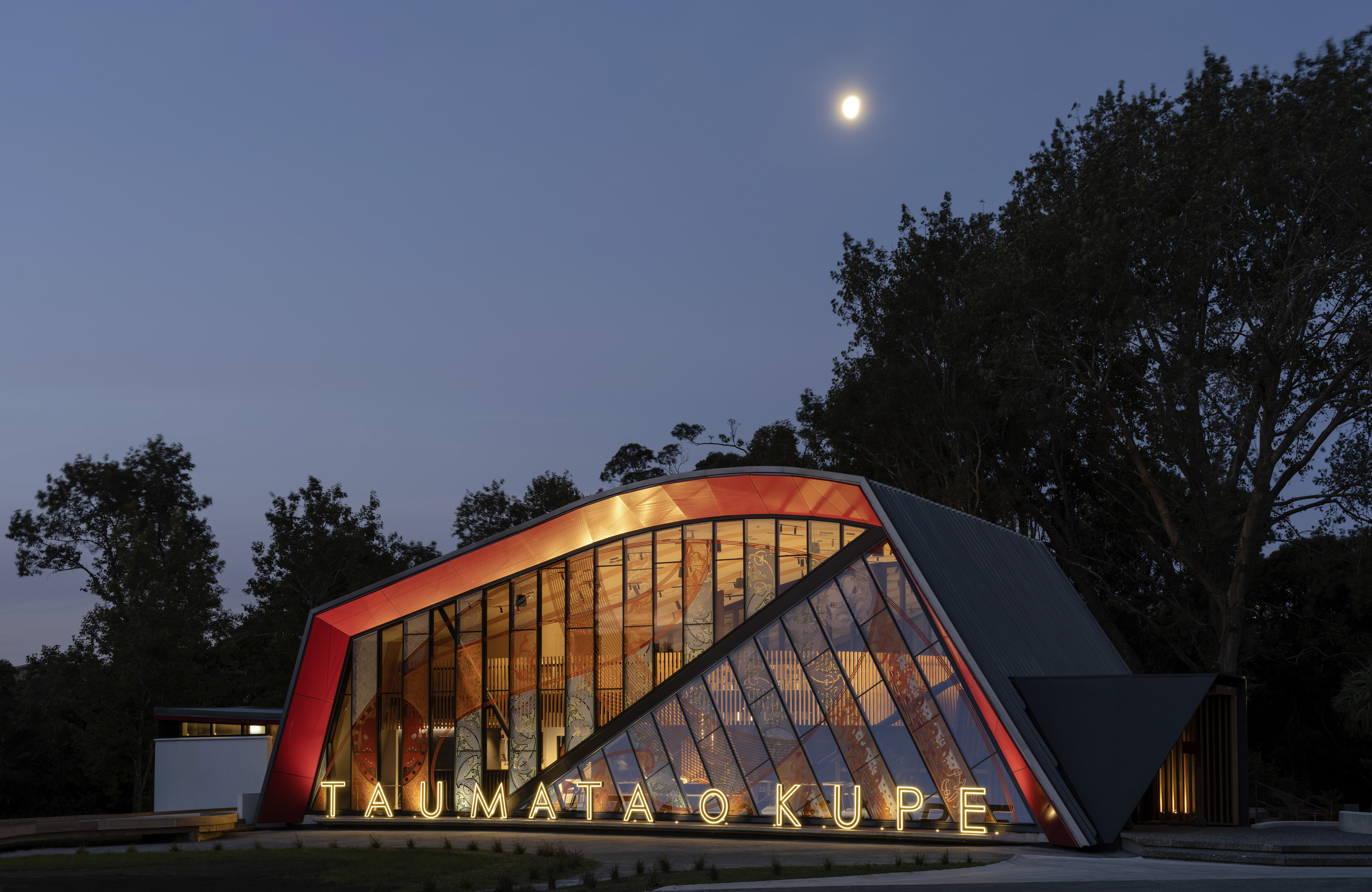 This project is heroic in ambition, reach and execution. It is a remarkable result following decades of work and commitment from numerous people and speaks to the determination and perseverance of the Te Mahurehure community. As part of the wider marae complex, Taumata o Kupe embodies the spirit of Kupe and represents his journey to Aotearoa. The unique external form frames stories and histories embedded in the glass window wall, which in turn projects shadows deep into the building interior where a collection of dynamic spaces and volumes provide for a variety of uses and functions. This exceptional project establishes a new home and a new way of informing and defining the future for the people of Te Mahurehure Marae and the wider community of Tāmaki Makaurau.