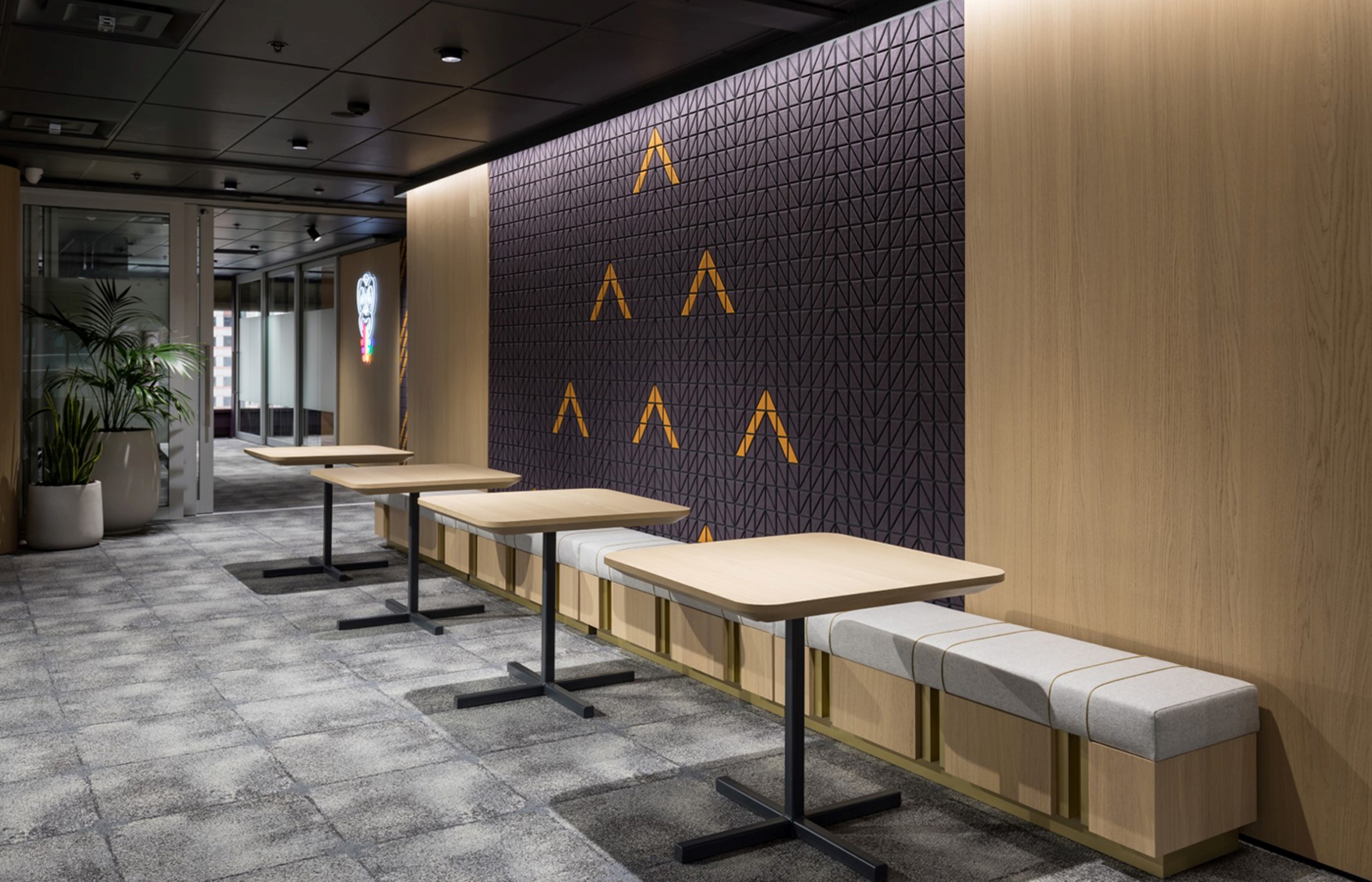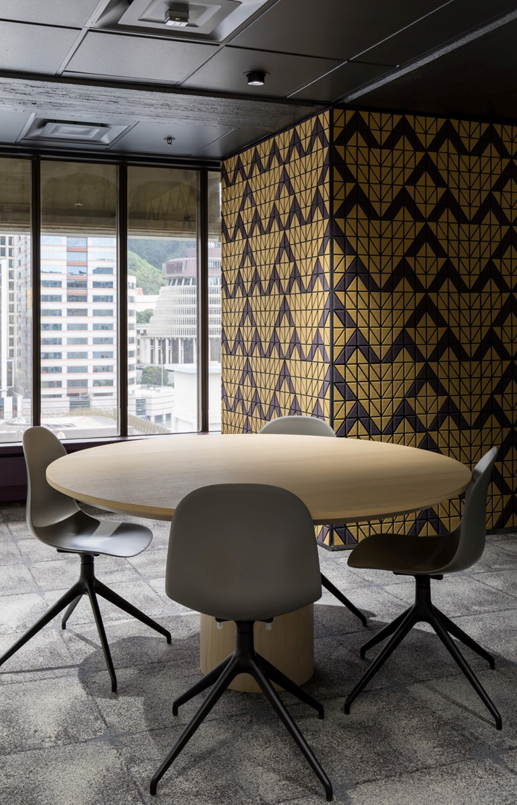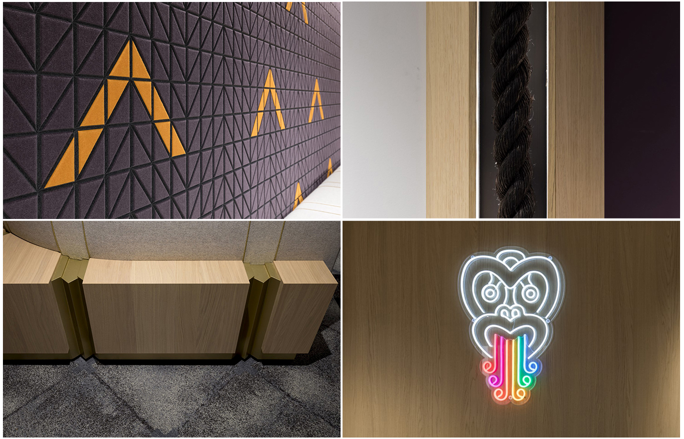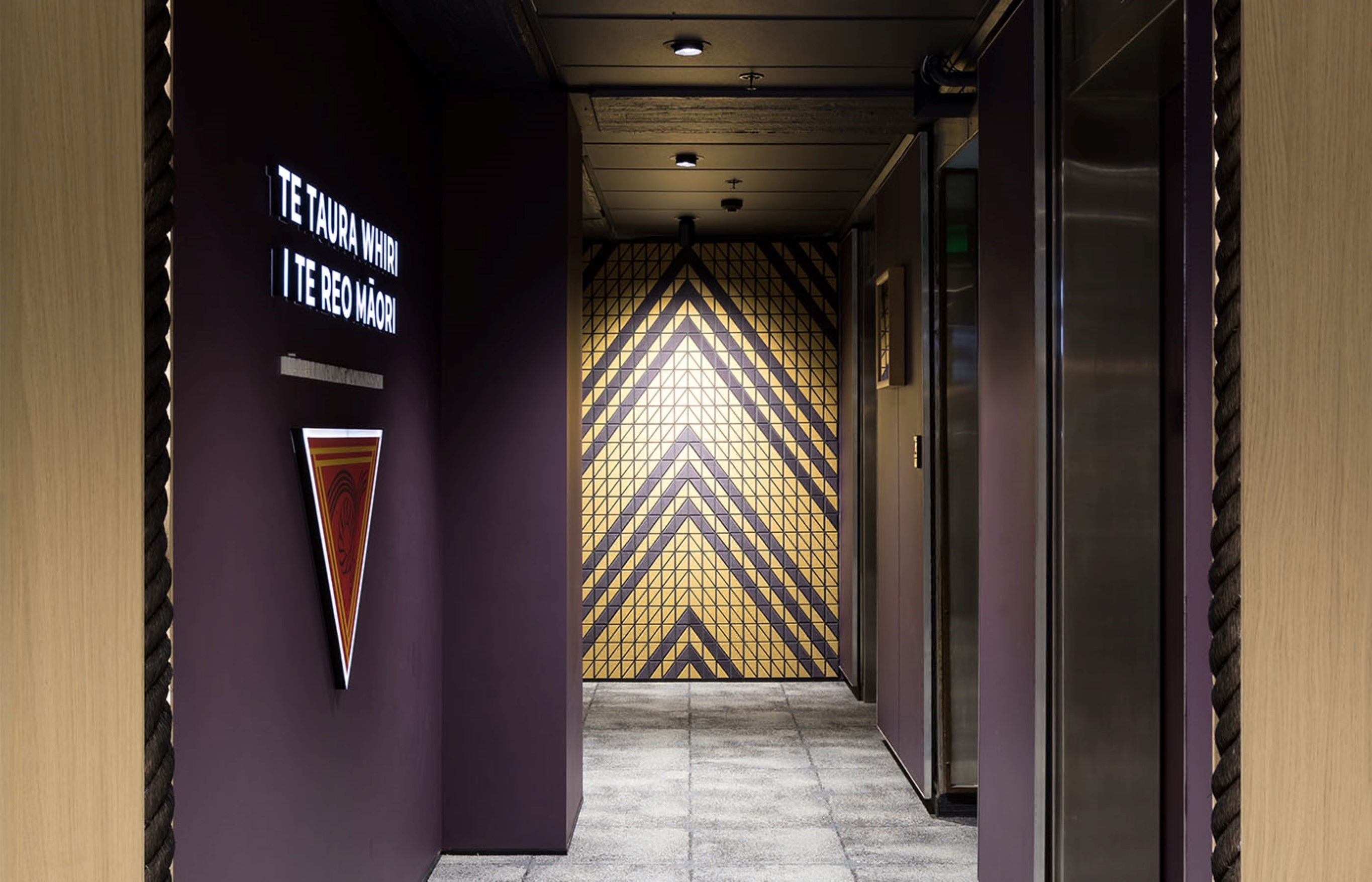 This is a thoughtfully designed, multi-use space where Te Reo revitalisation and ideas can be fully exchanged; a space designed to echo the language – one that can feel at times intimate and engaging and at others, open and vibrant. Beautifully designed and crafted elements include carved door handles that act as a gateway into the space. The bespoke Autex wall tiles can be arranged in any of the Niho Taniwha expressions. Existing furniture has been combined with new bespoke joinery to create a kit of parts that can be arranged to a particular use, from small to large hui, workshops and kōrero. While creativity and flexibility are key, there is a strong sense that everything has been undertaken with a clear rationale.