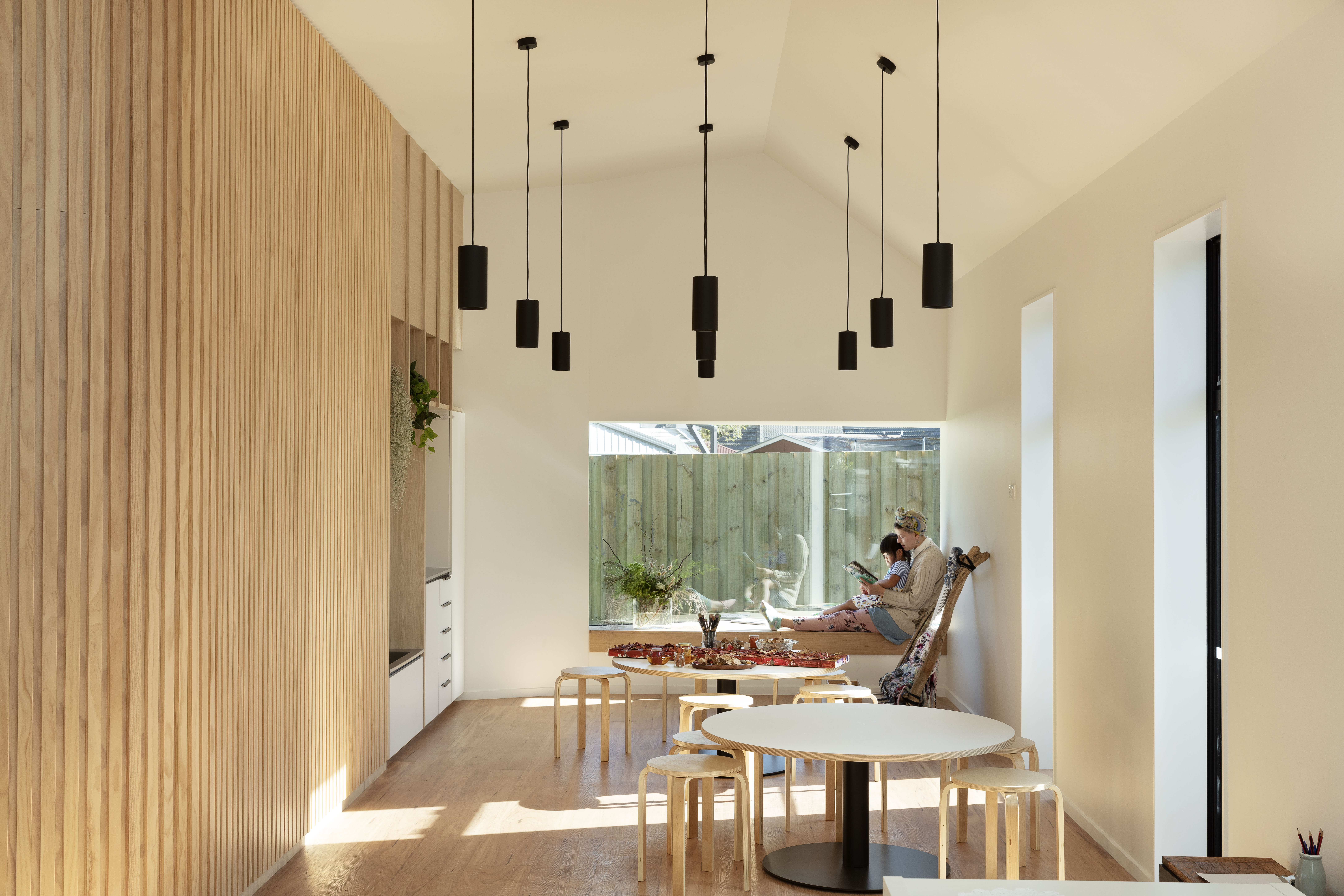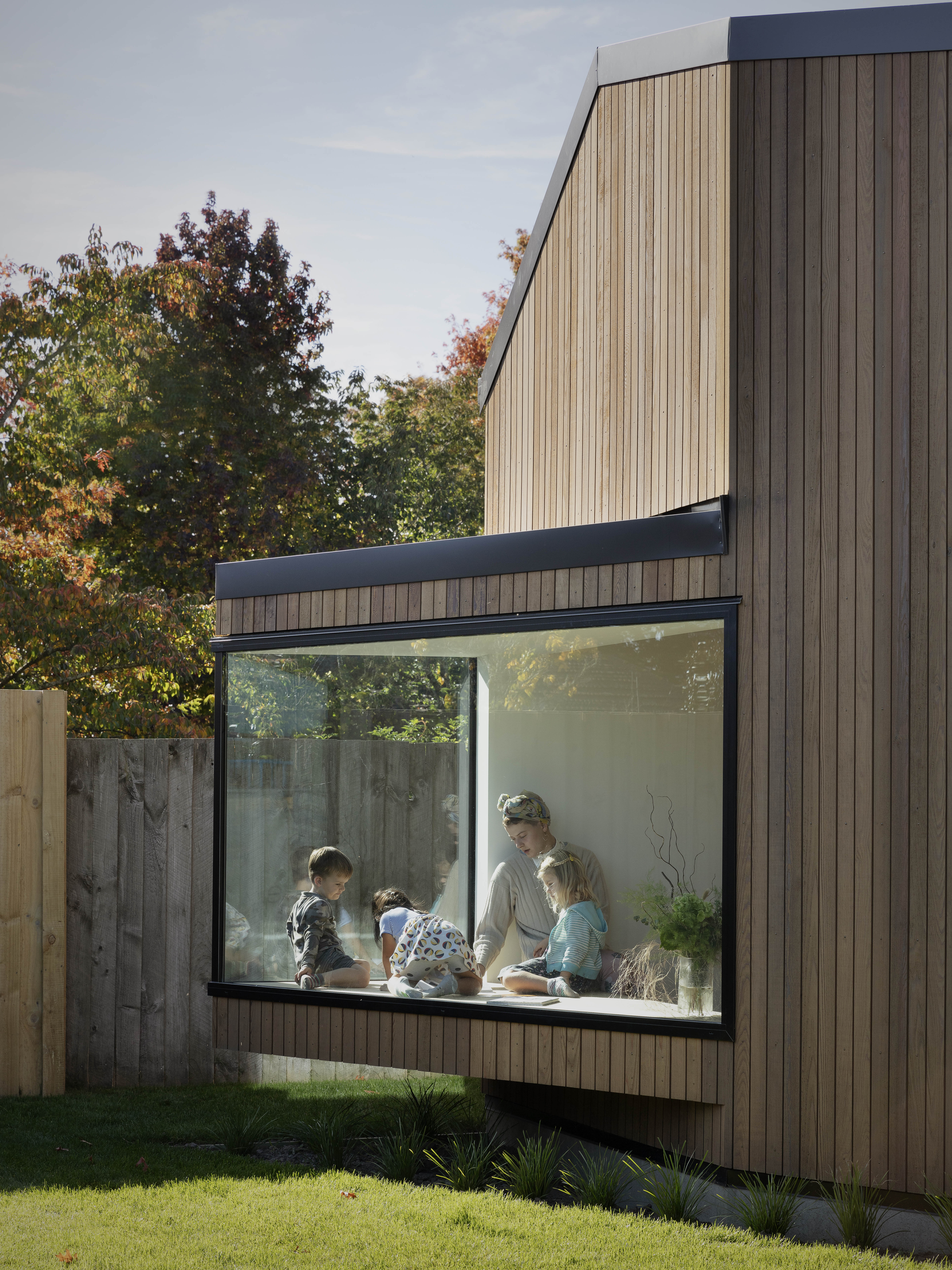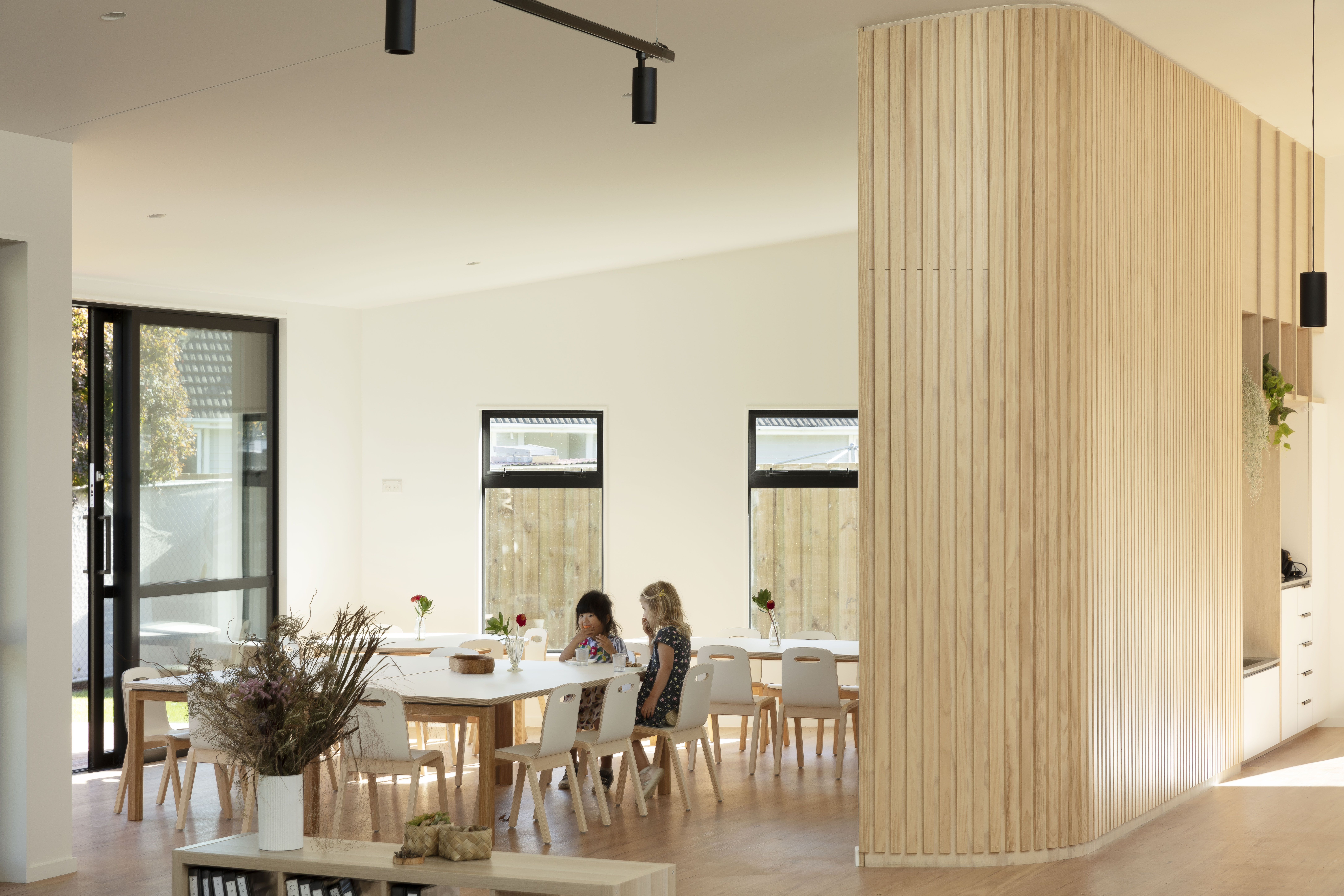 This preschool building turns its back to the street to create an enclosed space where children can interact and respond to the play of light, shadow, texture and reflection created by its architecture. Deliberately residential in scale and material, Te Tipu feels familiar and intimate, with a calm and neutral interior and a flexible framework that facilitates creativity, investigation and reflection. A playful sequence of associated spaces, divided and connected by a central battened timber wall, allows visual connection and separation between a pair of opposing ateliers. Exceeding its role on an established preschool site, this building has become a teaching tool that celebrates the sensory experiences of architecture.
