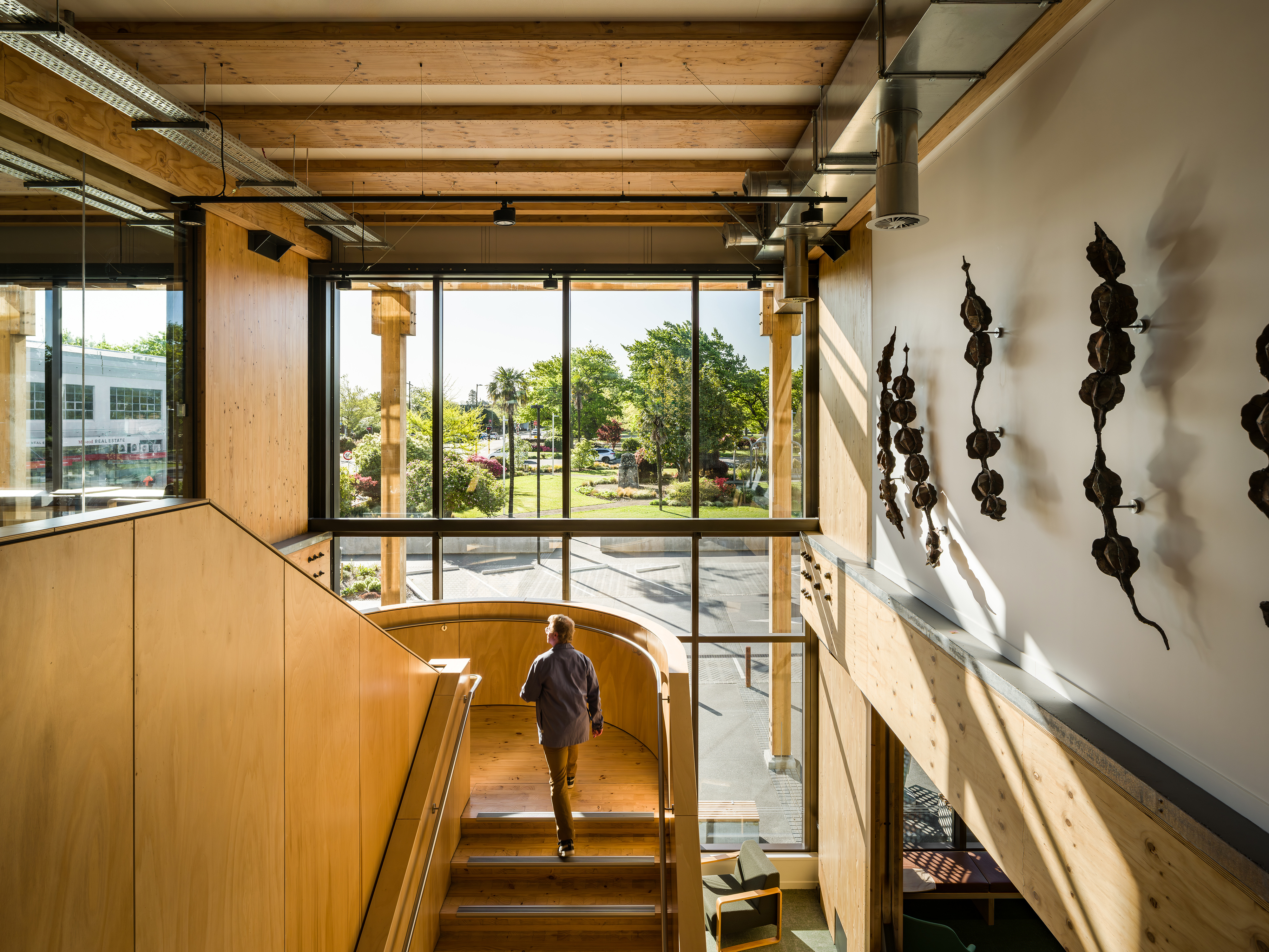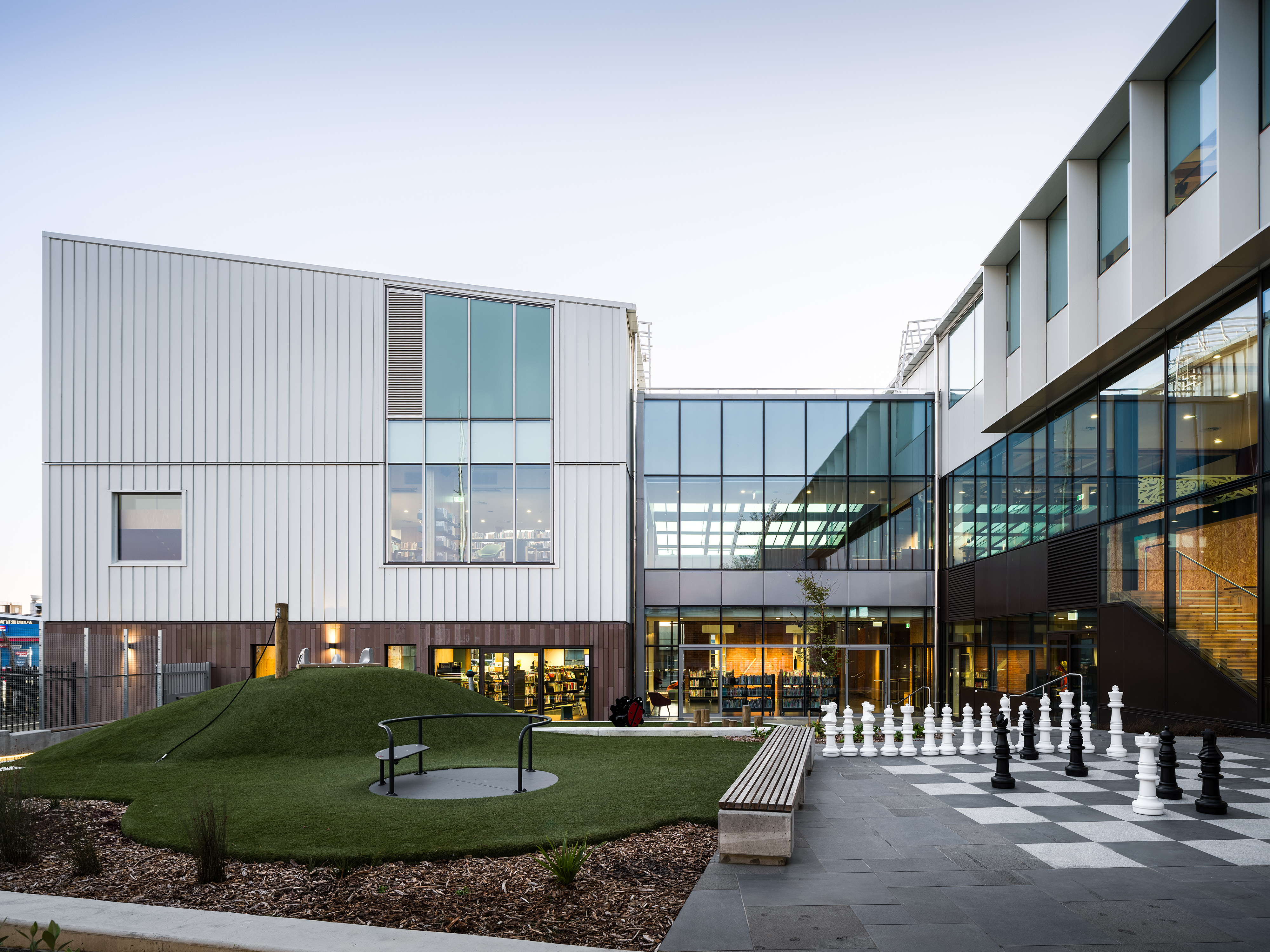 A benchmark for contemporary civic architecture in Aotearoa, Te Whare Whakatere unites cultural expression, functional excellence, and sustainability in a single cohesive form. Designed to serve Ashburton’s growing needs, the building includes a state-of-the-art library, Council offices, Emergency Operations Centre, public event spaces, and integrated amenities. It welcomes and reflects its community through collaboration with mana whenua. Material references to the region’s farming identity—mass timber, pivot-inspired trusses, and silo-like mesh—anchor it firmly in place. Historic Pioneer Hall is thoughtfully restored within the children’s library, while artesian heating and energy strategies support long-term resilience. A civic building of meaning, purpose and place.