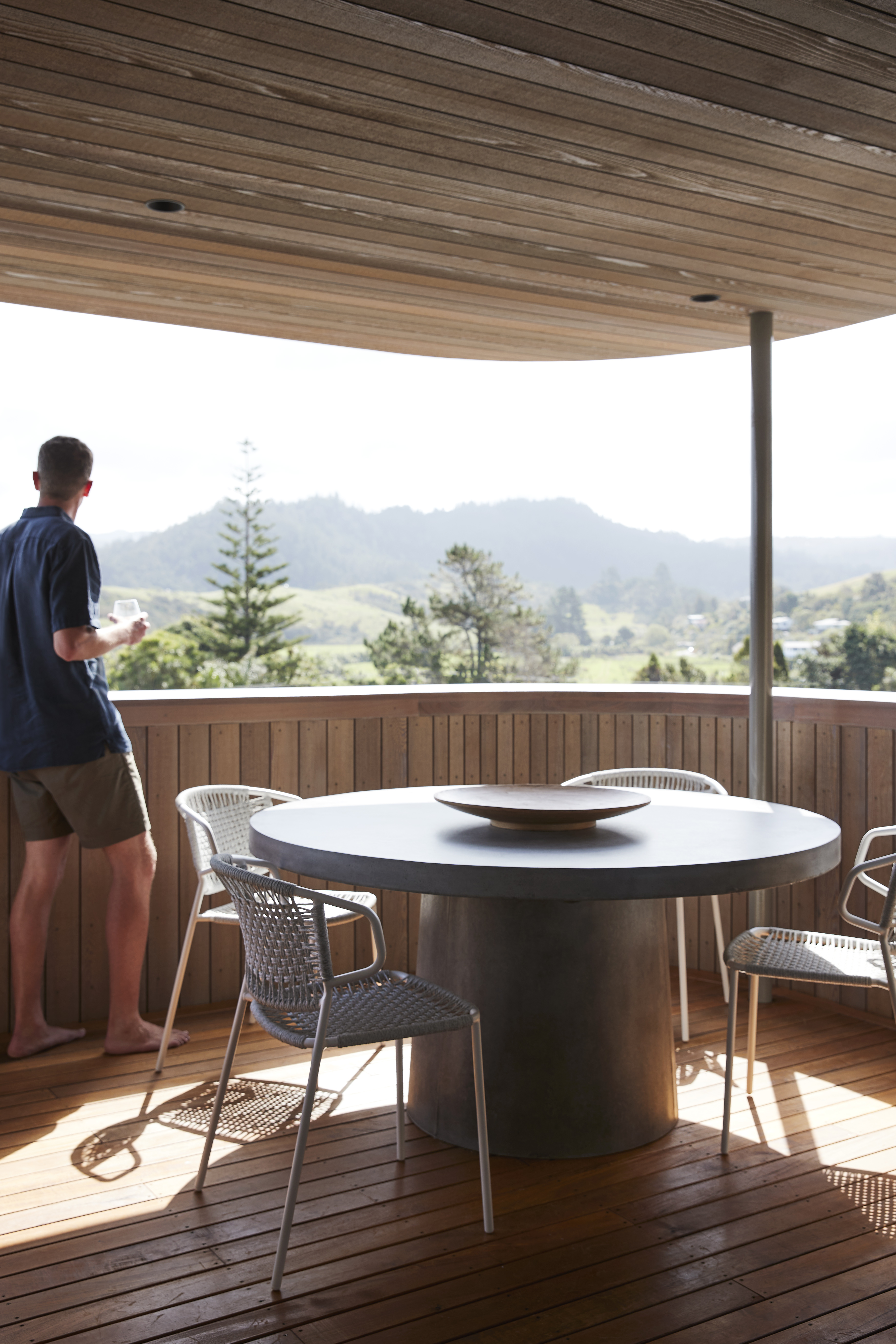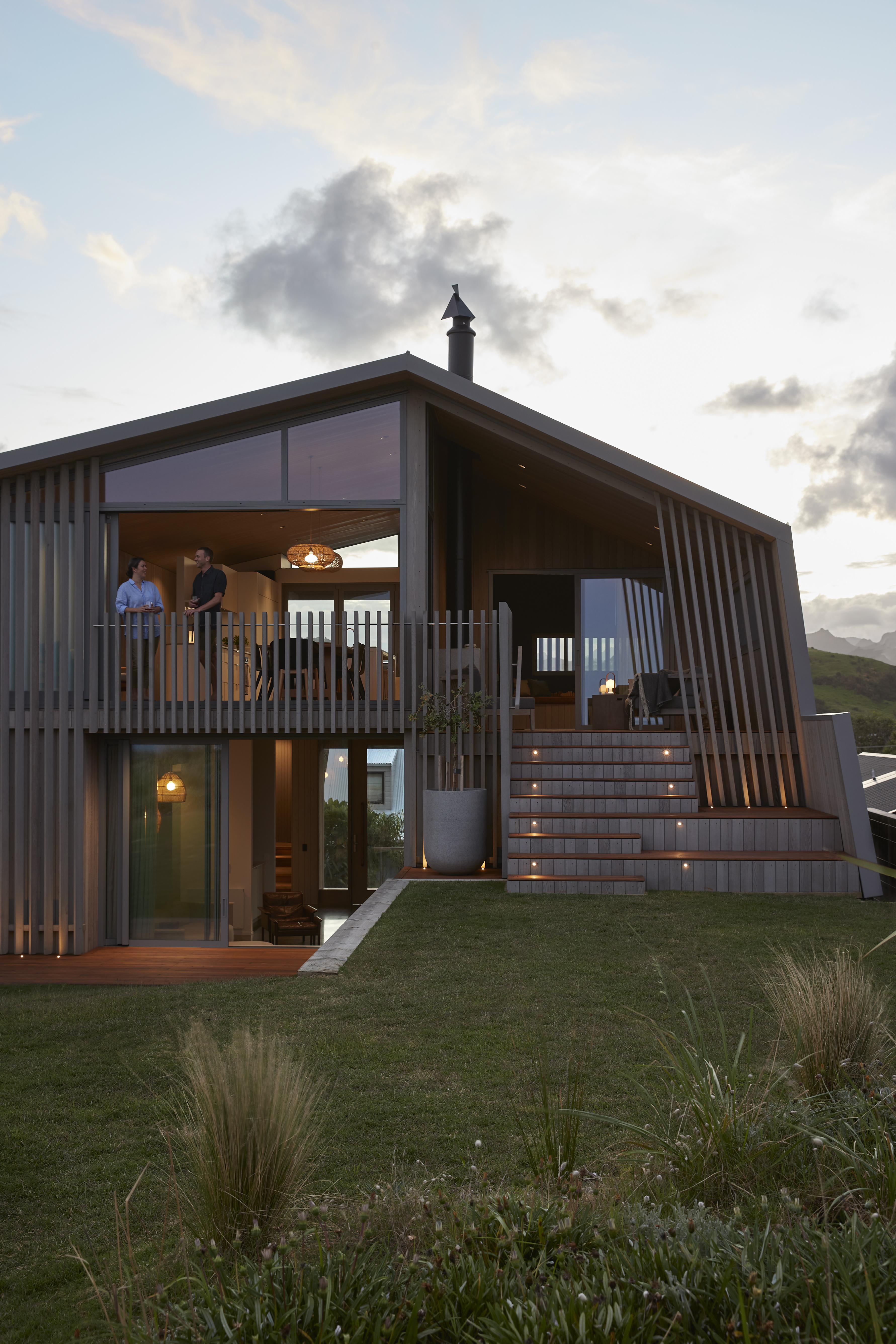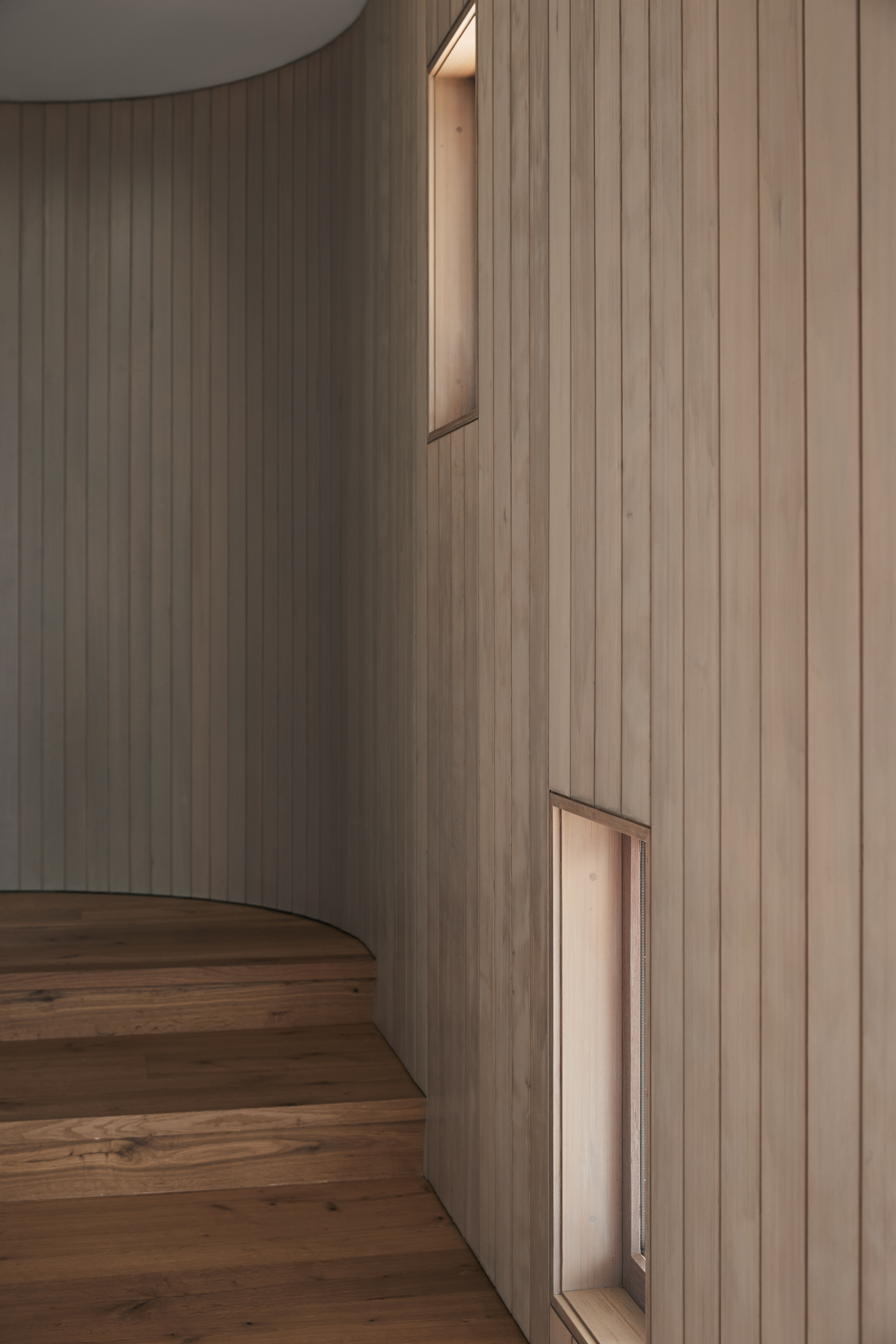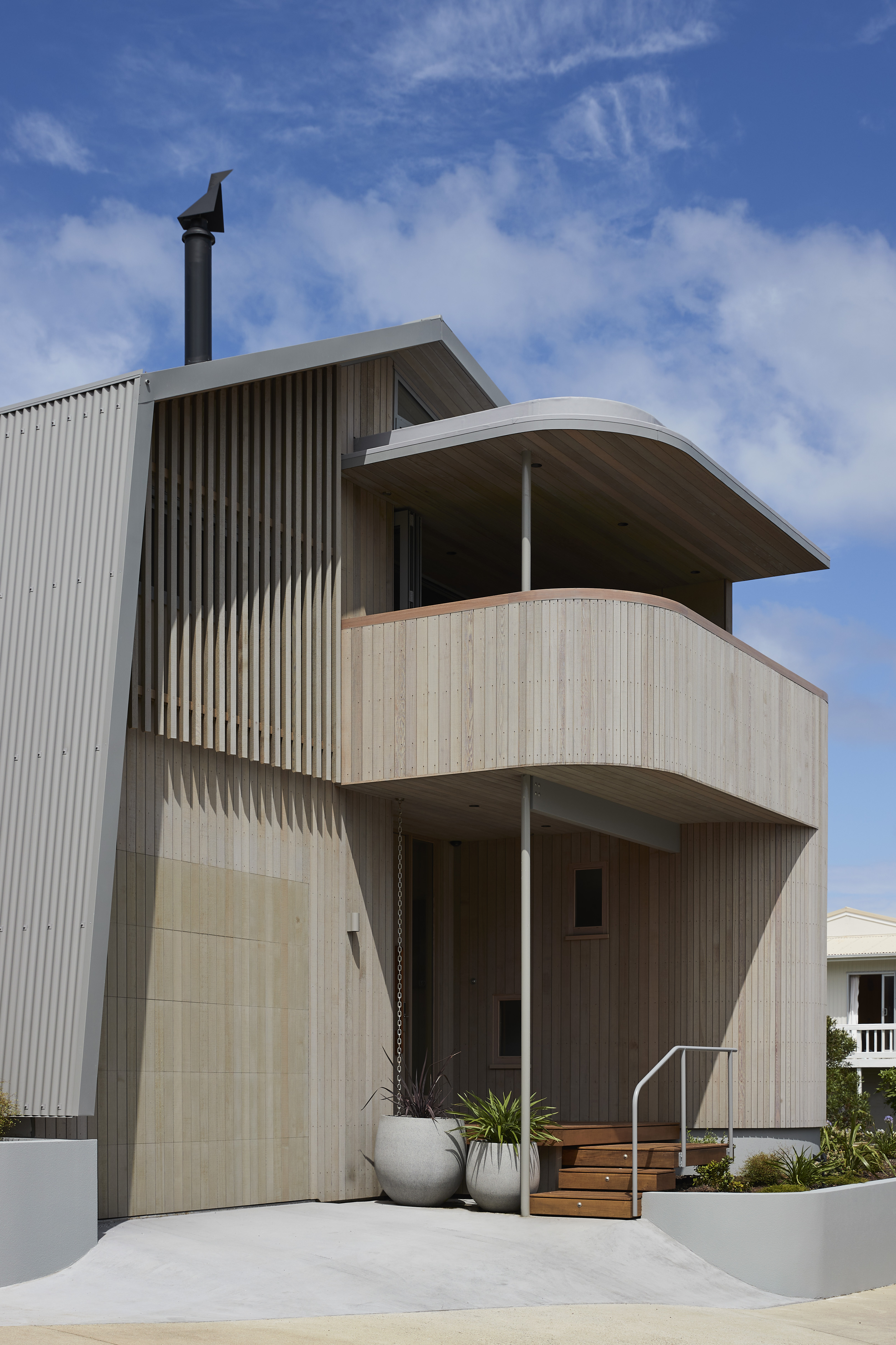 The simplicity of the Tent House form belies a masterful response to a constrained site, while clearly evoking a beachside vernacular in its form. Expertly resolved levels create effortless circulation horizontally and vertically throughout the home, interfacing with site in a myriad of considered ways. Openings and decks are uniquely articulated based on use, views, shelter and privacy. Externally, material selection, its usage and detailing, are determined by robustness, spatial orientation and building concept. A predominant colour palette of whitewashed timber, powdered blues and sandstone grey is refined and restrained yet sophisticated throughout. An example of leading-edge architectural thought and execution.