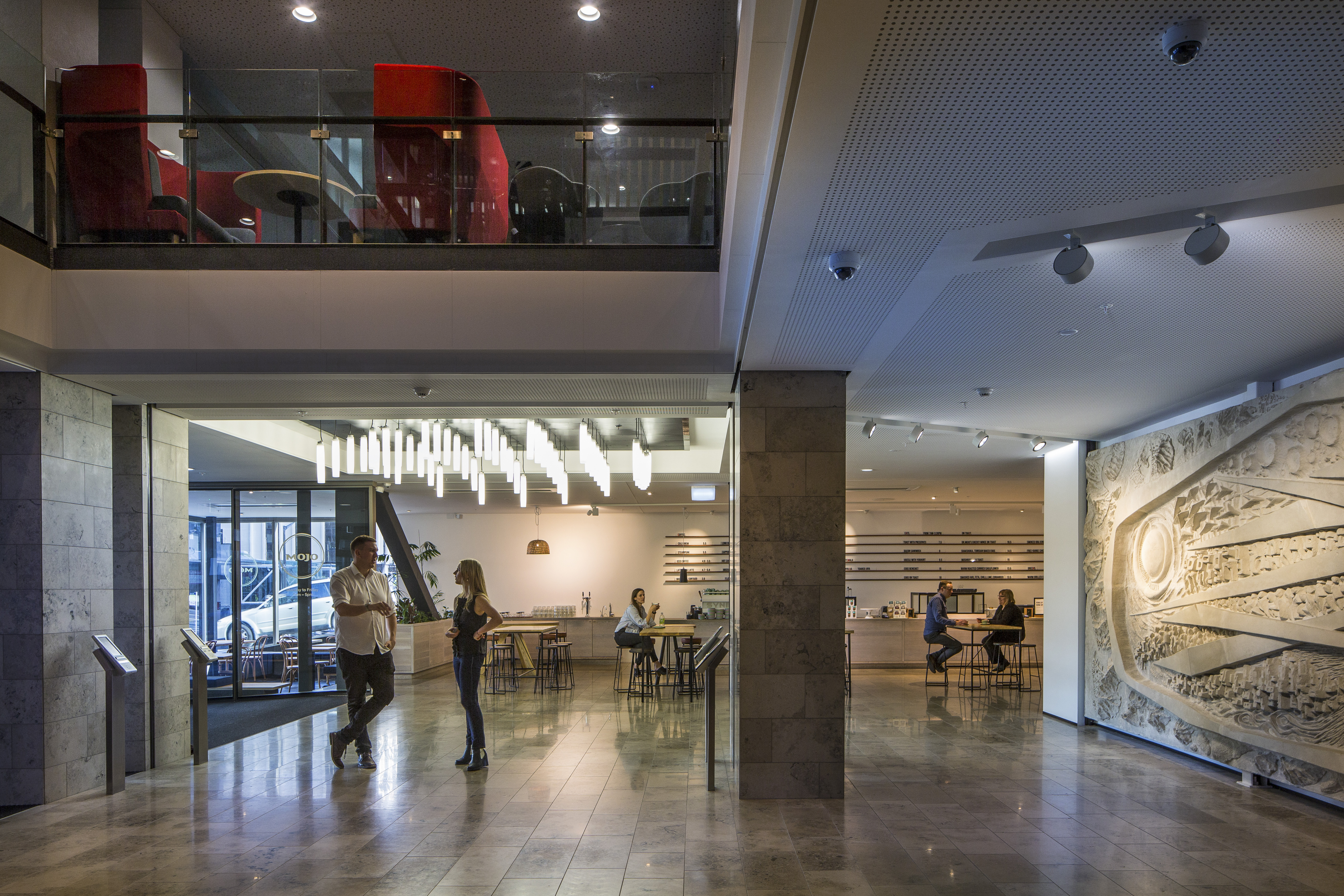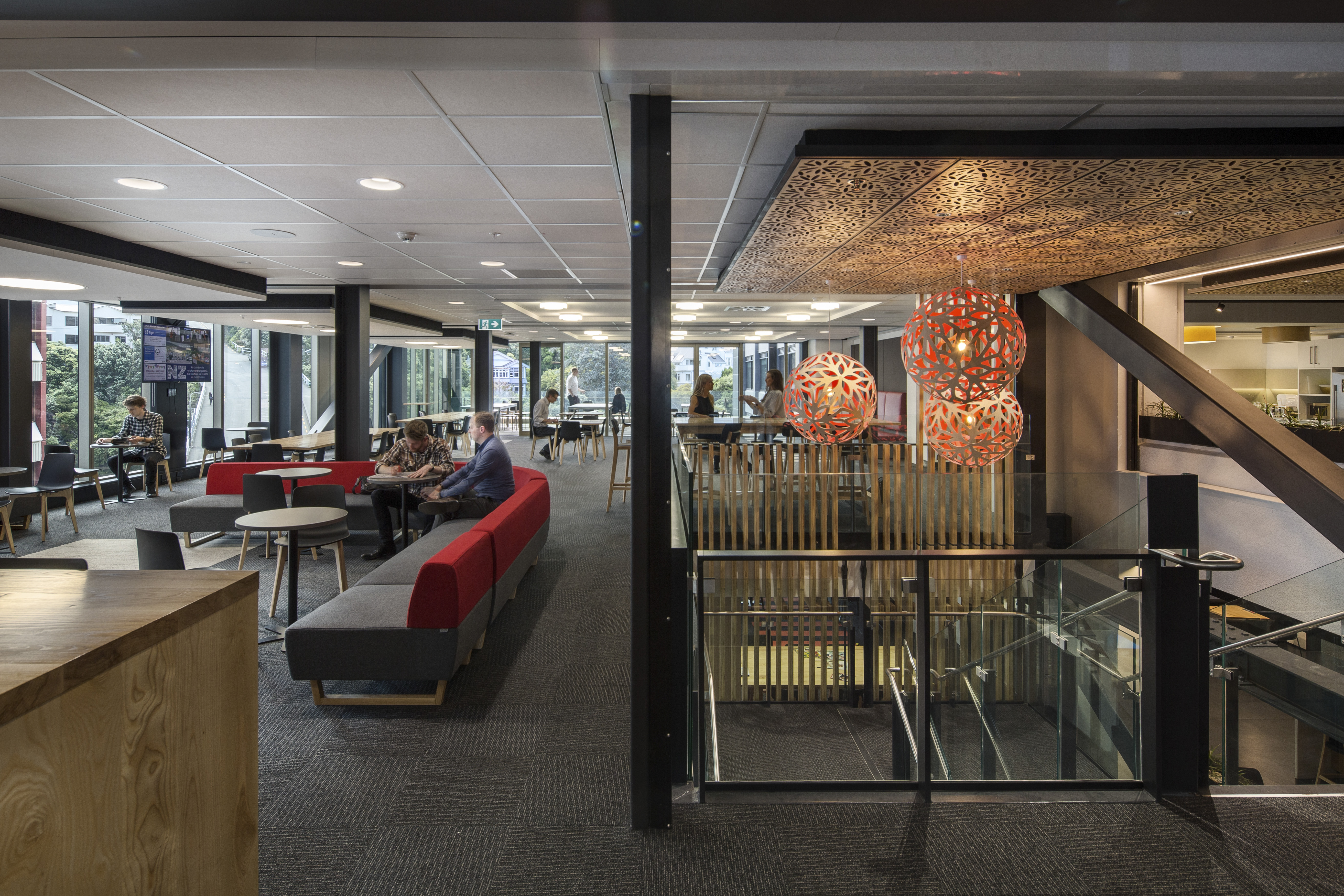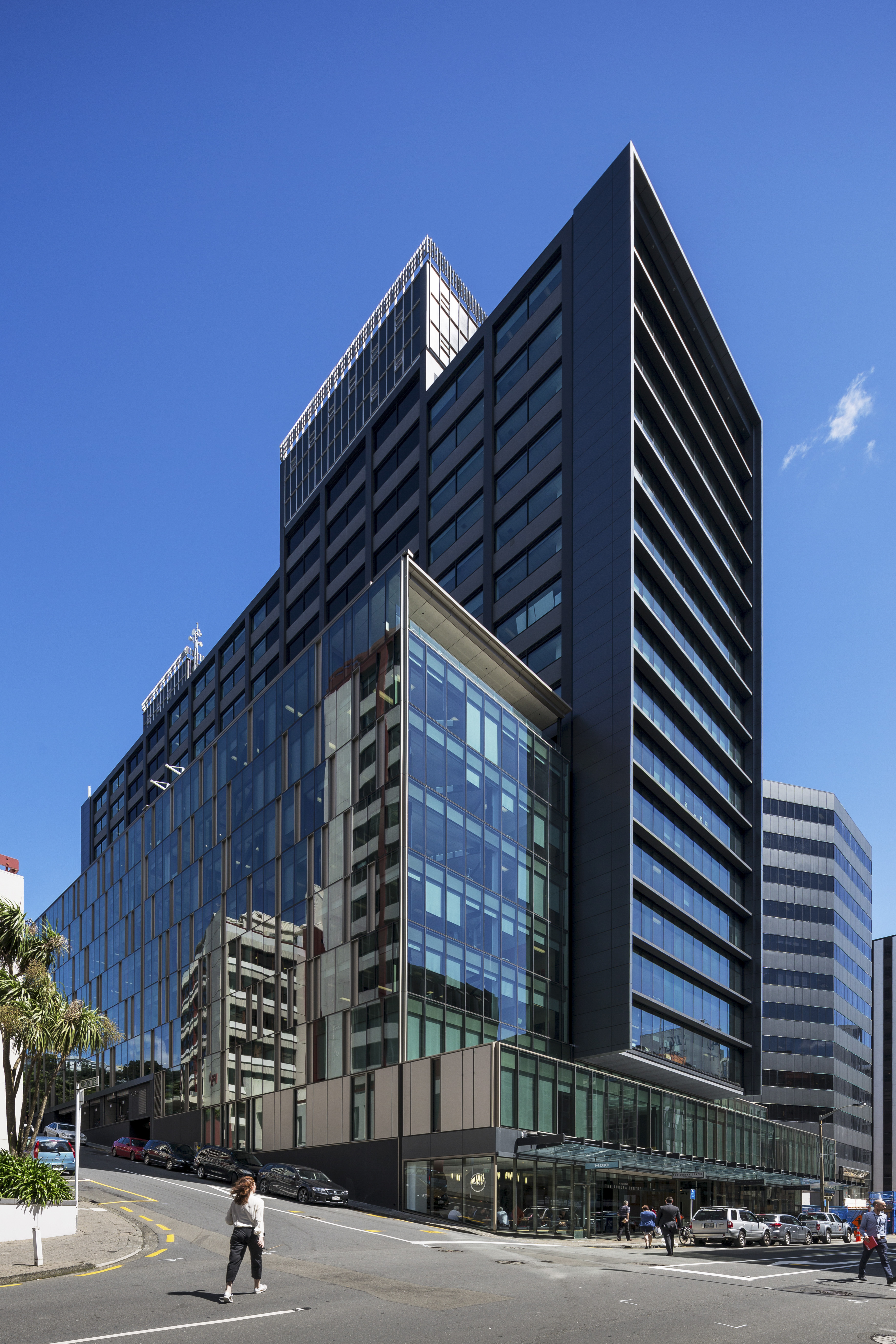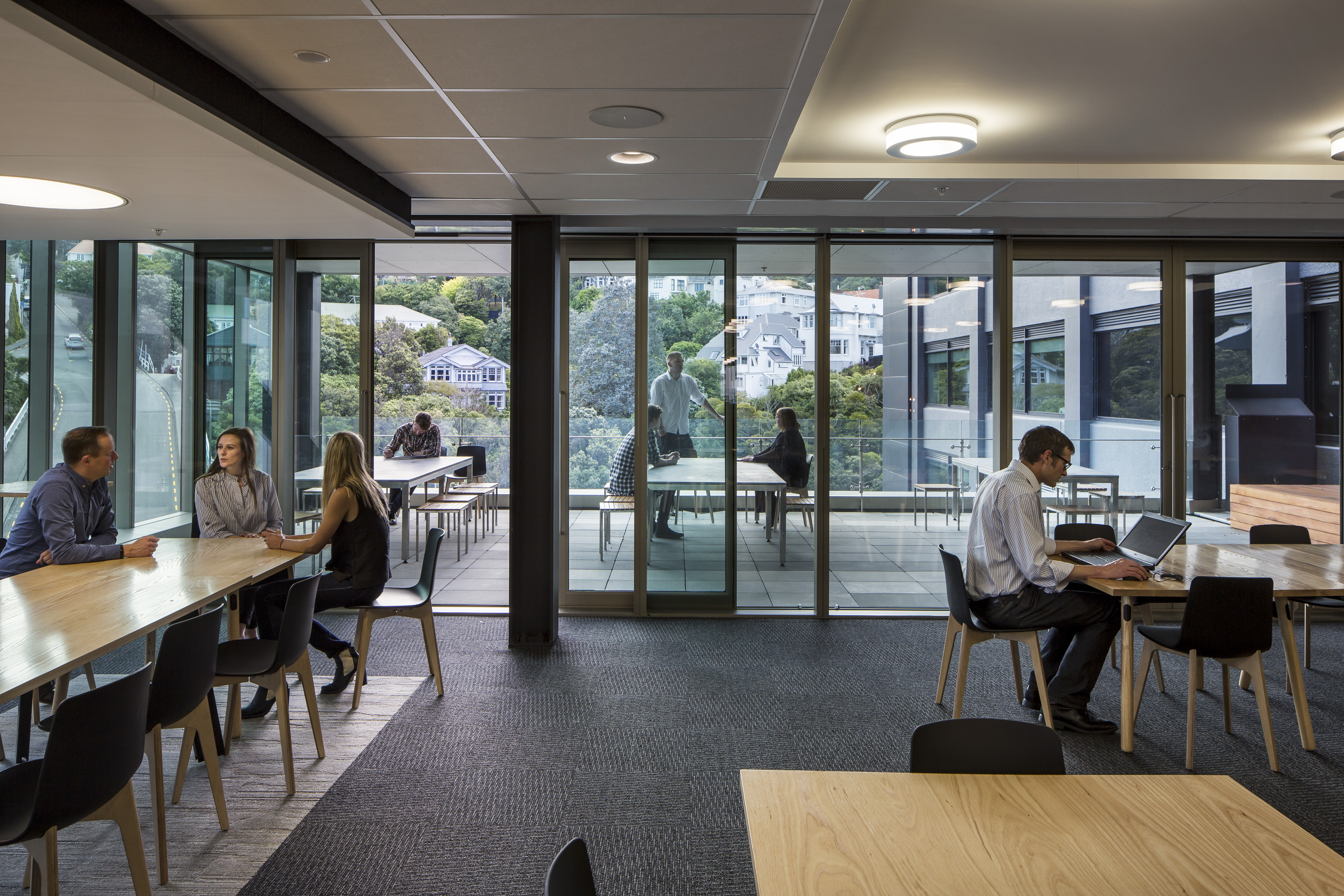 Aurora Centre impressively solves the challenge of unifying two disparate existing buildings into a cohesive whole. A new pavilion stretches along the length of The Terrace providing cover at street level and an active edge of hospitality and retail. These, and the spacious, sumptuous new foyer are very transparent from the street, increasing the engagement in both directions. The complexity of resolving the seismic upgrades while joining all the separate floor plates into one workable whole is confidently resolved. This building makes a very positive contribution to the broader urban context while satisfying the demanding needs of a large-scale government ministry.