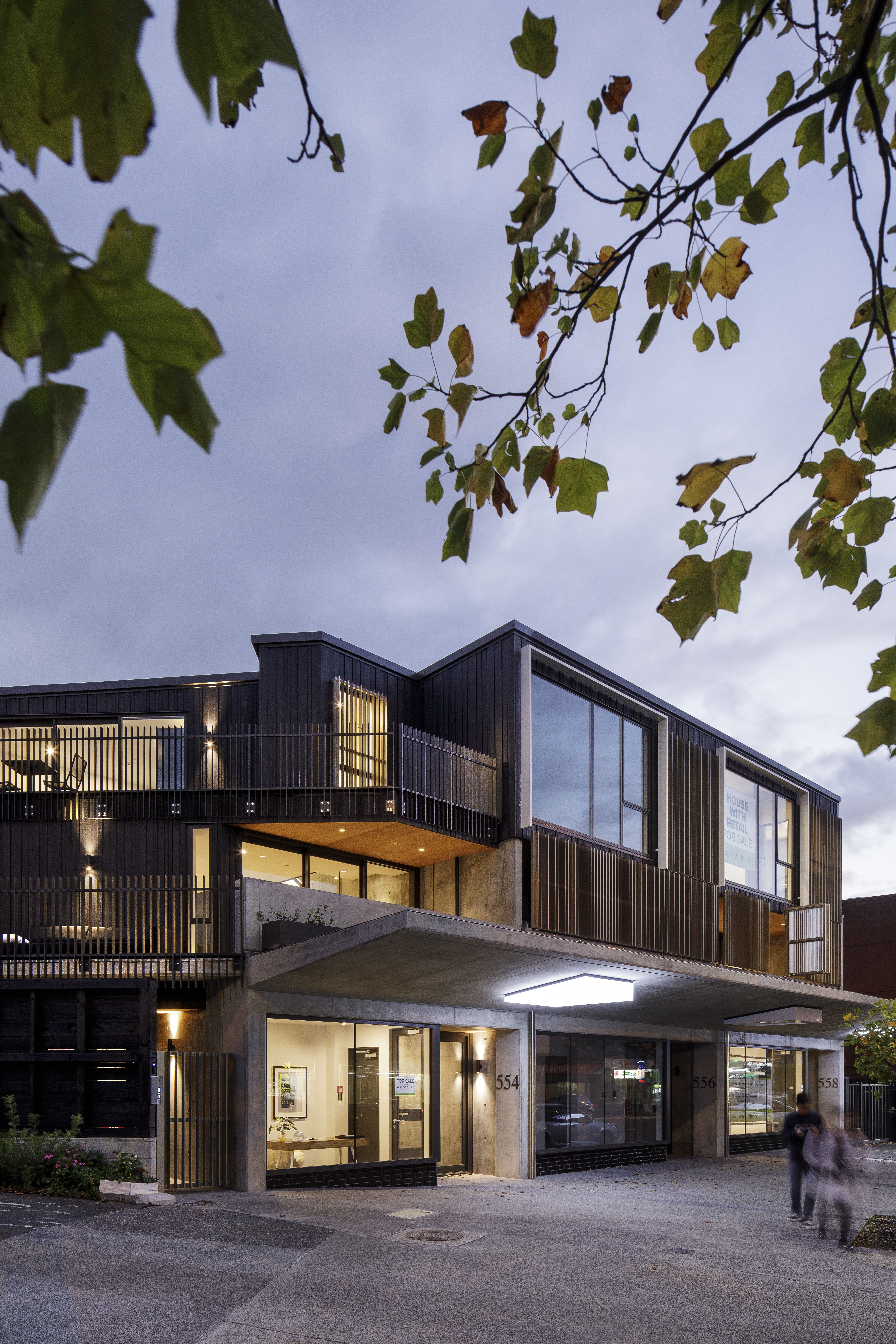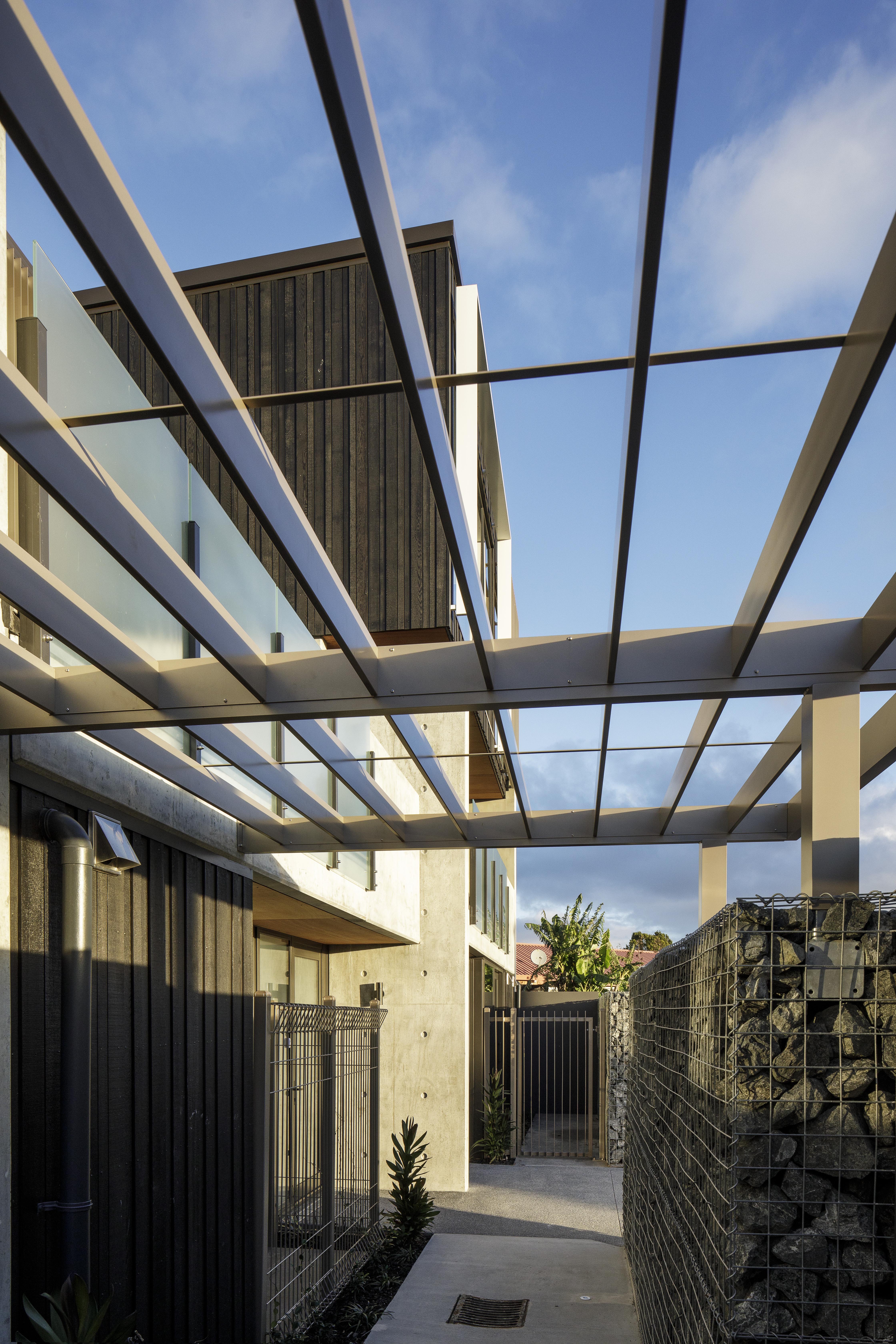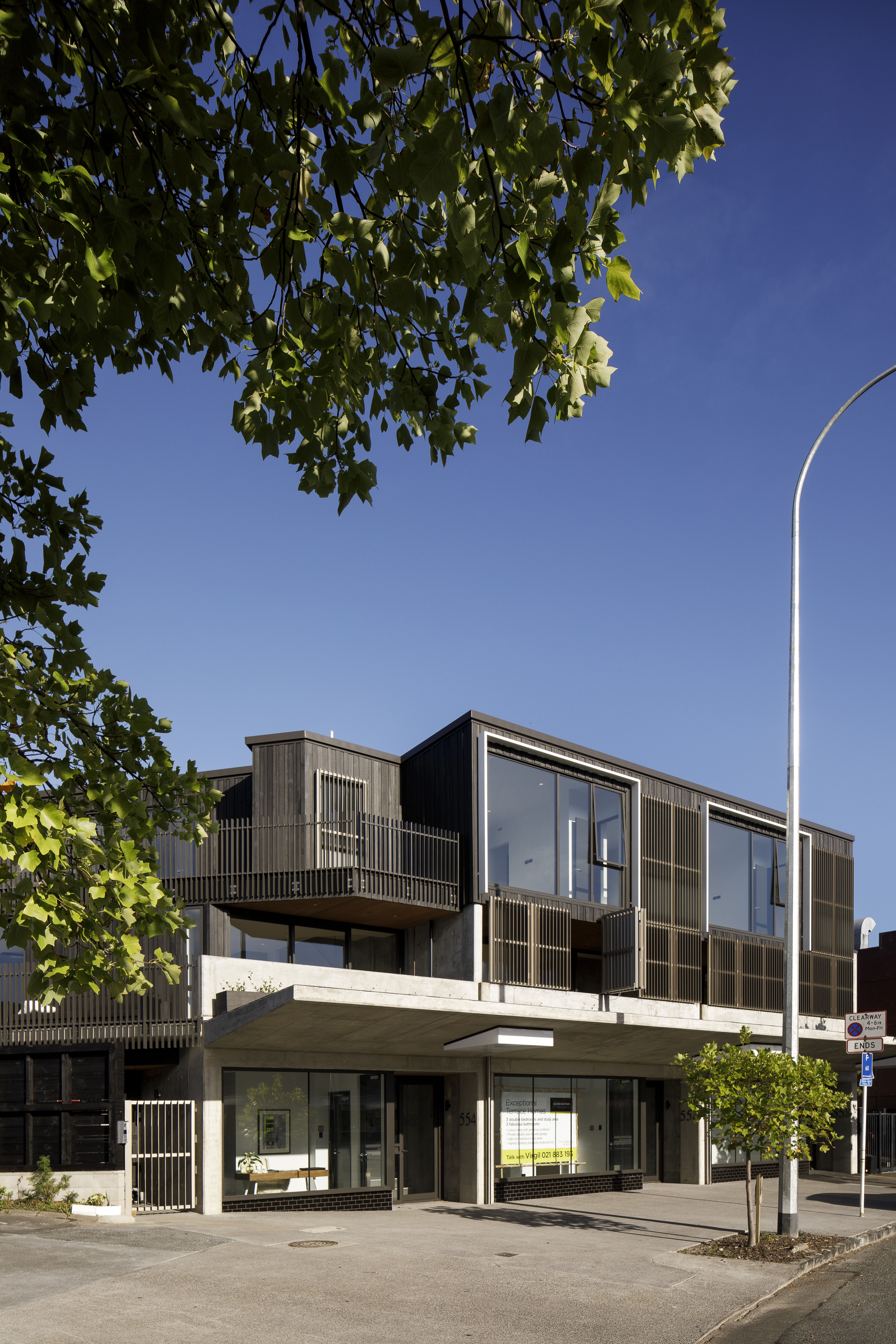 In response to the Council’s urban design objectives, this project has incorporated small tenancies as well as live-work options. Sitting comfortably between a commercial street and residential cul-de-sac, the two street frontages of the development create dynamically different conditions while maintaining the texture and grit of the neighbourhood. The proportion and feel of the apartment terraces are a highlight, as is the quality of concrete and brickwork patterning. The mews-like rear vehicle courtyard is artfully softened by overhead planters.