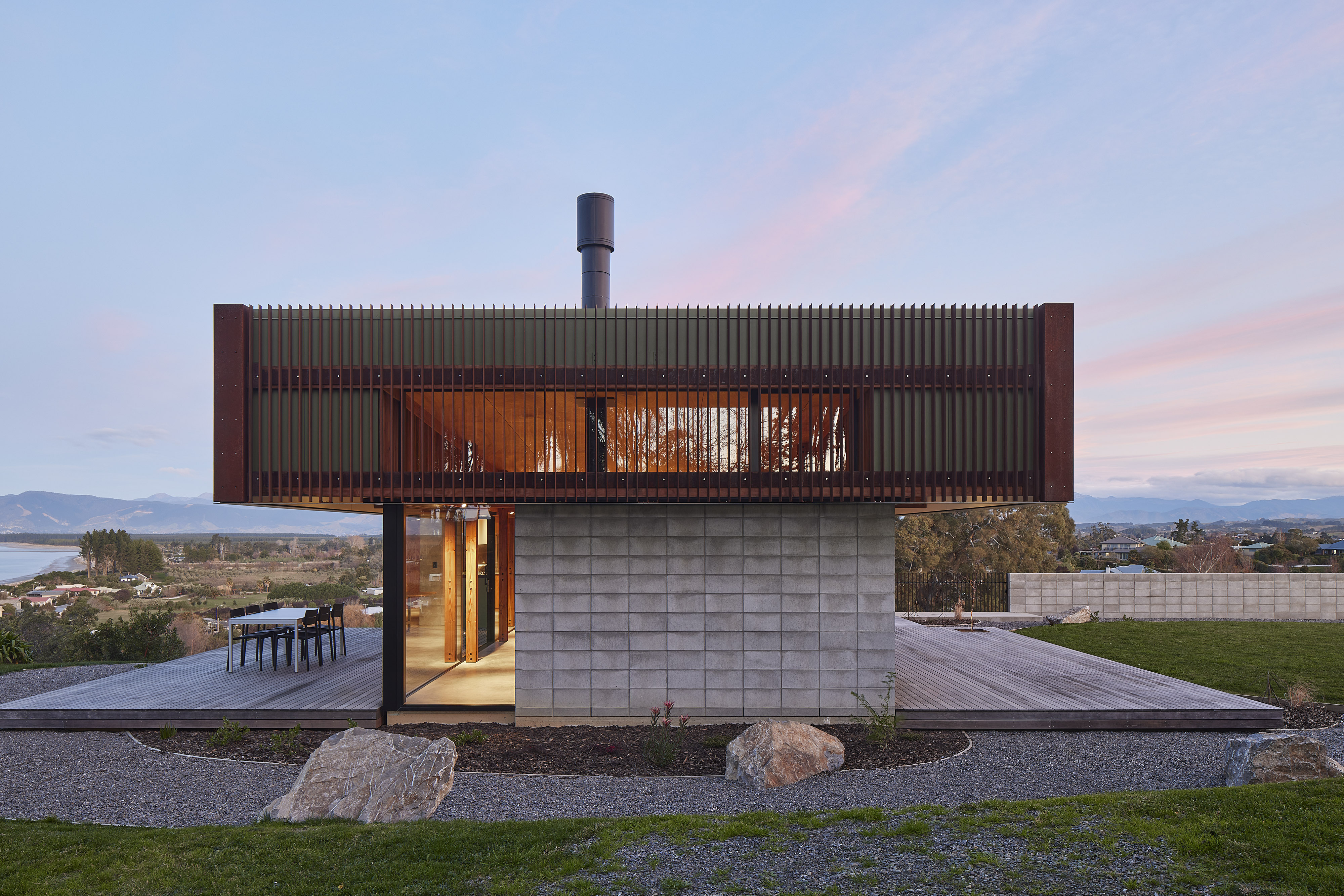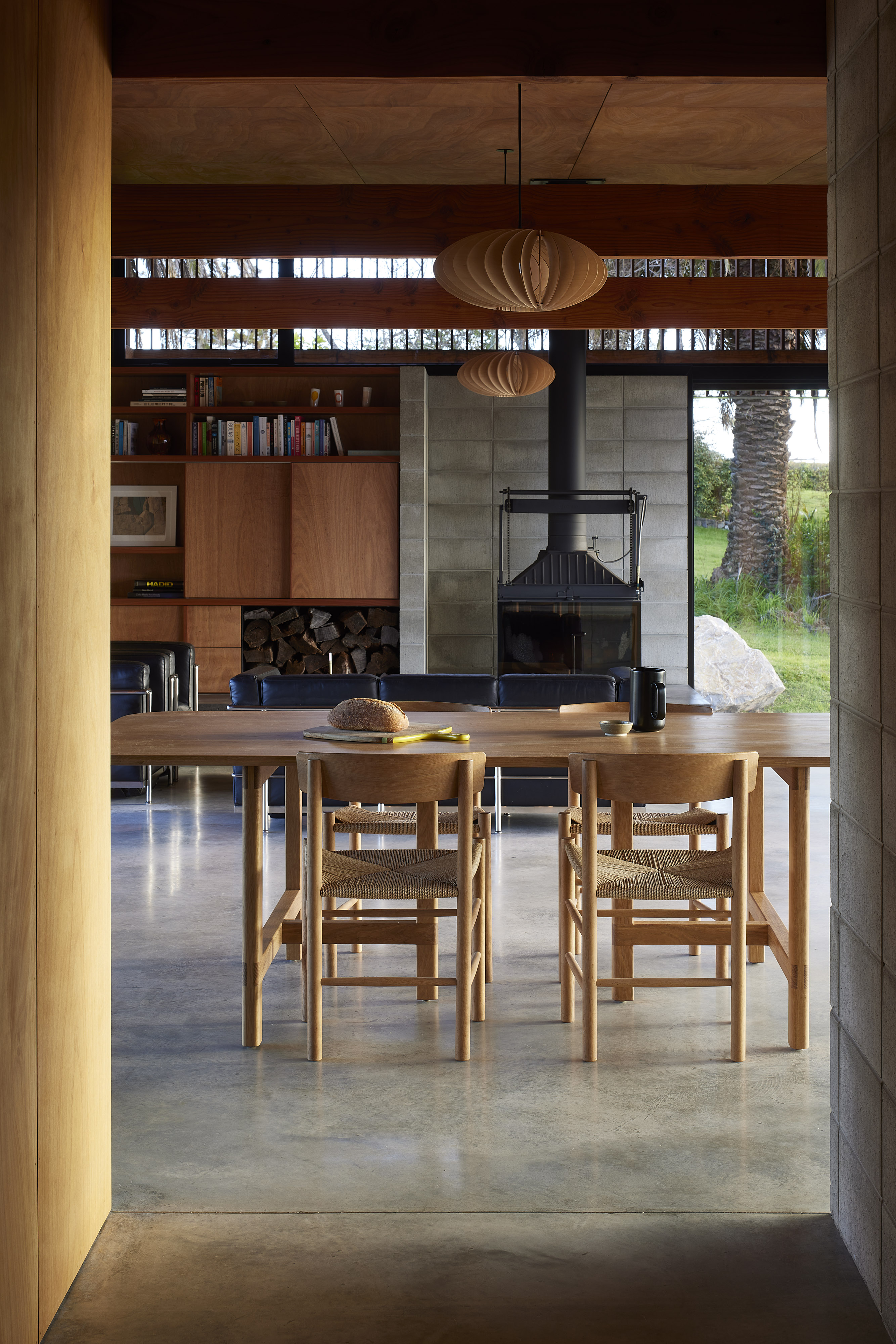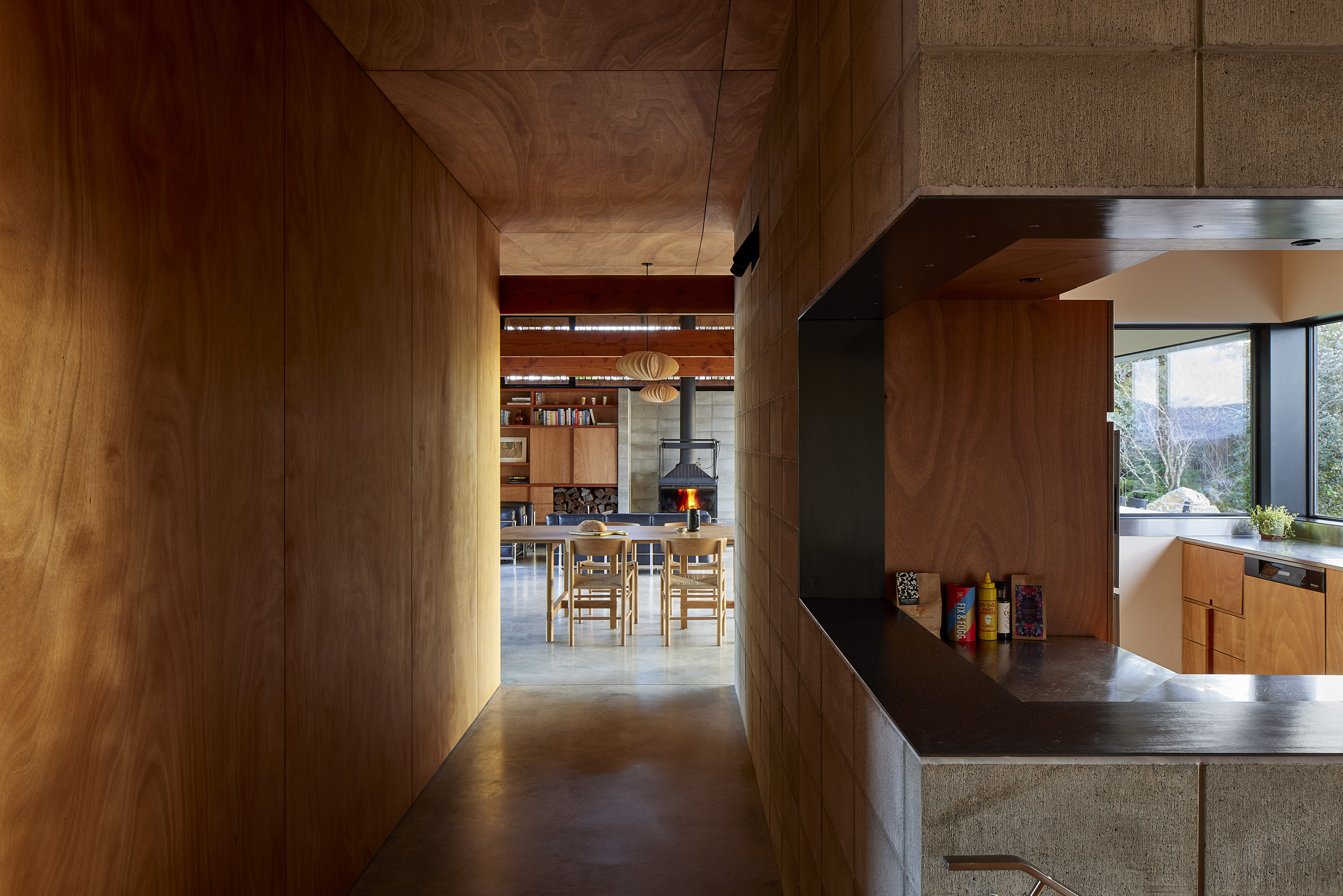 This project was conceived of more than a decade ago, and now stands as testament to the owners’ appreciation for regional modernist architecture and their desire for a design that would consider the different views offered by the site. We experienced the house in an empty state with its new occupants’ boxes ready to unpack. The experience was so rich that it was difficult to register the house as uninhabited or empty. From a distance, the structure is bold presence and arrival is dramatic. Once inside, the scale change embraces and calms the soul. Detailing is meticulous, and every now and then there are quirks that should be out of place yet define the home’s relaxing qualities.