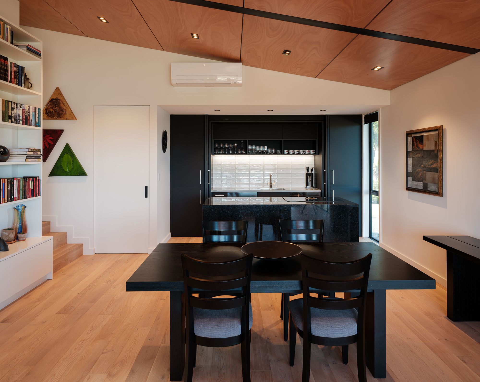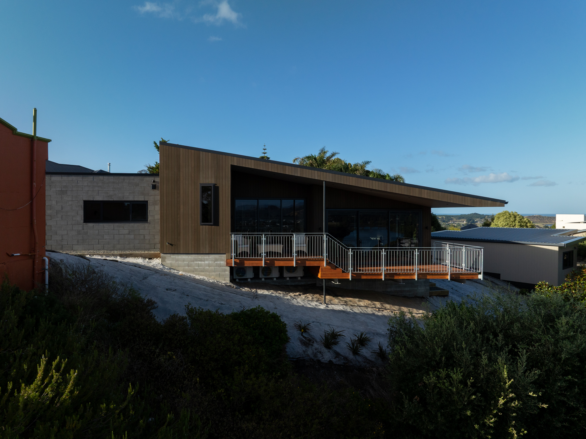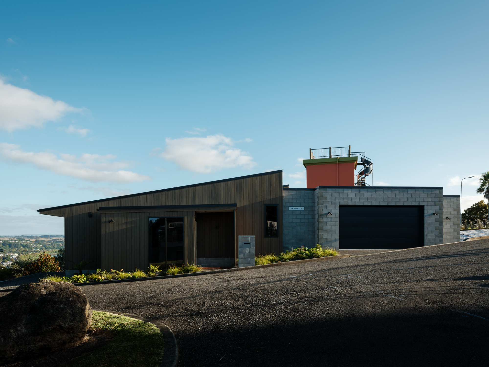 The Mantles, perched on Durie Hill in Whanganui beside the iconic elevator tower, blends seamlessly into the landscape, becoming ‘of the hill.’ Its design artfully balances privacy with semi-public features like a living deck, offering stunning views of Maunga Ruapehu, Maunga Taranaki, the city, and the awa. Collaborating with Dr. Graham Stoop, the project creates a sense of journey through cascading levels and thoughtful transitions. With six dynamic elevations and a prow-like living deck, the home connects indoor spaces to the ever-changing river and hills. The Mantles transforms site complexities into a harmonious design that celebrates both the land and the client’s vision