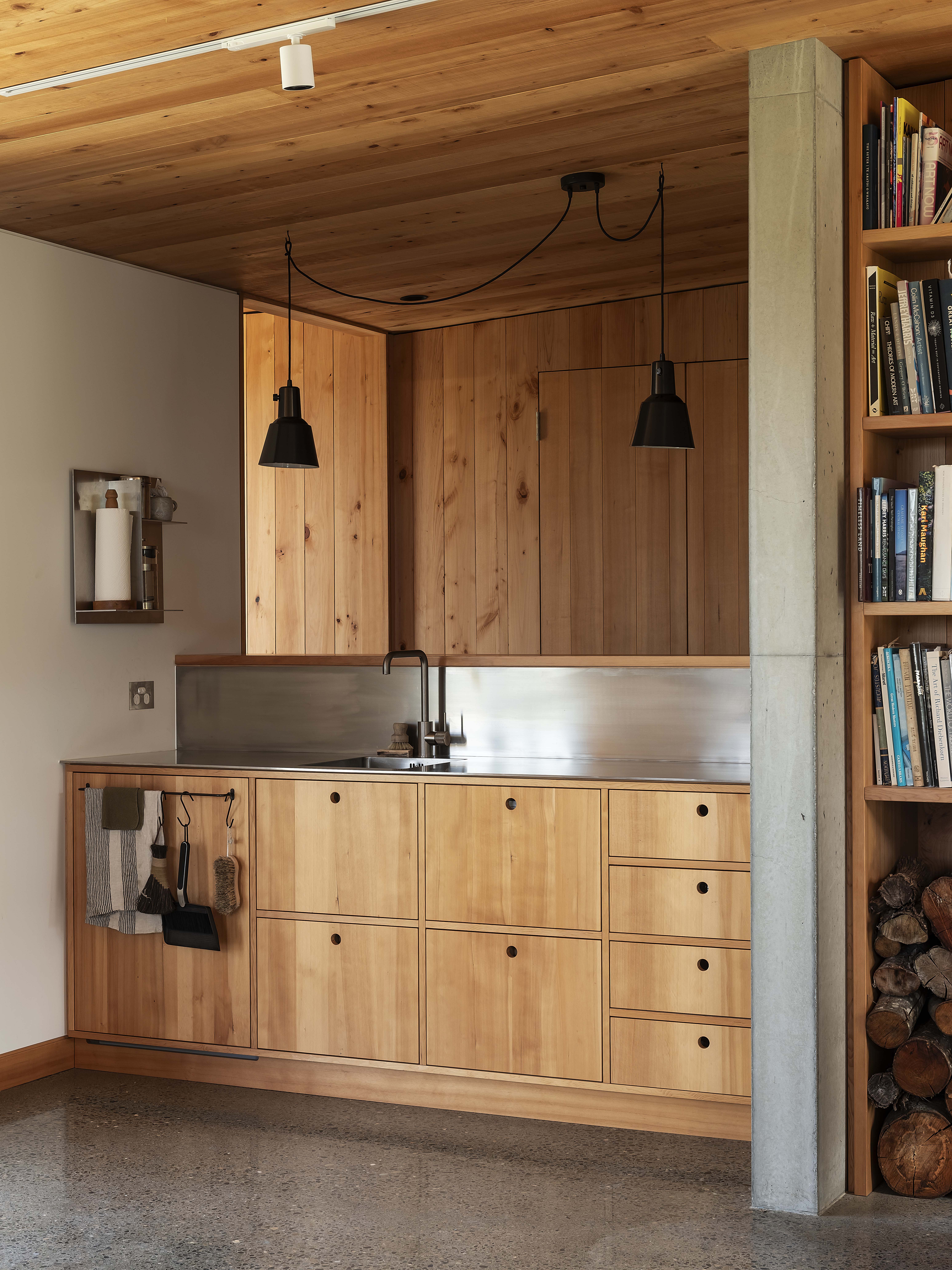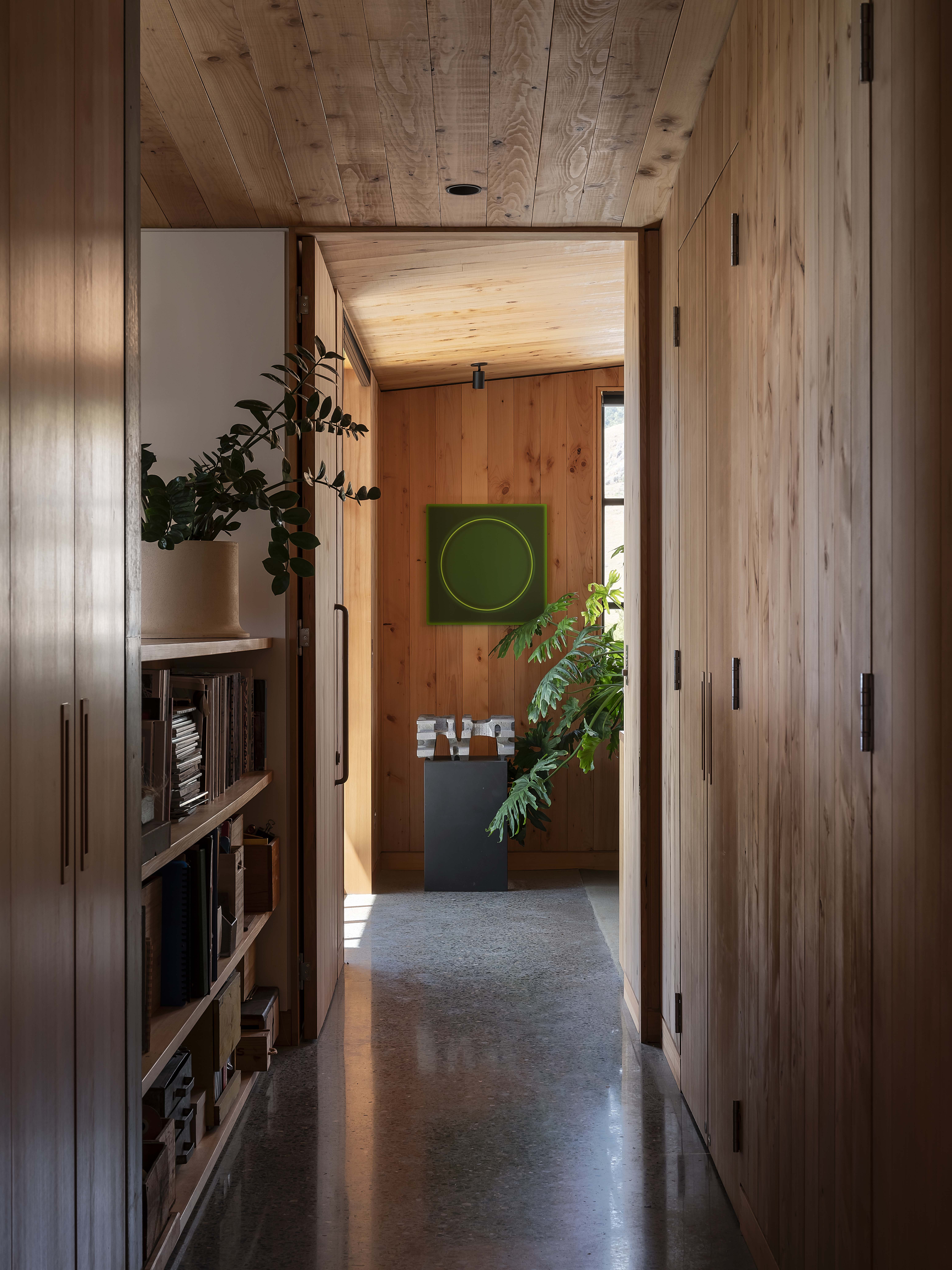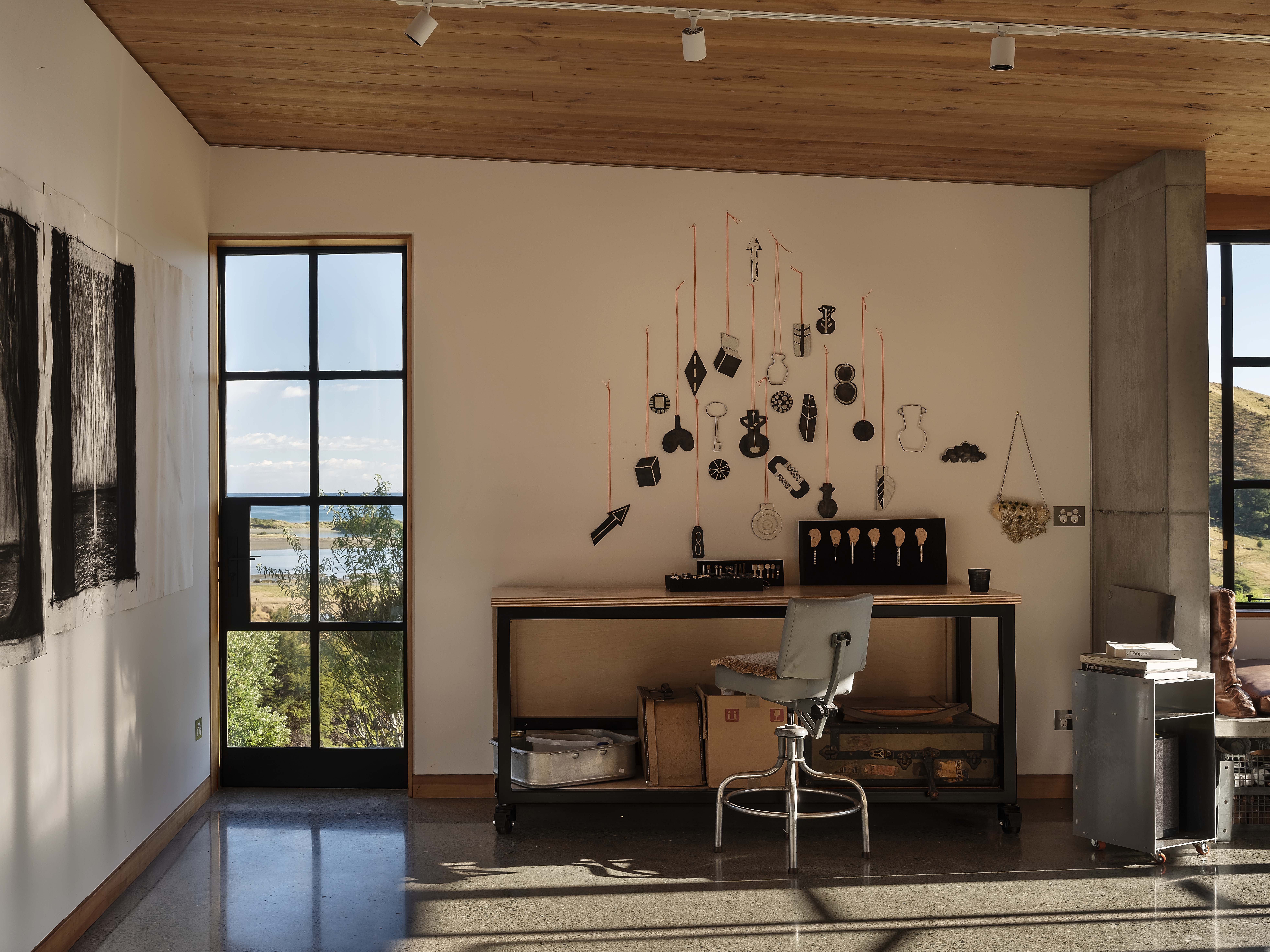 Conceived of as a sculptural response to the artist-owner's needs, the architects have succeeded the brief, according to their client. “I feel one hundred percent of my cells harmonise at a beautiful frequency in this space,” she says of her new art studio. The robust box sits low to retreat in the site and is designed to weather whatever nature brings. The studio is future proofed to provide options for the owners, should they choose to downsize from the current, adjacent home as needs change.