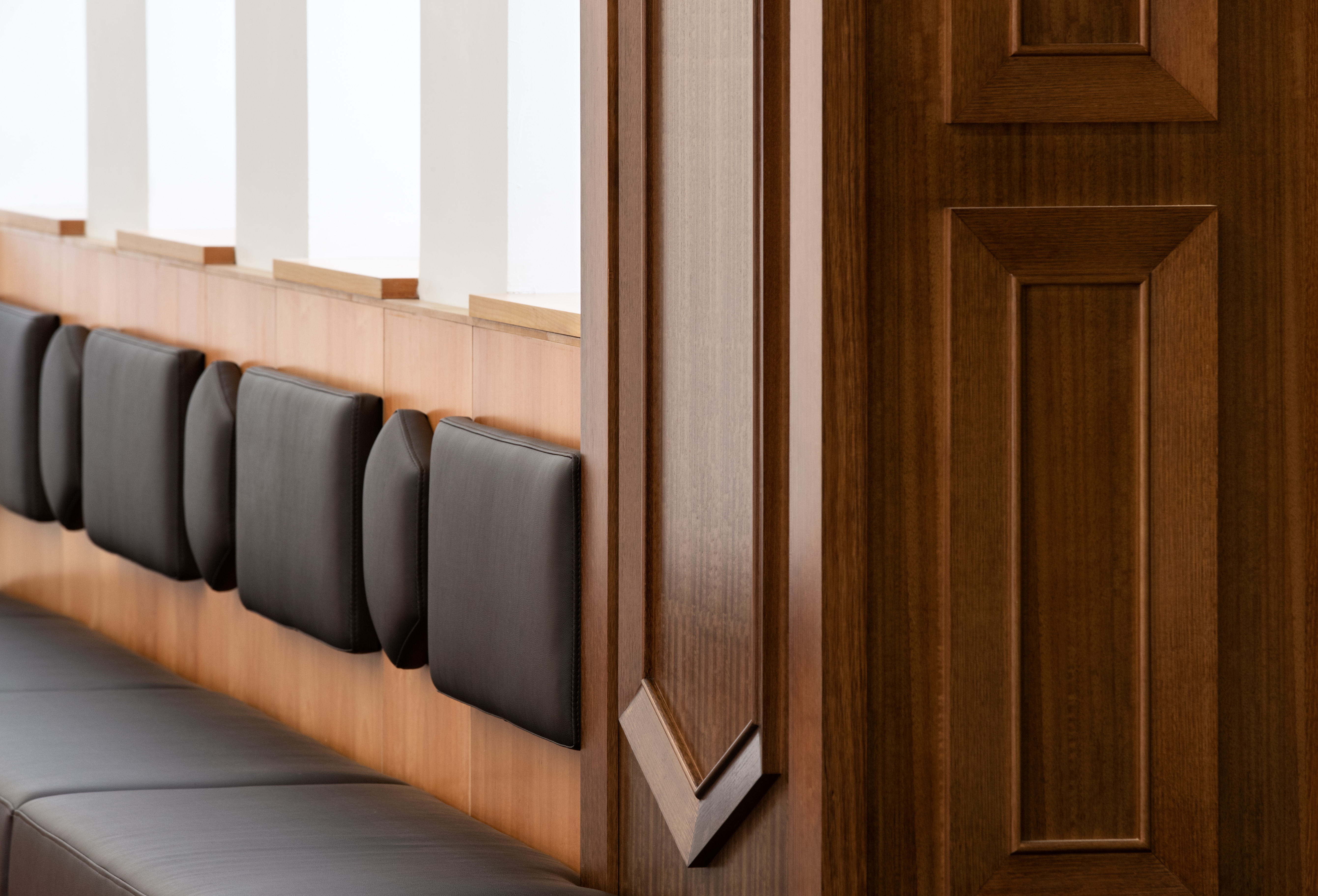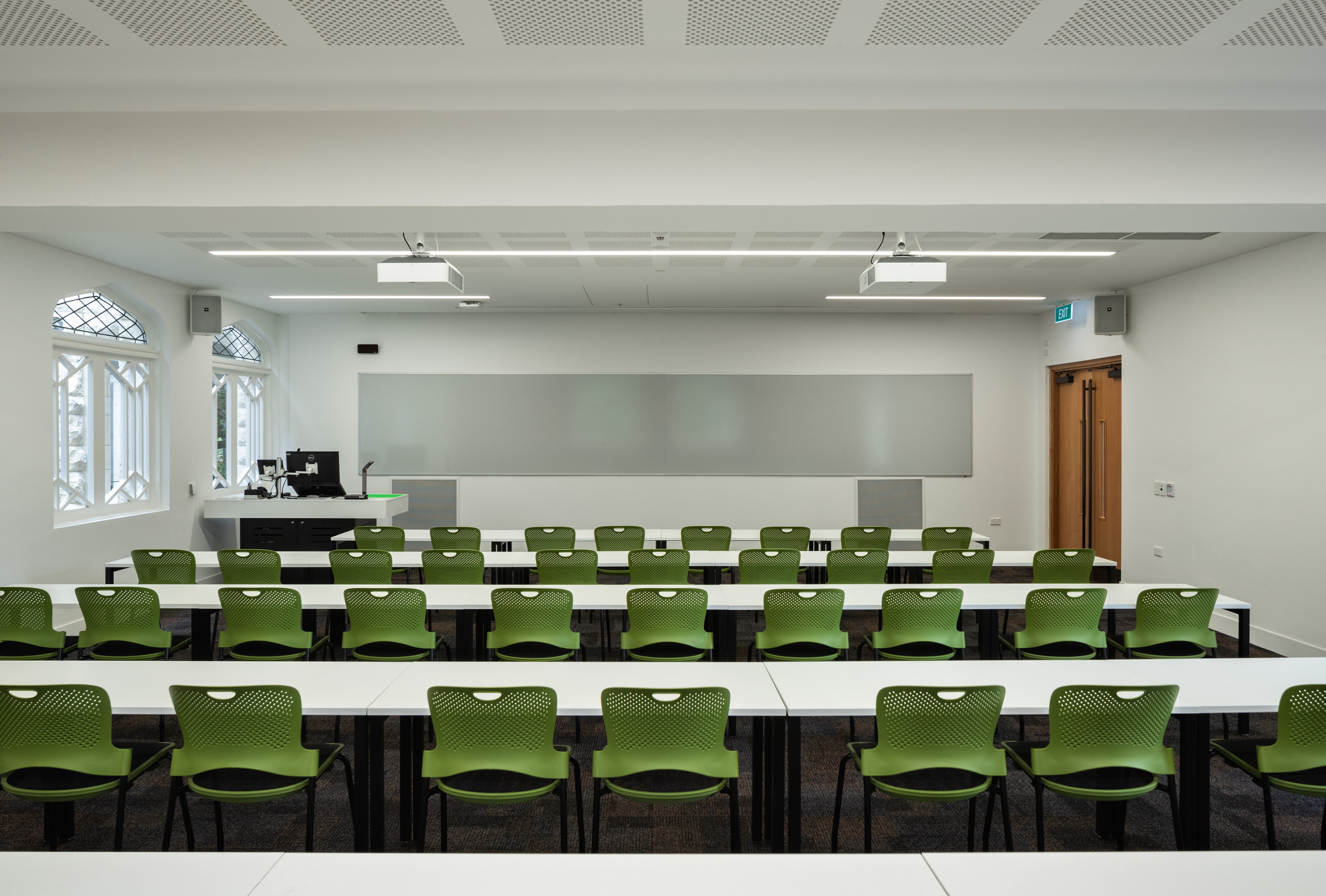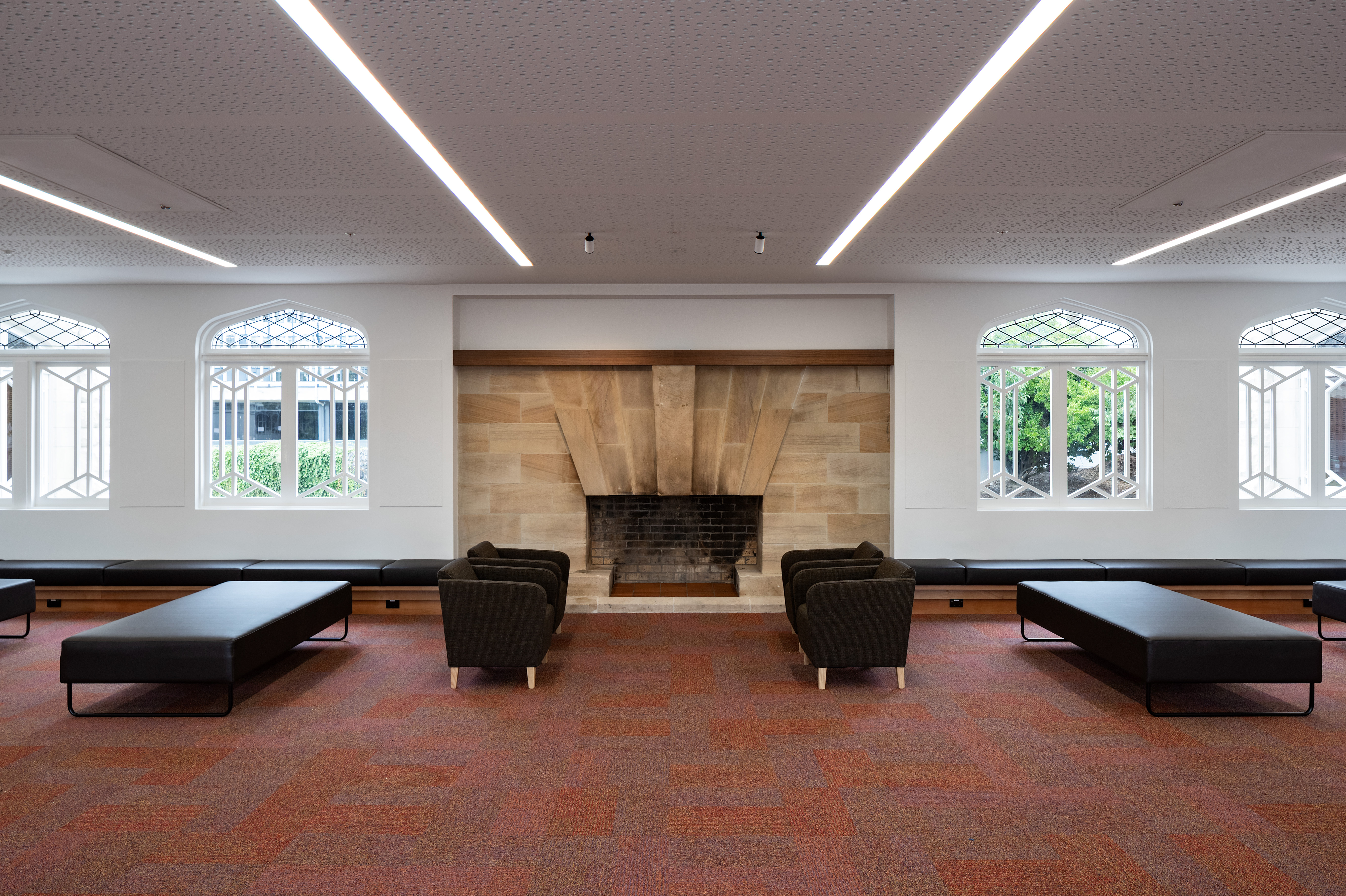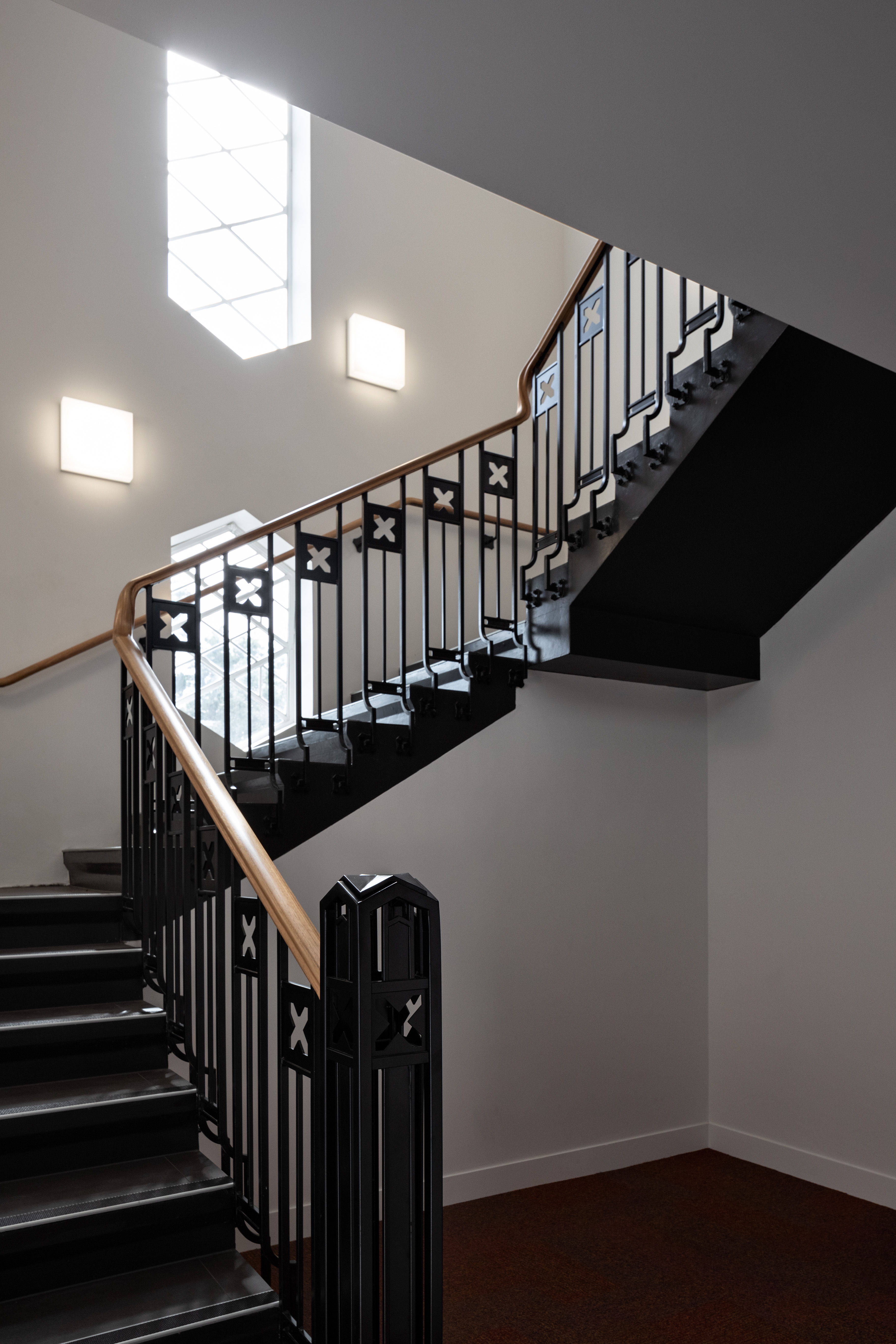 There’s an algorithm governing the pattern of the original stonework on Building 119 at the University of Auckland, although the architects doing the restoration found it fiendishly hard to discover and the original stonemasons didn’t know about such things at all. But that’s the building: complex, within considerable formal constraints. The contrasts continue: it’s severe and yet, in its soft colours and with that tactile stonework, it’s also warmly welcoming – a university building to pitch you, as student or staff, into a direct relationship with the institution’s history. It’s lovely, and the restoration by Architectus and Salmond Reed speaks so clearly of the love with which the building was reborn: decorative patterns and details have been skilfully recreated; a gorgeous Lippincott staircase nearby has been recreated in the building itself; new elements like the padding of built in furniture have been charmingly well inspired by the original. Bravo.