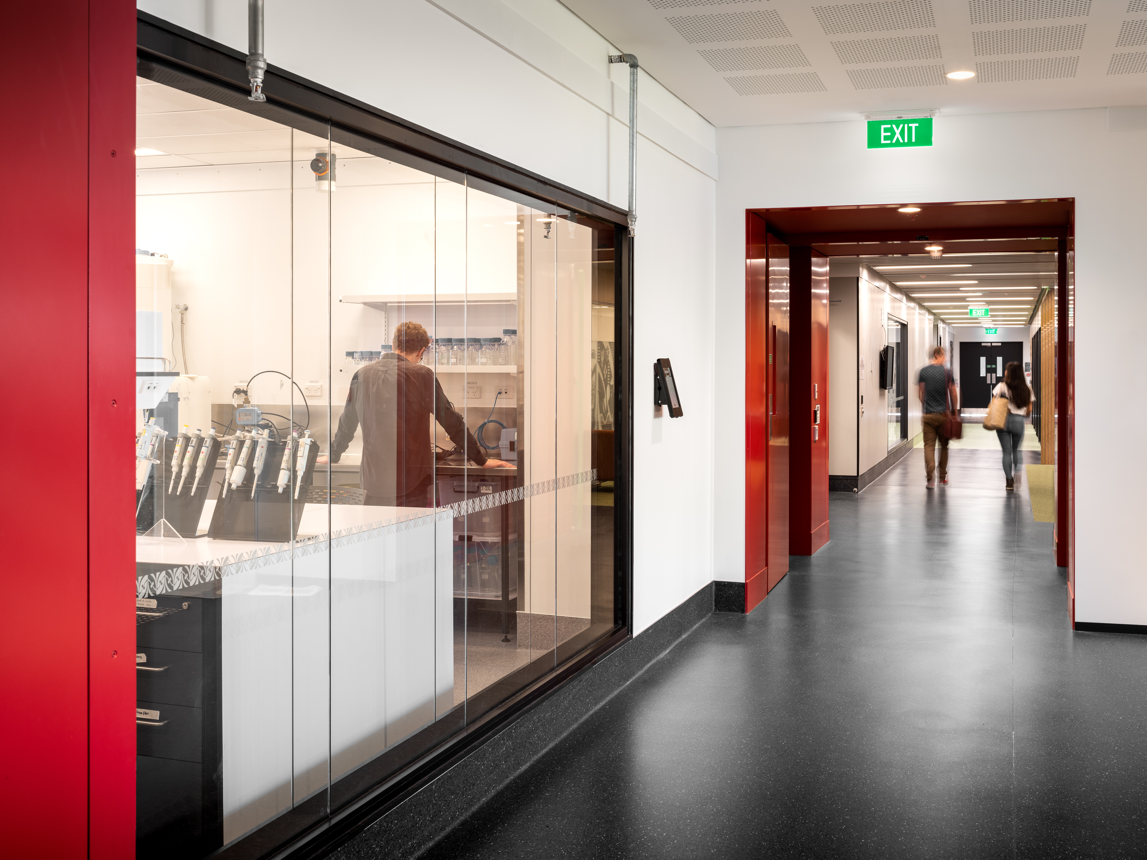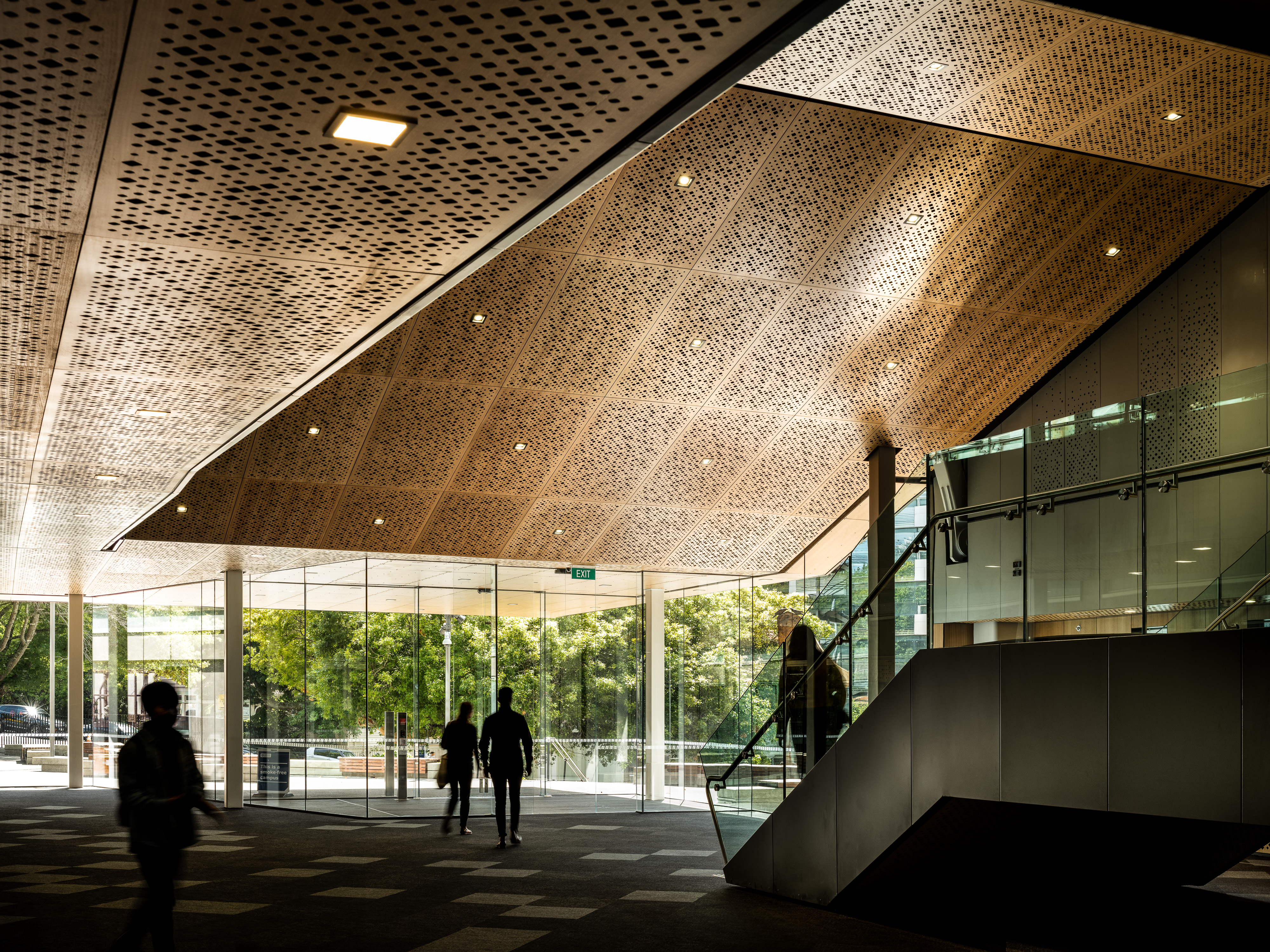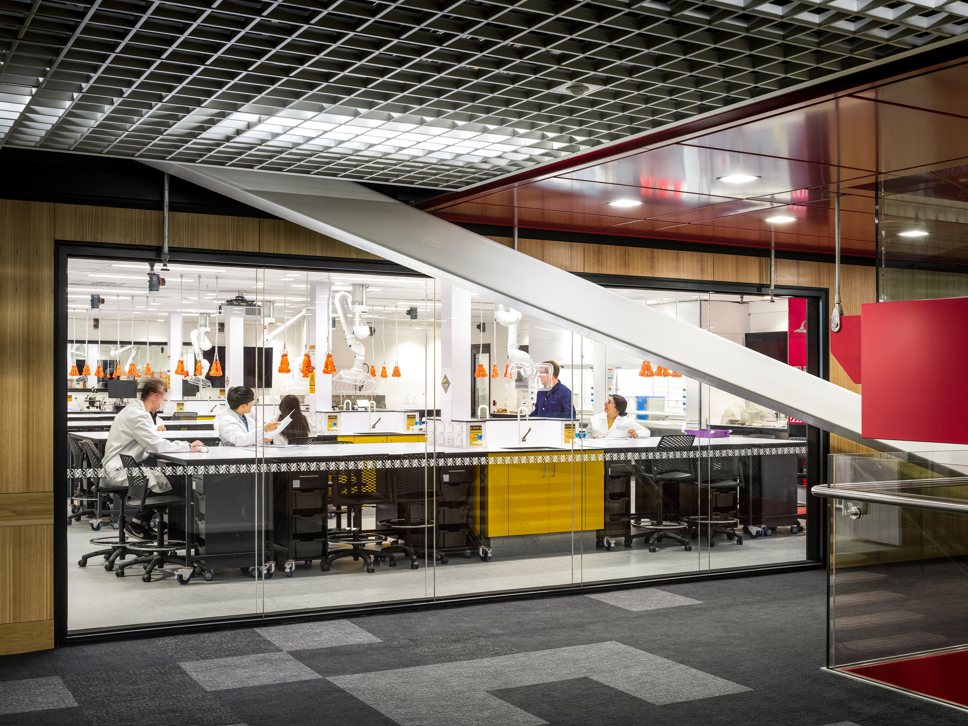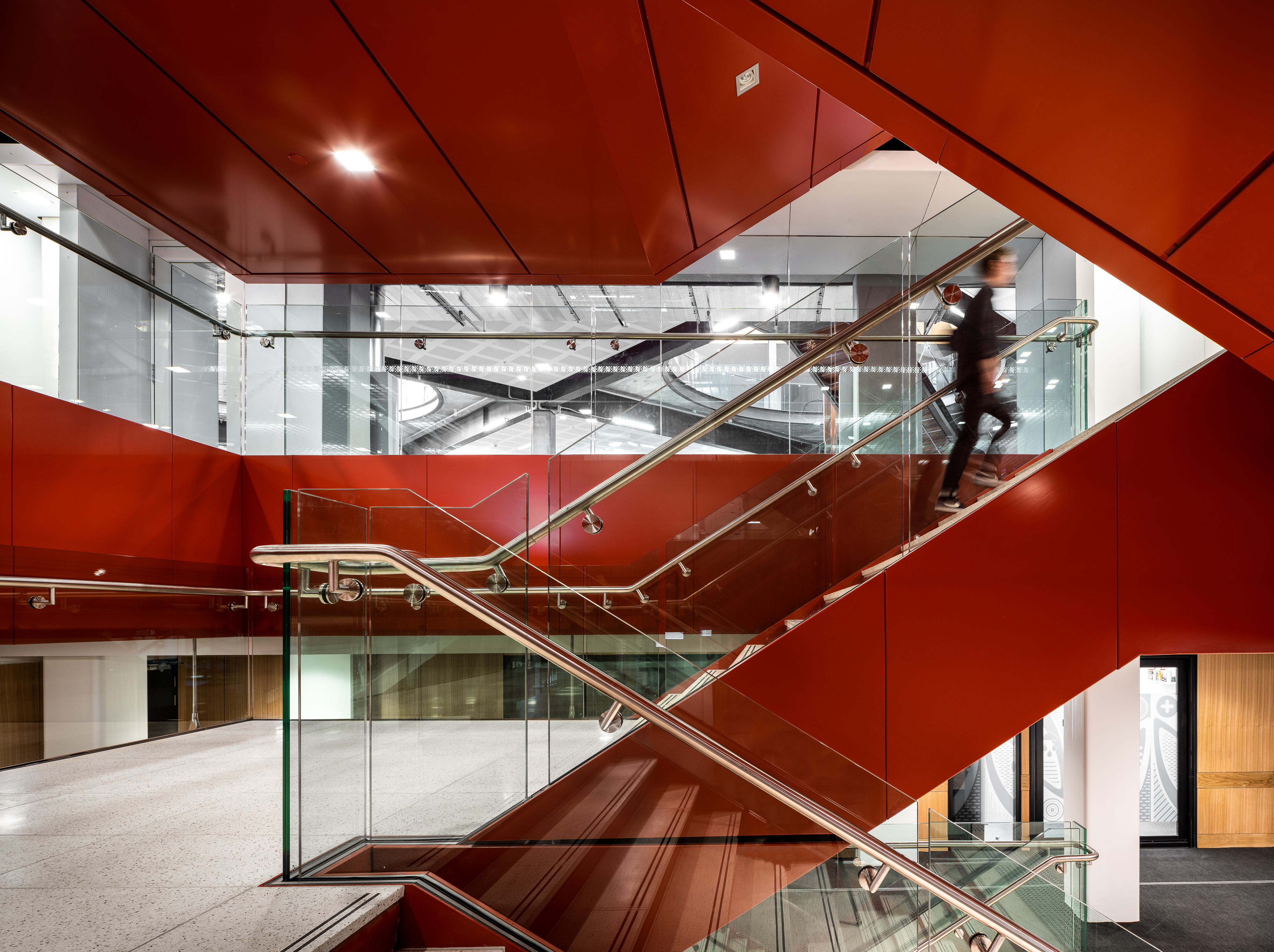 This complex building makes a point of celebrating its function. Behind the exuberant and colourful clothing of the façade and fit-out is a thoroughly resolved and simple skeleton of structure and services that is revealed to offer students a transparent and educational exhibit. A very adaptable and flexible plan and section provide the faculty with a highly adaptable facility, and materials, colour and detailing internally and externally show an awareness of how an institutional building can offer delight to its youthful occupants.