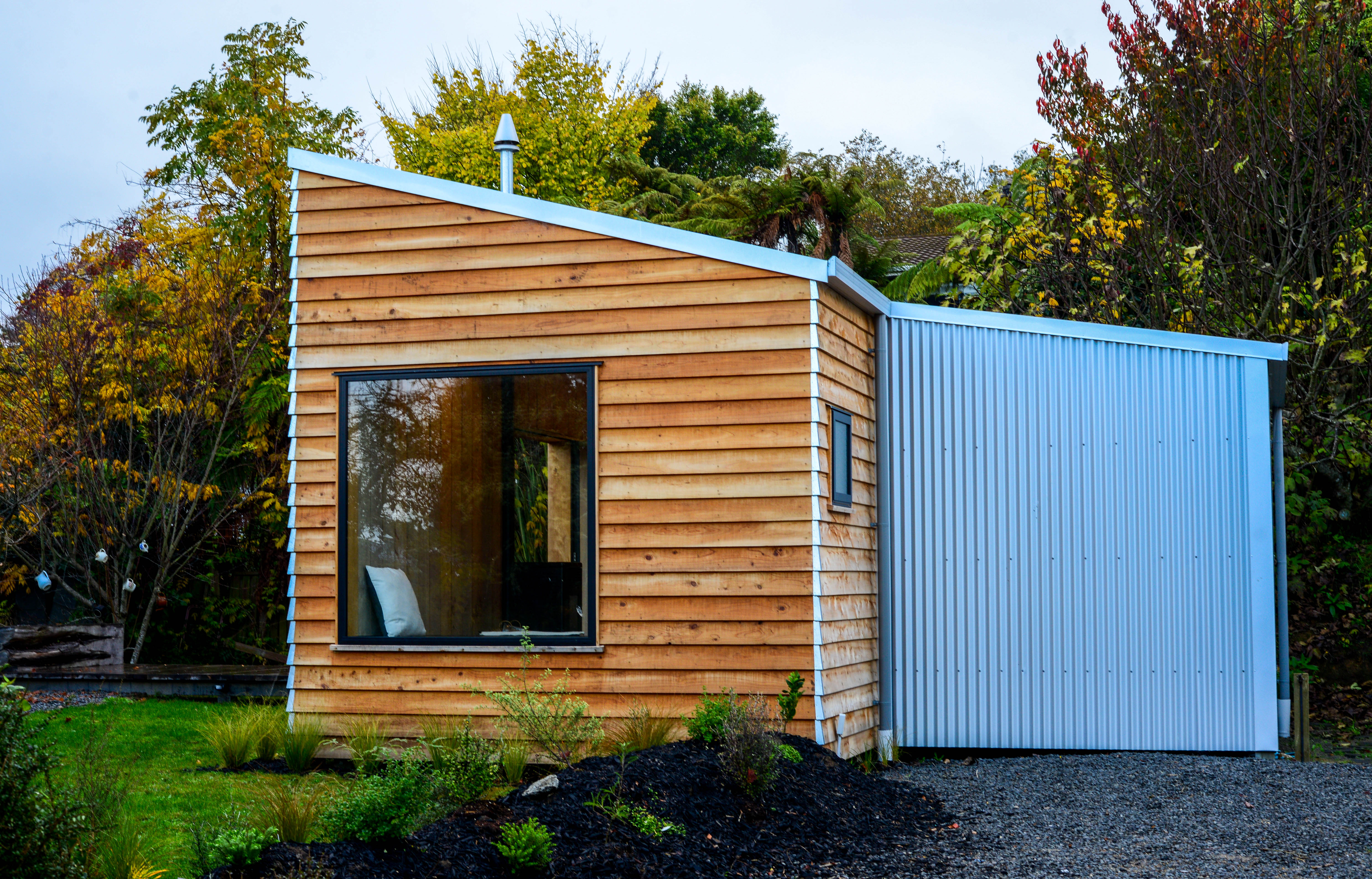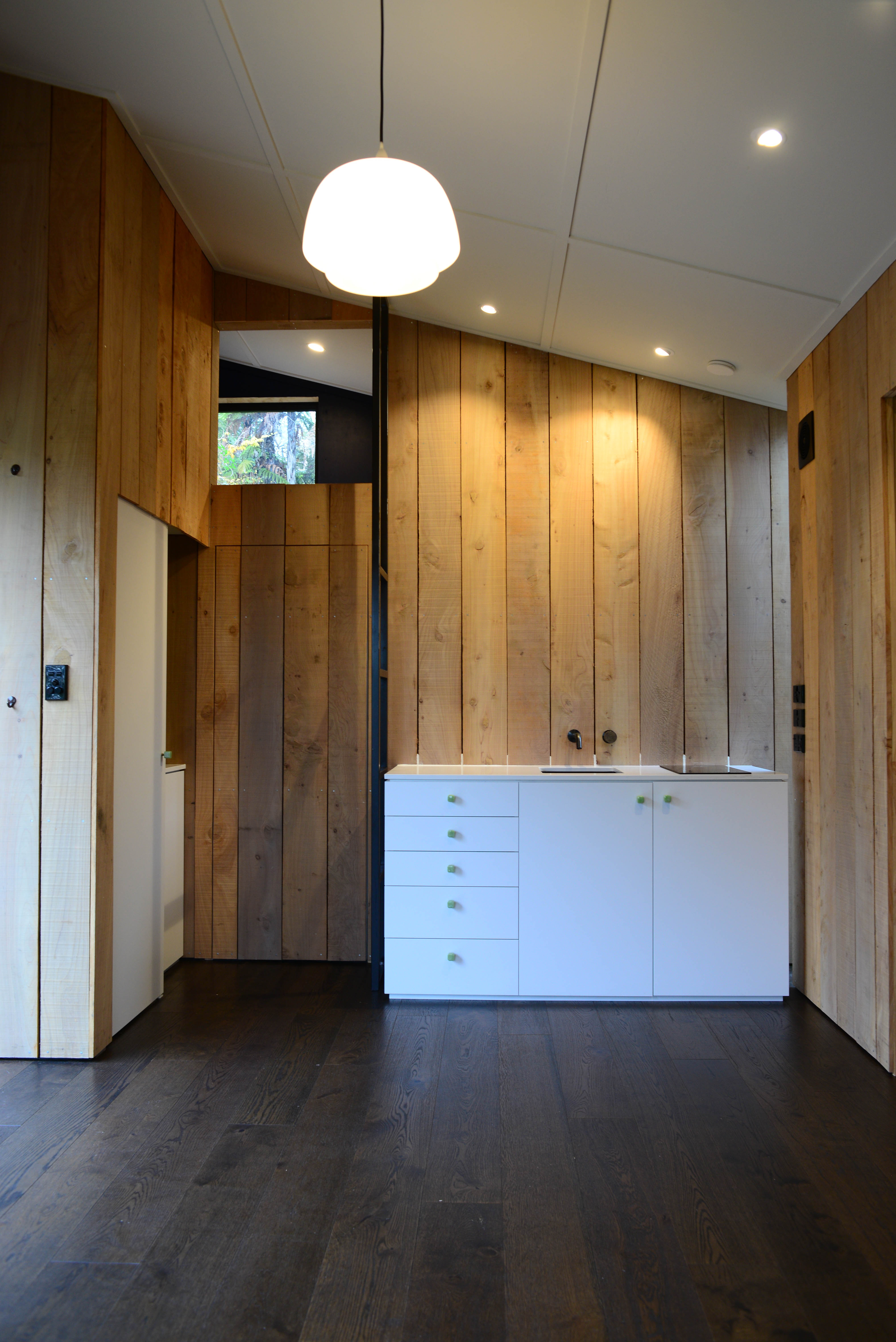 The hut embodies a playful and experimental approach to architecture. Inspired by quintessential tramping huts, it features self-built components and celebrates imperfection and thrifting. The discreet and unassuming exterior gives way to a well-considered layout suitable for a variety of uses and proving that even with limited space, a building can still be full of character and charm. The project explores what can be achieved on a tight site, while still providing a close connection to the outdoors and achieving a feeling of seclusion within a suburban context.