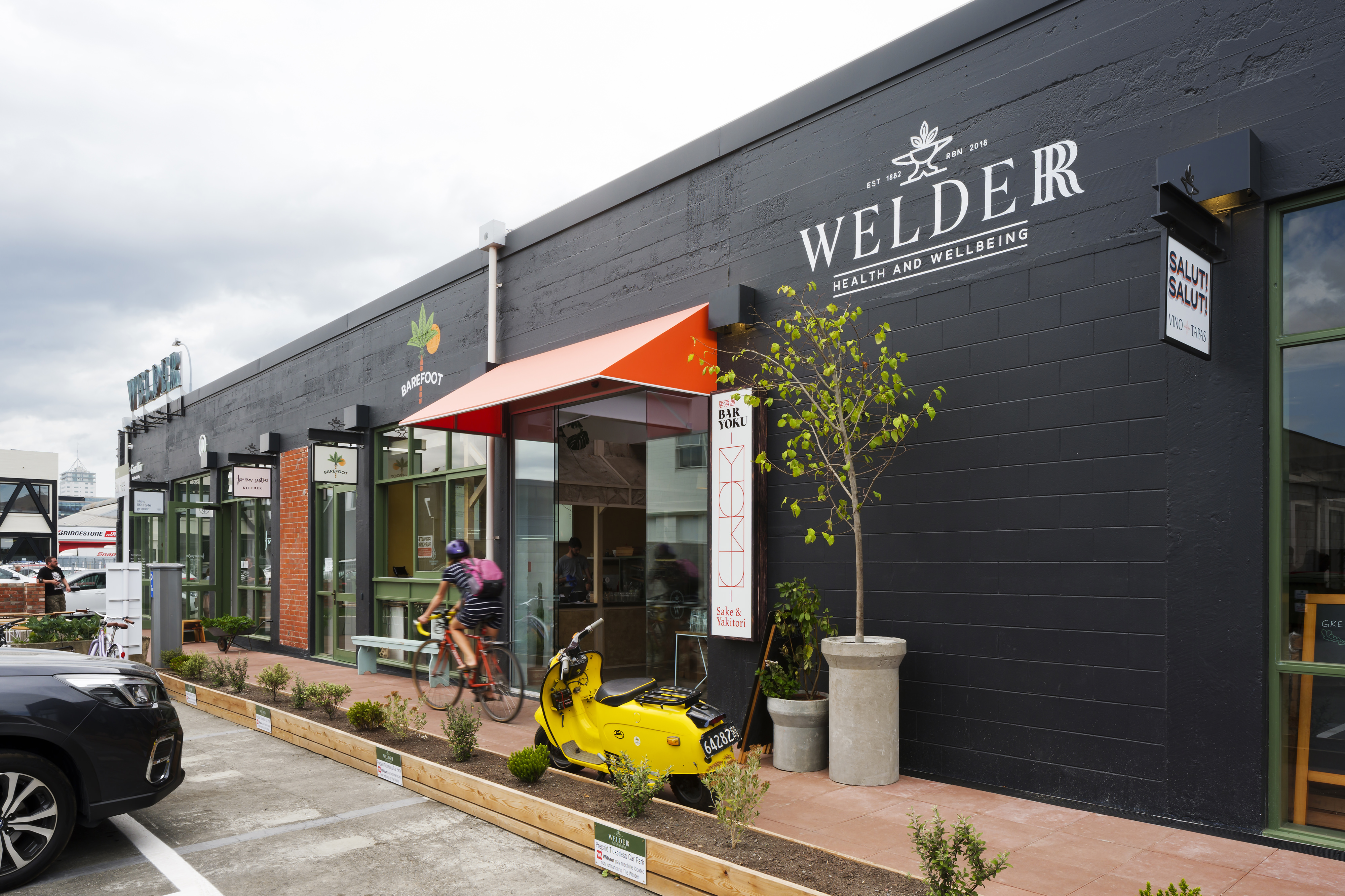 The Welder is an exemplary architectural response to a brief that reimagined a cluster of existing industrial buildings, mixed-use tenancies and public spaces as a community hub for health and wellbeing. The architect’s moves were to combine an open, airy layout with harmonious pathways and a central atrium to create a space that feels like an urban laneway. The ad-hoc design language created by mixing new with heritage also speaks to each tenancy, encouraging each to develop its own distinct feel, while unifying them with signage and planting. A conscious effort to retain as many existing materials as possible, along with new wooden elements made from recycled timber, have resulted in a tactile environment with old-world charisma.