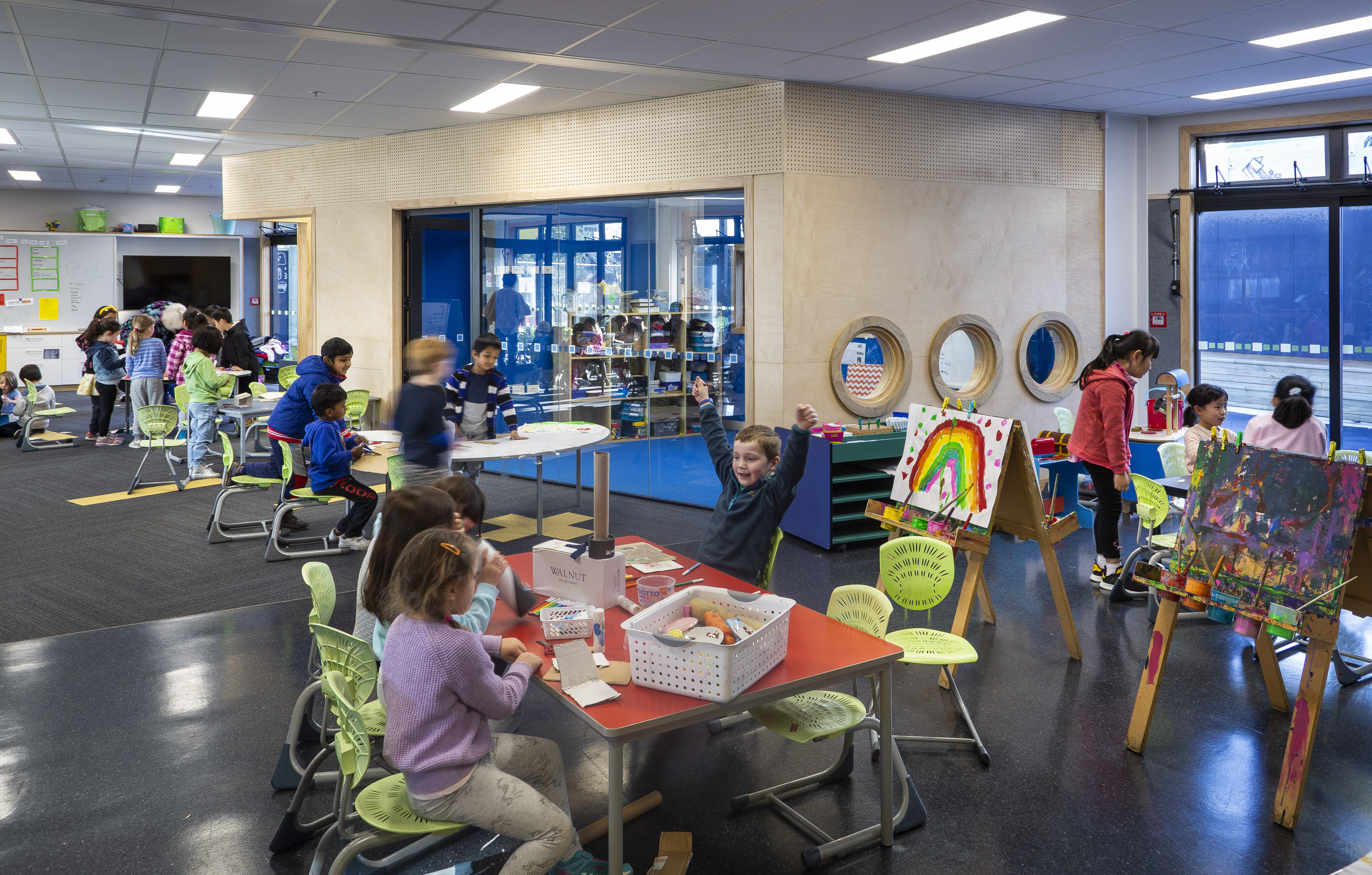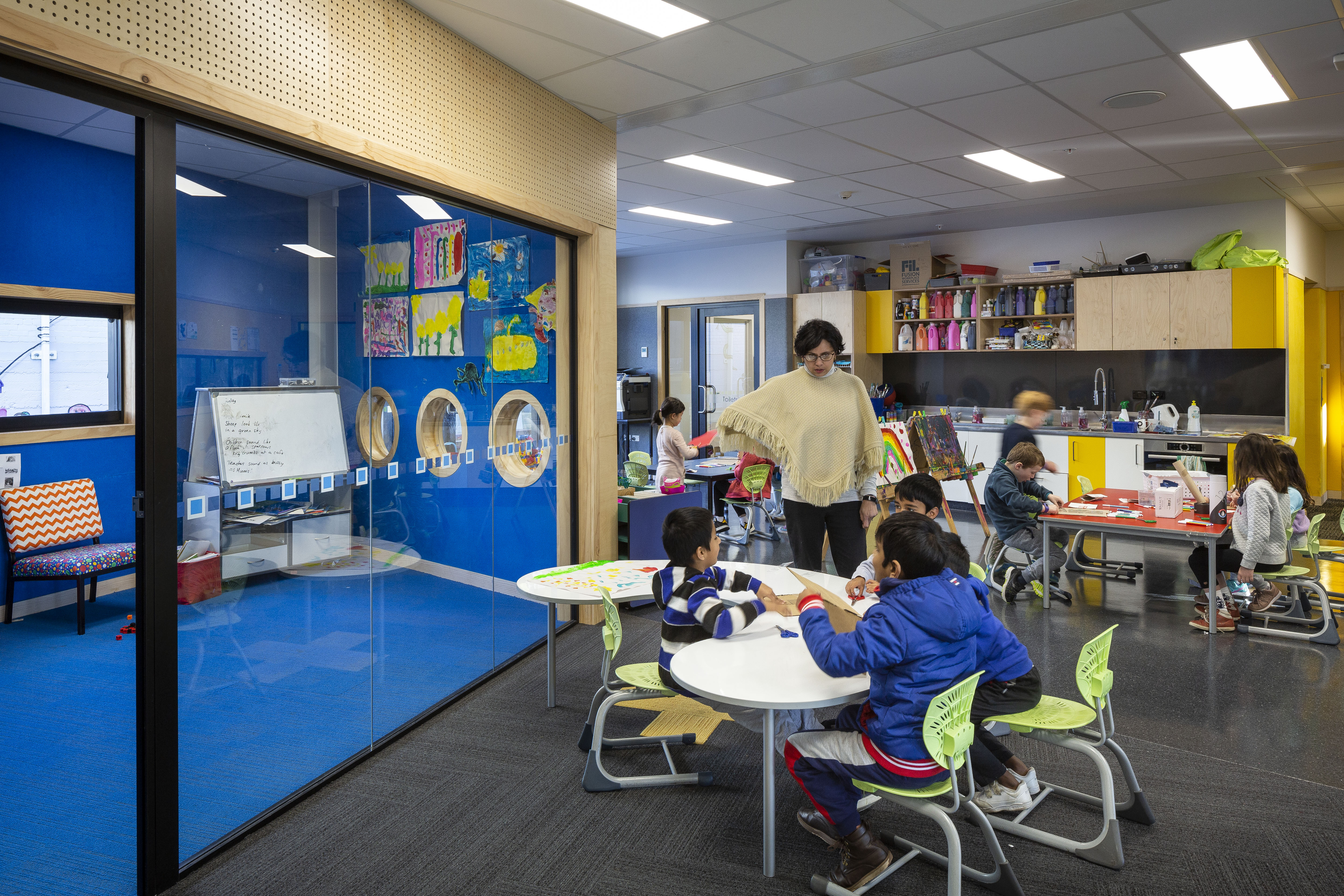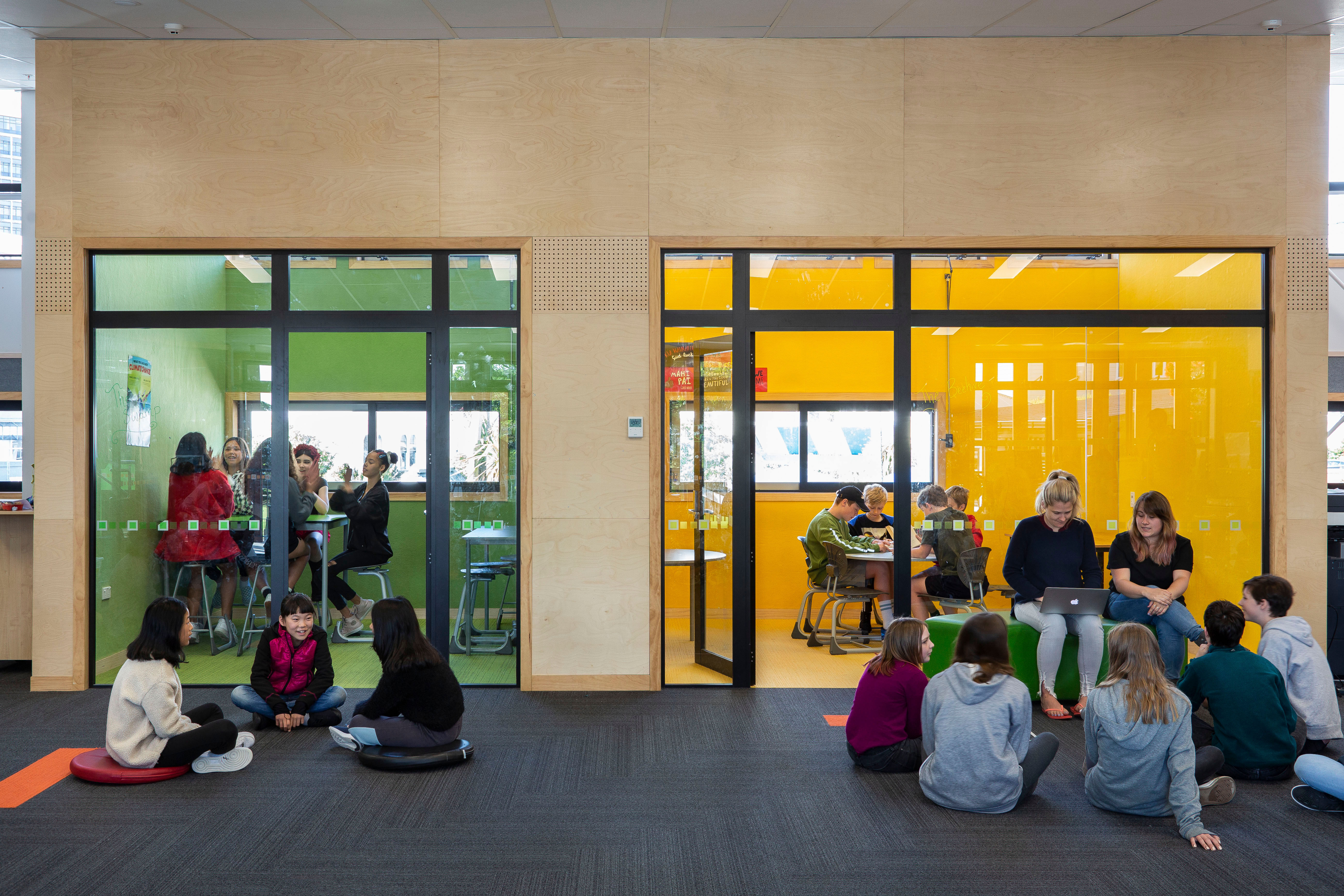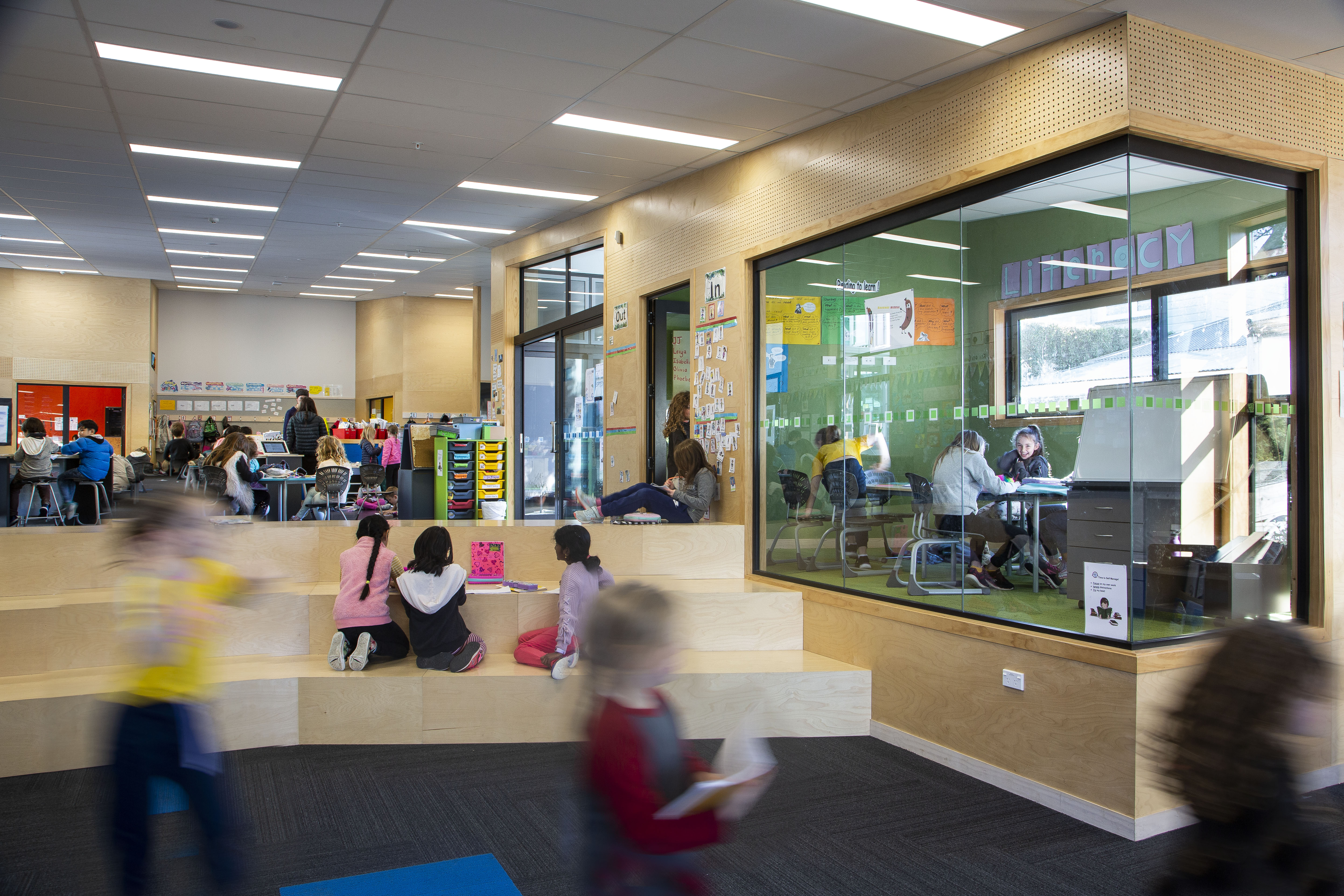 Thorndon School skillfully gleans every bit of space from an irregular and tight urban site. Stepping down from the main entry, the courtyard gathers the buildings, students, and teachers into a connected learning village. Flexible and interactive forms of modern learning environments spill into the outdoor spaces. The architecture helps create and express a sense of community. The successful engagement with mana whenua and the prioritisation of children’s experiences is evident in the sophisticated exterior and playful interior.