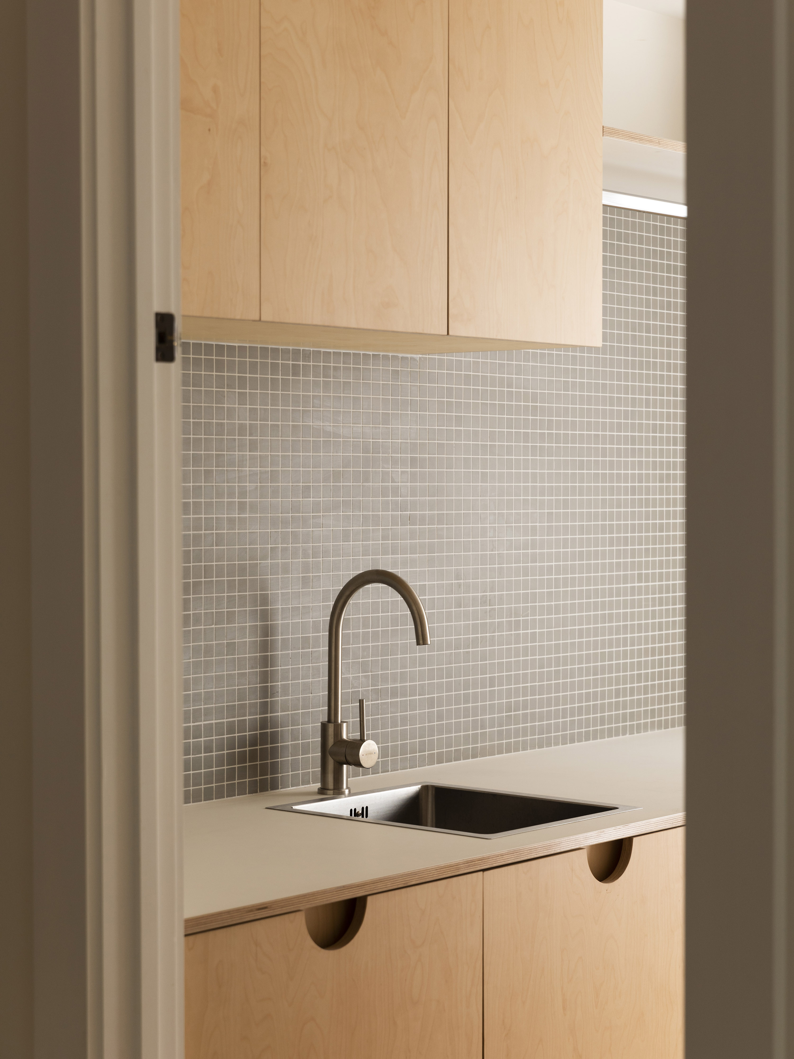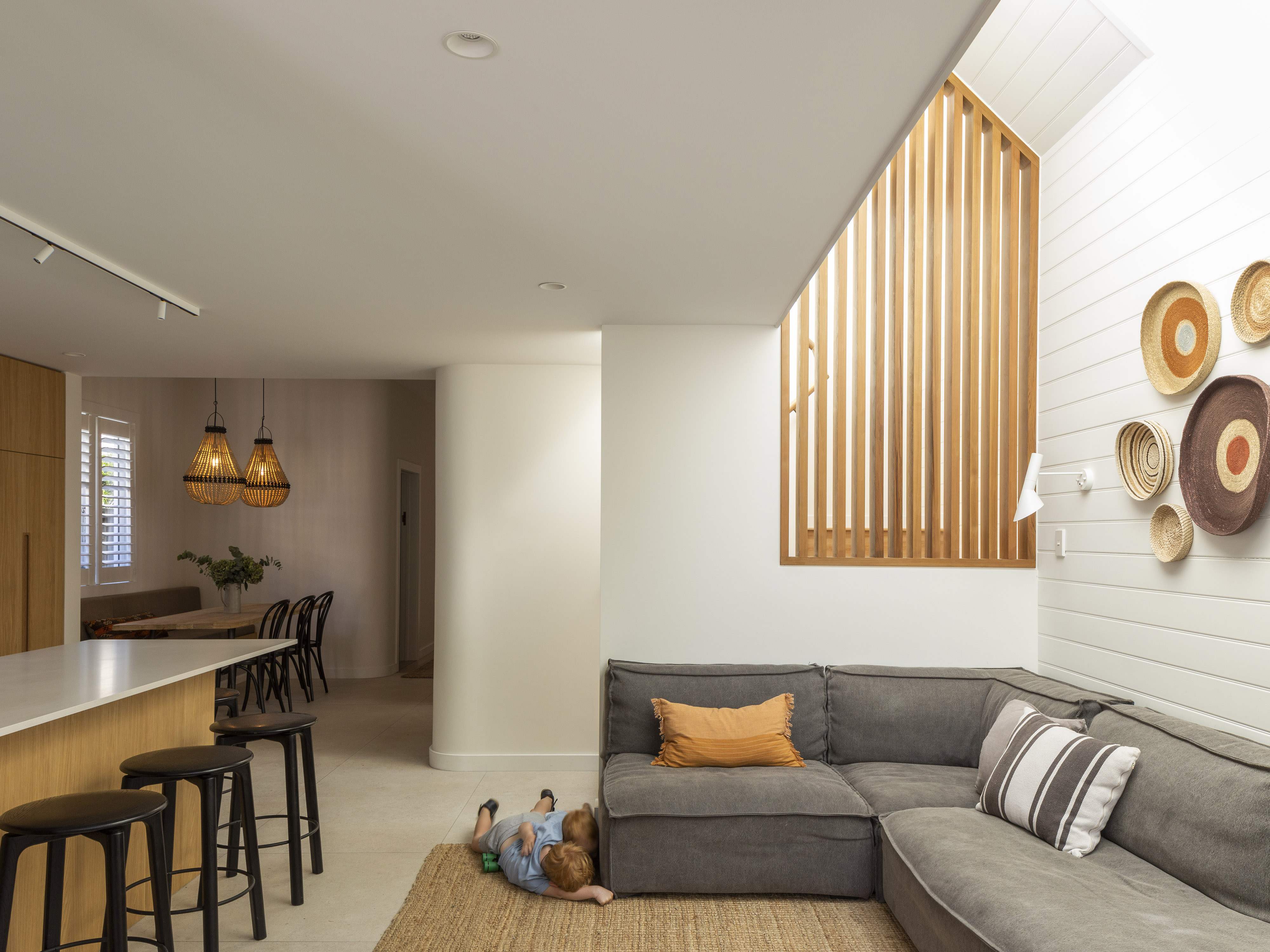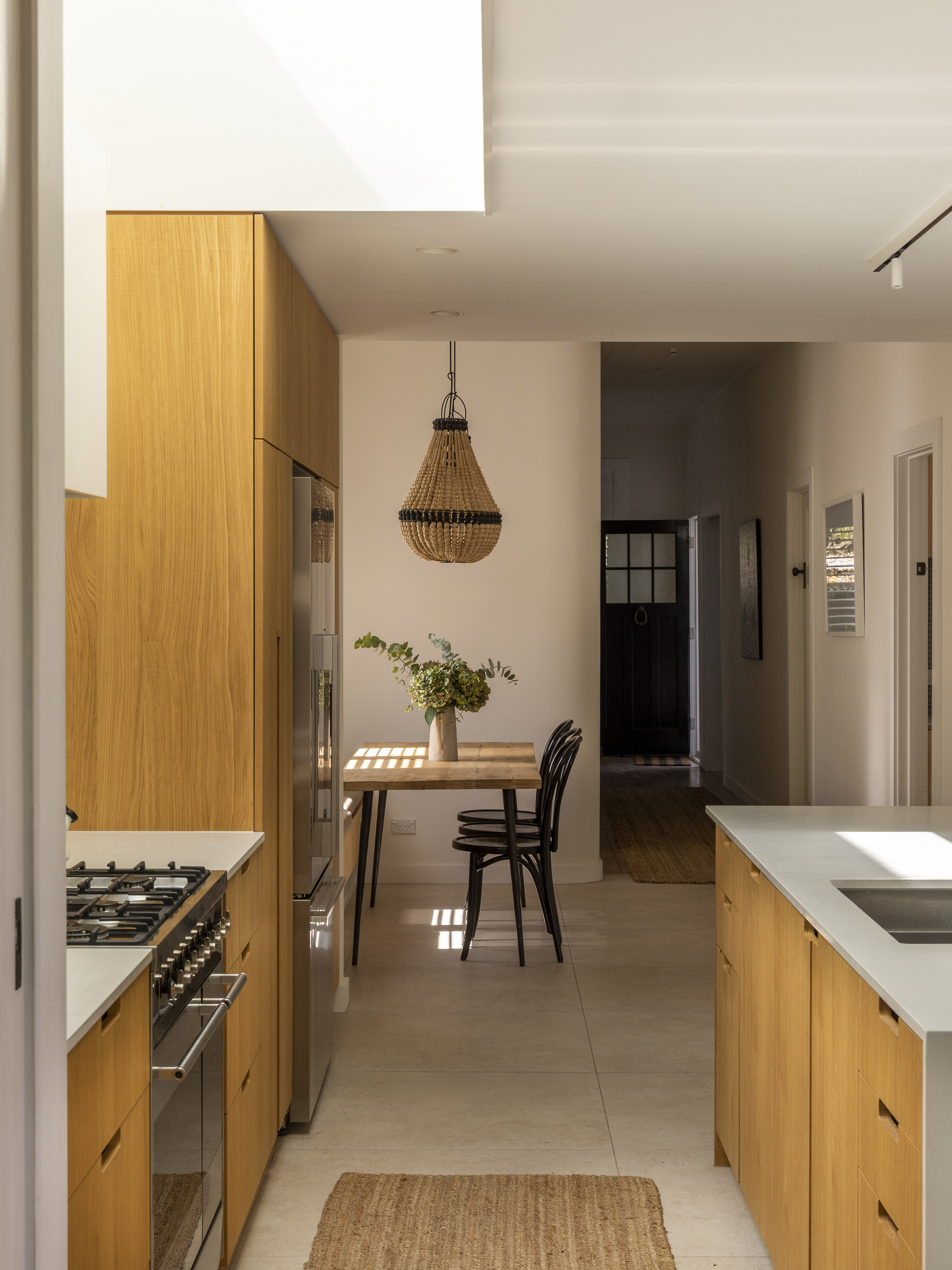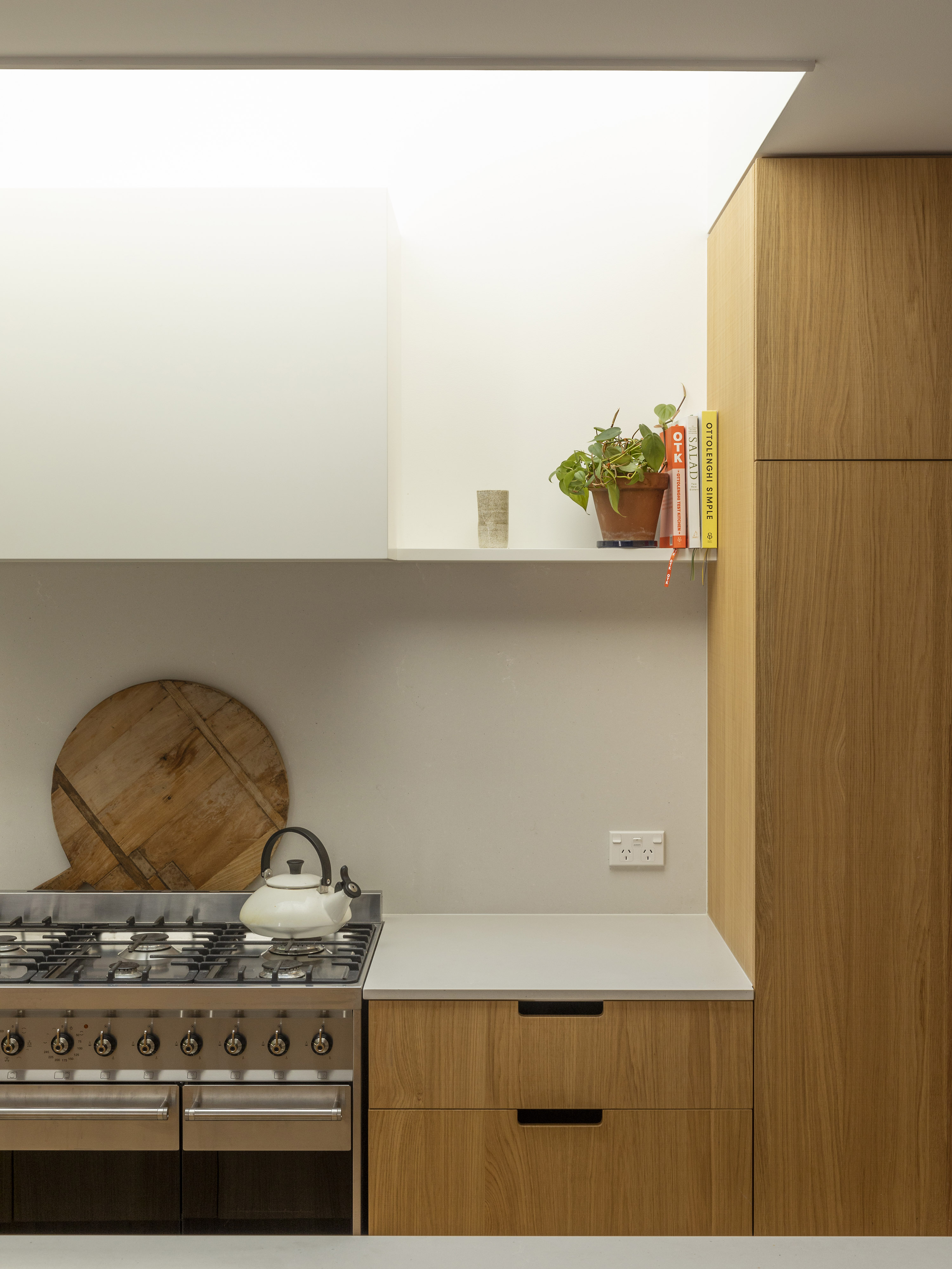 This subtle yet richly conceived addition to an existing house achieved with a modest budget aptly shows how architecture can effectively enrich even the most difficult of sites. The existing 6m wide house, sitting on an 8m wide lot in an inner-city suburb with neighbours pressing in on both sides, is further constrained by the Special Character overlay of the suburb. With little frontage and a south-facing backyard, the alteration works carefully and cleverly draws in light and outlook wherever possible. The result impressively directs pockets of light and moving shadow onto walls and floors, while selectively rounding off sharp corners in favour of flowing surfaces. Varied ceiling and floor heights create a spatial vitality that exceeds expectation.