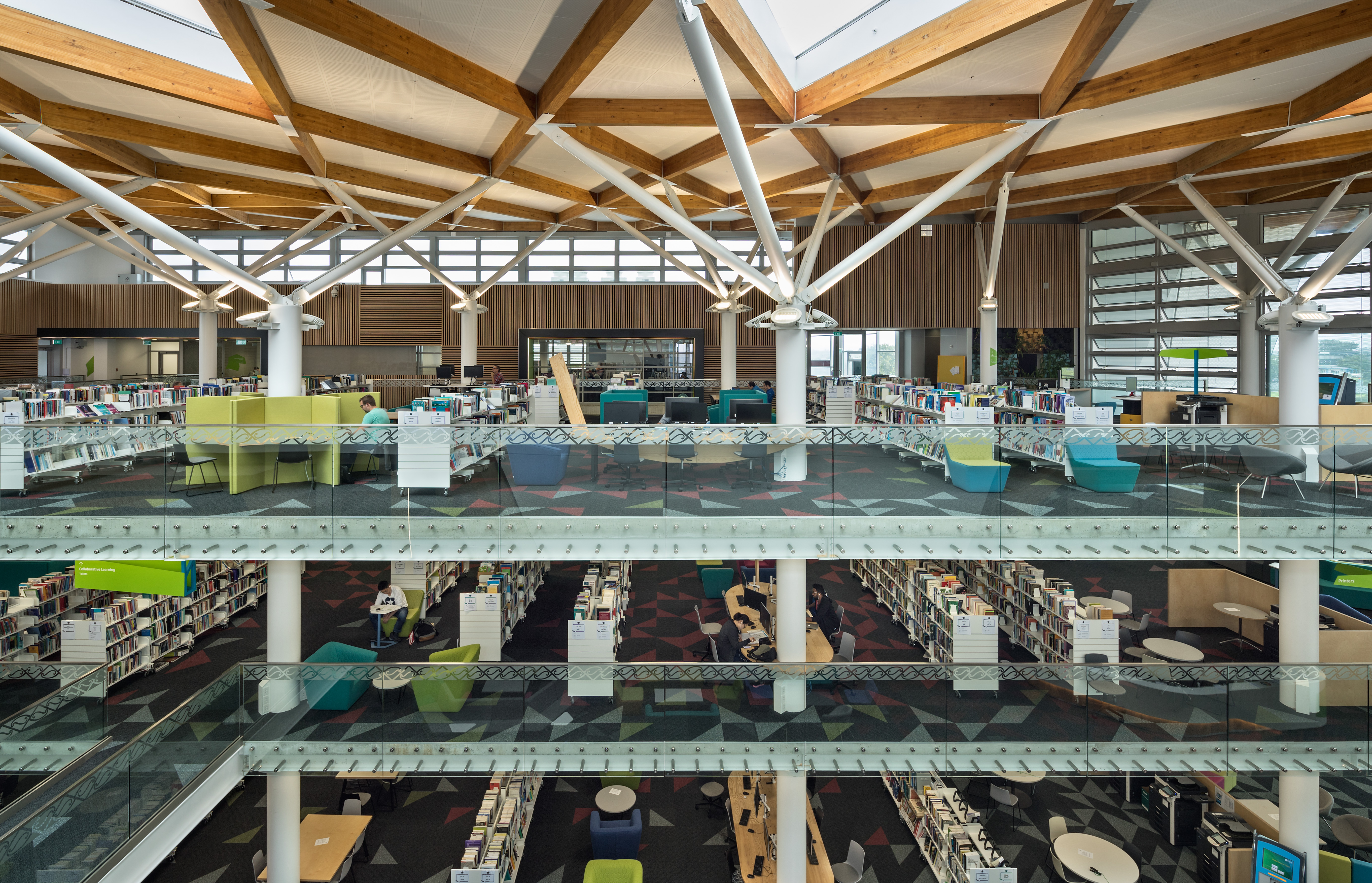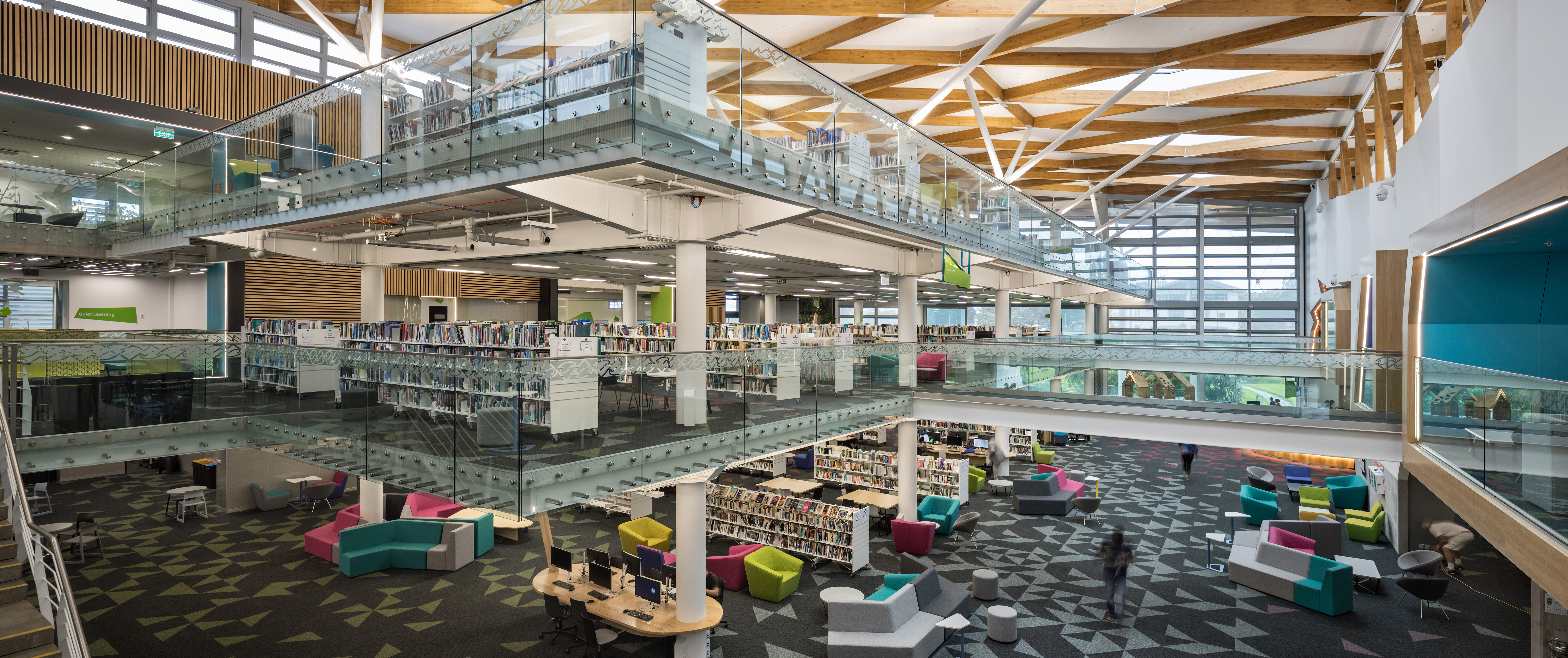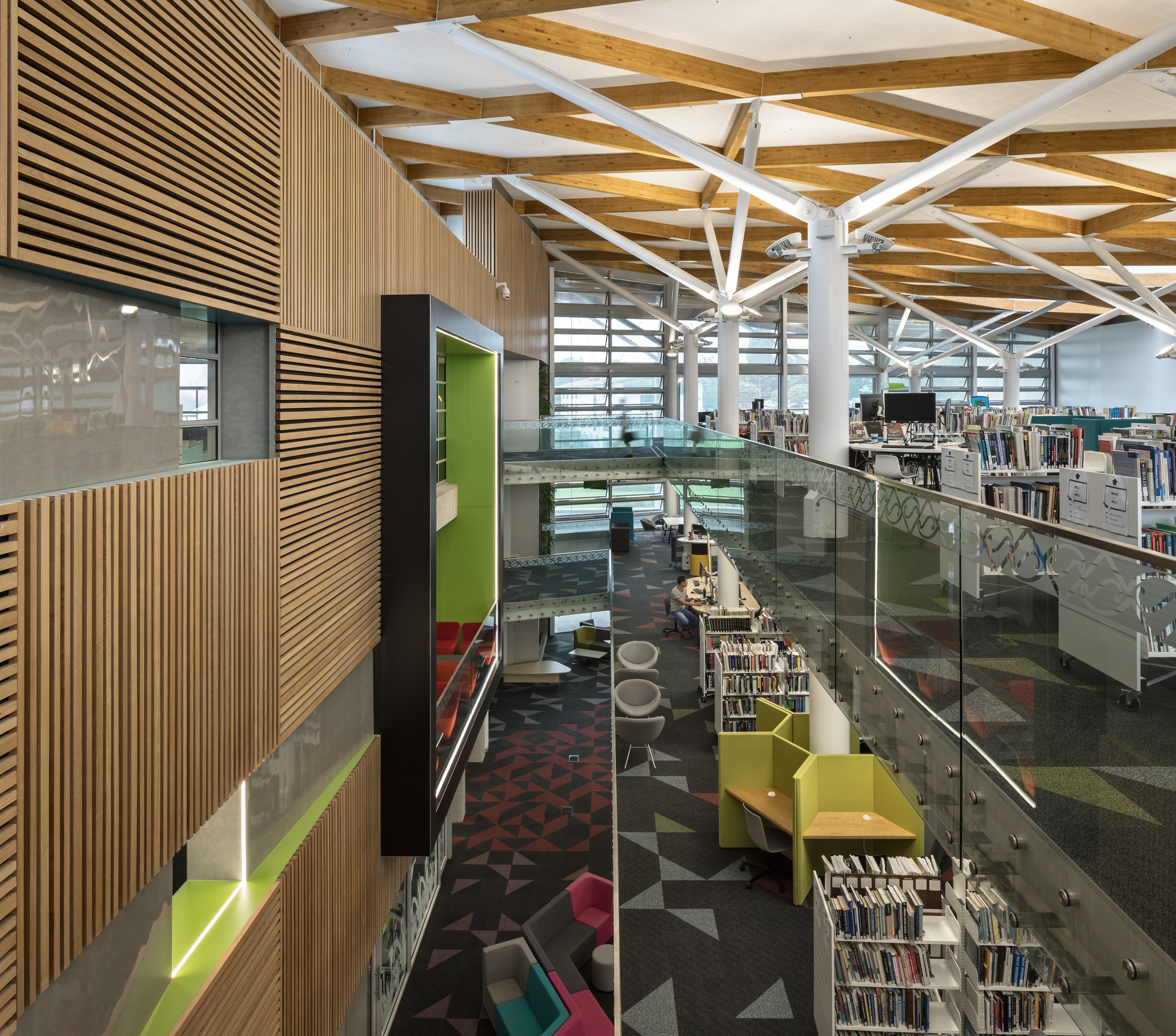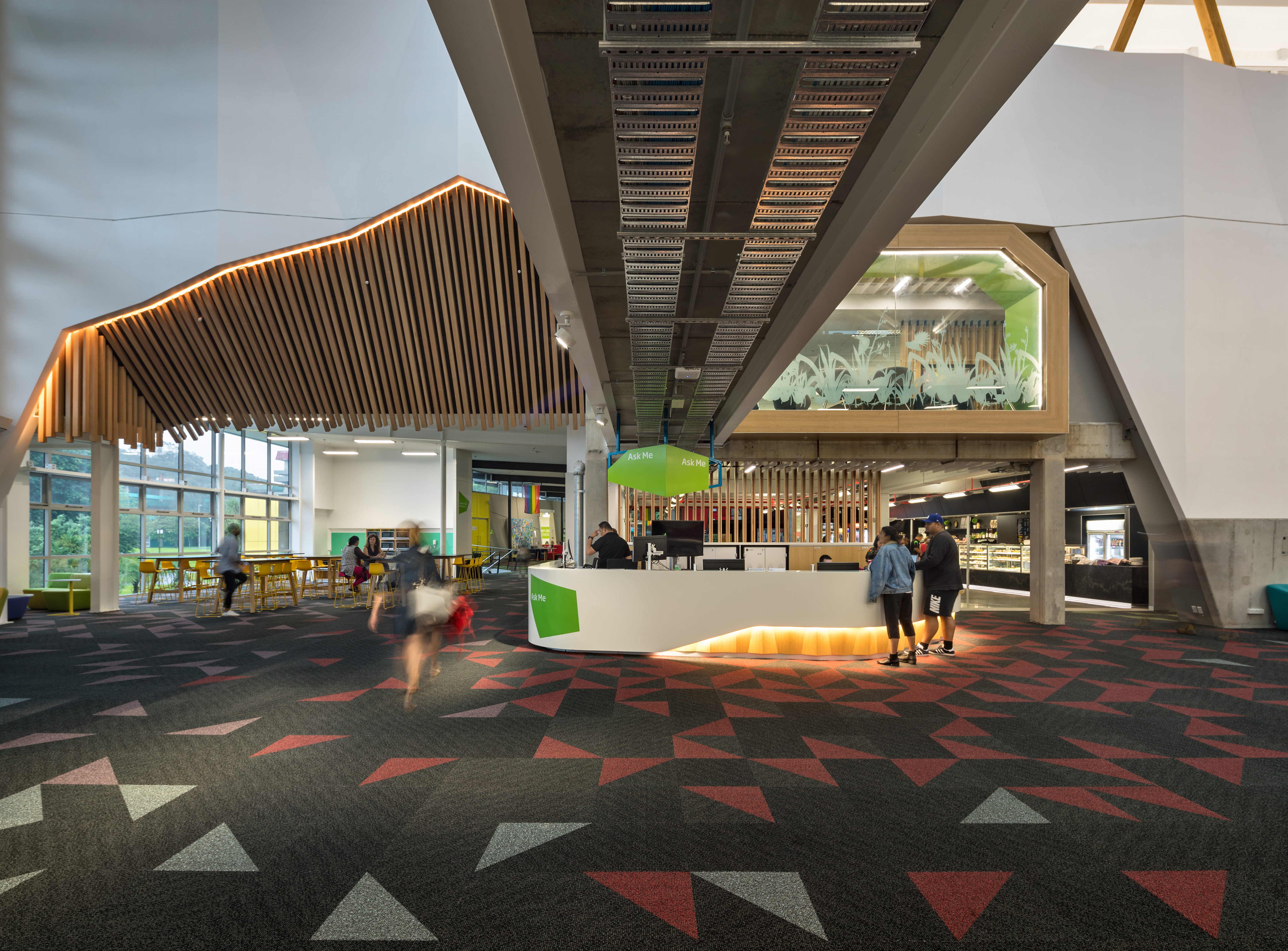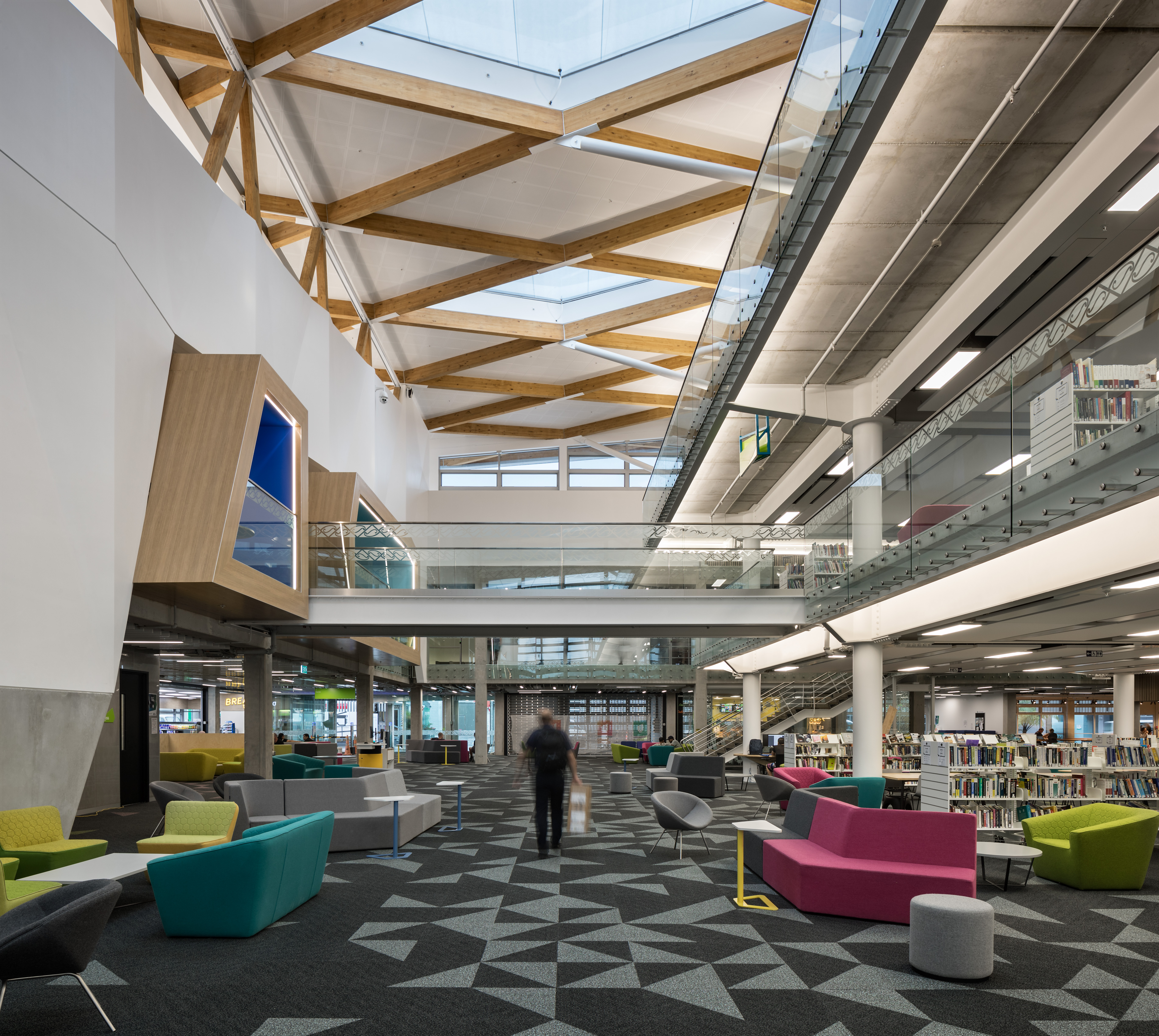 This project represents a brave move by the institute of technology to support the development of a community hub and library. Polished and assured, the building is an excellent conversion of what was once a windswept courtyard into an embracing gathering space. Delivery of a comfortable environment for occupants has been a motivating factor for the architects. The clearly defined roof structure caps an ethereal, light-filled and naturally ventilated space.