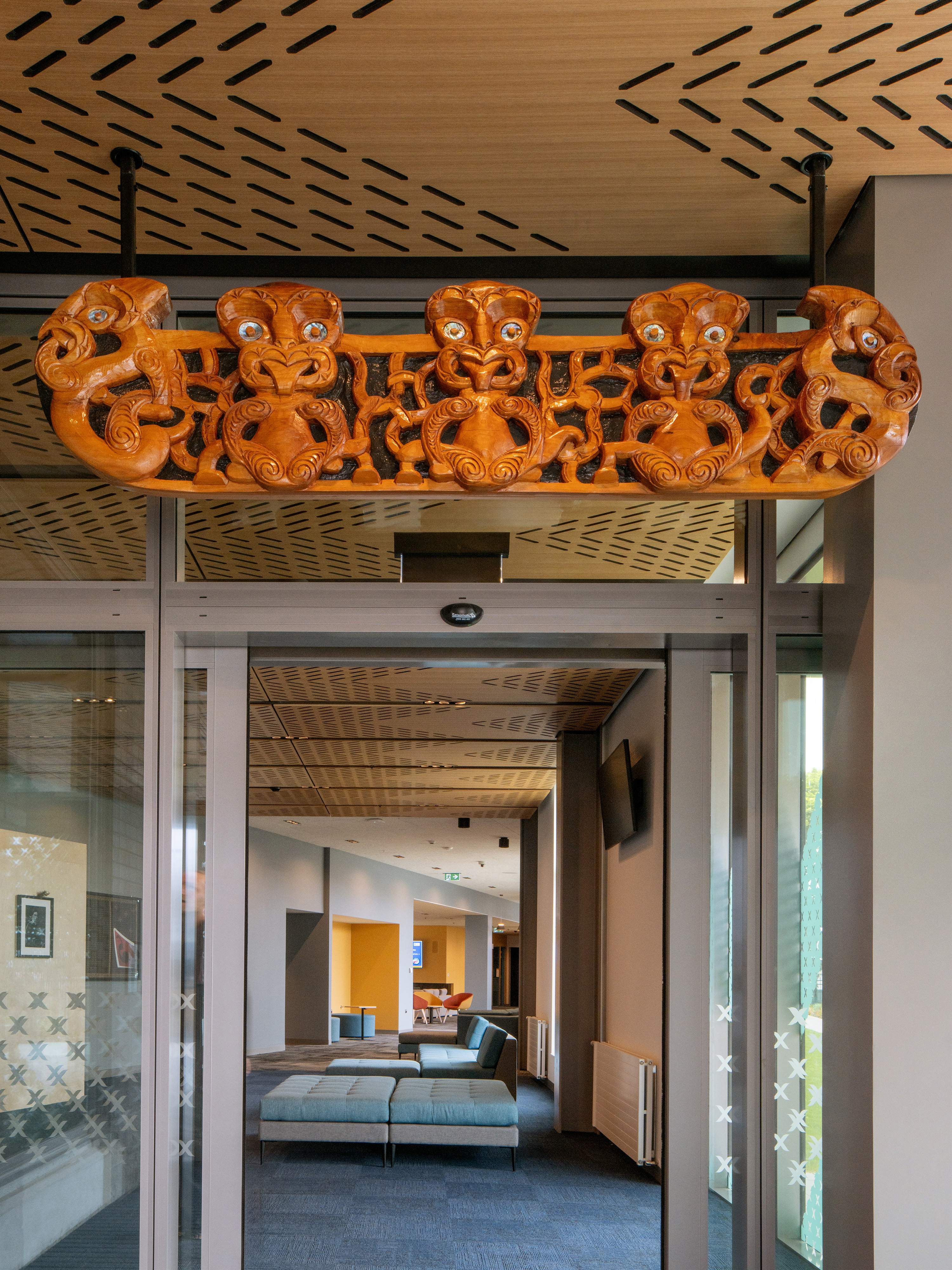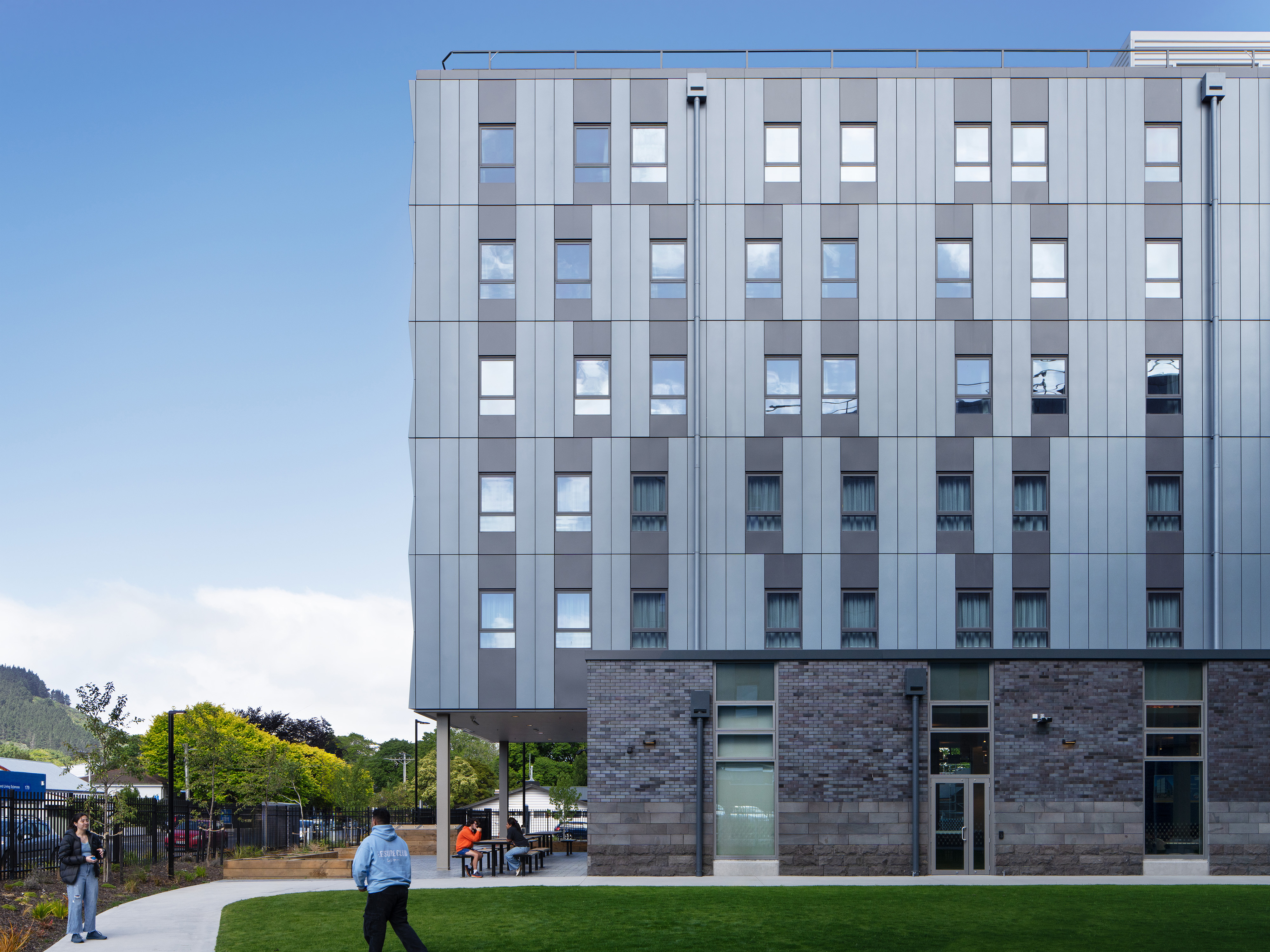 A giant X marks the spot where Sir Peter Buck first went to university and this high-rise building provides hope and accommodation for many more first-year students to come. Taking good care of them is one of the greatest tasks of the education system and Te Rangihiroa excels. Folded aluminium panels provide an ever-changing backdrop and colour coding across the building’s six floors addresses individuality and wayfinding. The elongated cruciform plan accommodates 450 students, and each floor has two common rooms. Te Rangihiroa leads the way as a glowing example of how well our rangatahi can be accommodated and nurtured.